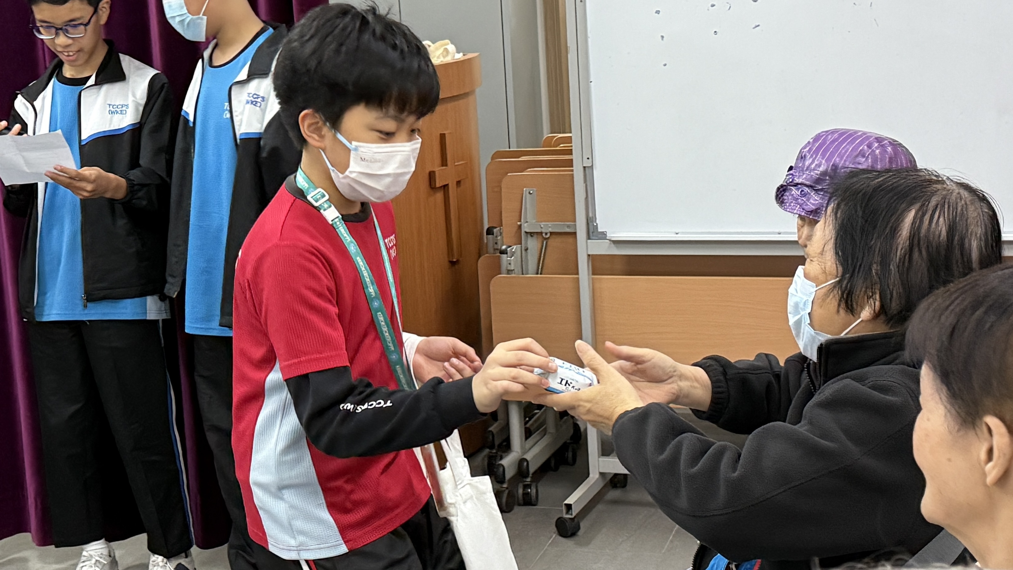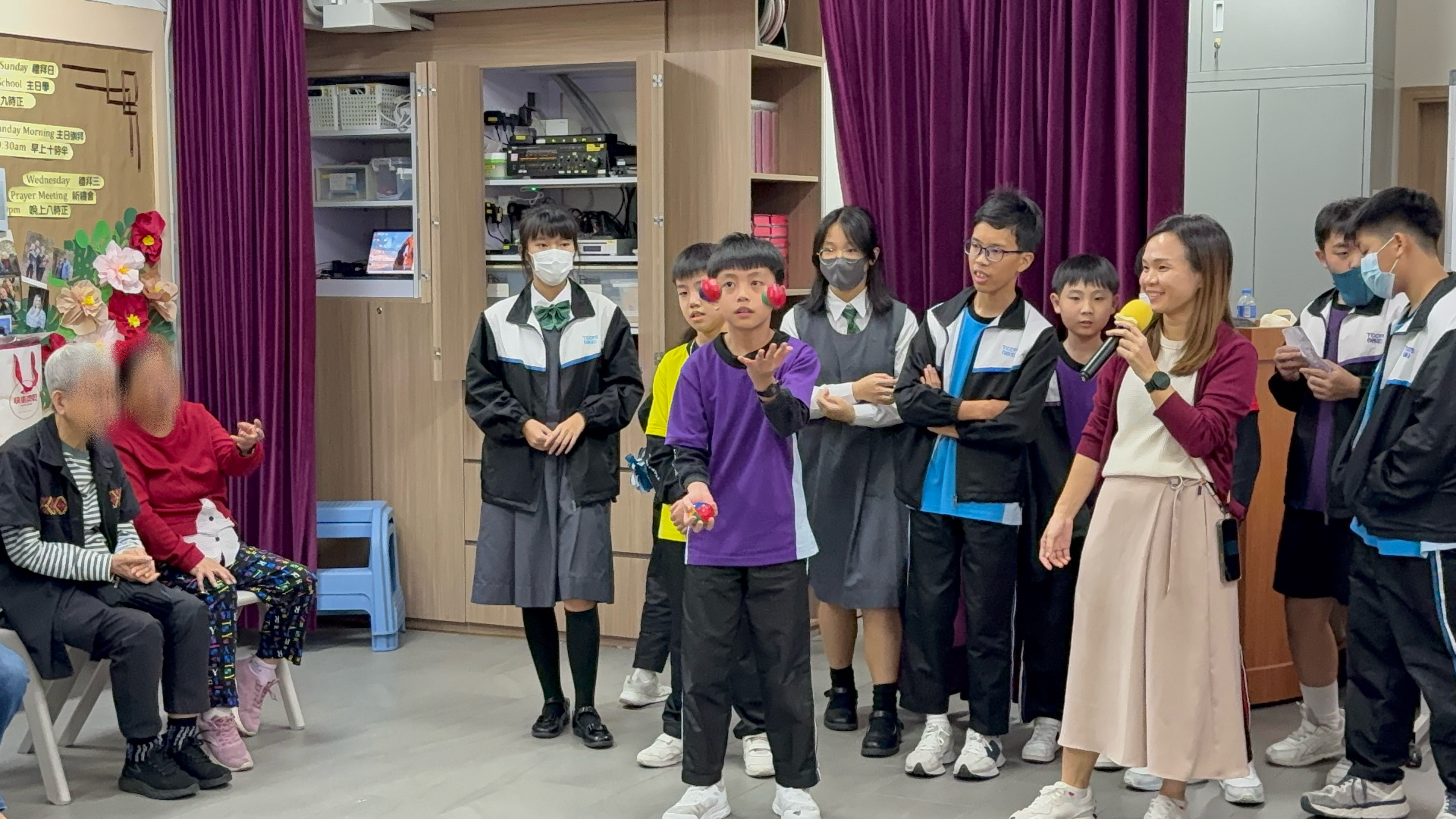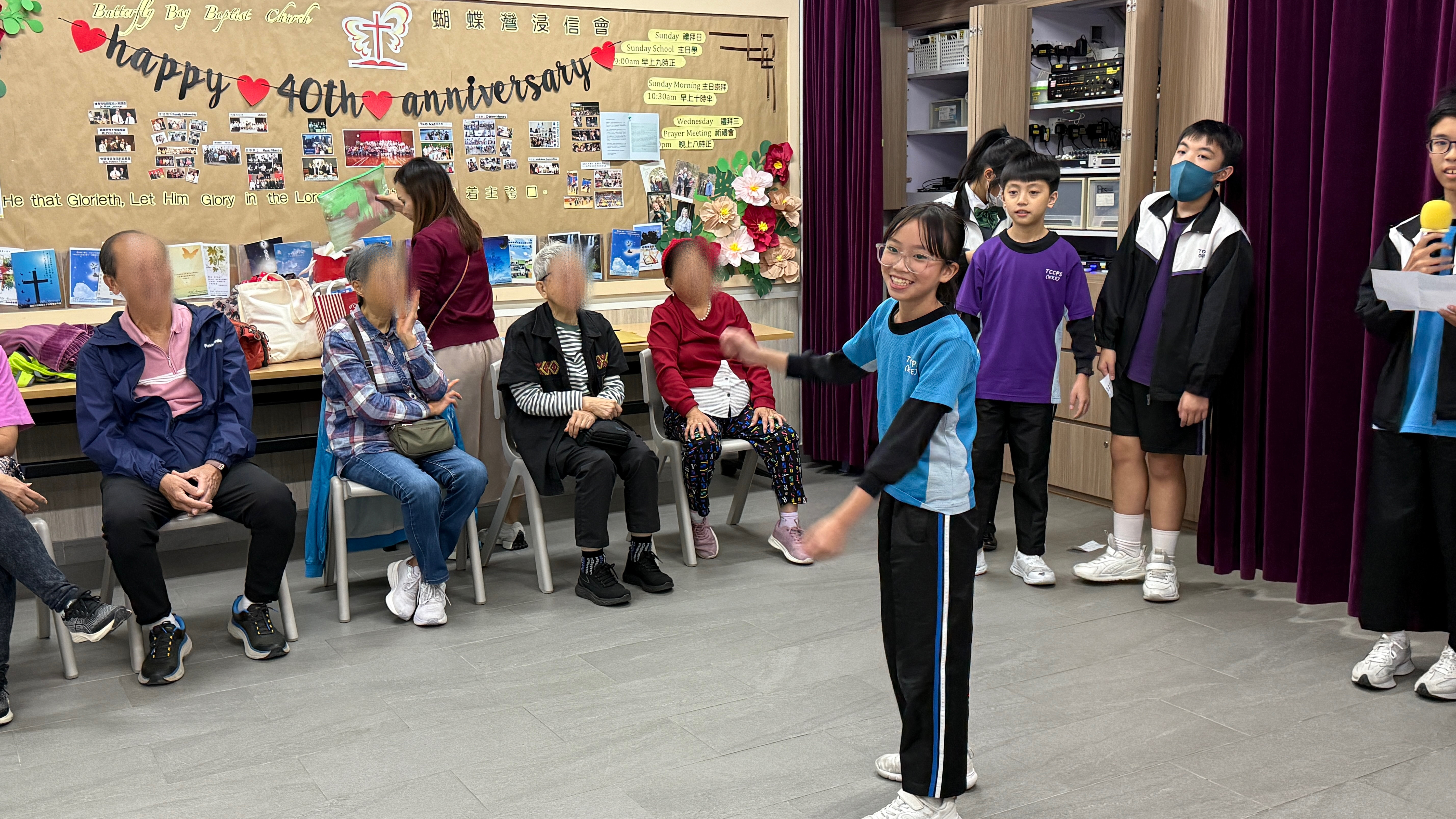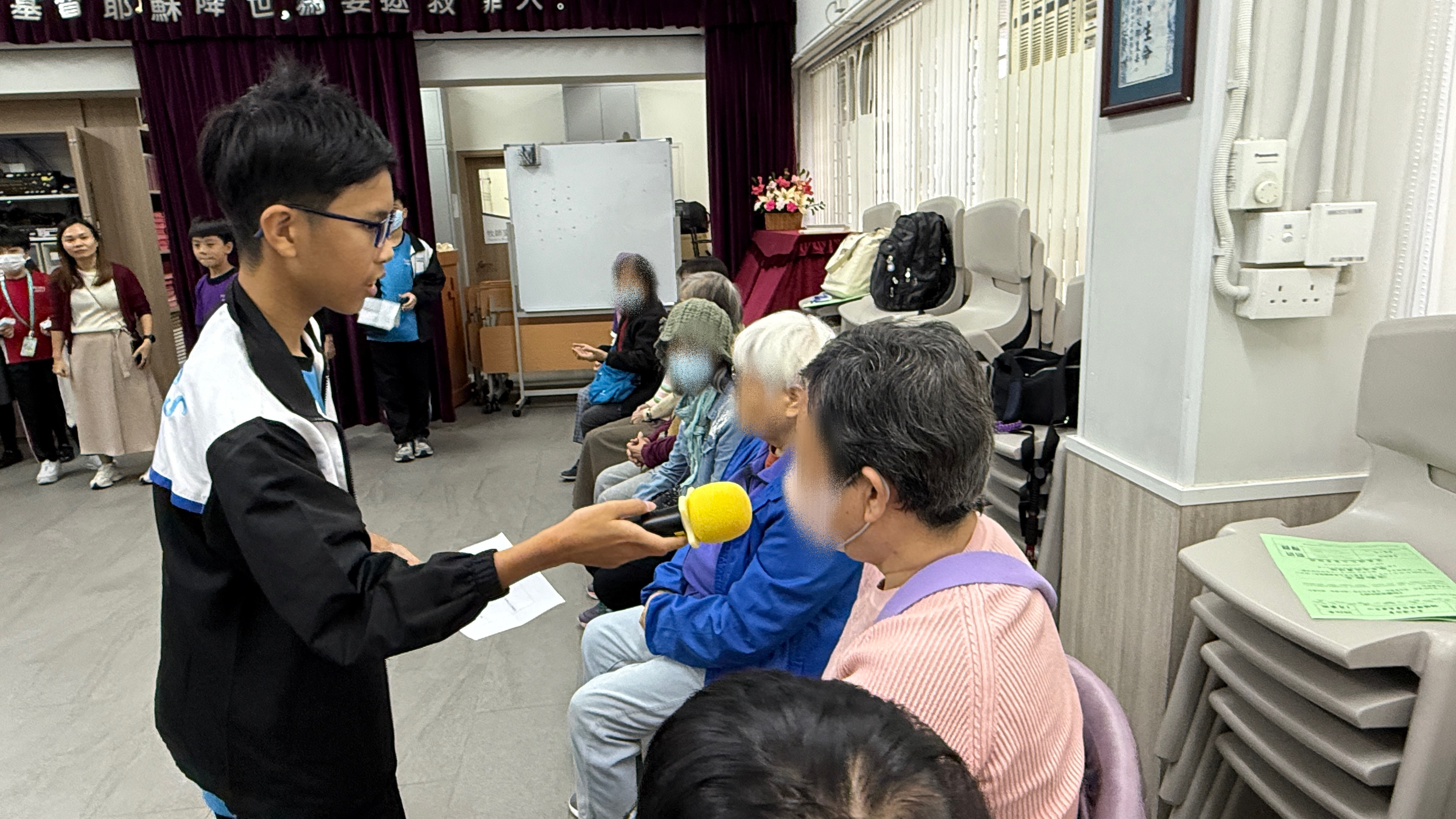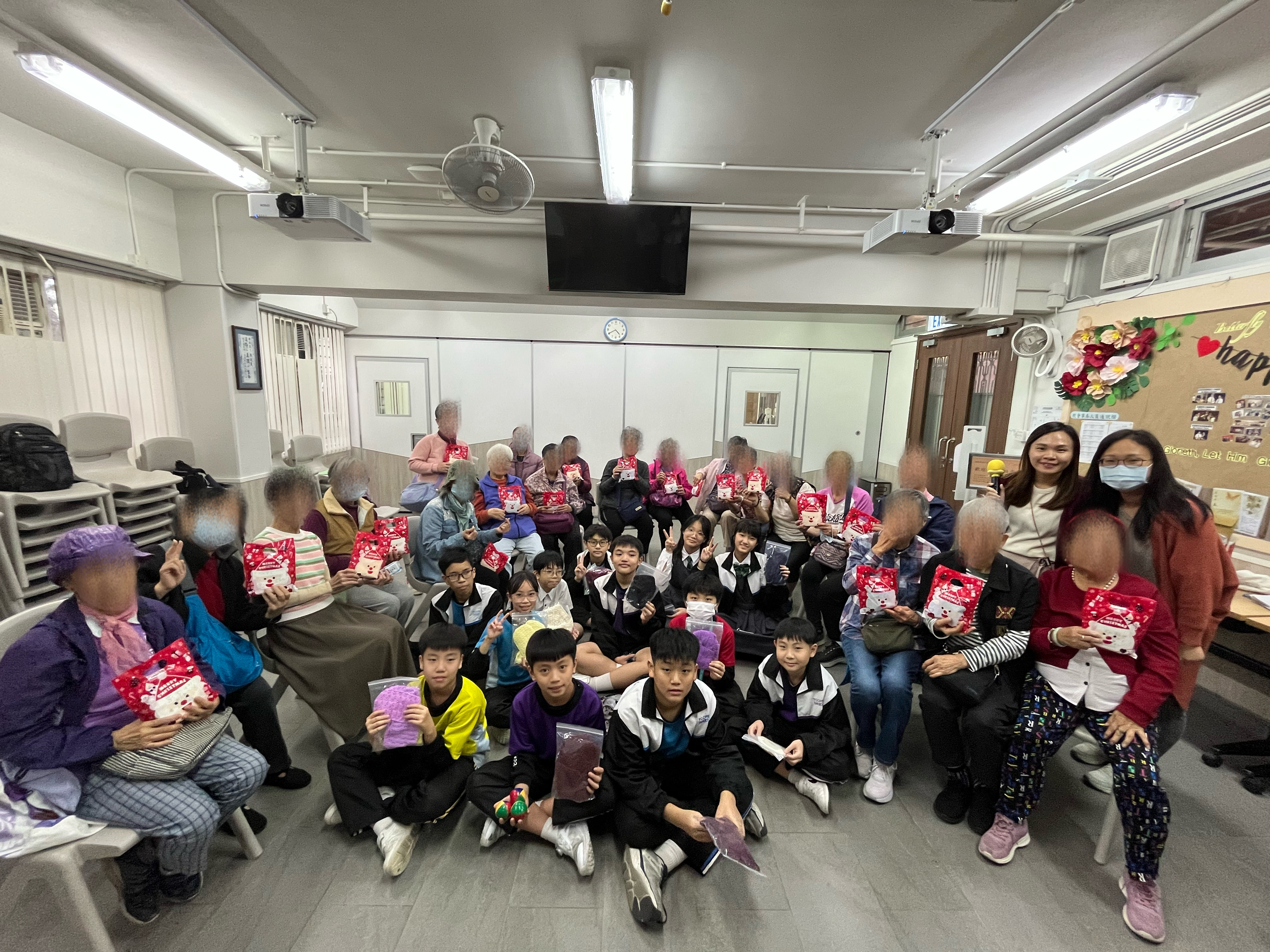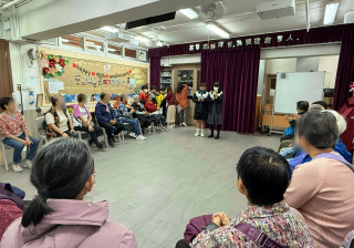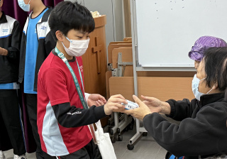 六年級學生前往蝴蝶灣浸信會長者中心與公公婆婆玩遊戲及作出表演,為公公婆婆帶來不少的歡樂;另外,同學在這次的探訪活動中收到公公婆婆親手編織的頸巾,感覺份外溫暖。