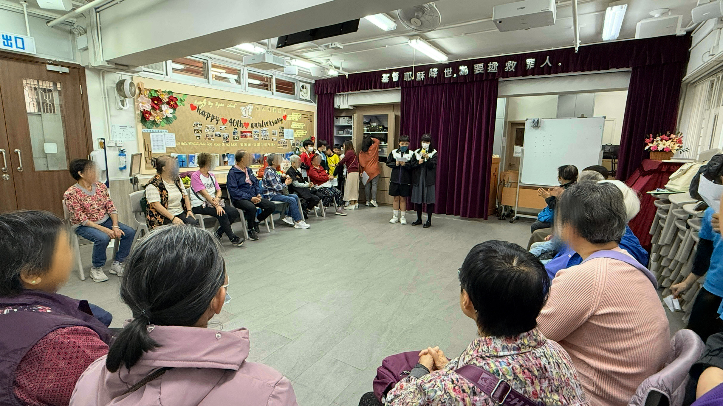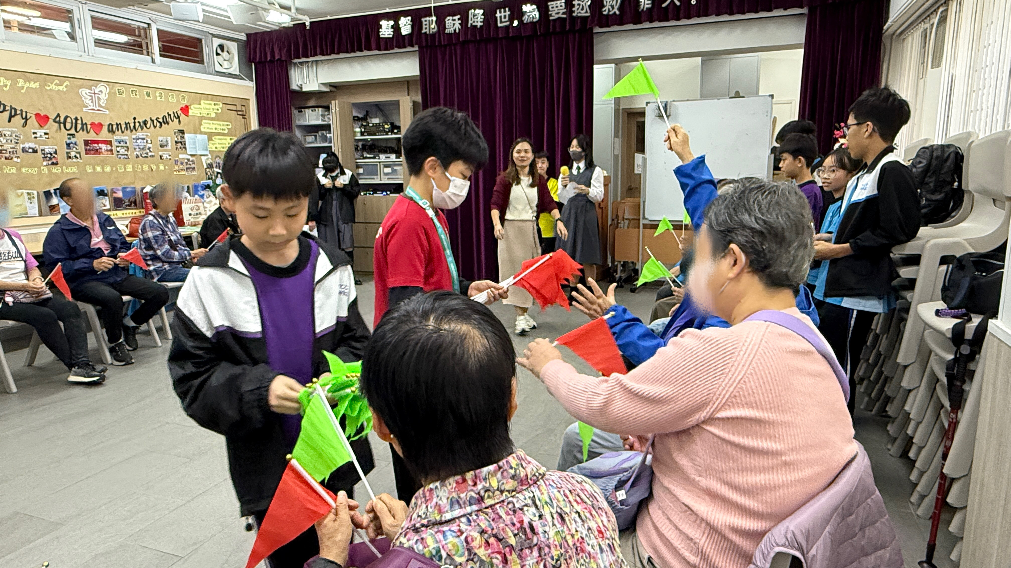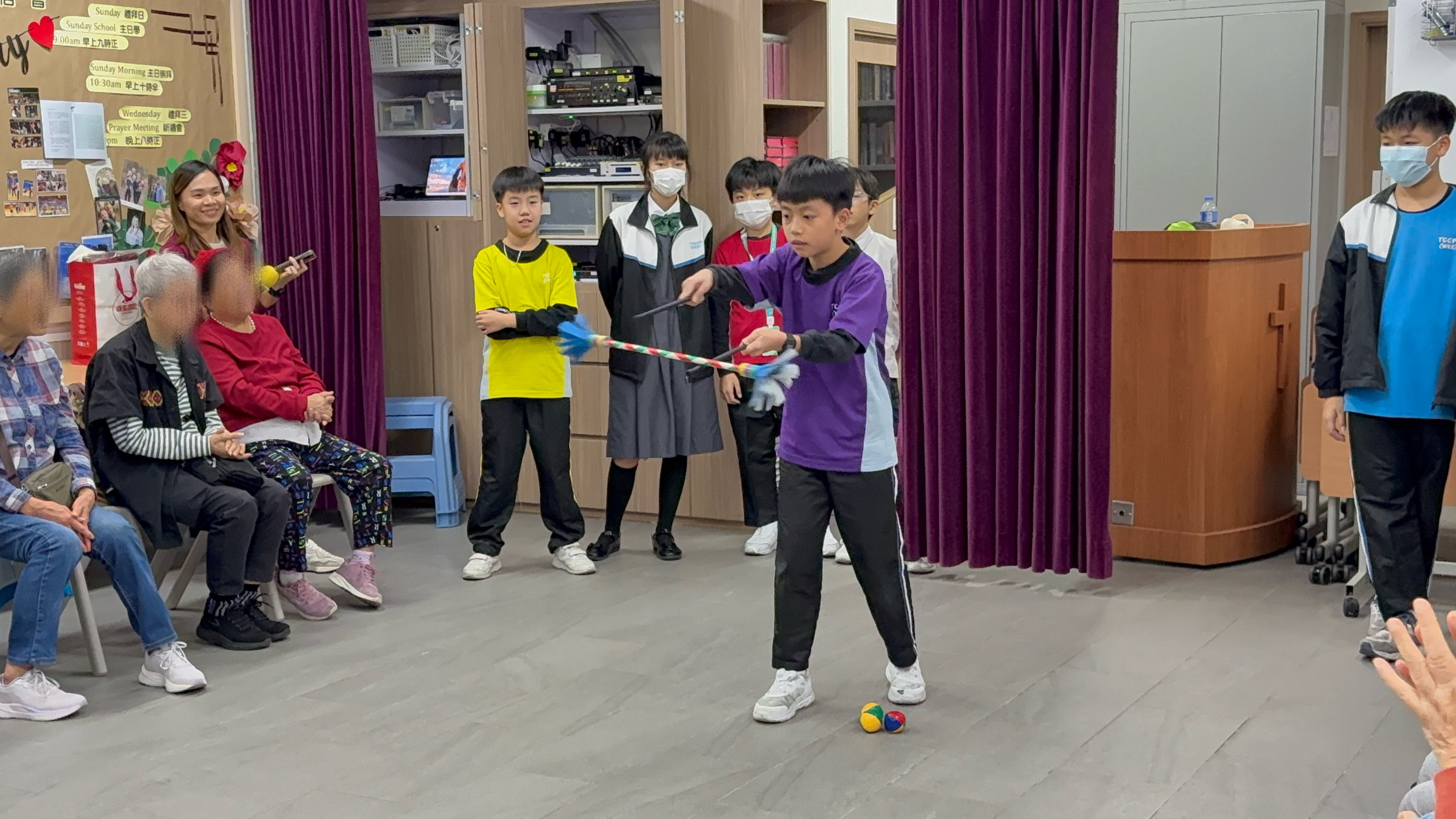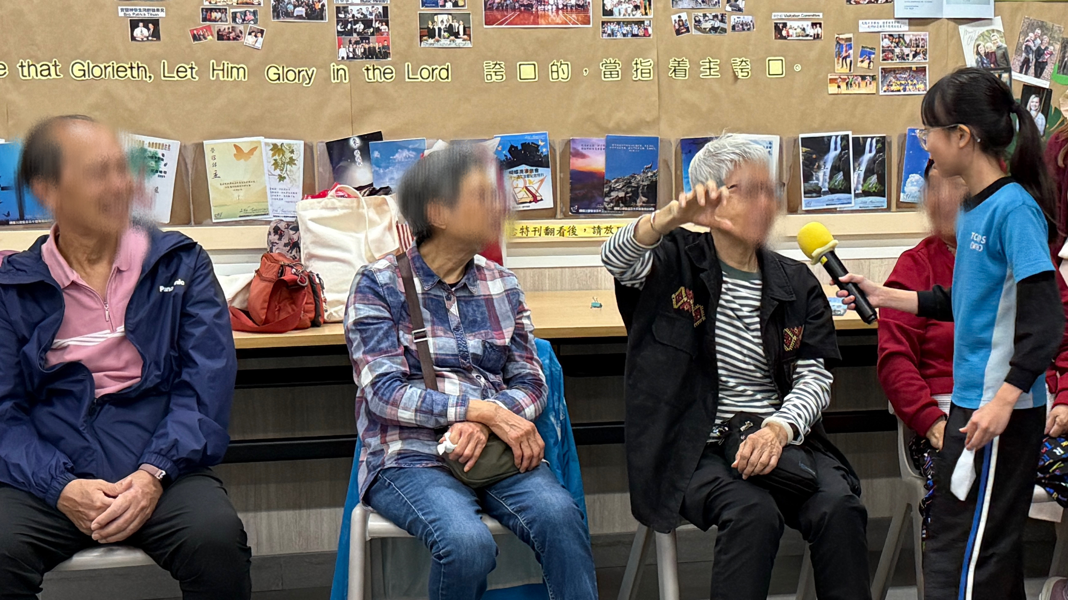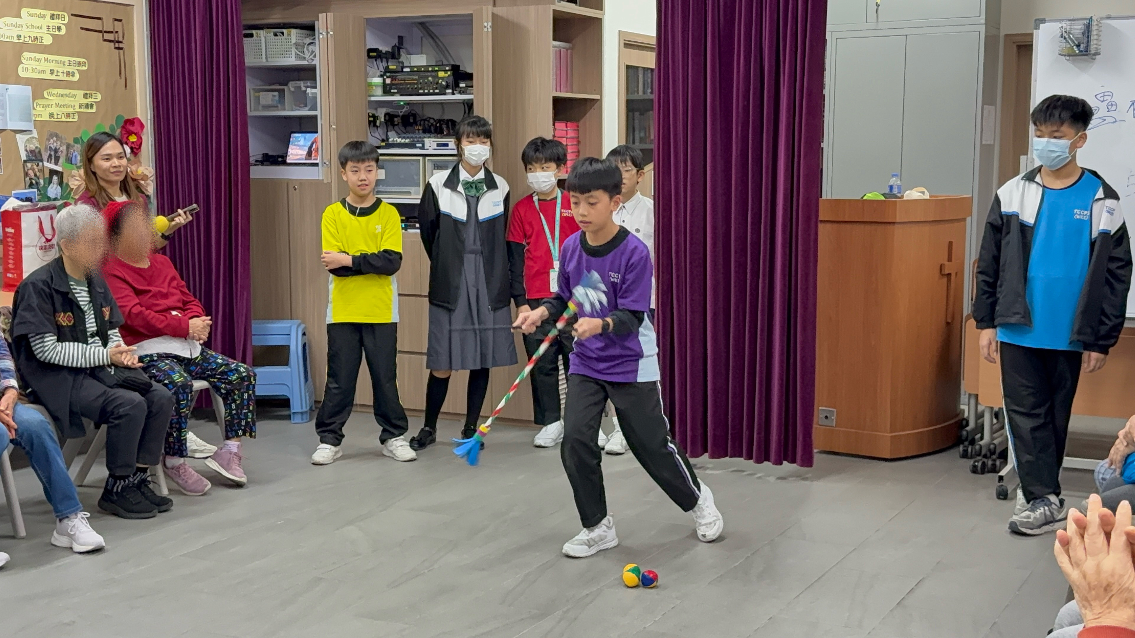 六年級學生前往蝴蝶灣浸信會長者中心與公公婆婆玩遊戲及作出表演,為公公婆婆帶來不少的歡樂;另外,同學在這次的探訪活動中收到公公婆婆親手編織的頸巾,感覺份外溫暖。