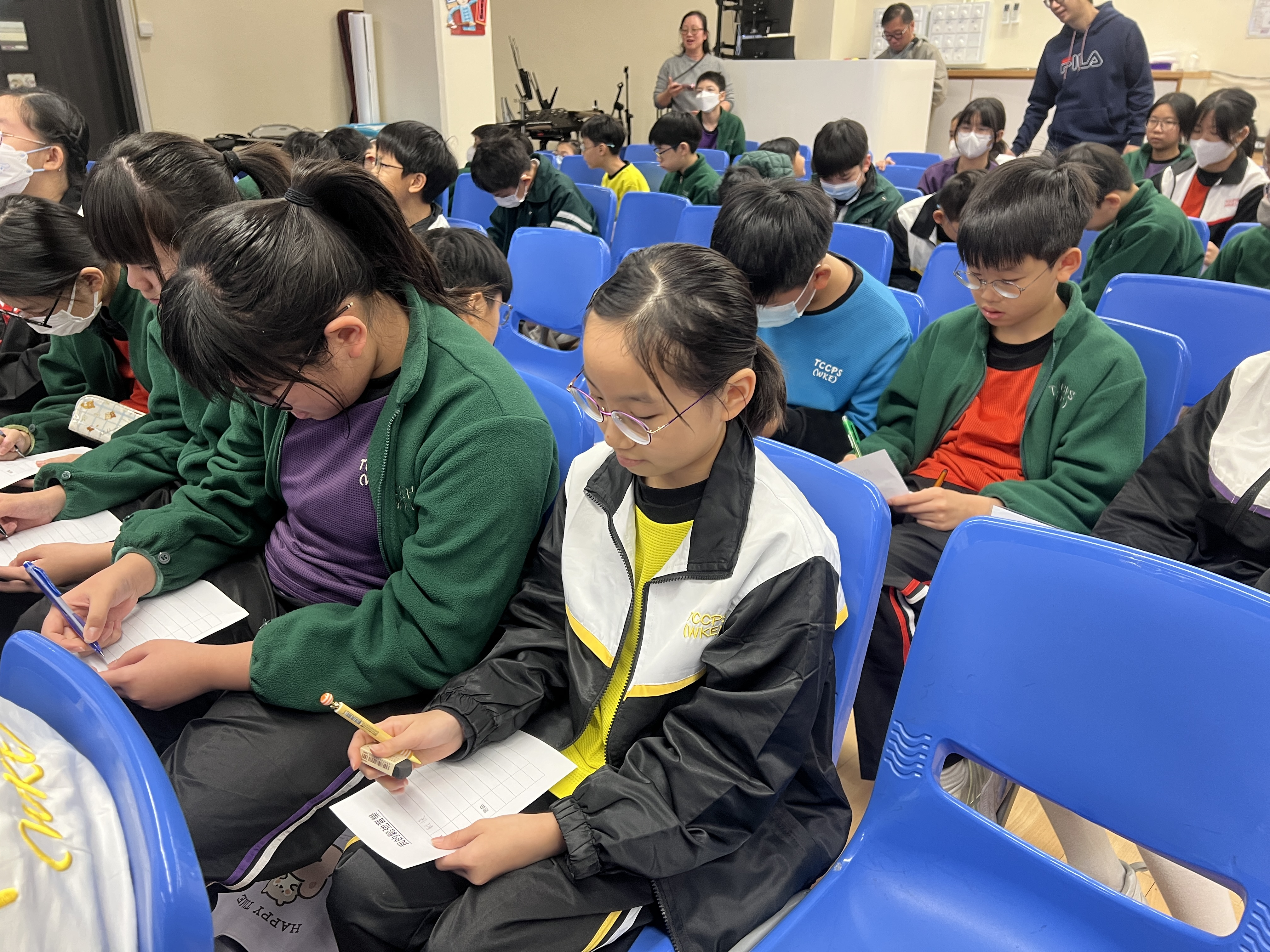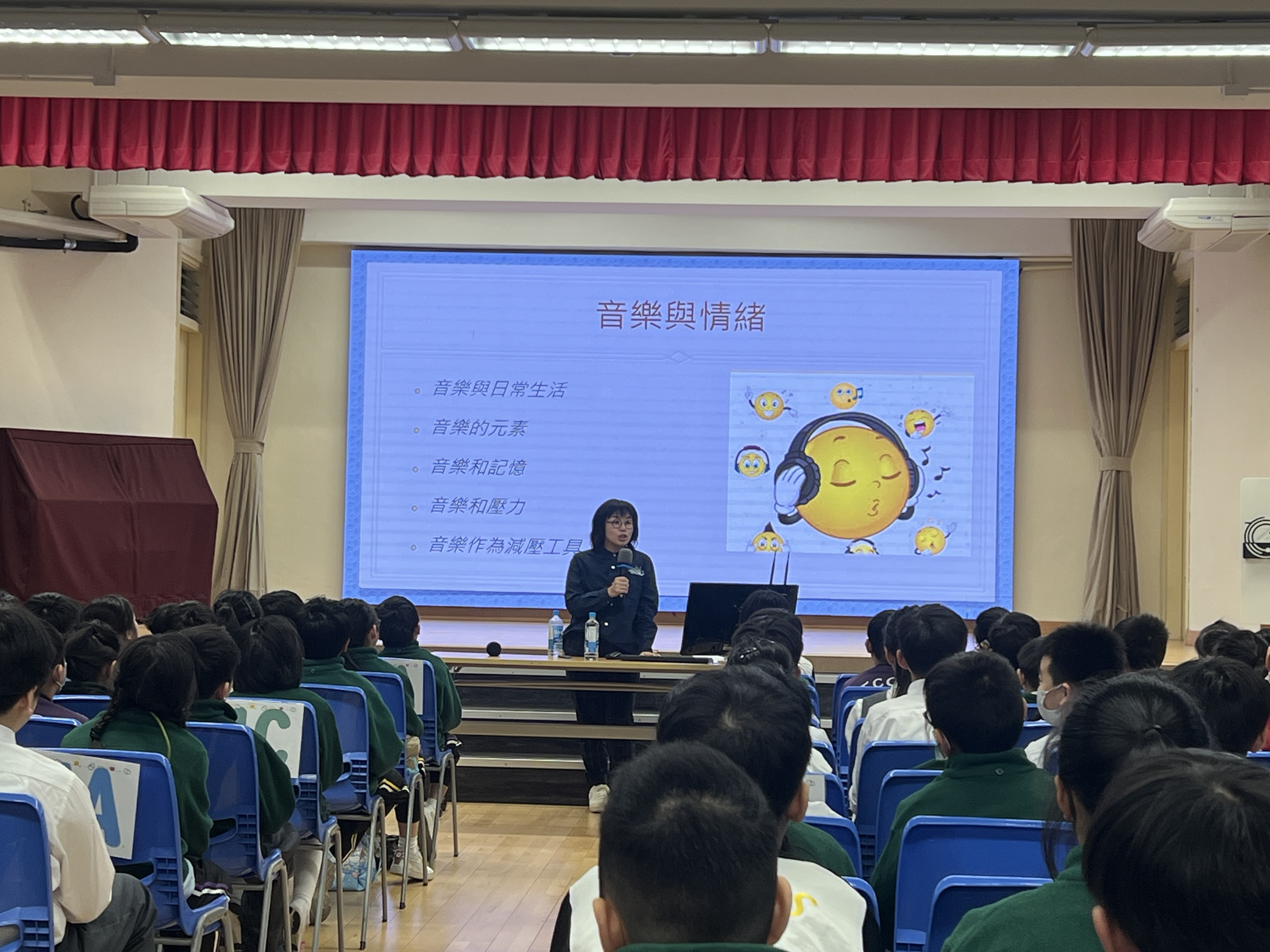 本次活動邀請了音樂治療師李海寧小姐解構音樂和情緒之間的關係,以聲音導航,引領四至六年級學生進入身心放鬆的狀態。