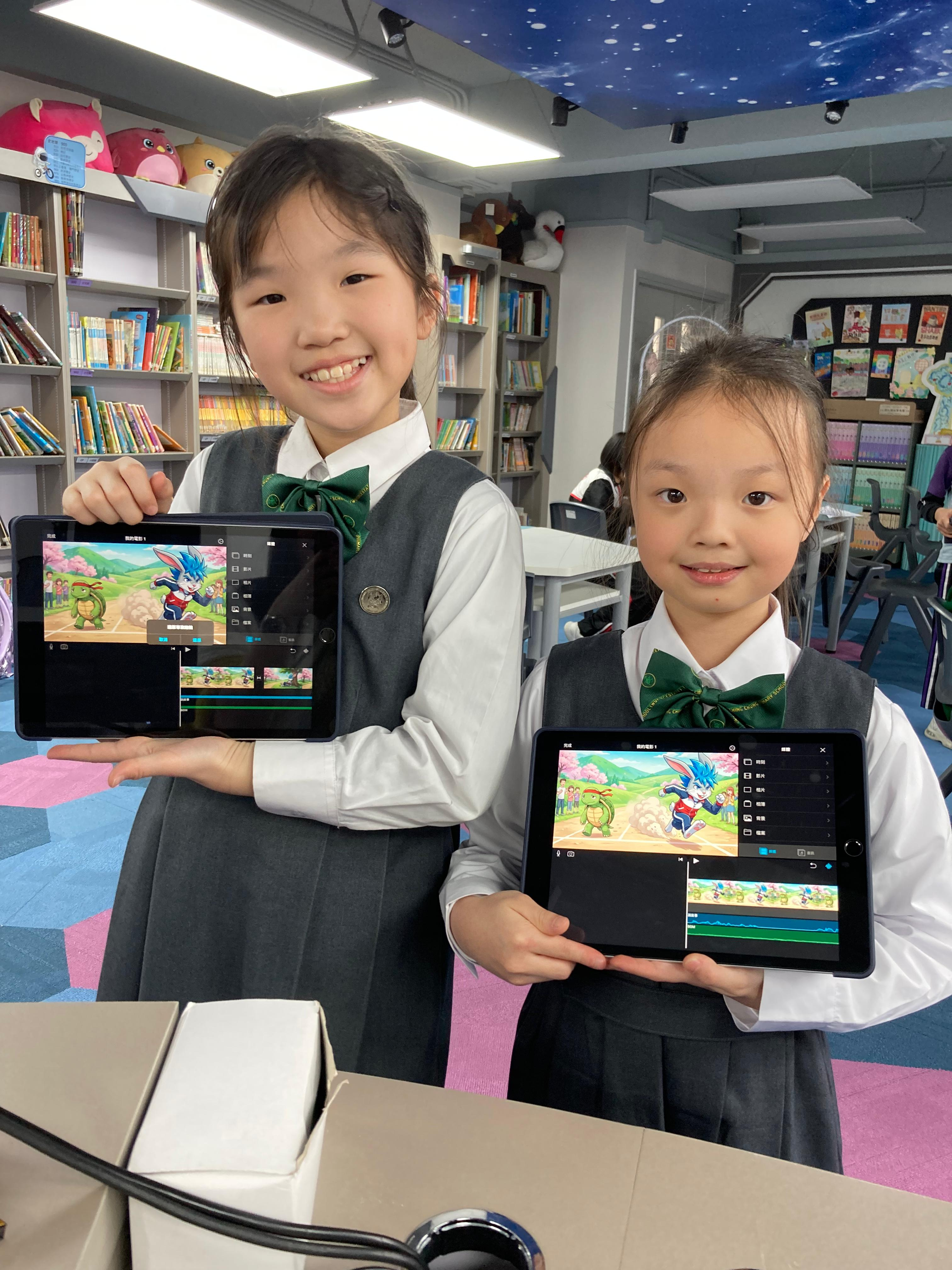行政長官2025年施政報告在優質教育基金預留20億元支援中小學數字教育,包括訂定「人工智能素養」學習架構、將AI教育納入核心課程等。有見及此,圖書館本年度為小三至小六學生舉辦「AI中華文化有聲繪本工作坊」。在這個工作坊中,學生們首先閱讀了多本有關中華文化的圖書,深入了解了豐富的文化背景與故事情節。接下來,他們學習如何利用AI技術生成圖片,將自己的創意轉化為視覺作品。隨後,學生們根據自己喜愛的故事主題進行創作,撰寫出獨特的故事內容。為了提升作品的表現力,學生們還自行錄音,並學習剪輯,最終成功製作出精美的中華文化有聲繪本。這次活動不僅激發了學生的創意,還讓他們在學習中體驗到結合傳統與科技的樂趣!