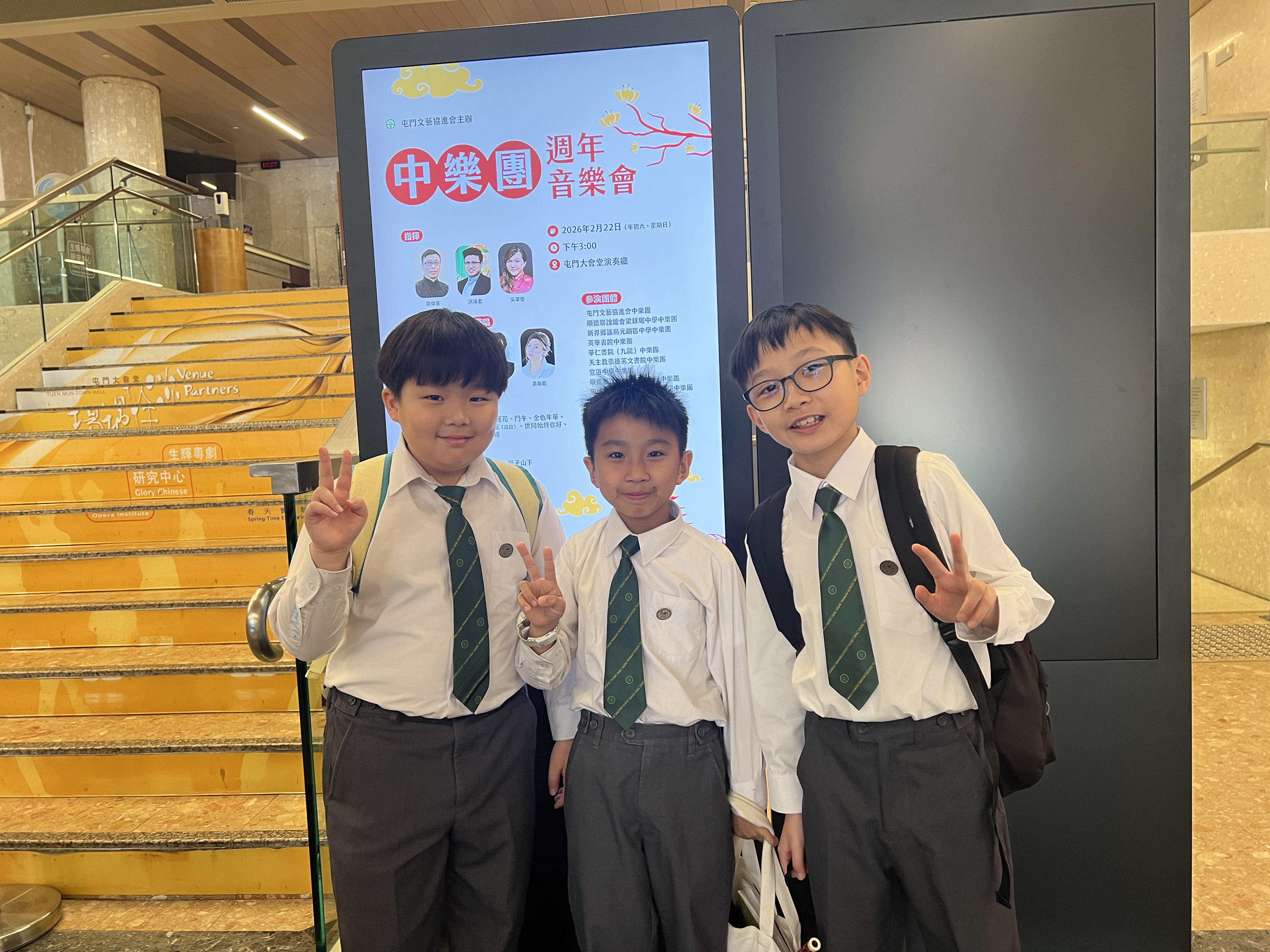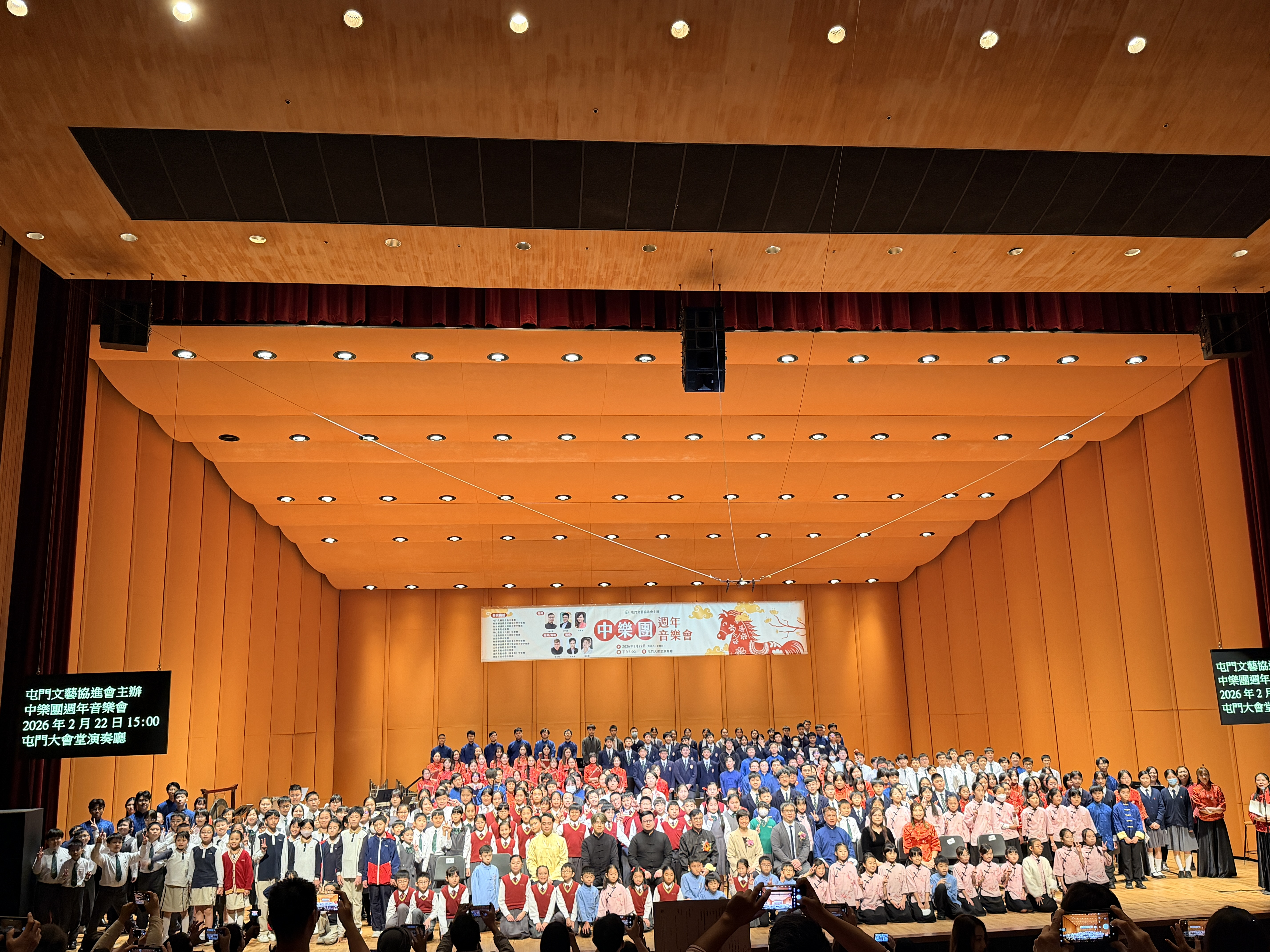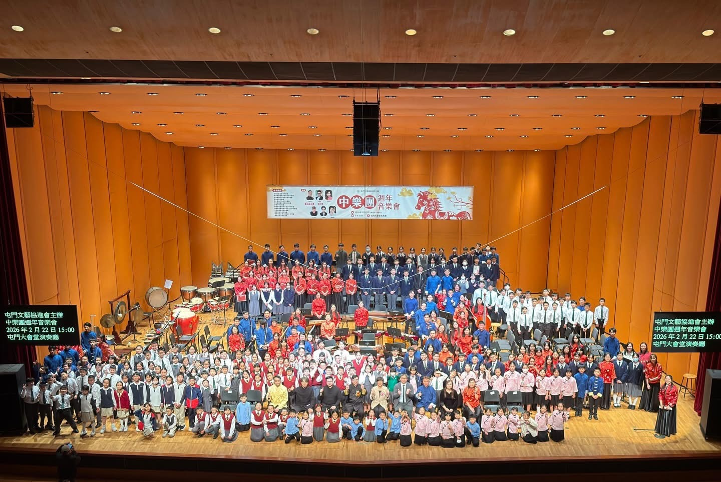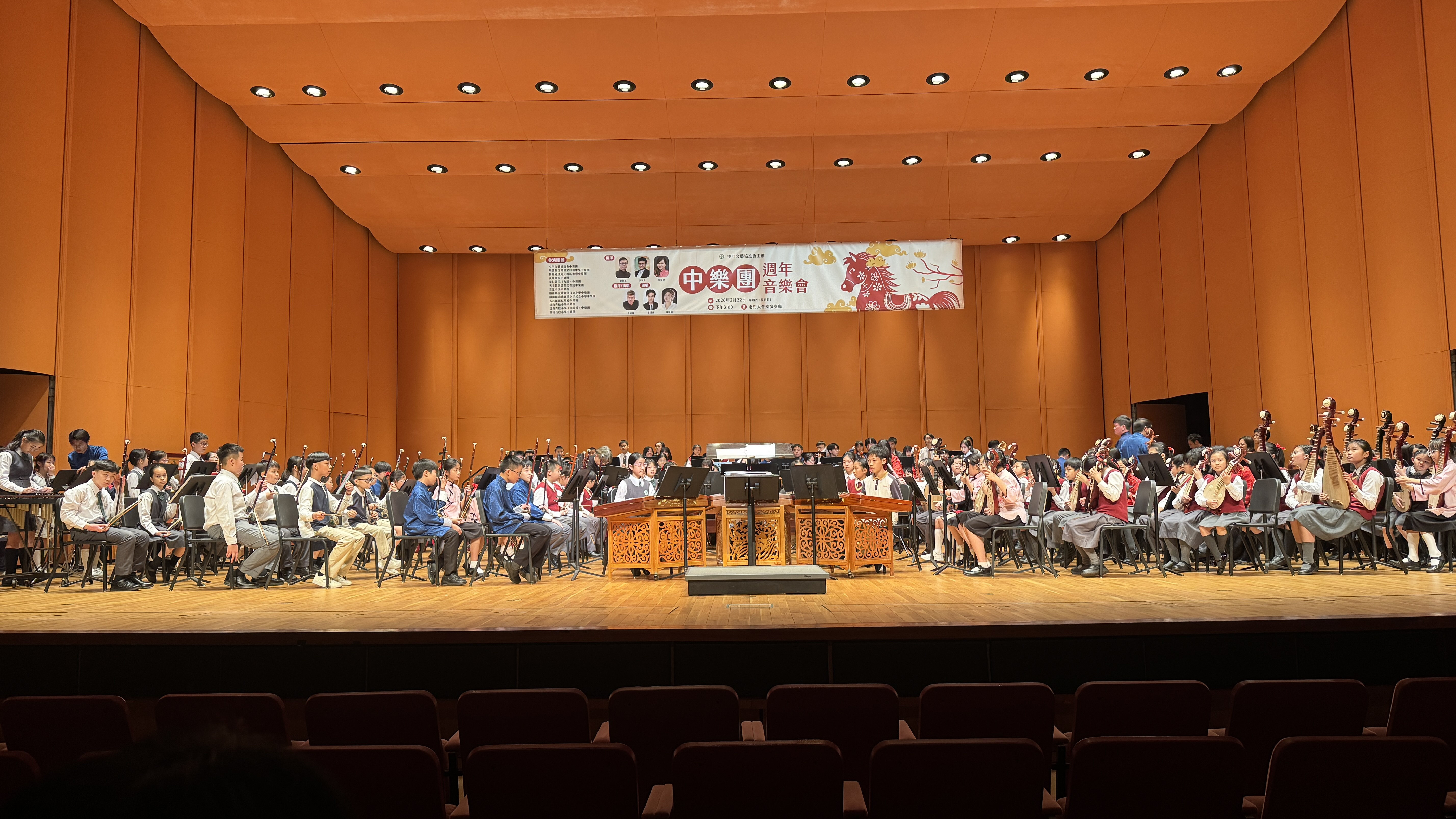 本校中樂團於2月22日參加由屯門文藝協進會主辦的《中樂團週年音樂會》。活動在屯門大會堂演奏廳舉行,雲集區內外多間中小學樂團同台演出。團員藉此難得機會,與友校學生互相觀摩,累積舞台經驗,獲益良多。