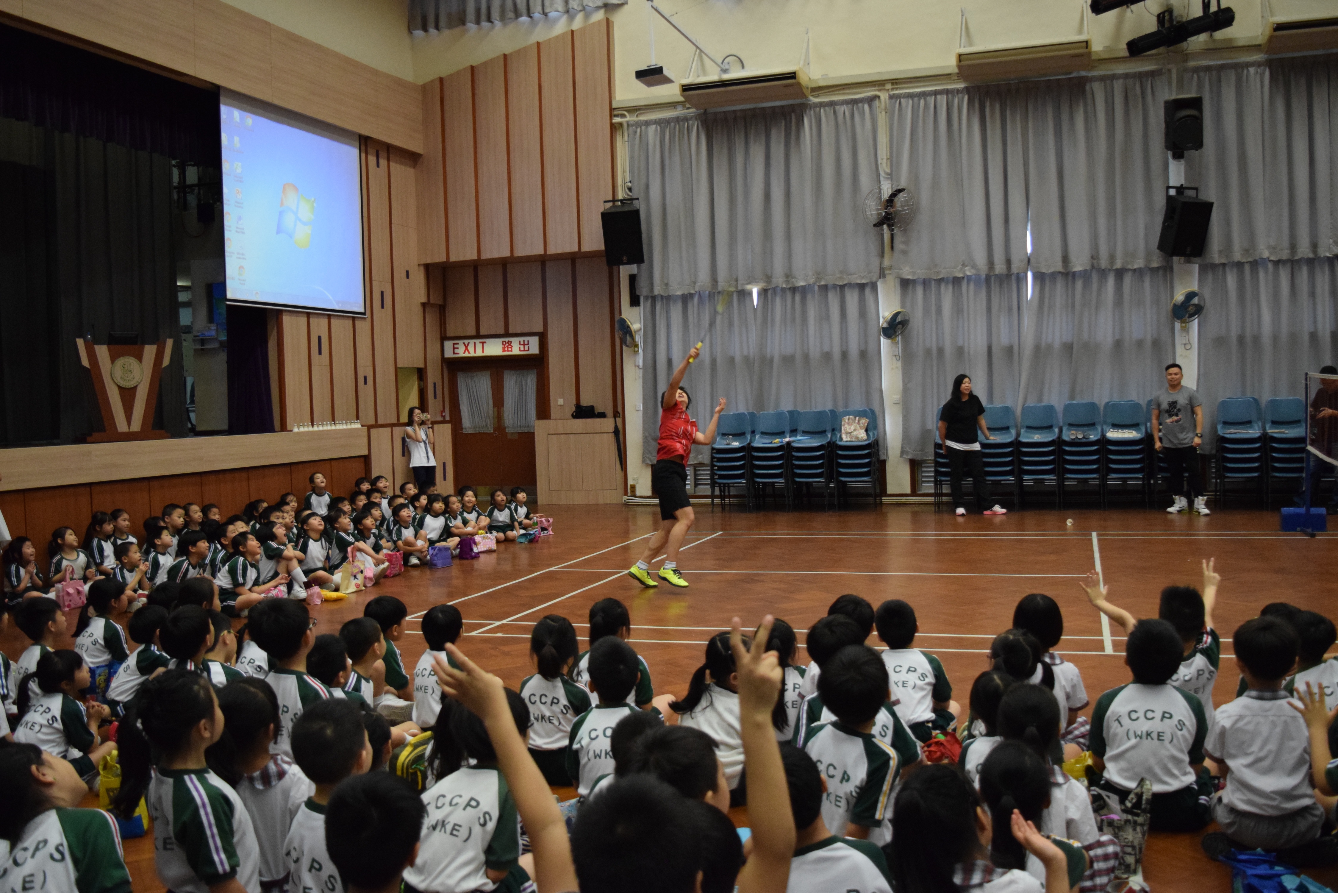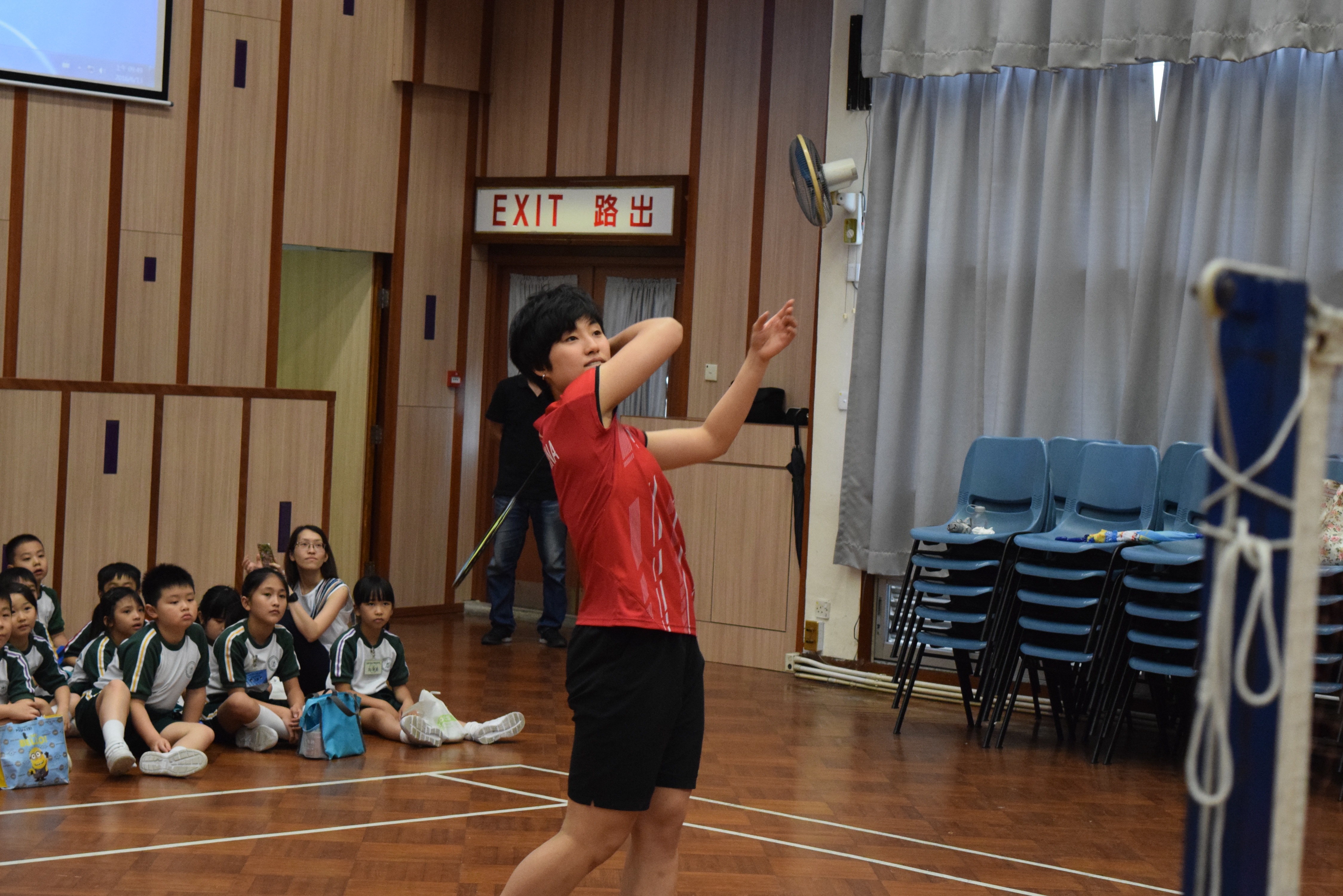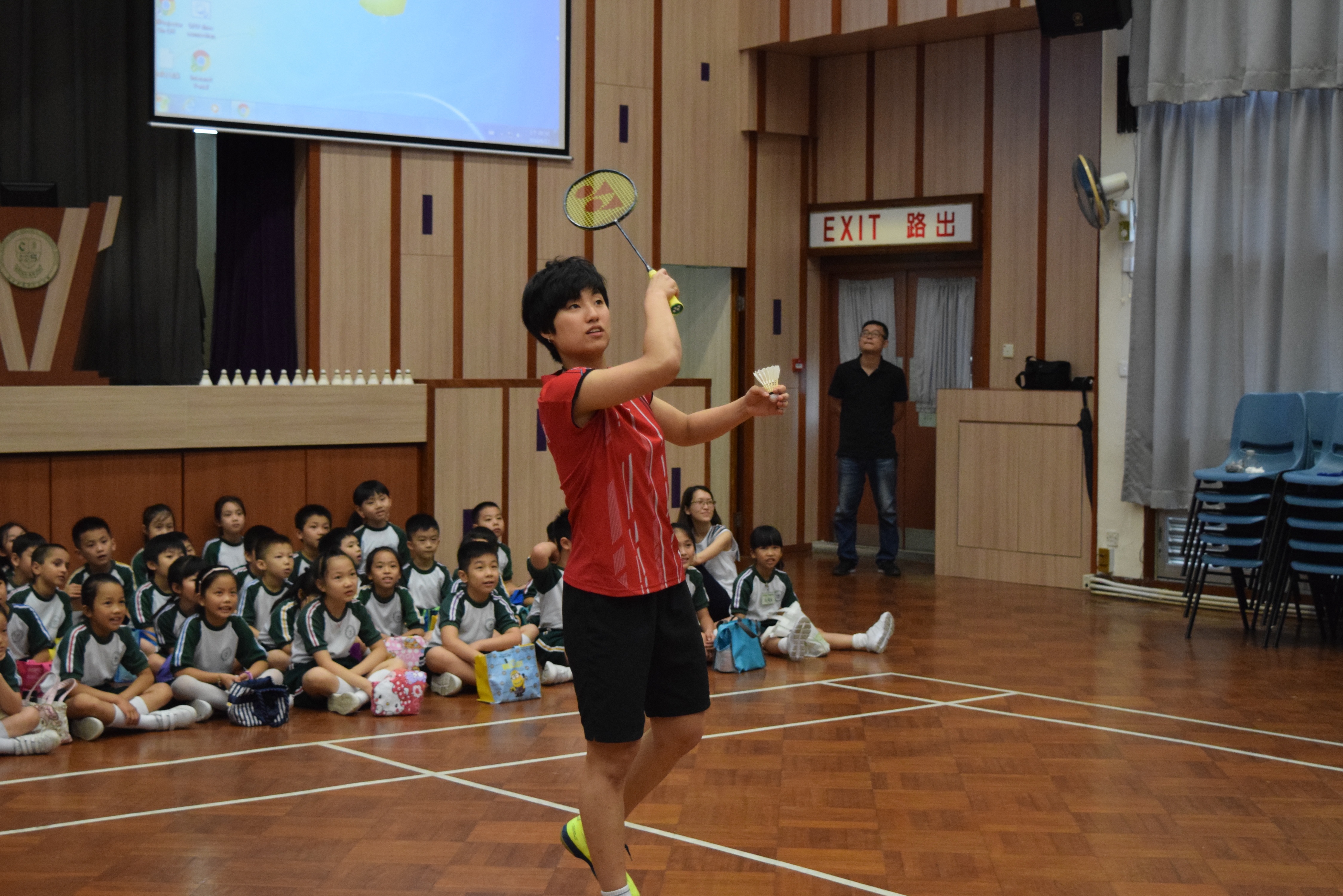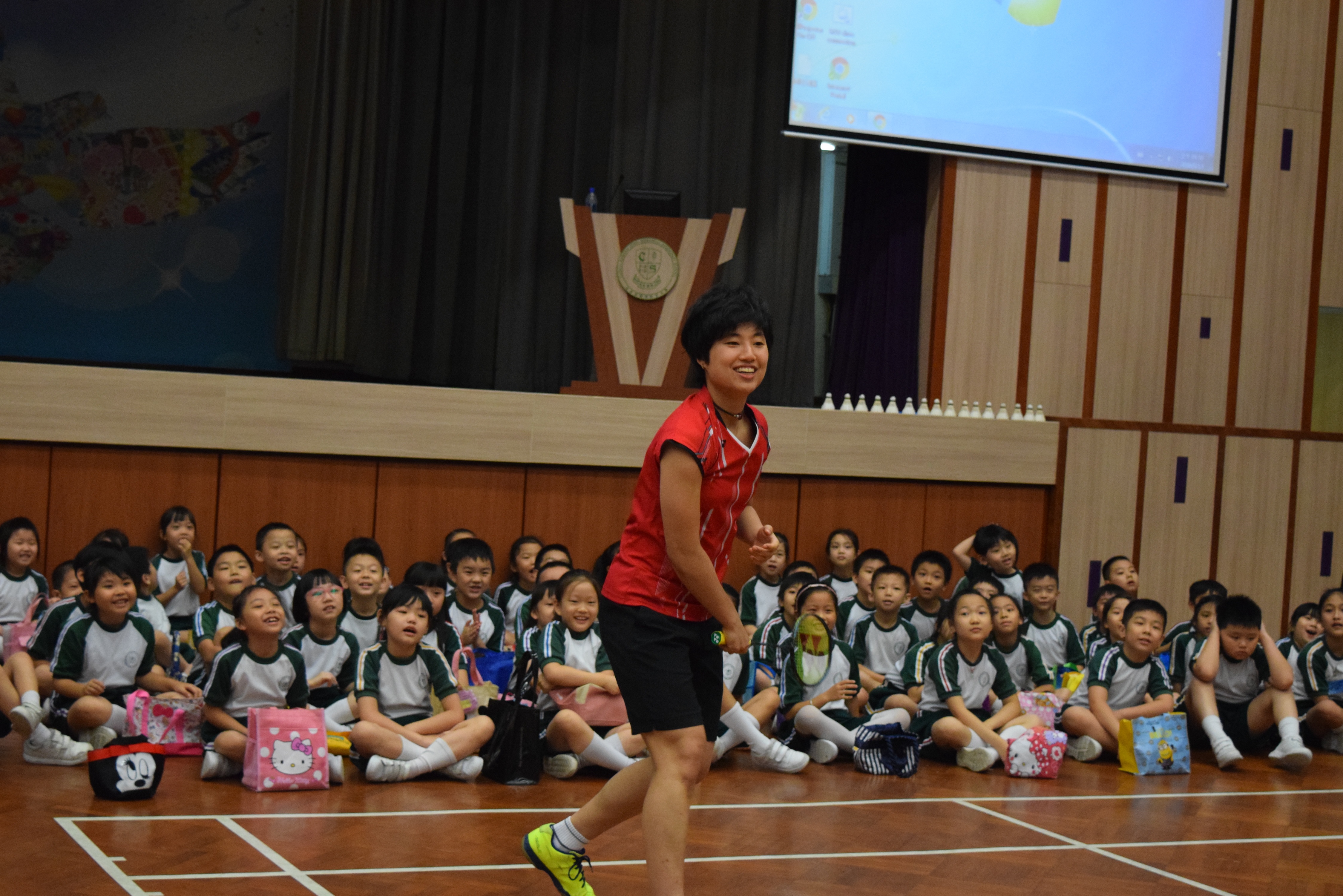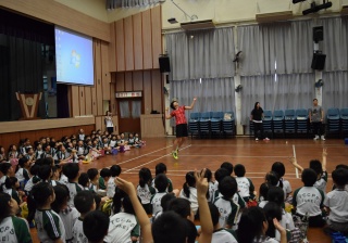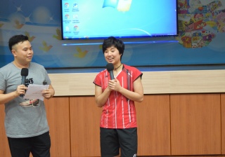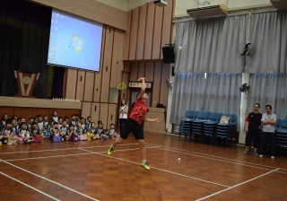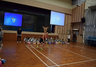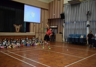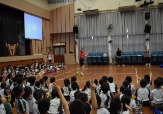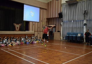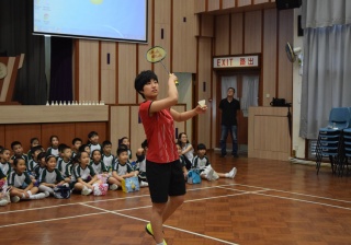 活動內容:1.東亞運羽毛球女單金牌得主葉姵延小姐與學生分享運動員感受; 2.葉姵延小姐與羽毛球教練向學生示範羽毛球基本技巧; 3.邀請本校老師及學生與葉姵延小姐作友誼比賽。