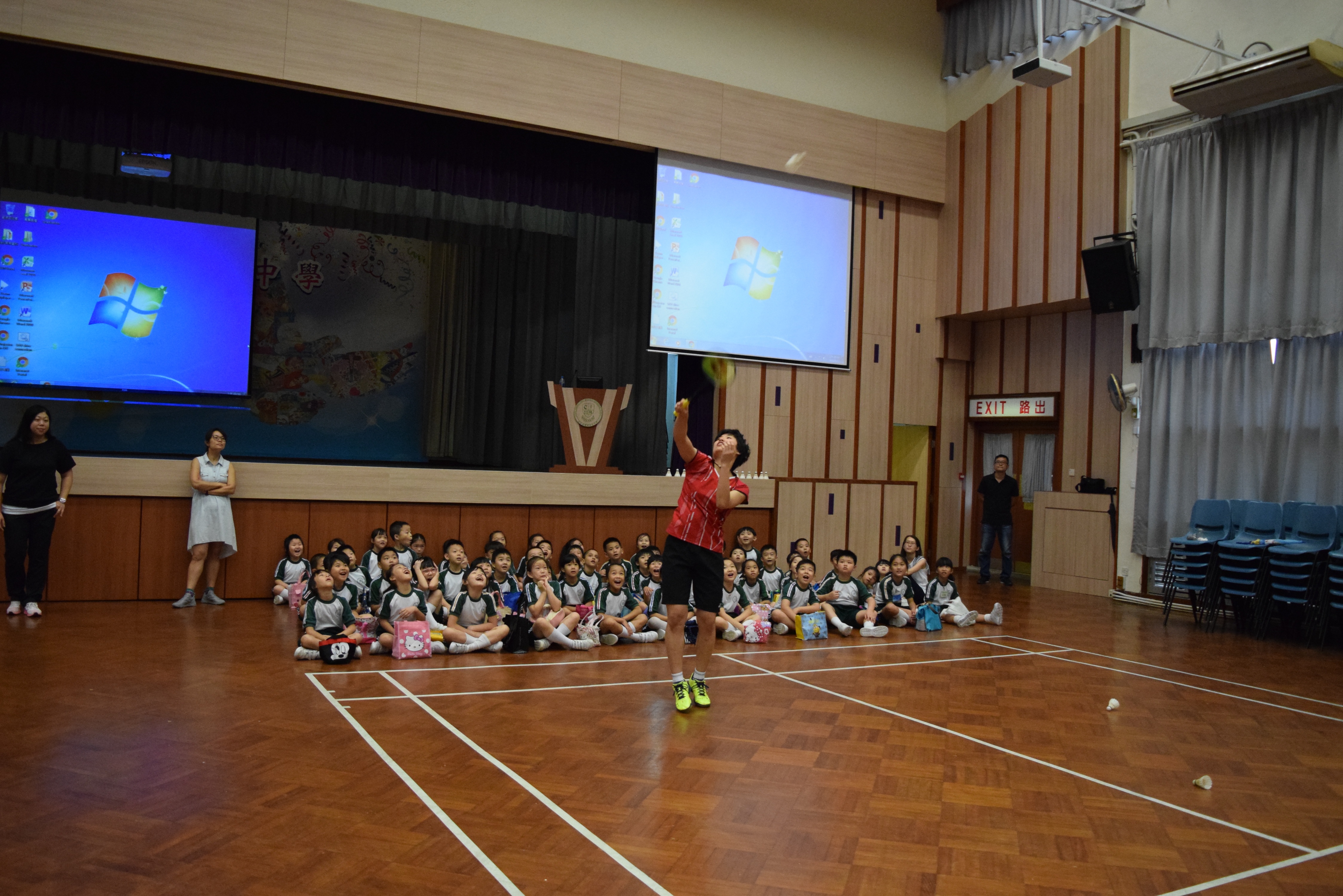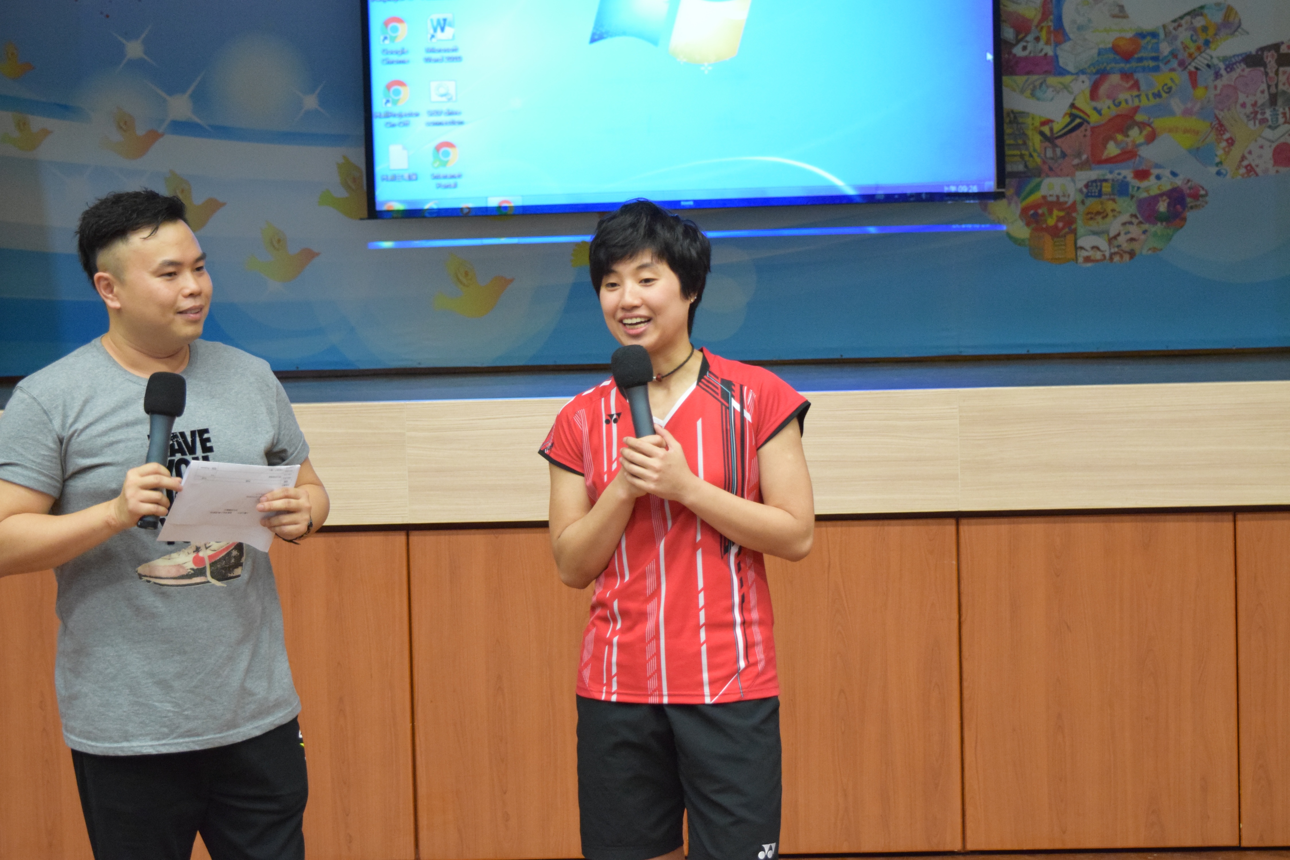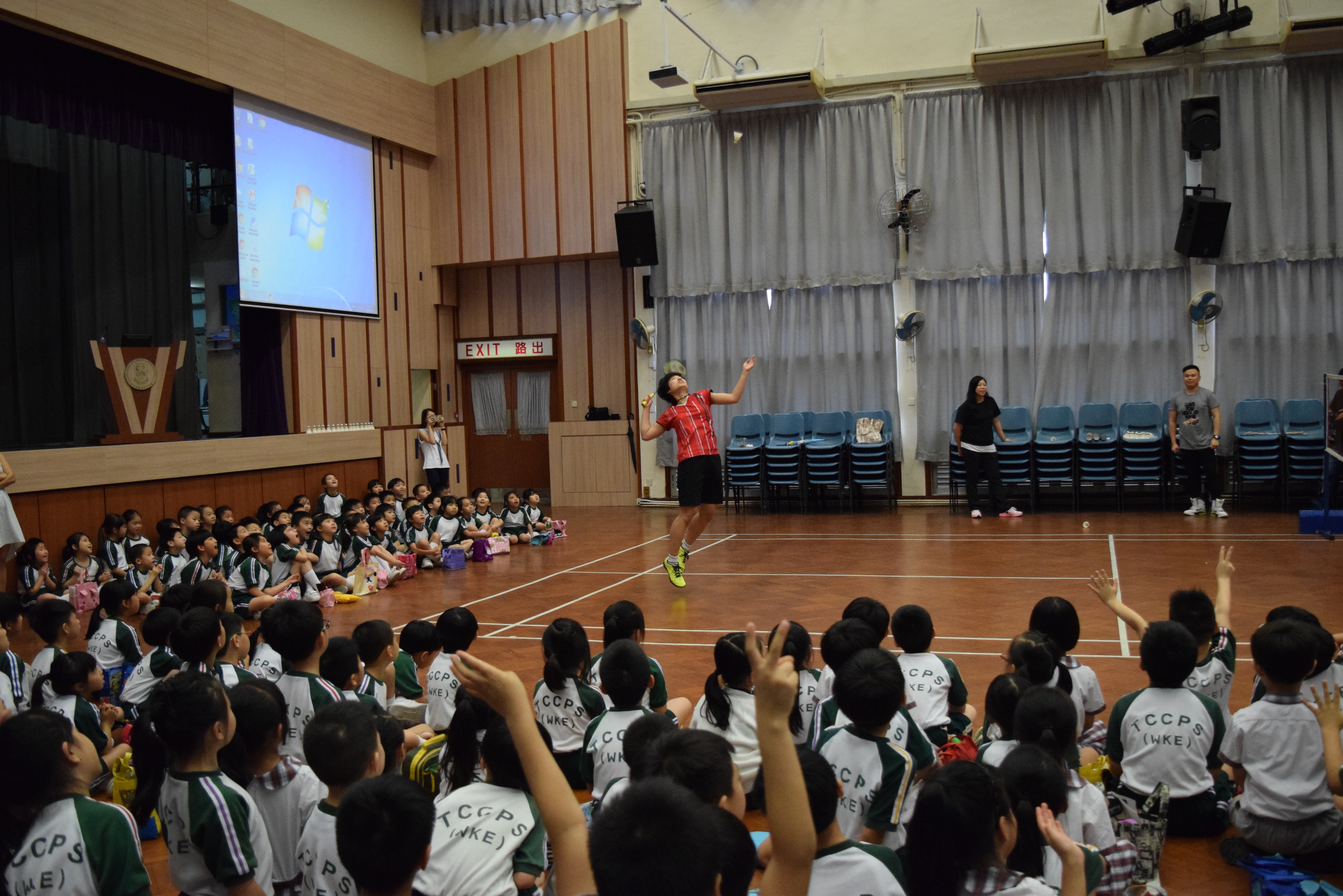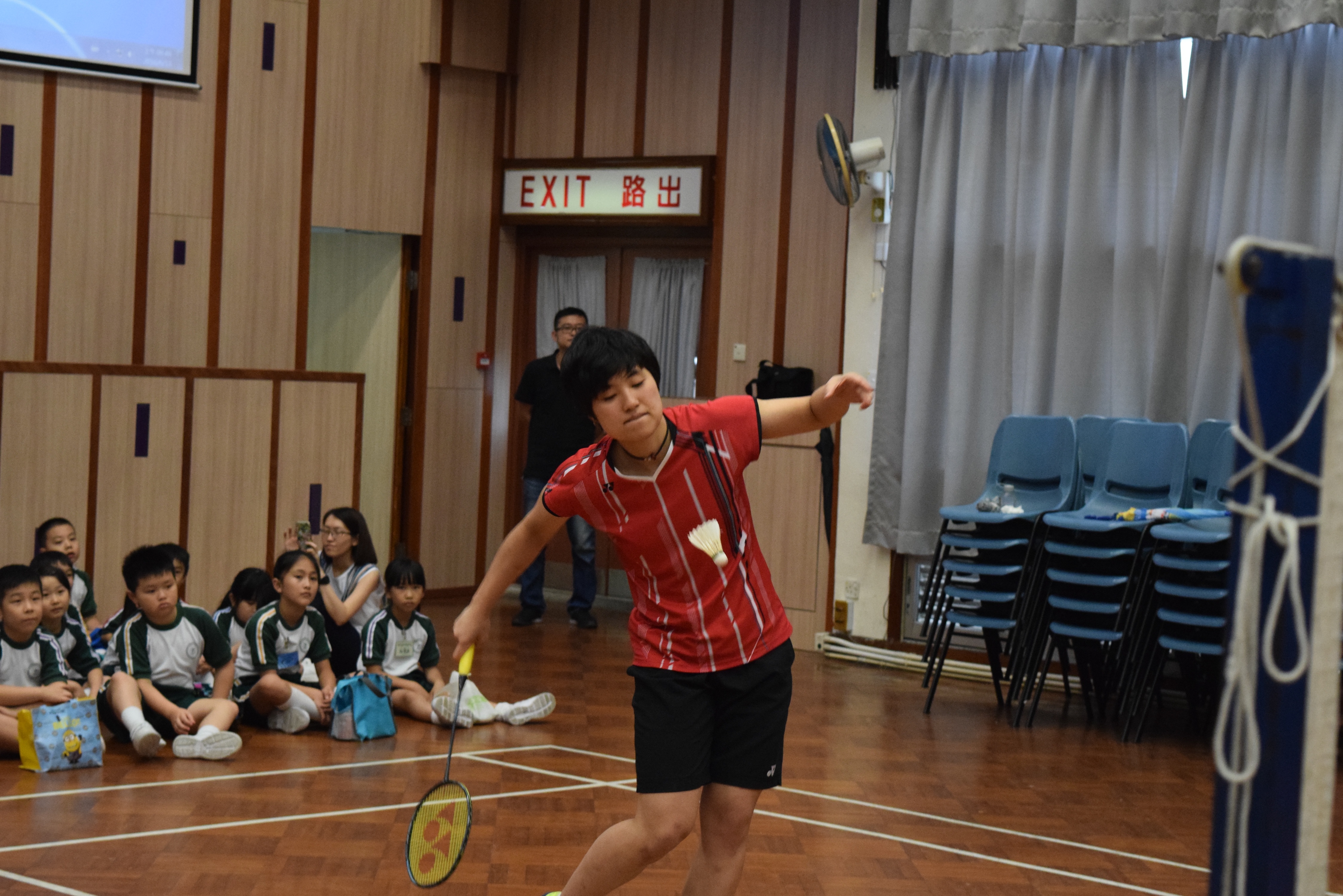 活動內容:1.東亞運羽毛球女單金牌得主葉姵延小姐與學生分享運動員感受; 2.葉姵延小姐與羽毛球教練向學生示範羽毛球基本技巧; 3.邀請本校老師及學生與葉姵延小姐作友誼比賽。
