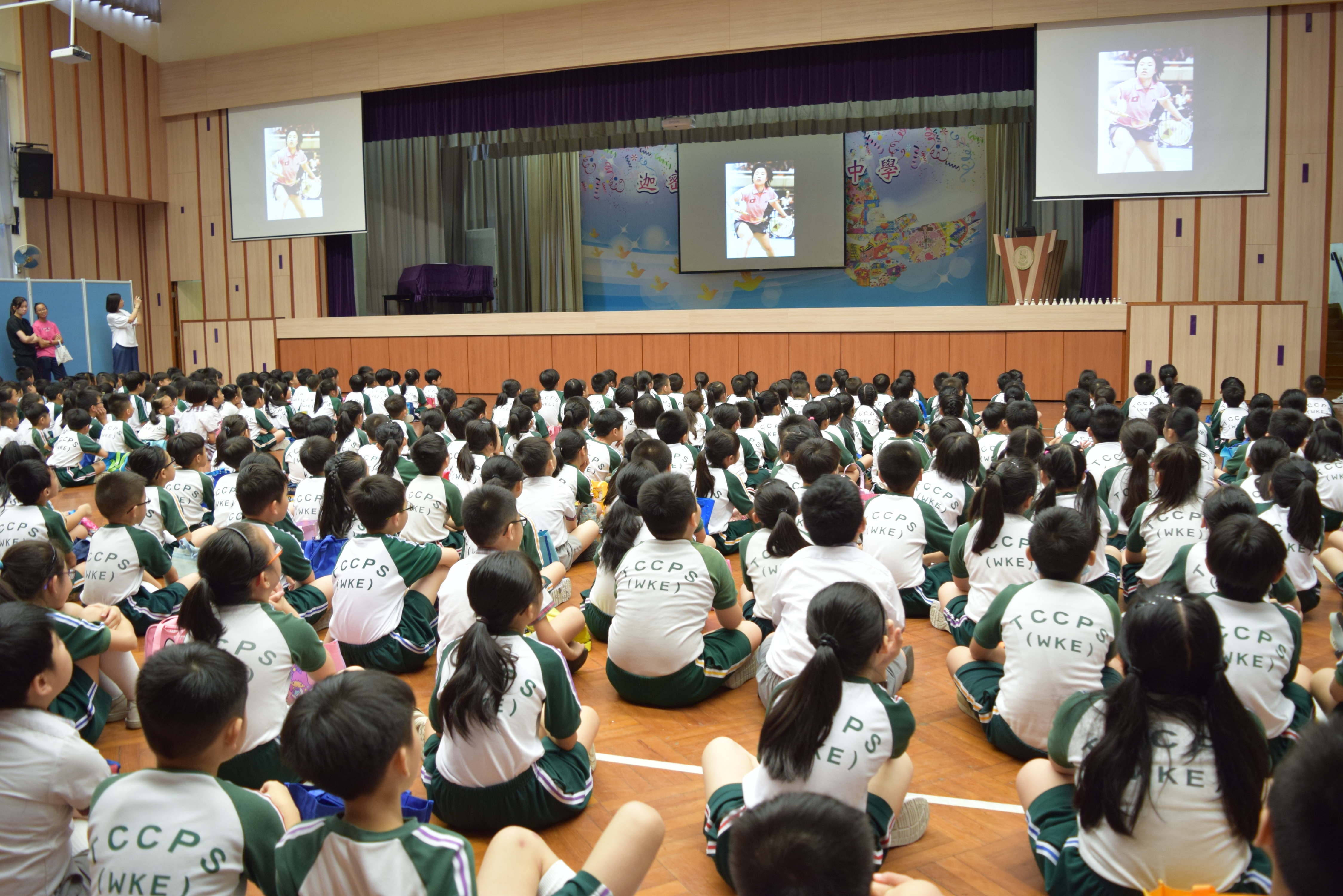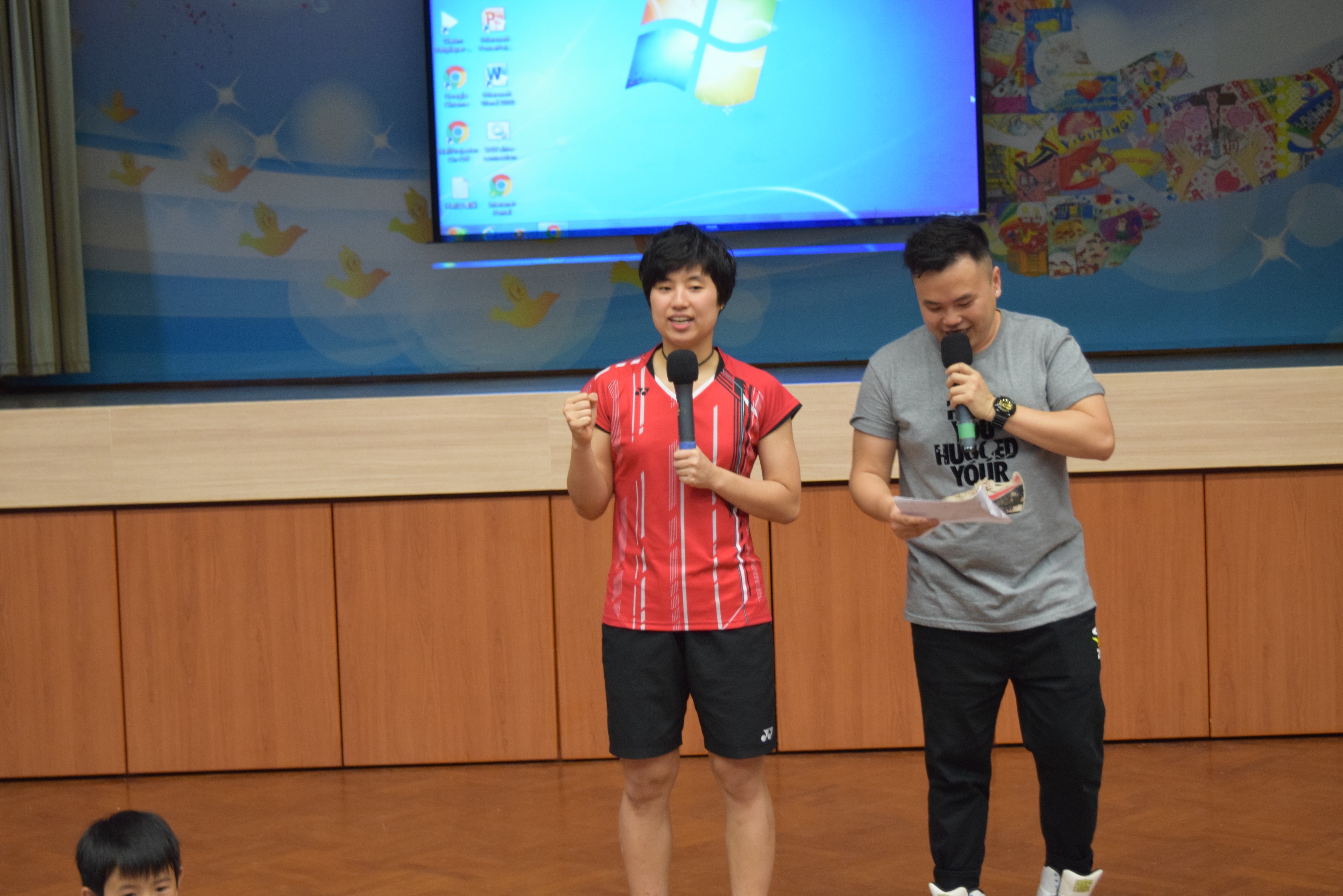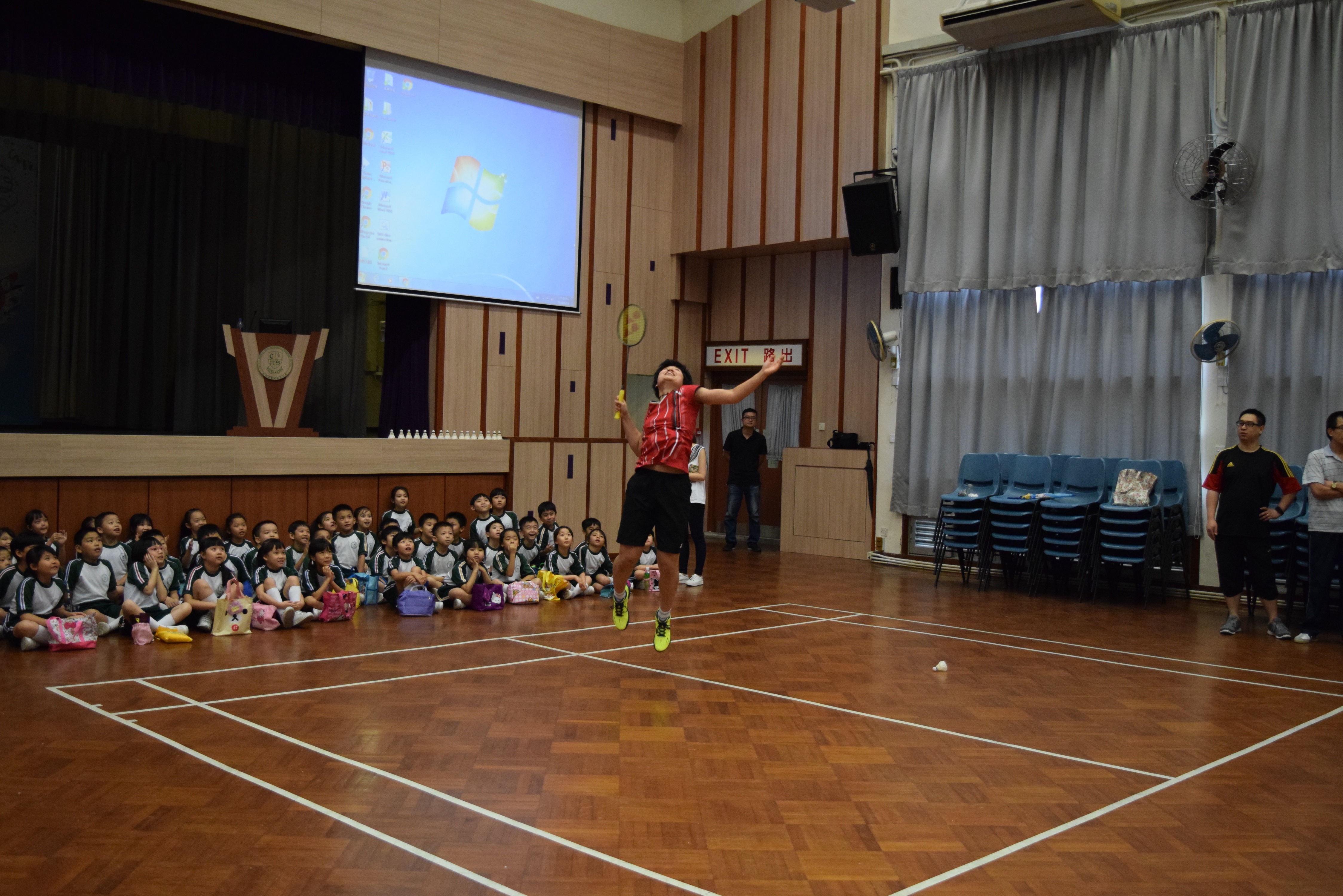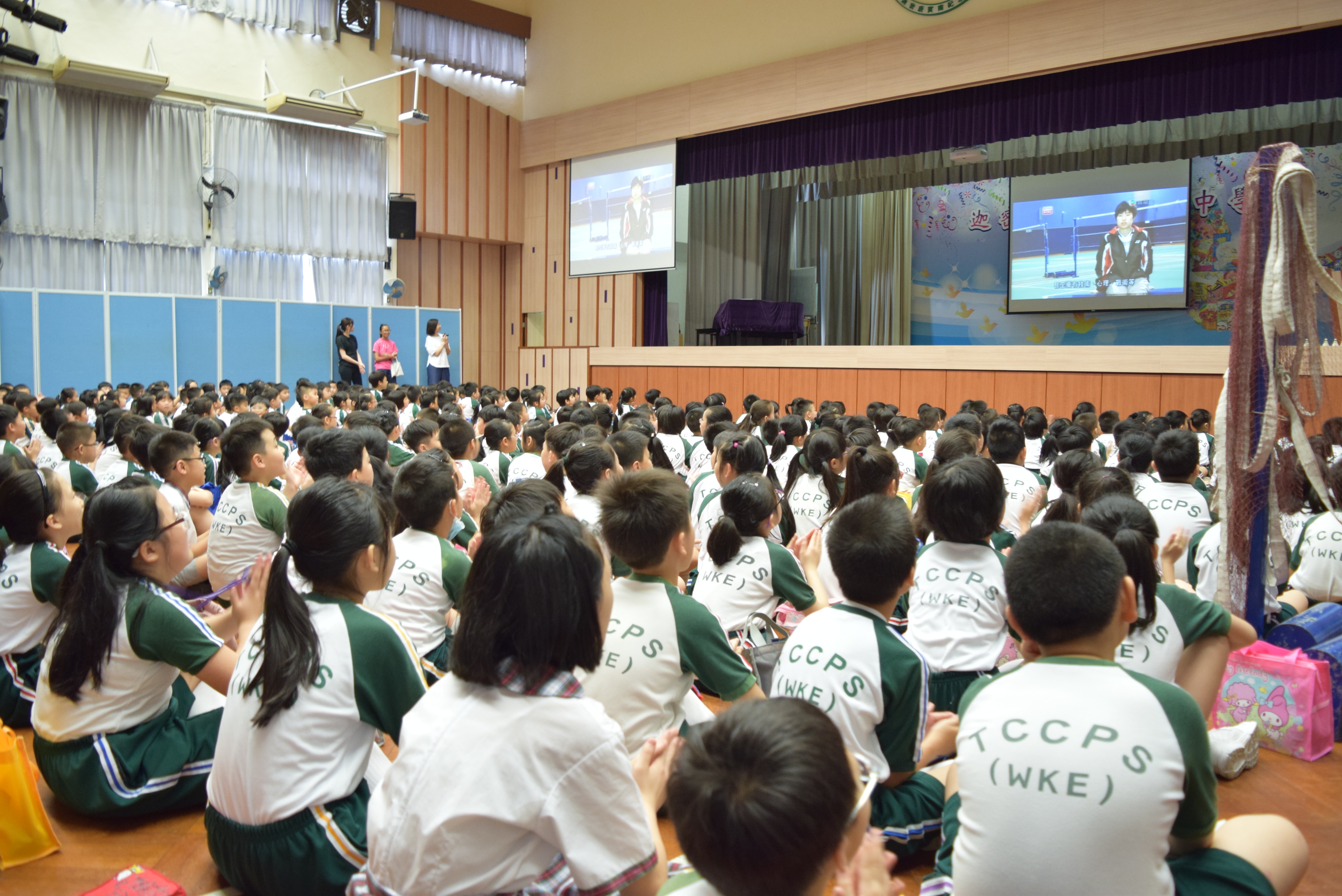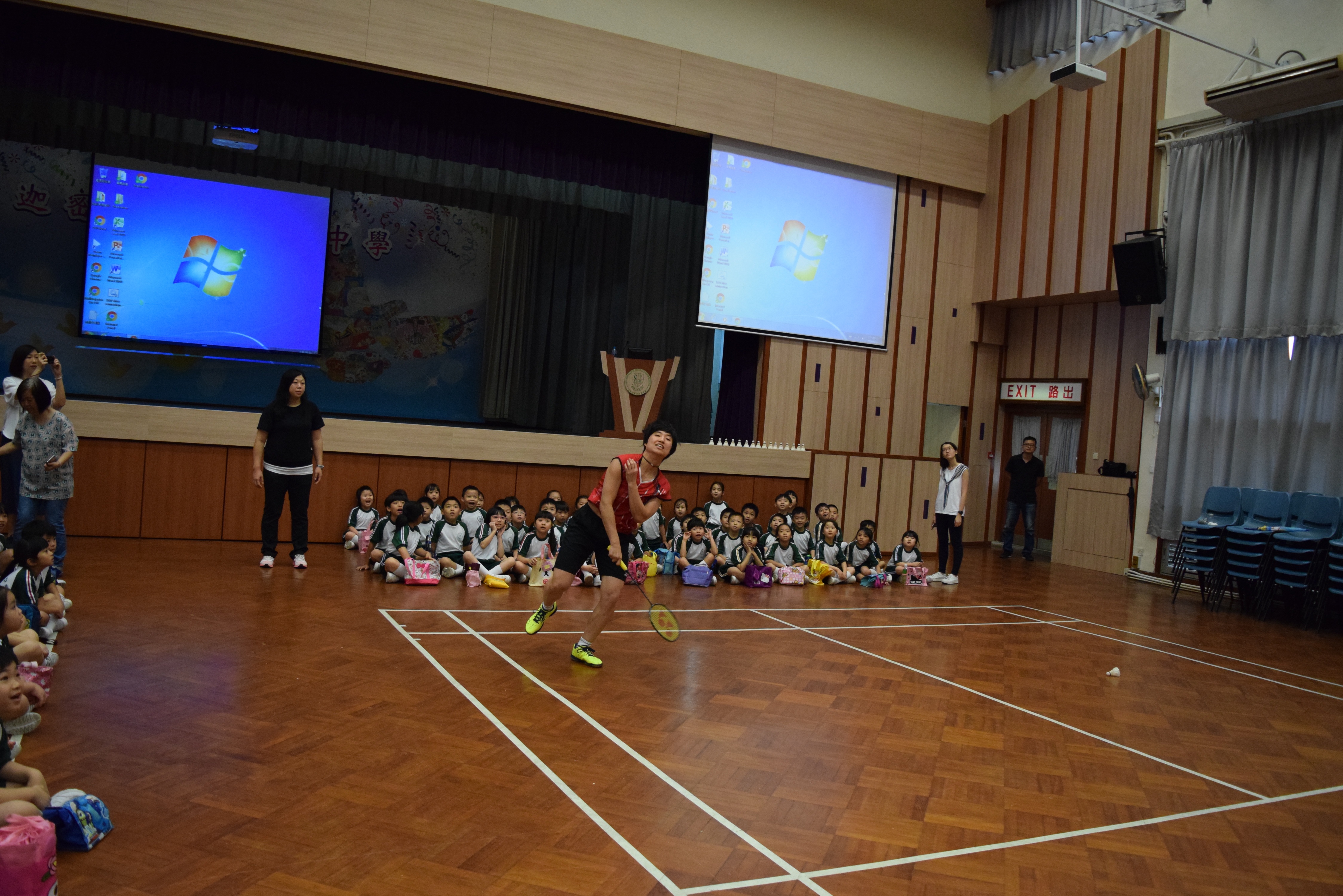 活動內容:1.東亞運羽毛球女單金牌得主葉姵延小姐與學生分享運動員感受; 2.葉姵延小姐與羽毛球教練向學生示範羽毛球基本技巧; 3.邀請本校老師及學生與葉姵延小姐作友誼比賽。