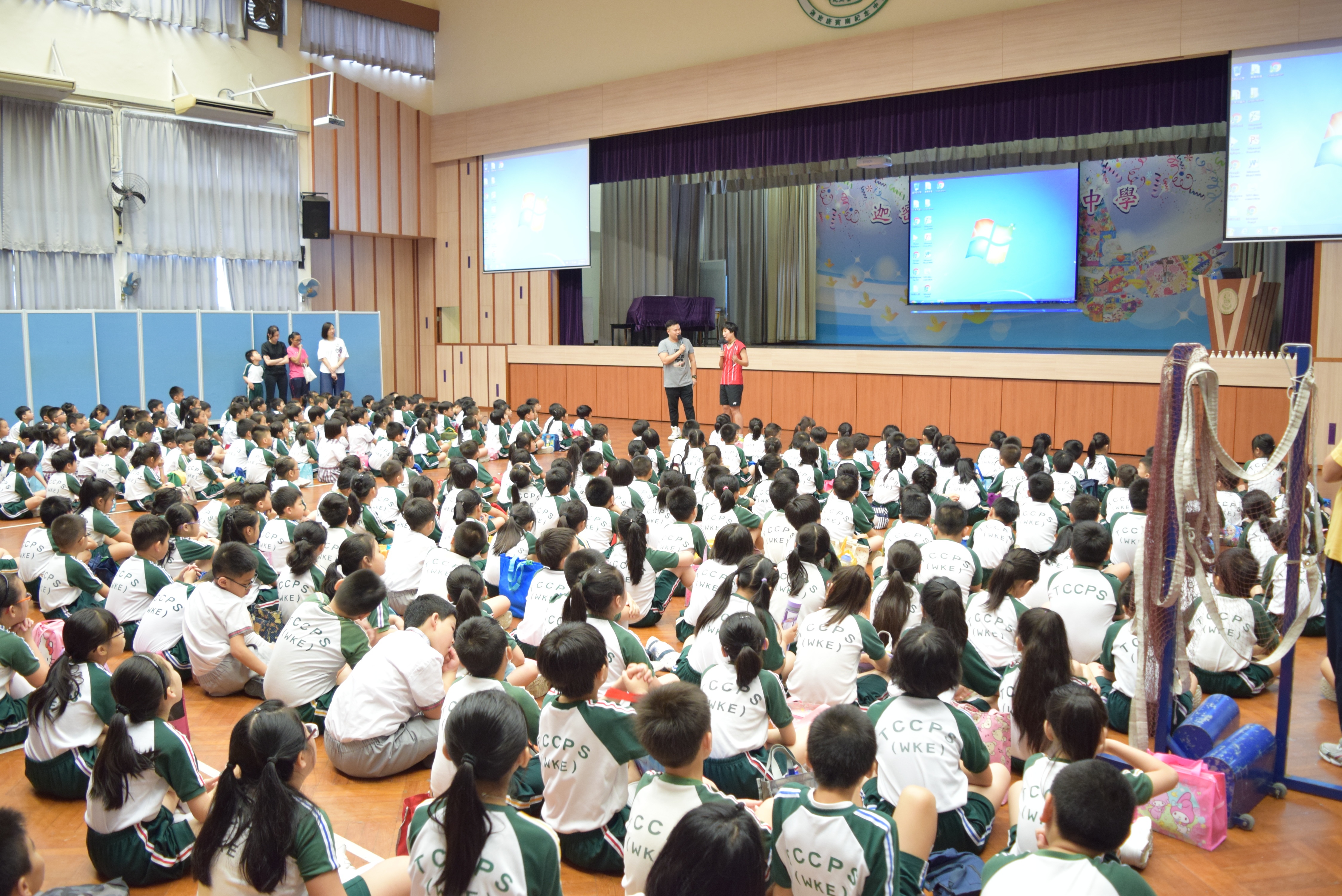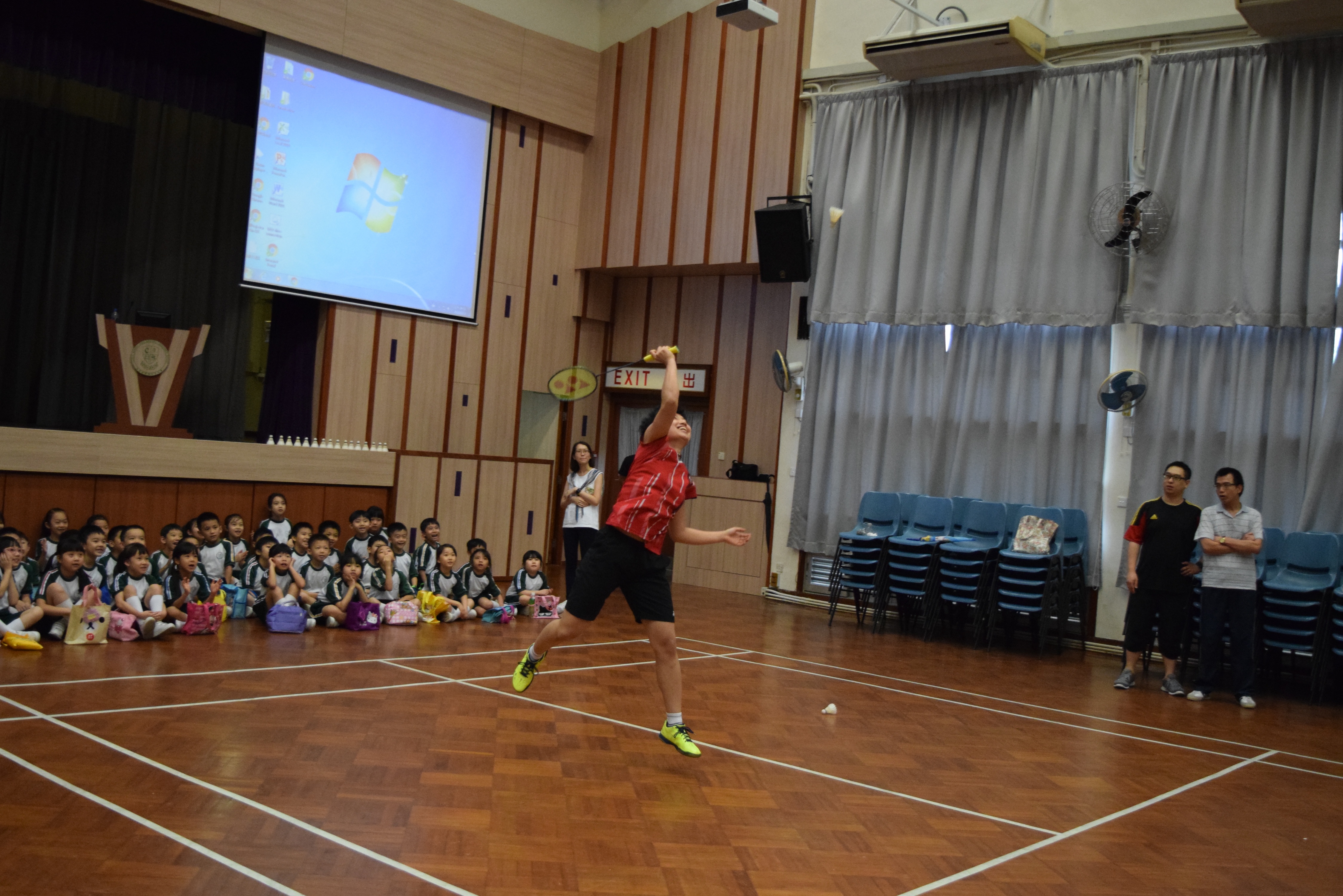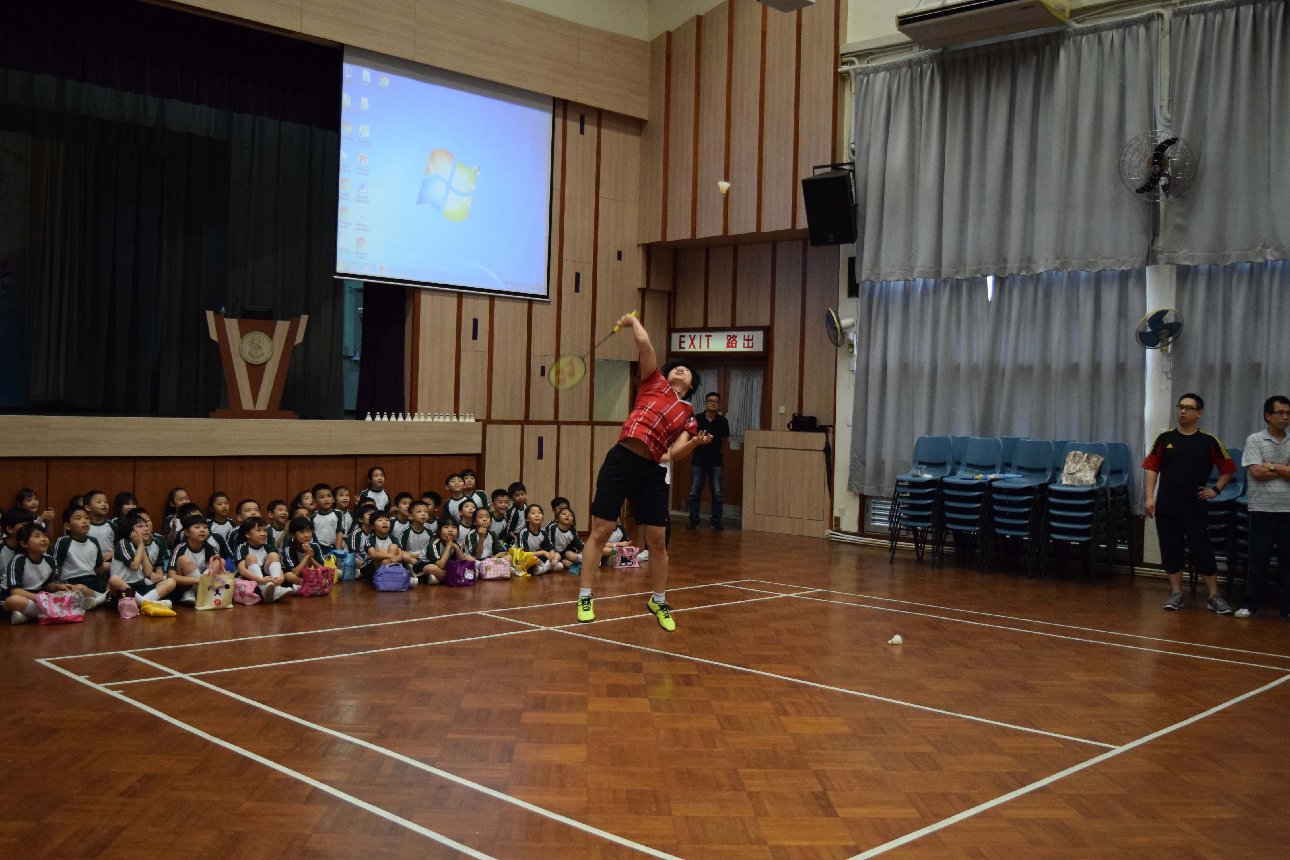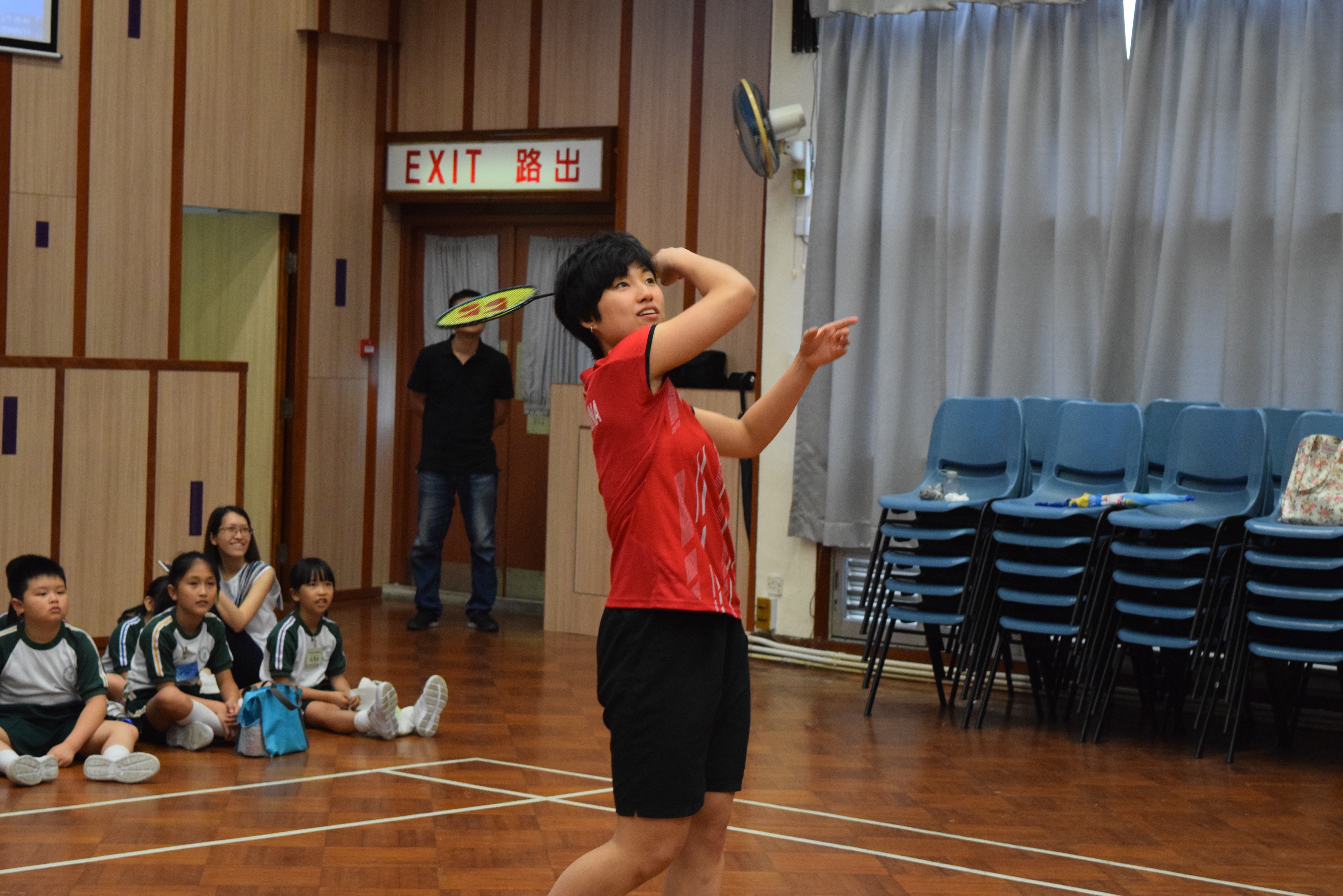 活動內容:1.東亞運羽毛球女單金牌得主葉姵延小姐與學生分享運動員感受; 2.葉姵延小姐與羽毛球教練向學生示範羽毛球基本技巧; 3.邀請本校老師及學生與葉姵延小姐作友誼比賽。