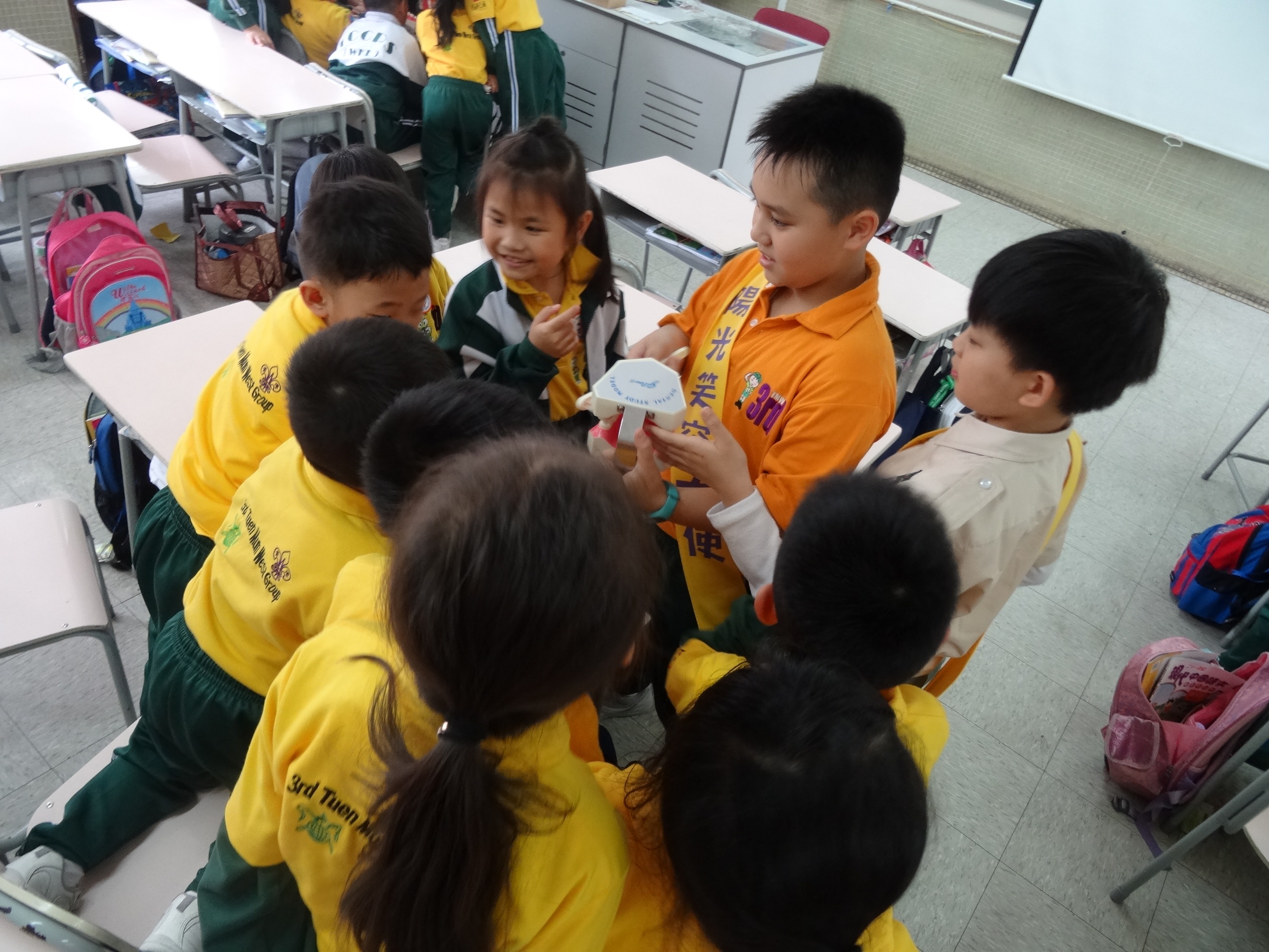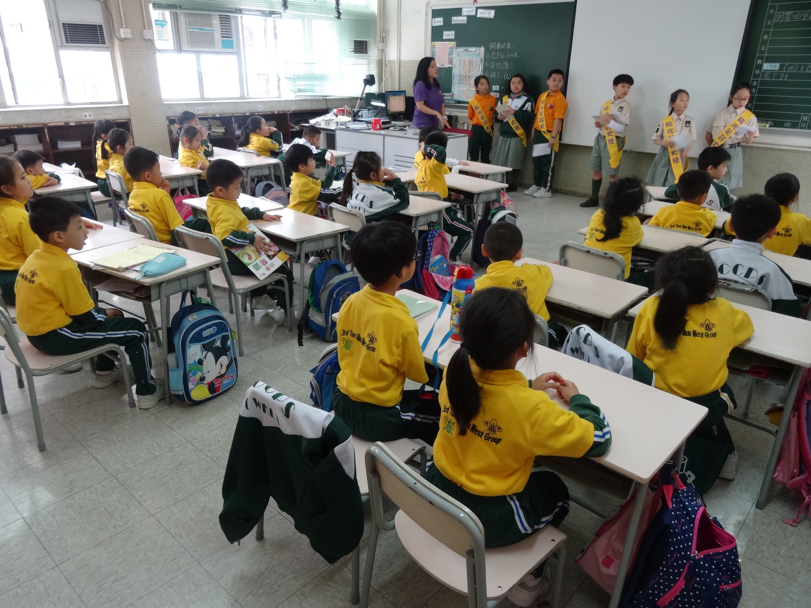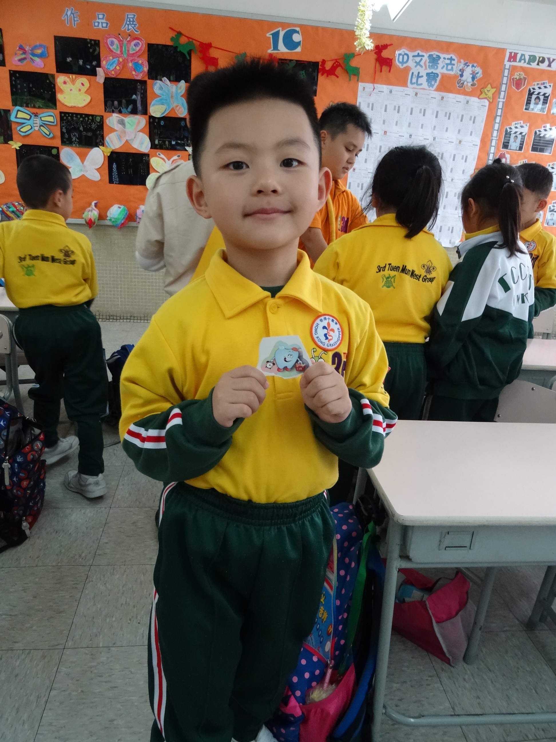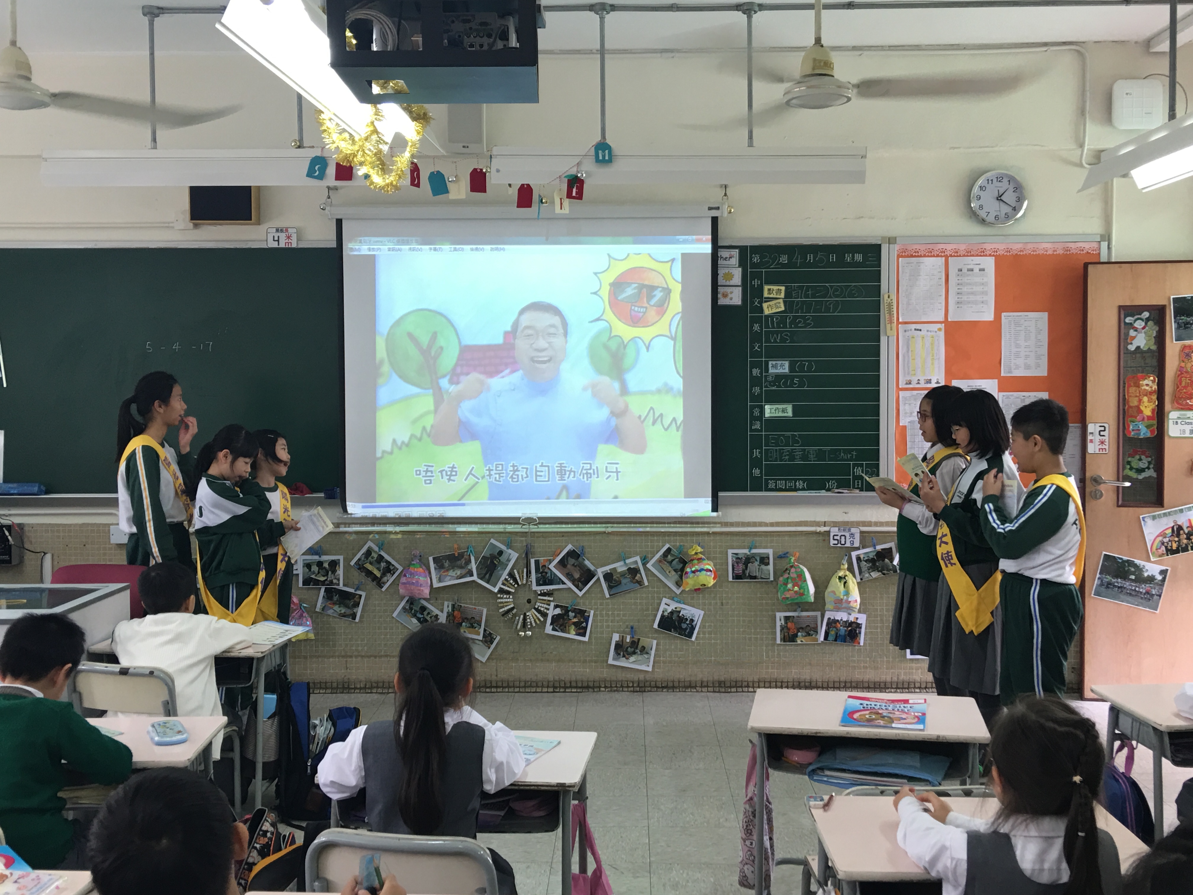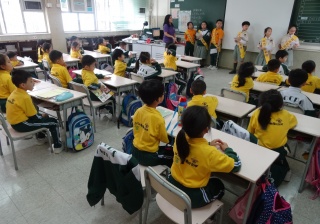 高年級的笑容大使教導一年級同學刷牙的正確方法及宣傳良好的化飲食習慣。