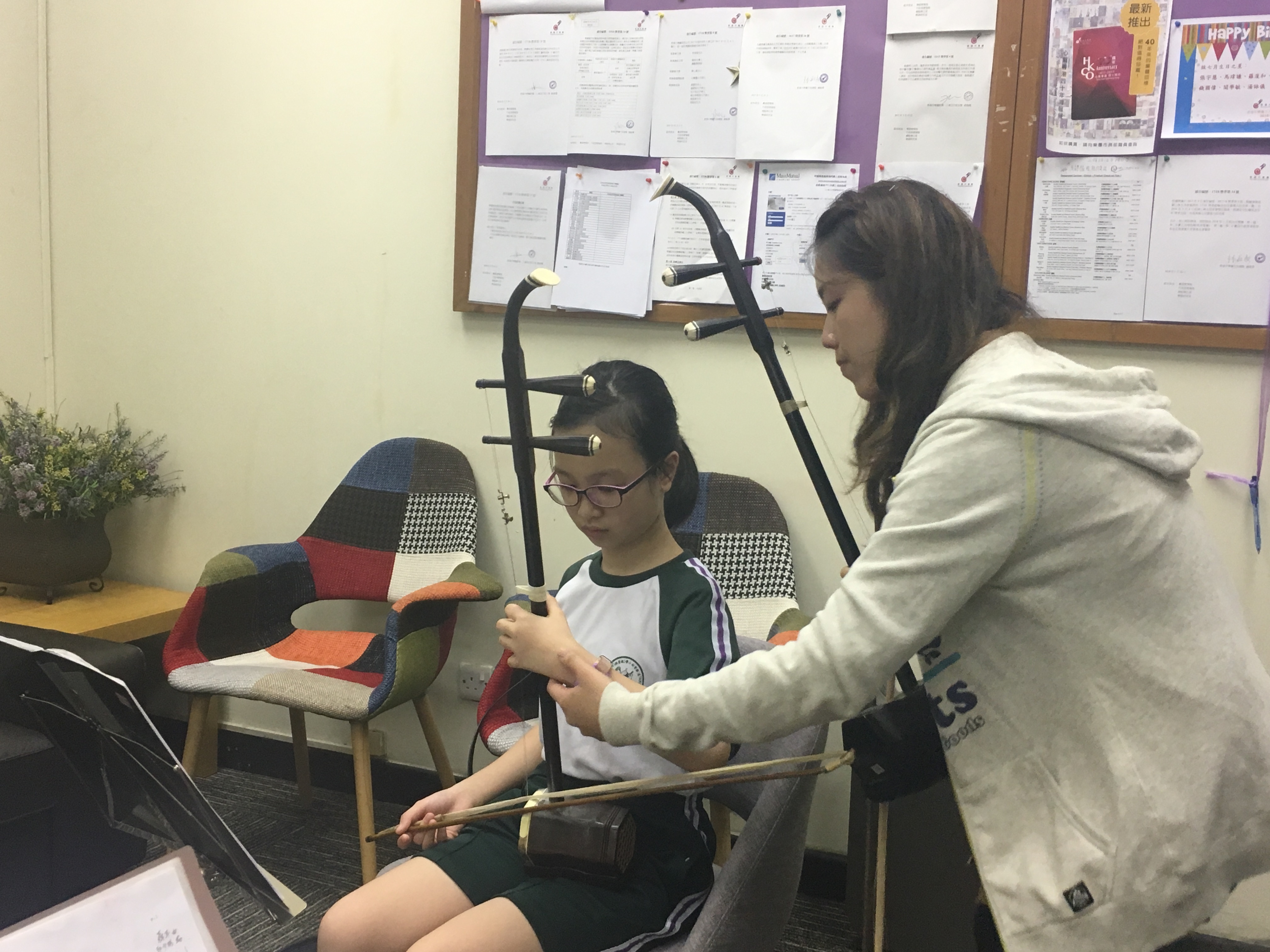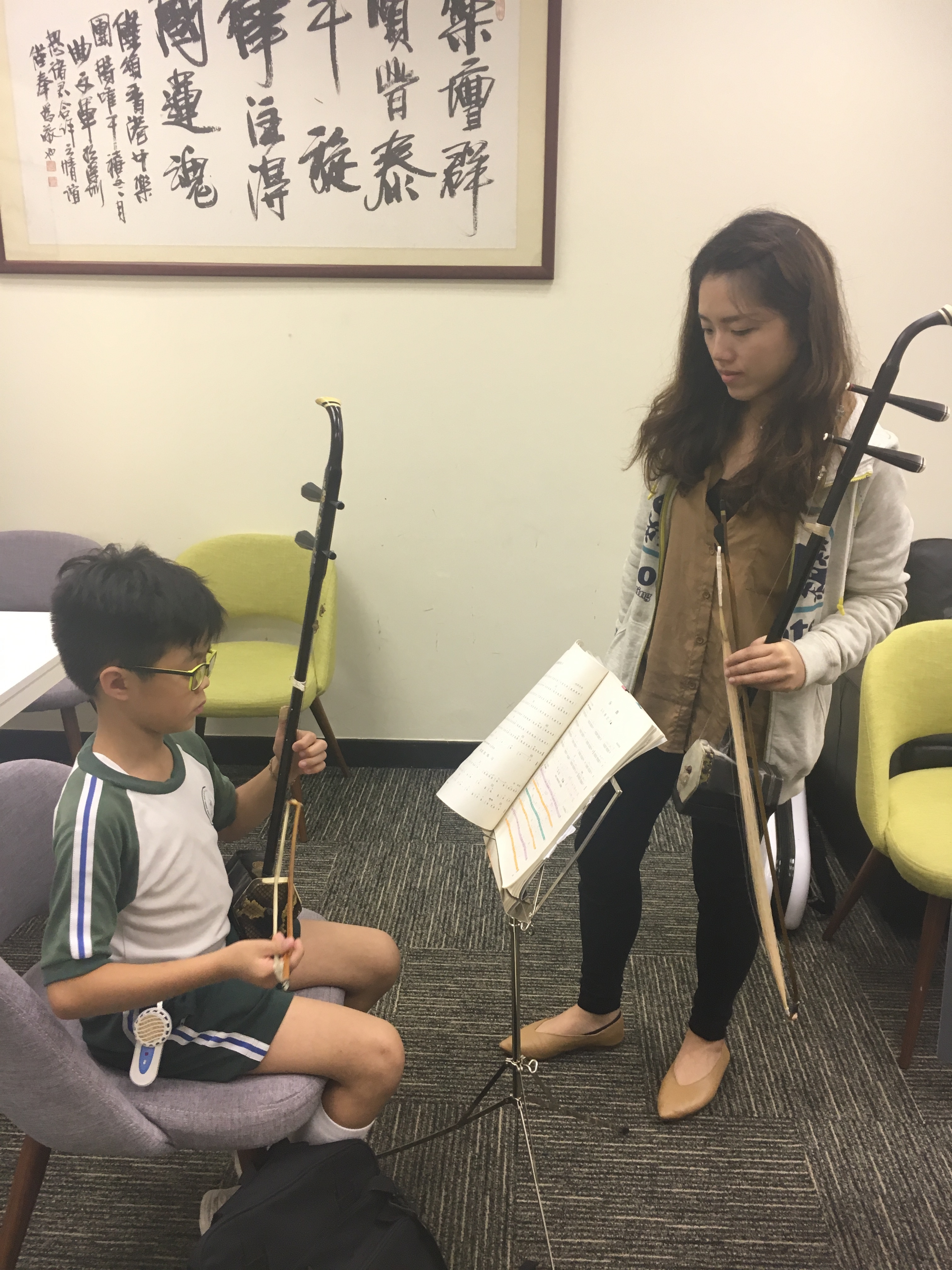 本校同學出席二胡及笛子大師班,獲香港中樂團駐團演奏家指導演奏技巧,獲益良多。