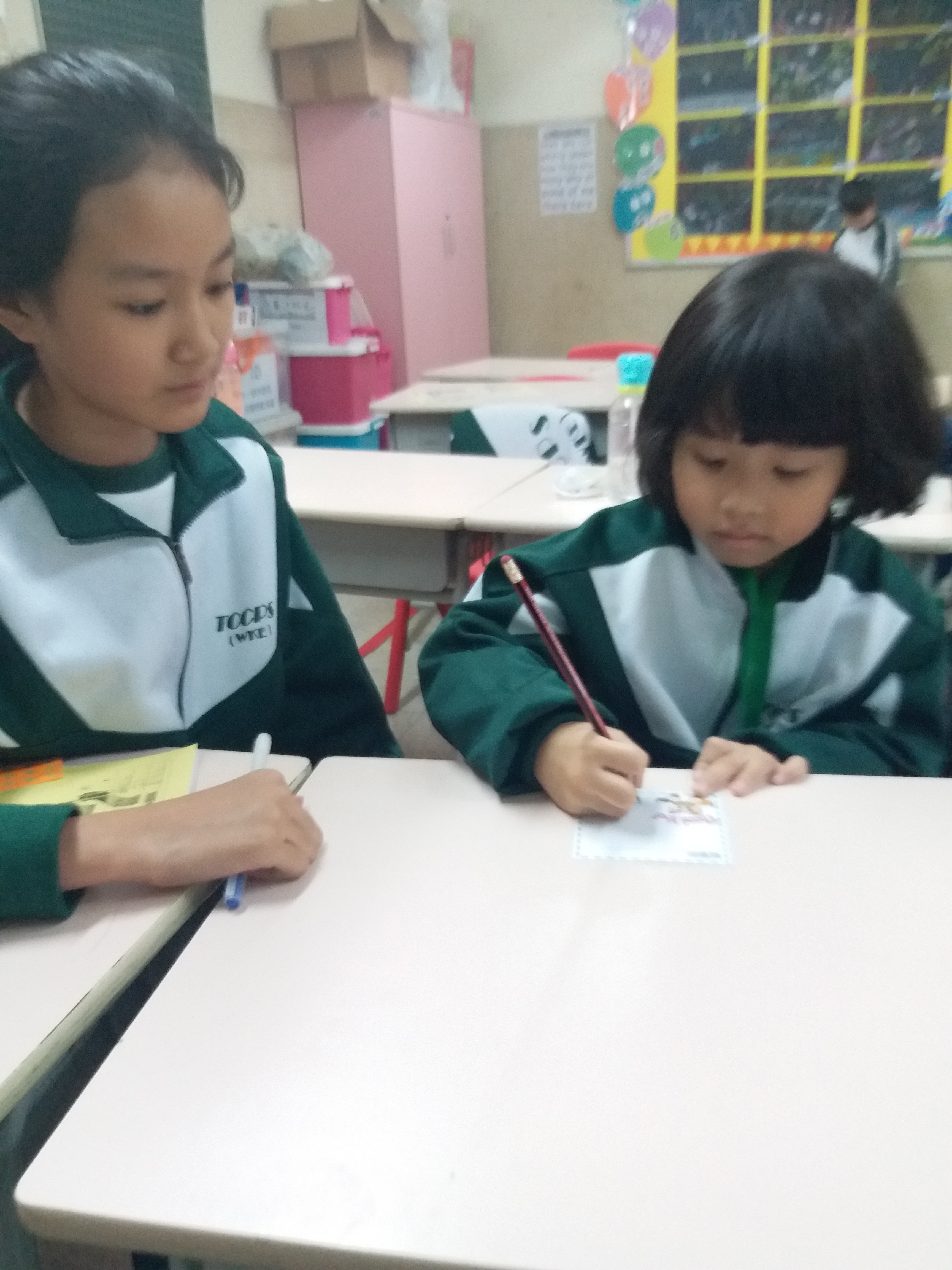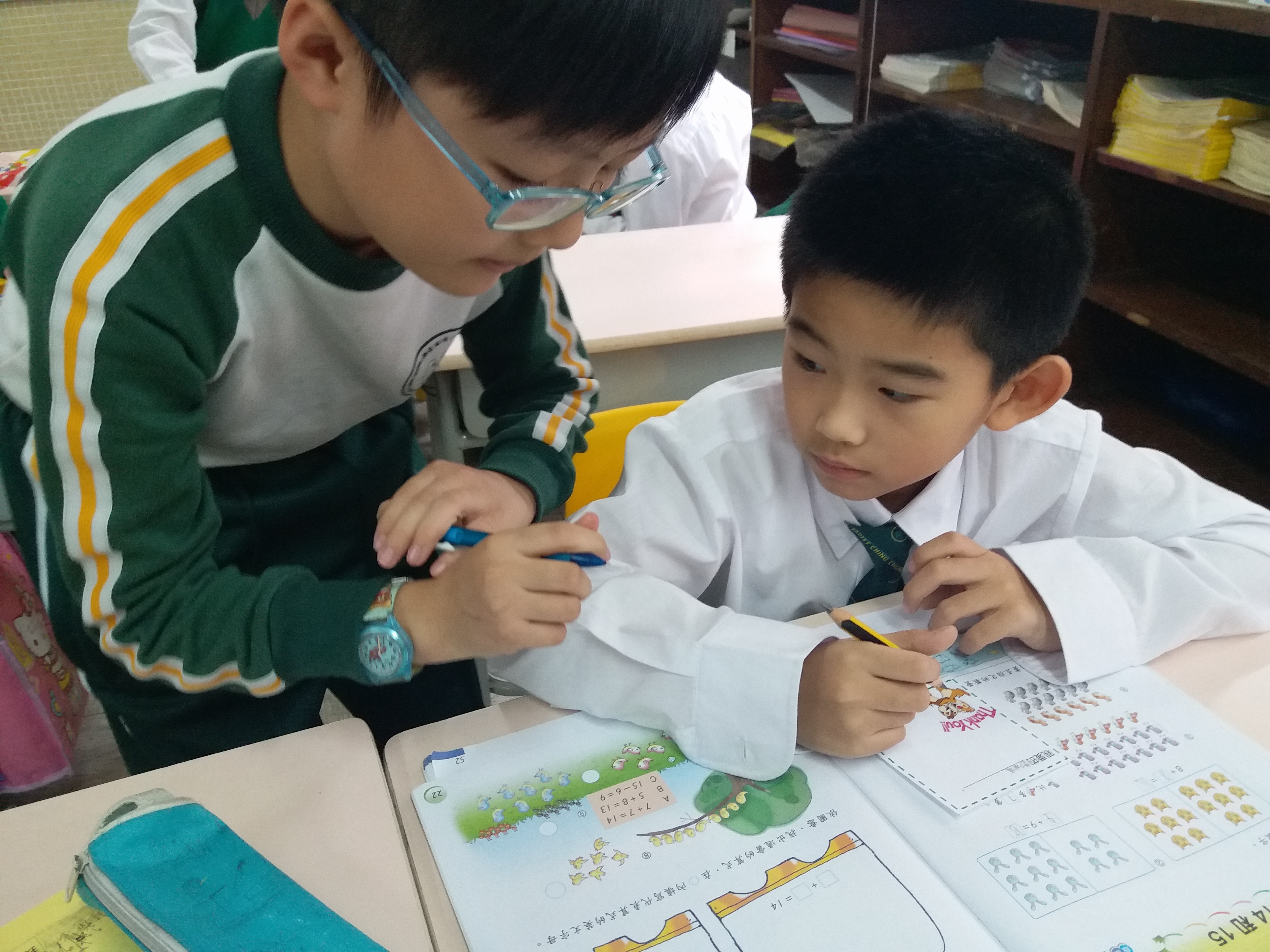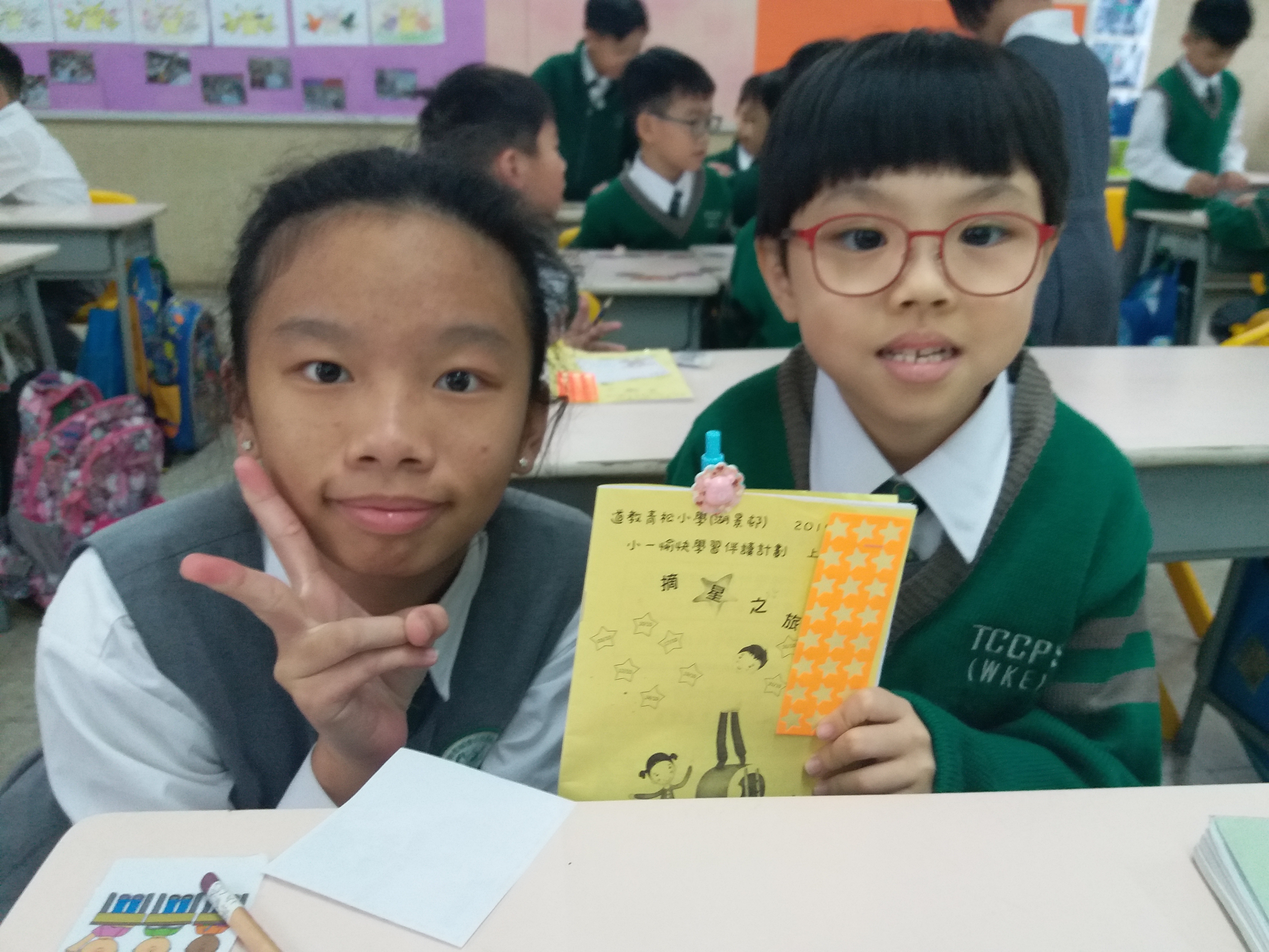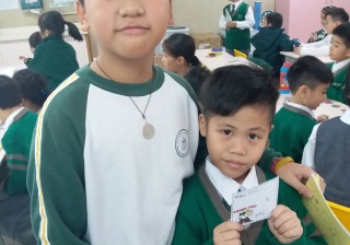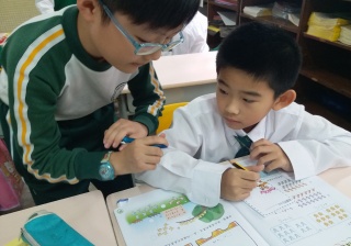 高年級的學長於星期二及四的膳後文娛藝術活動時間為小一學弟妹提供學習上的協助及教授簡單自理能力技巧。過程中,大哥哥大姐姐有耐性地教導小一學弟妹及彼此相處融洽,建立良好的關係。