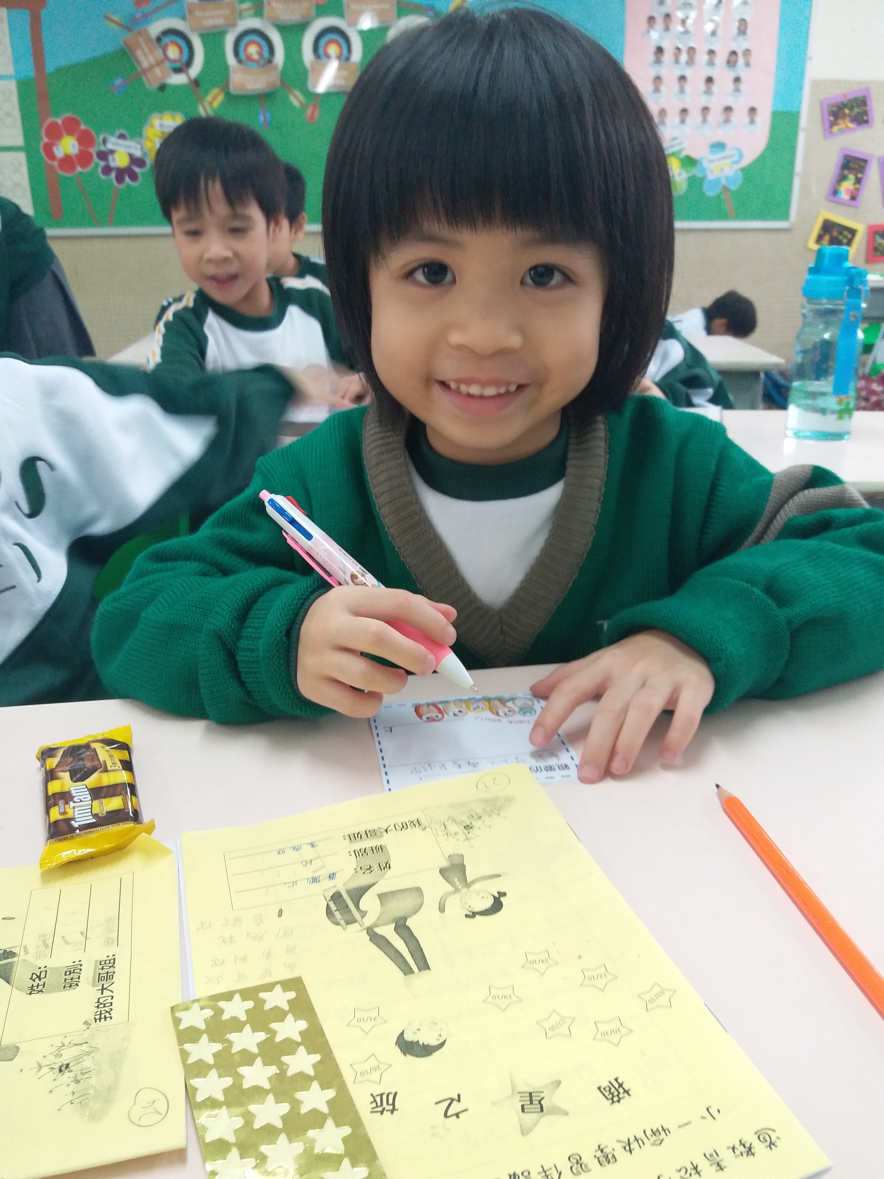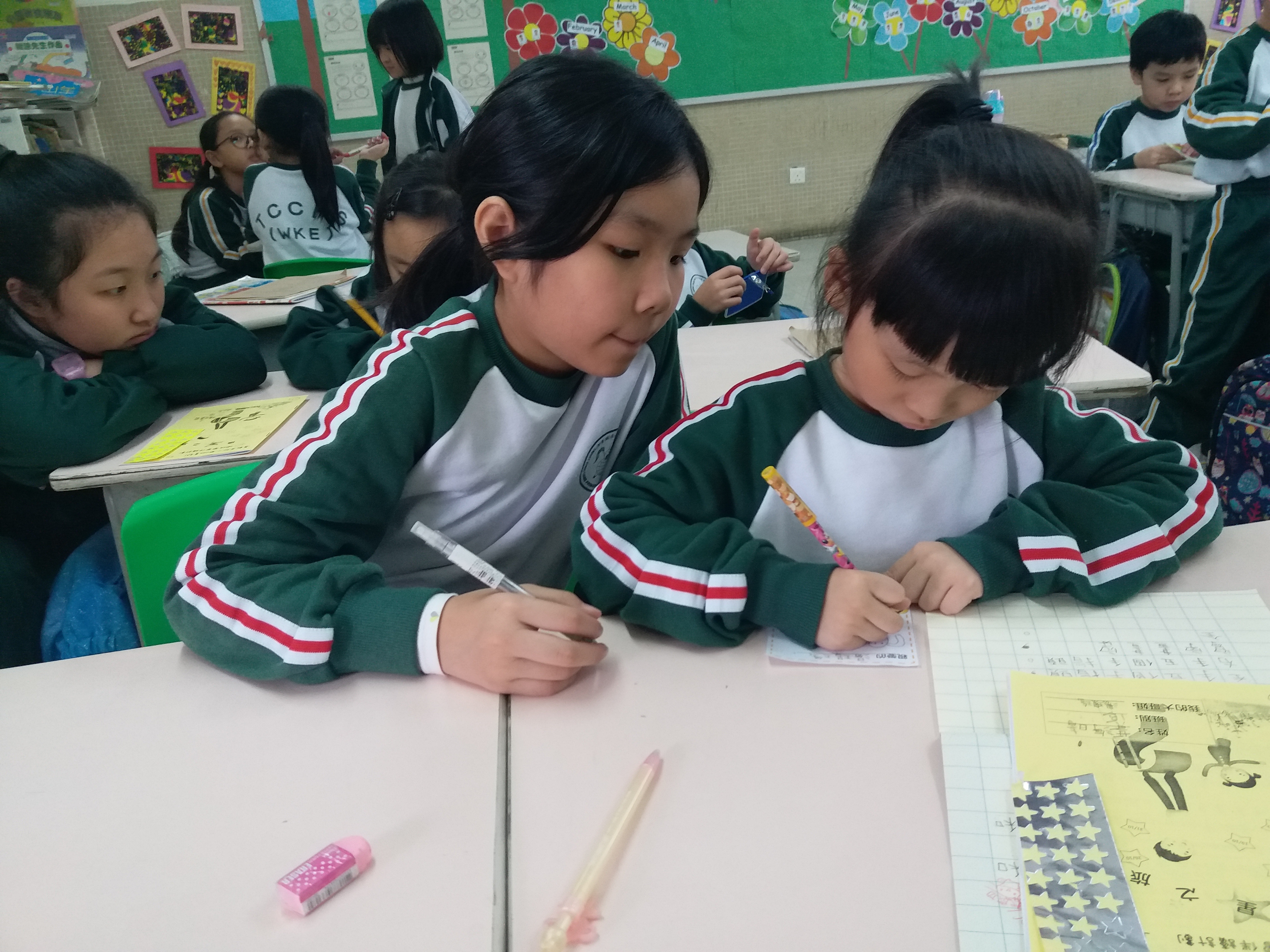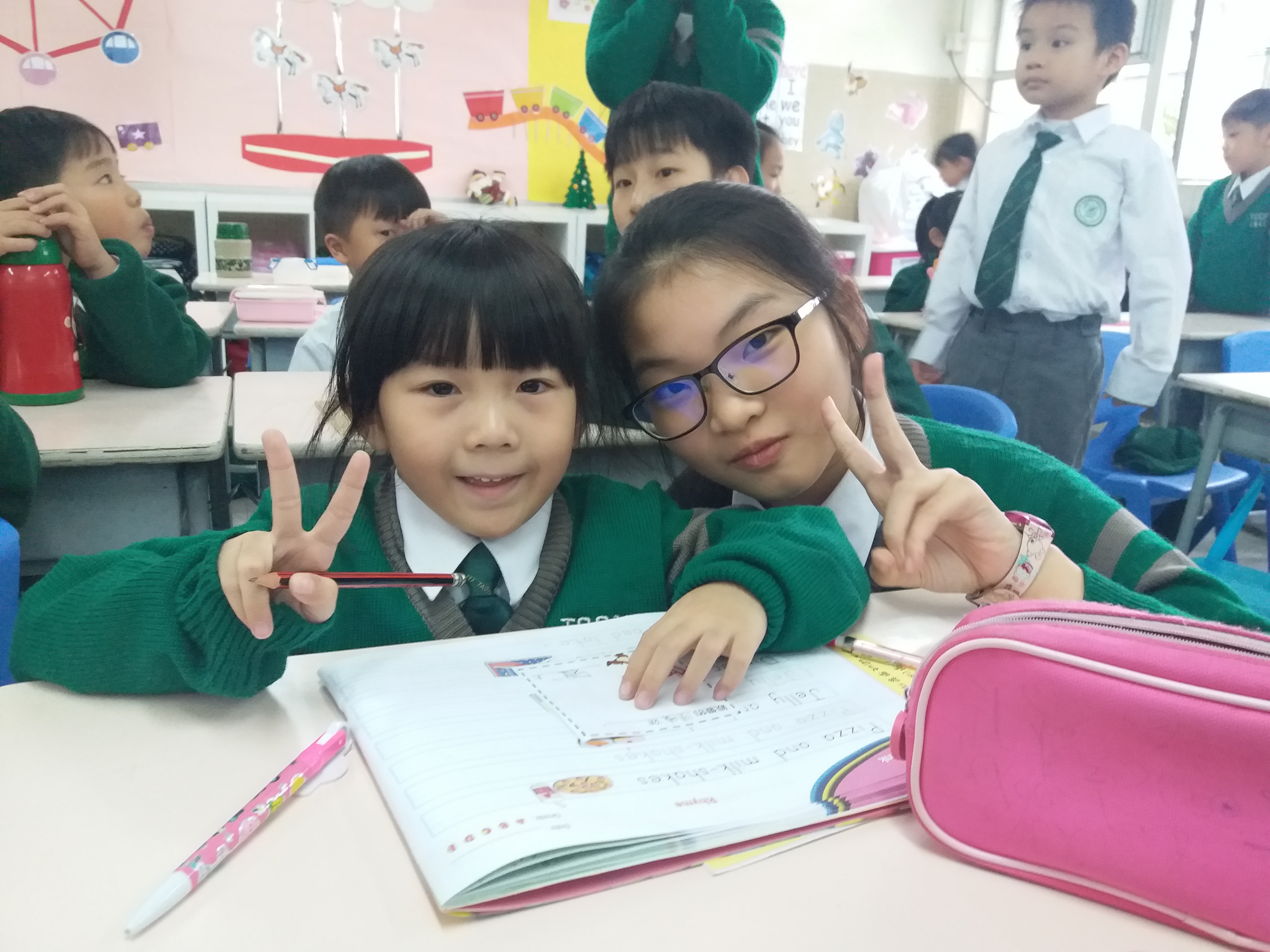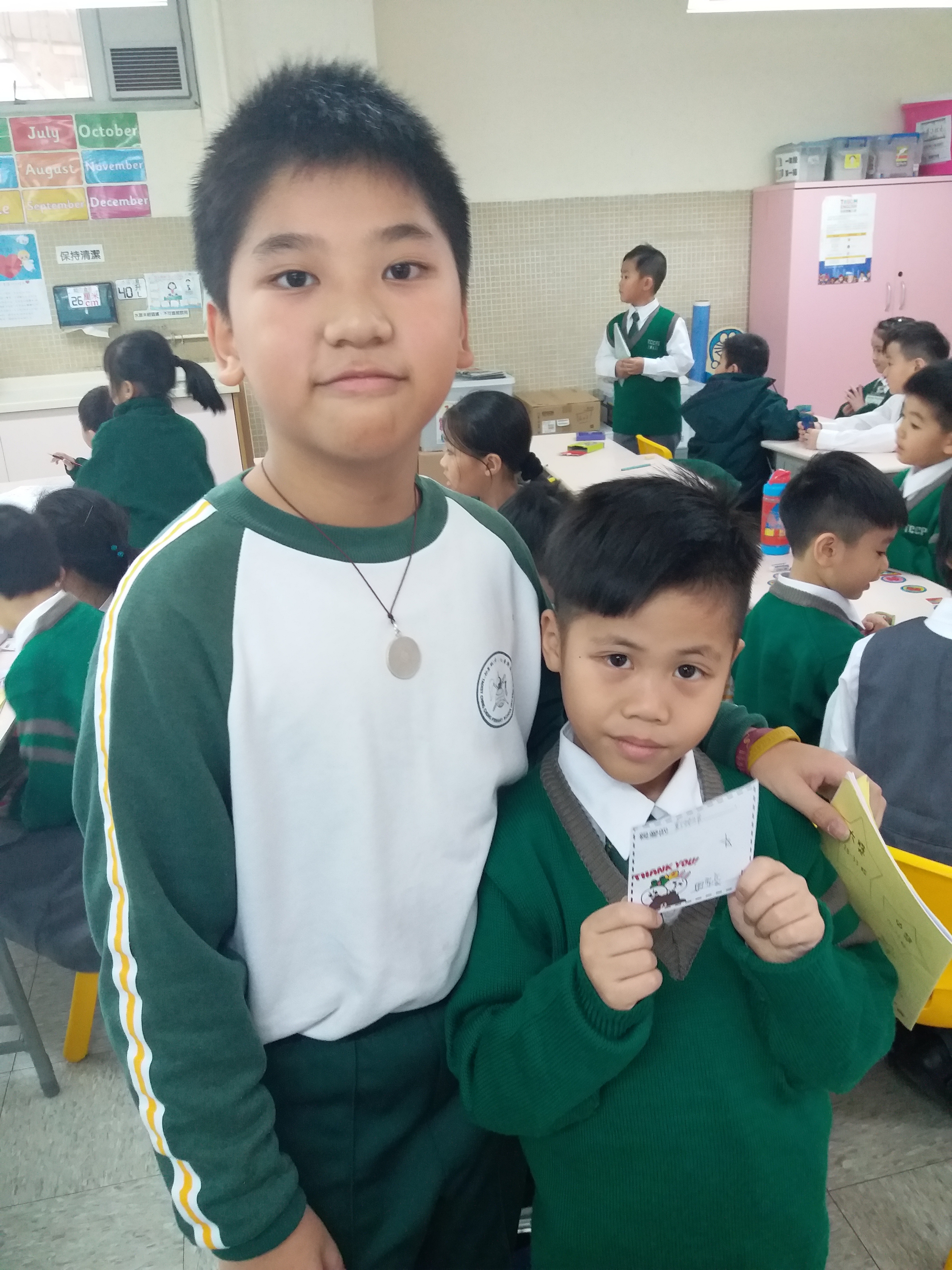 高年級的學長於星期二及四的膳後文娛藝術活動時間為小一學弟妹提供學習上的協助及教授簡單自理能力技巧。過程中,大哥哥大姐姐有耐性地教導小一學弟妹及彼此相處融洽,建立良好的關係。
