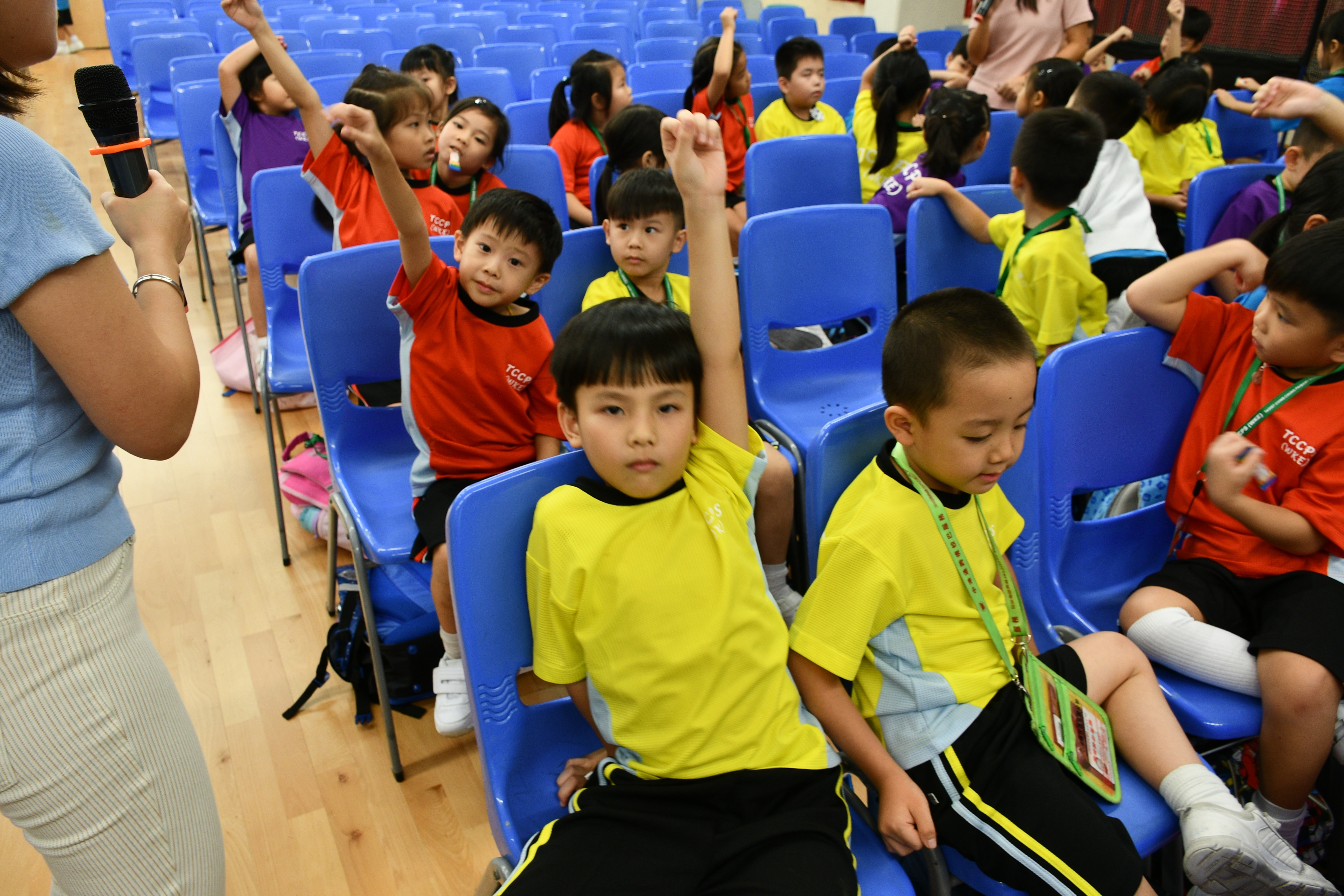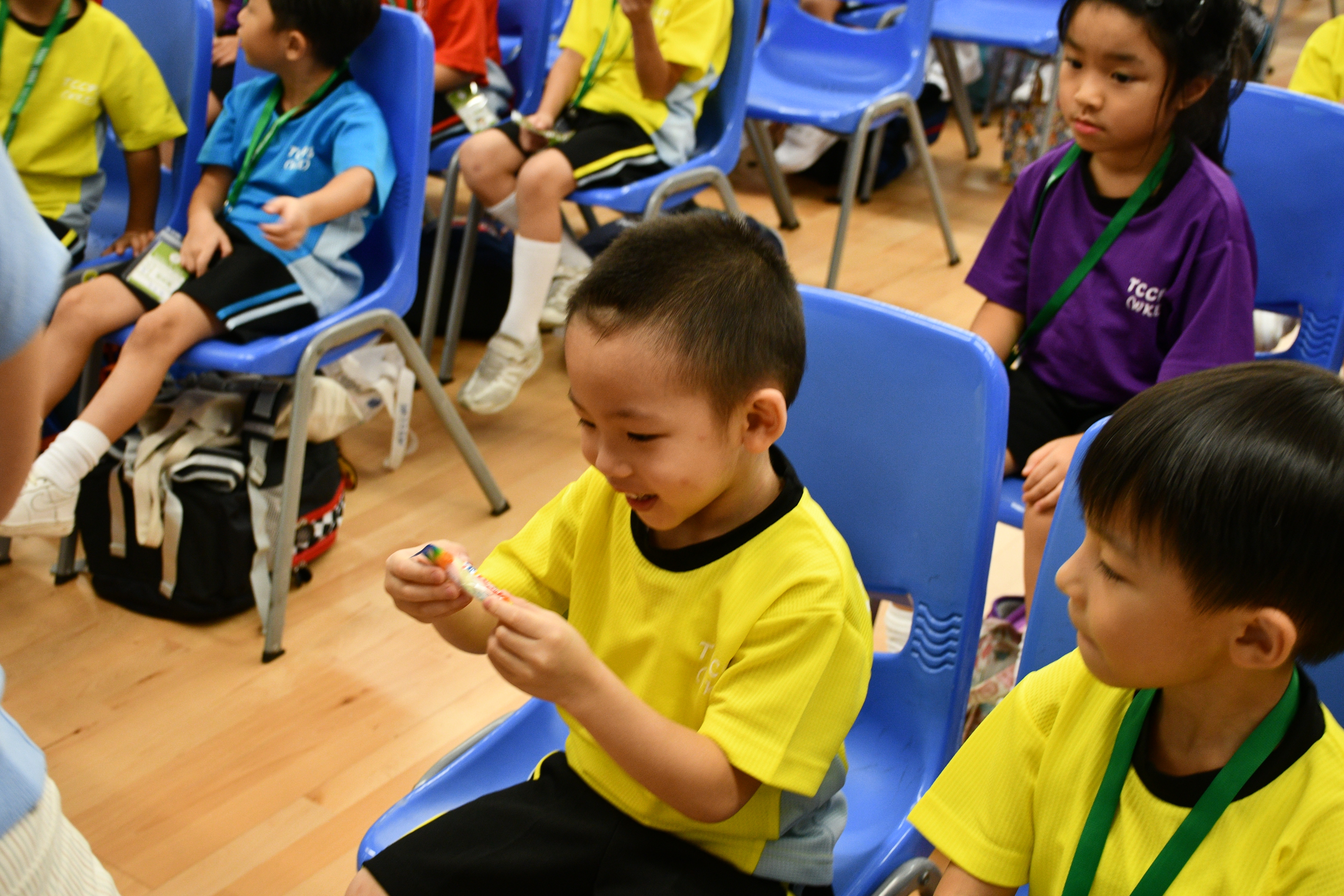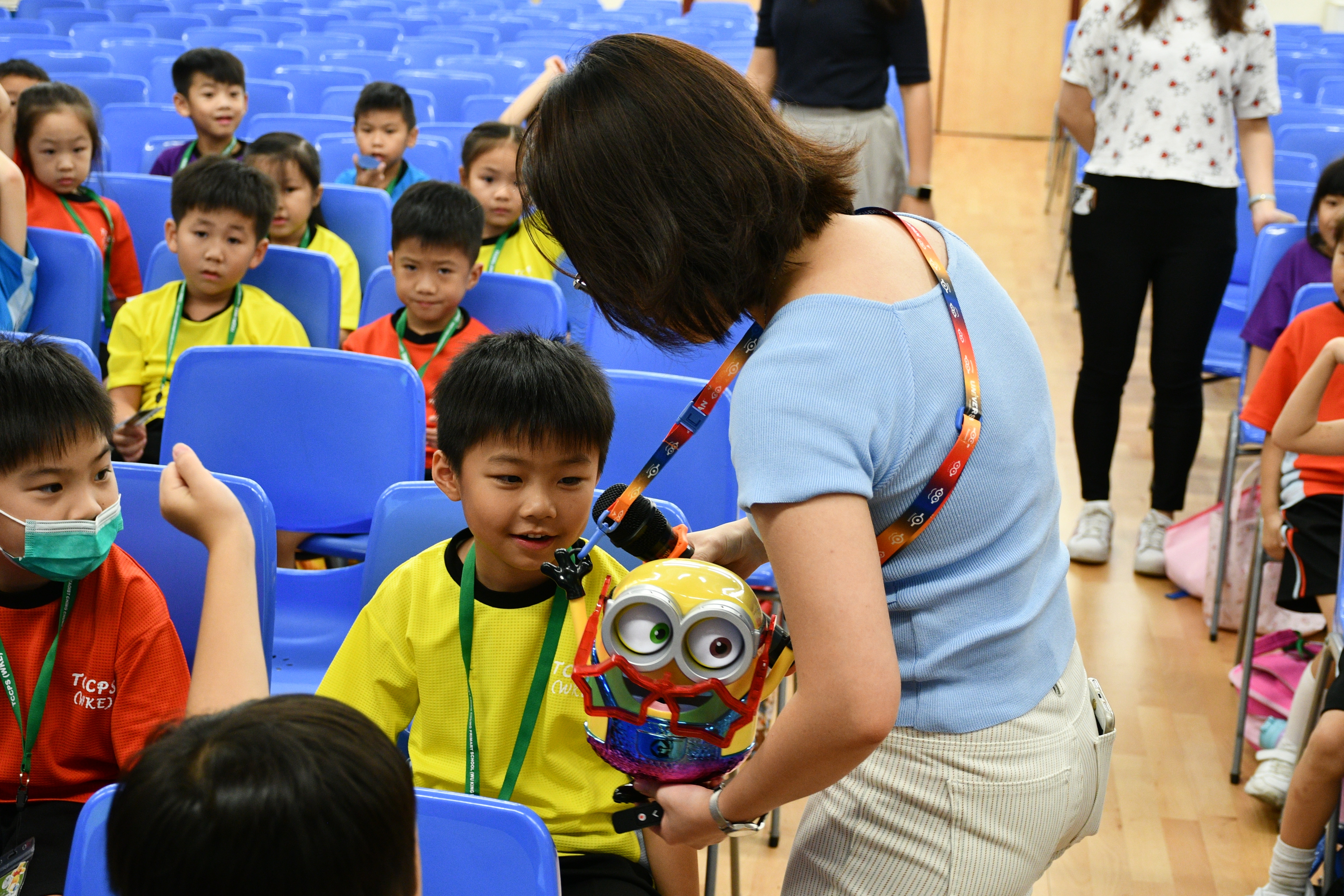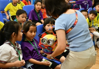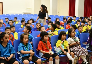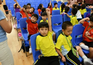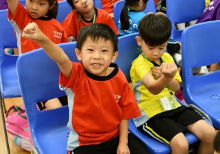 透過繪本故事 -《小雞上學》,讓小一學生學習如何適應學校生活,過程中學生積極投入。