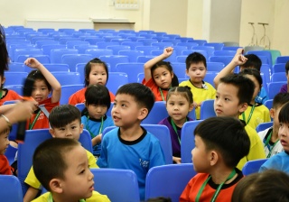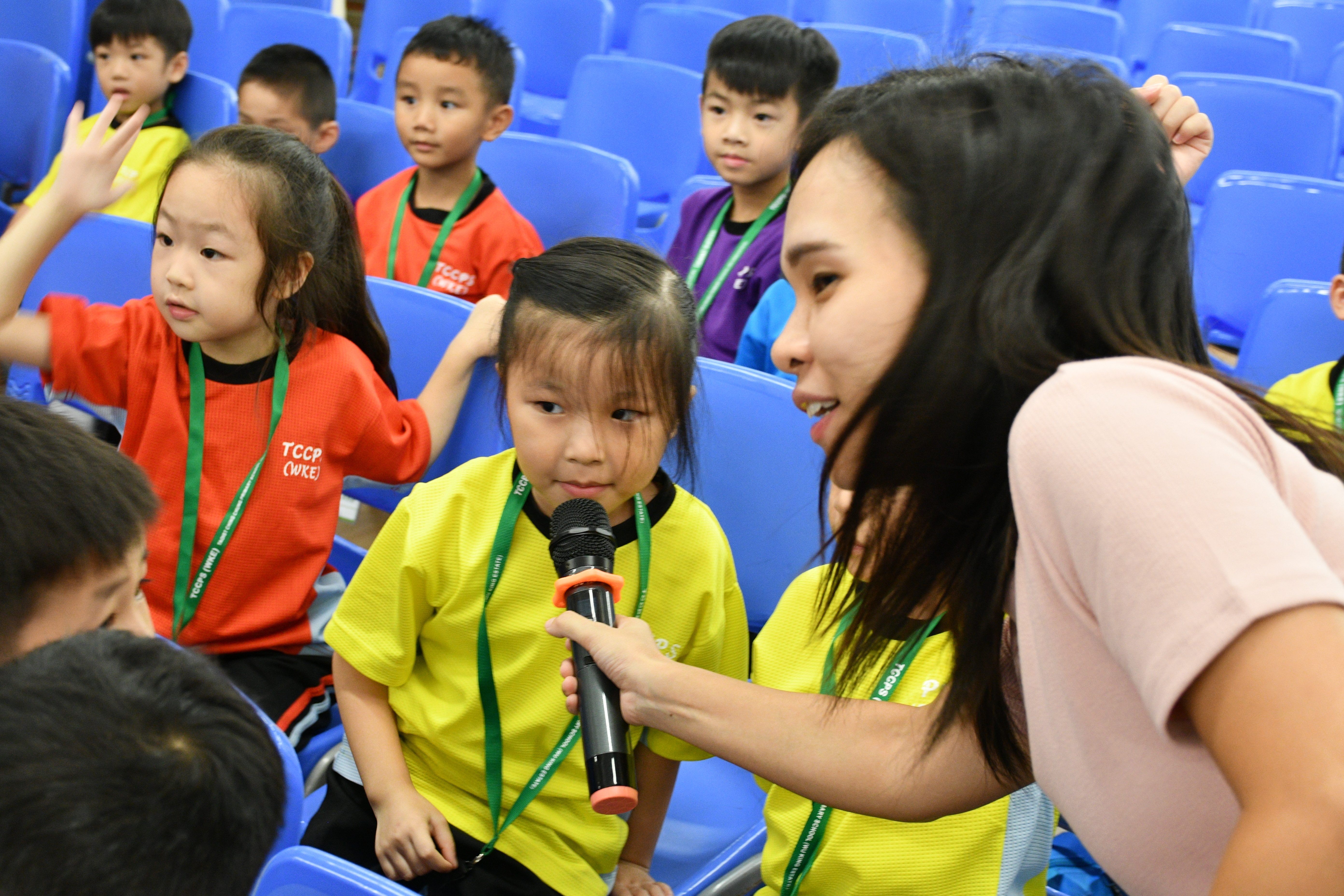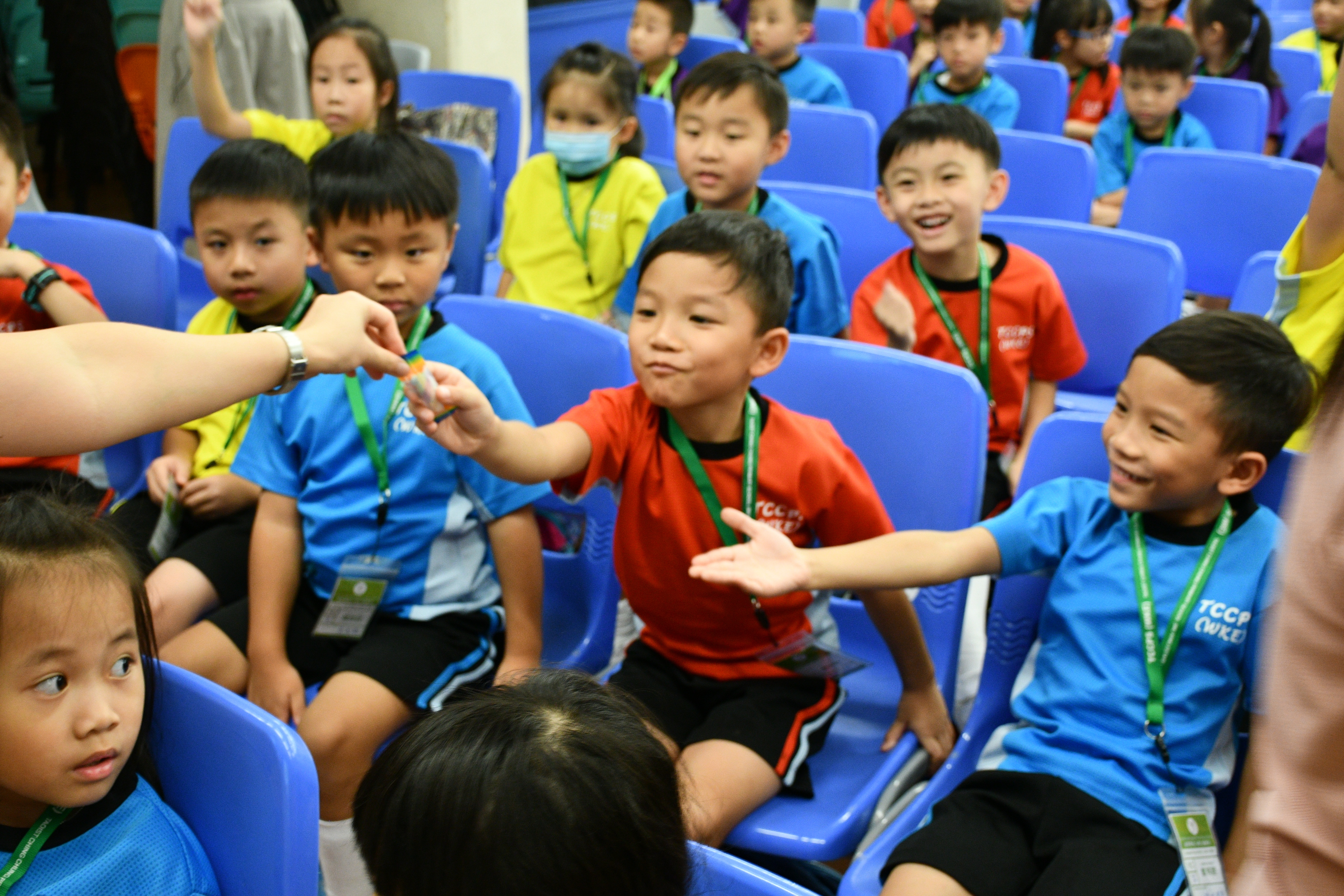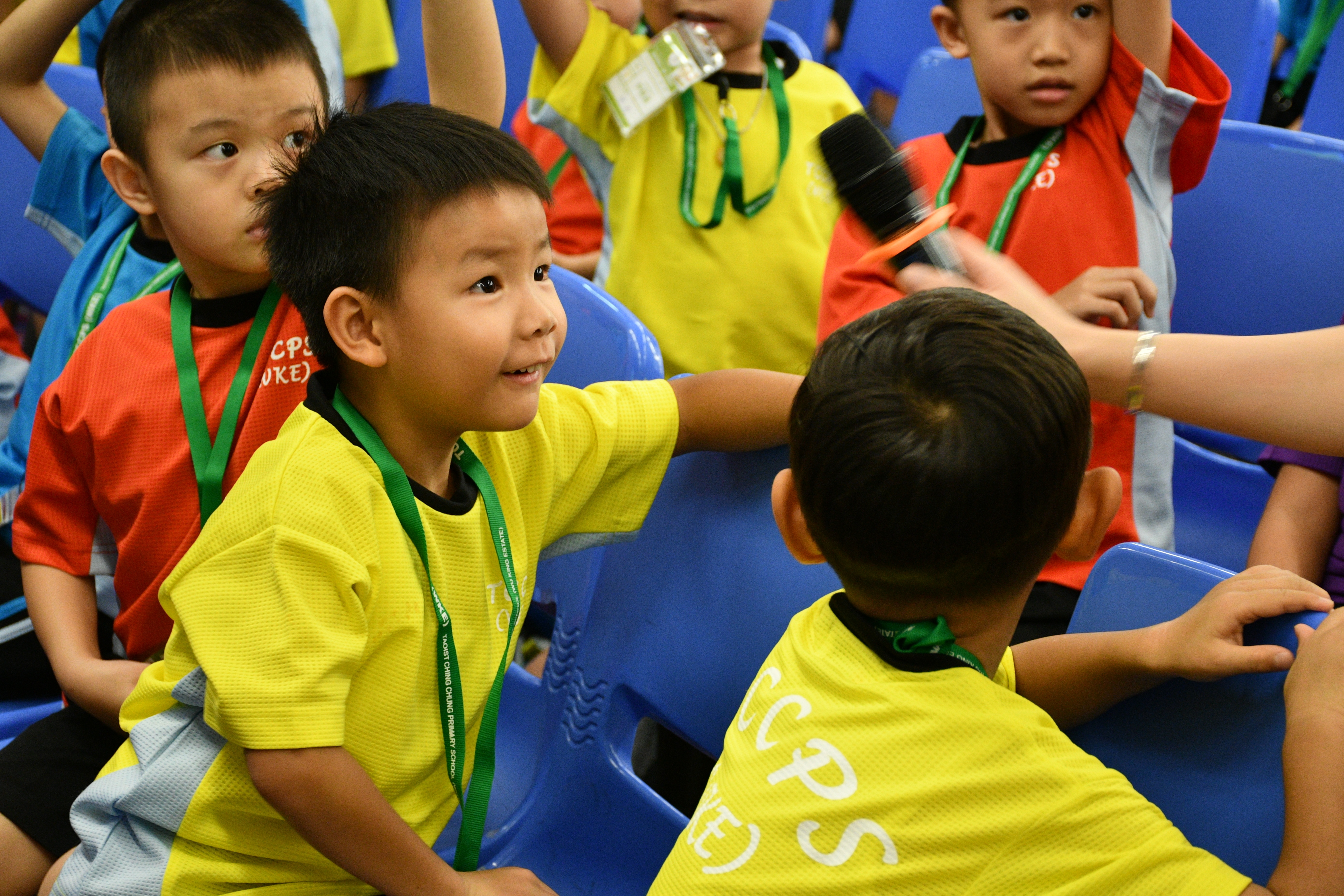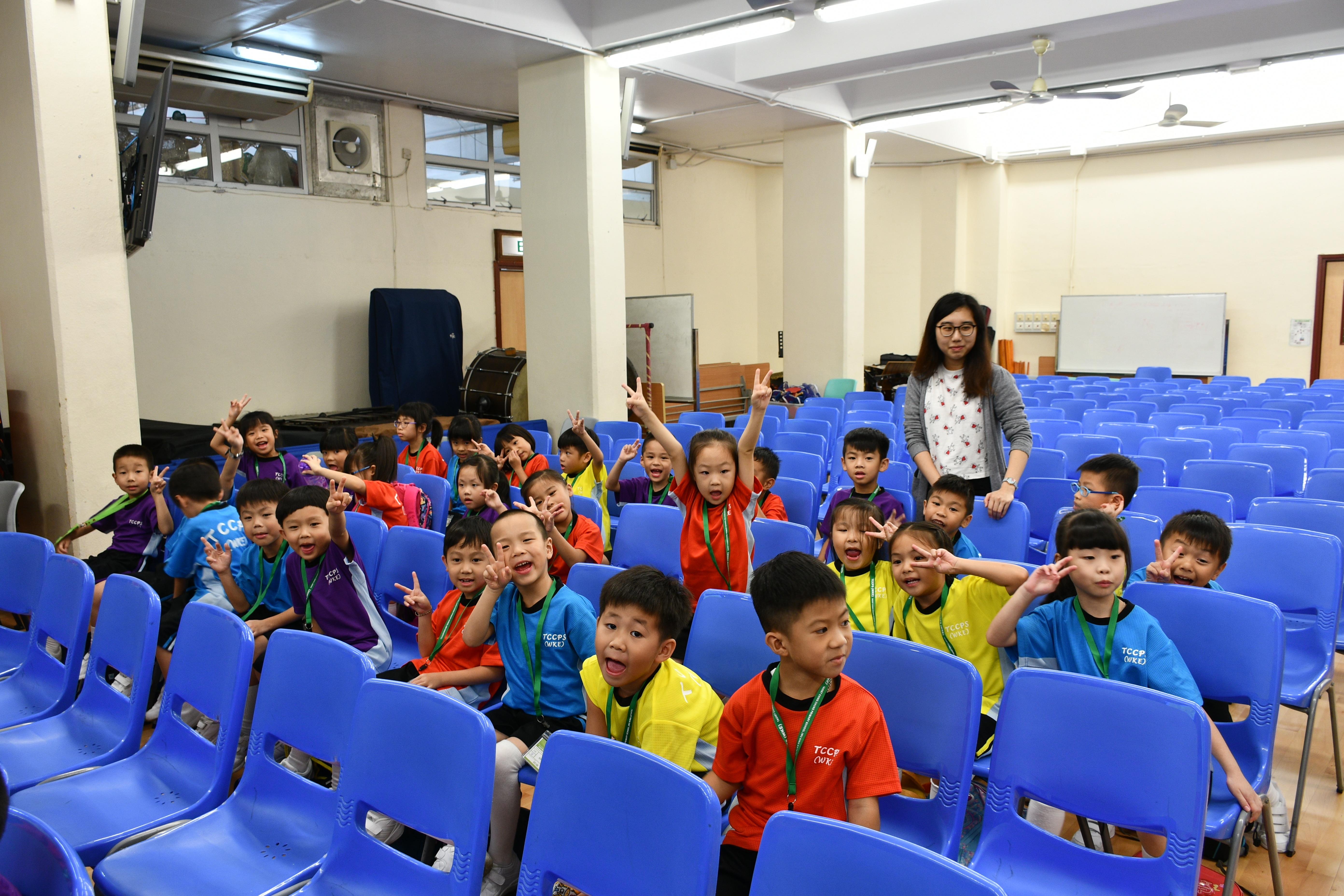 透過繪本故事 -《小雞上學》,讓小一學生學習如何適應學校生活,過程中學生積極投入。