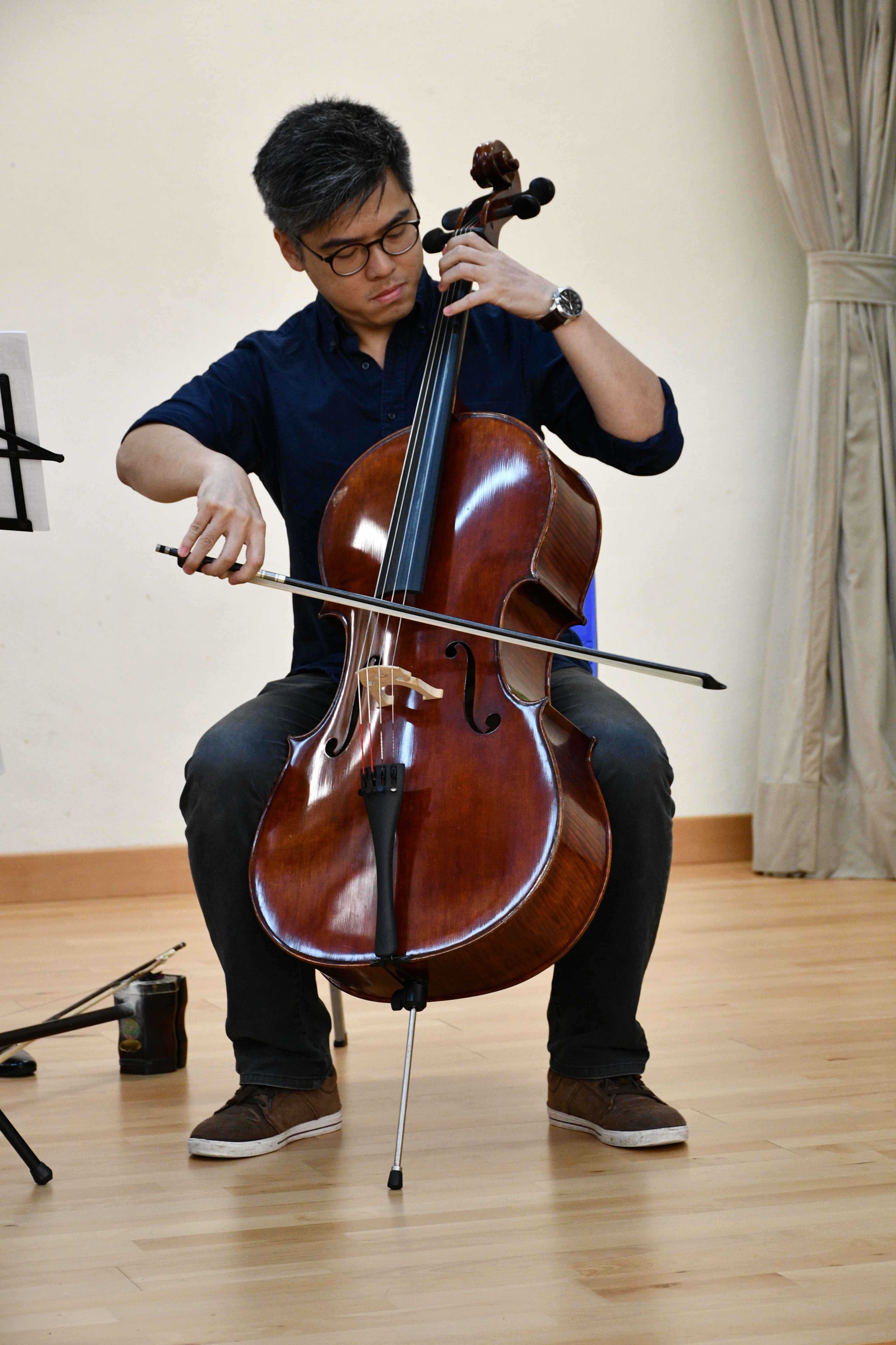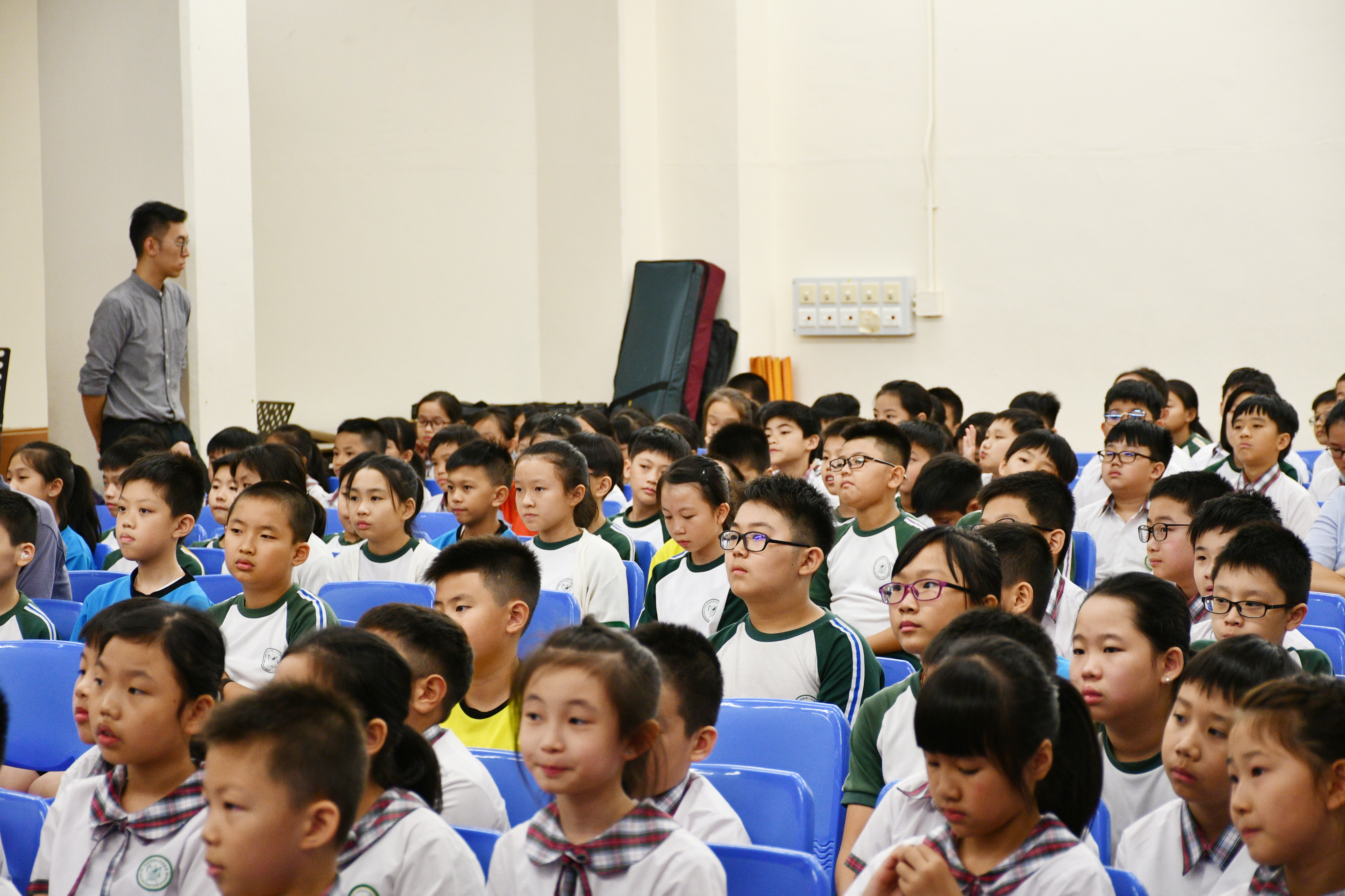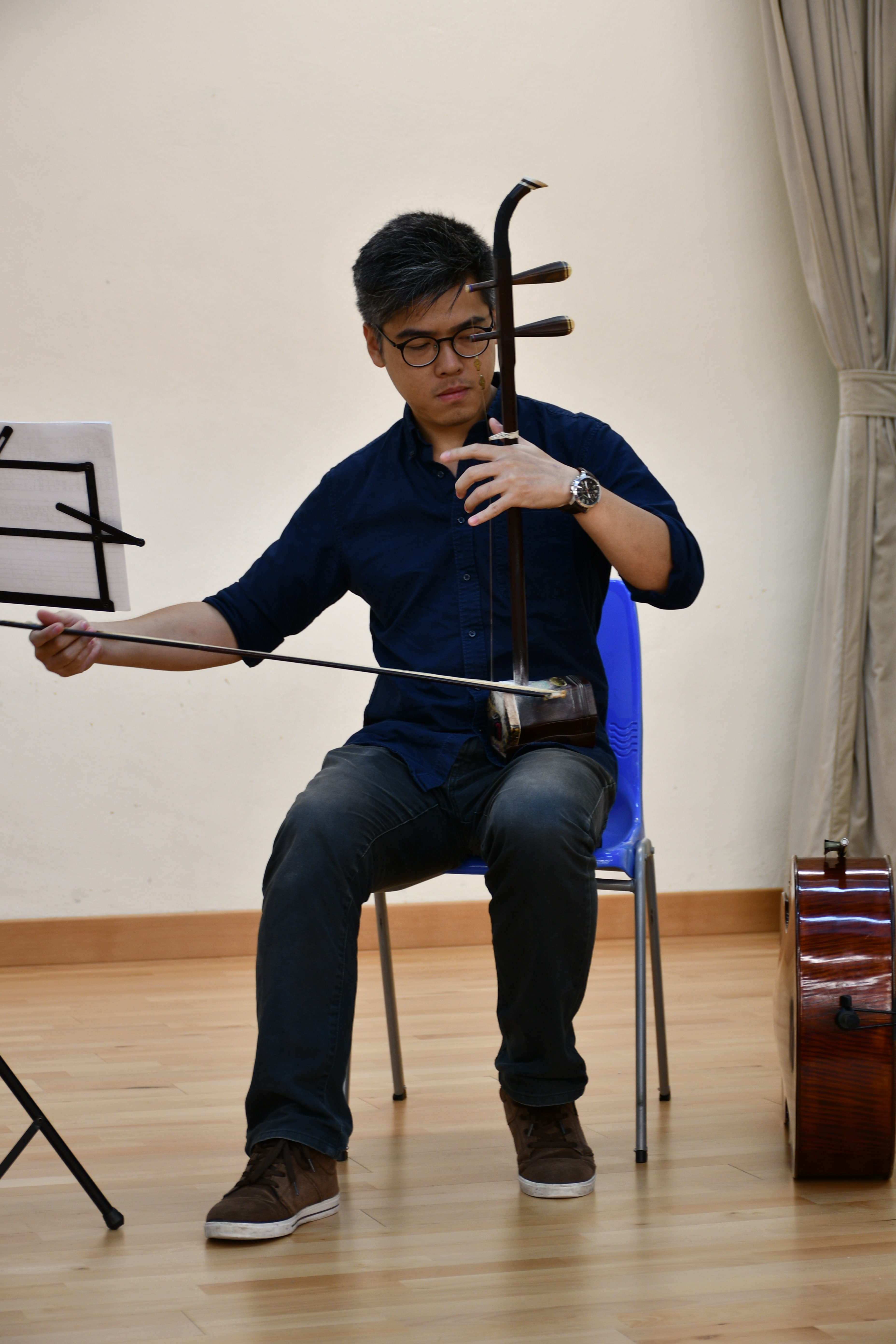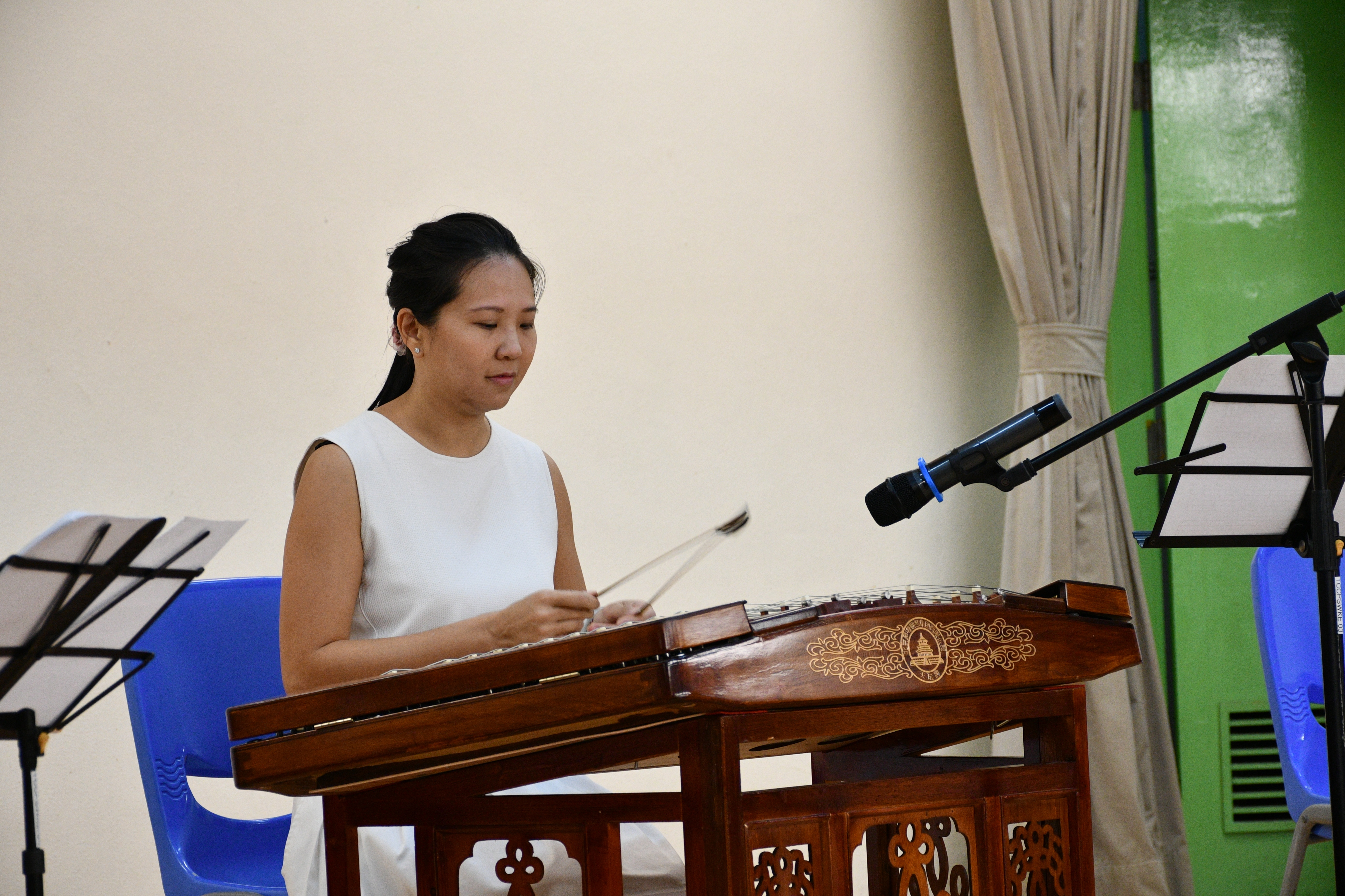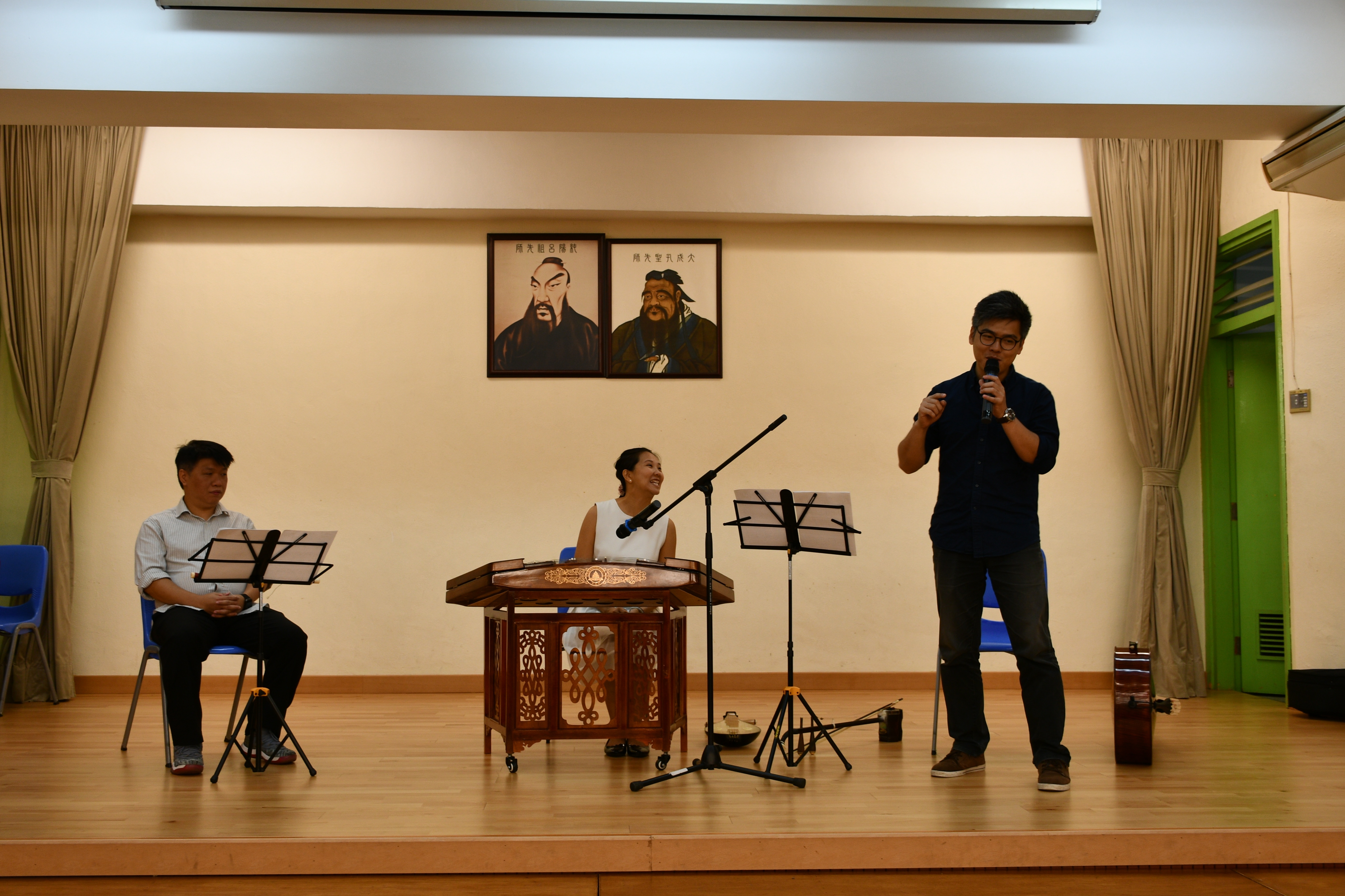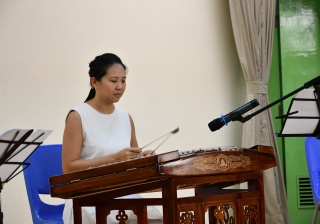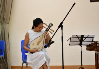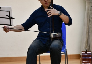 新聲音樂協會三位導師到校,為本校同學作樂器示範演奏,介紹笛子、柳琴、二胡、大提琴及揚琴的演奏技巧及音色,同時更以小組合奏形式,演出《鳳陽花鼓》及《彩雲追月》,讓同學大開眼界。