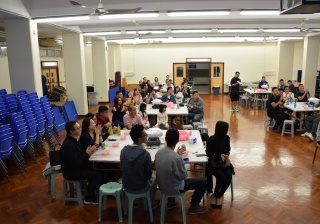 接著是校友期待已久的盆菜晚宴。當晚延開盆菜共七圍,校友們一面享用美味的盆菜,一面與老師暢談當年趣事,各校友忙著找老師「集郵」。各校友與老師打成一片,令會場充滿熱鬧及歡笑聲,大家共度了一個愉快的晚上。感恩各老師及校友的參與。