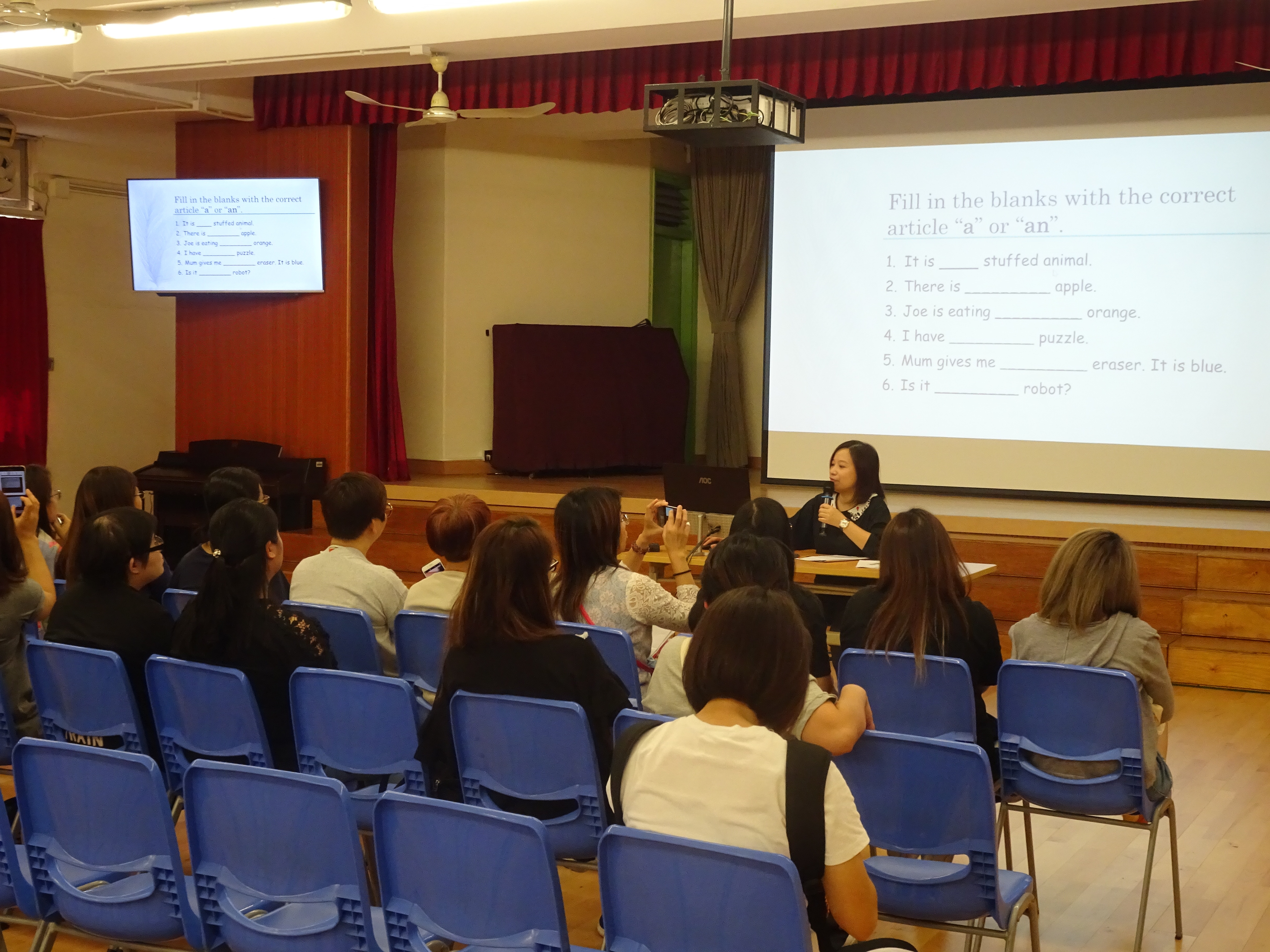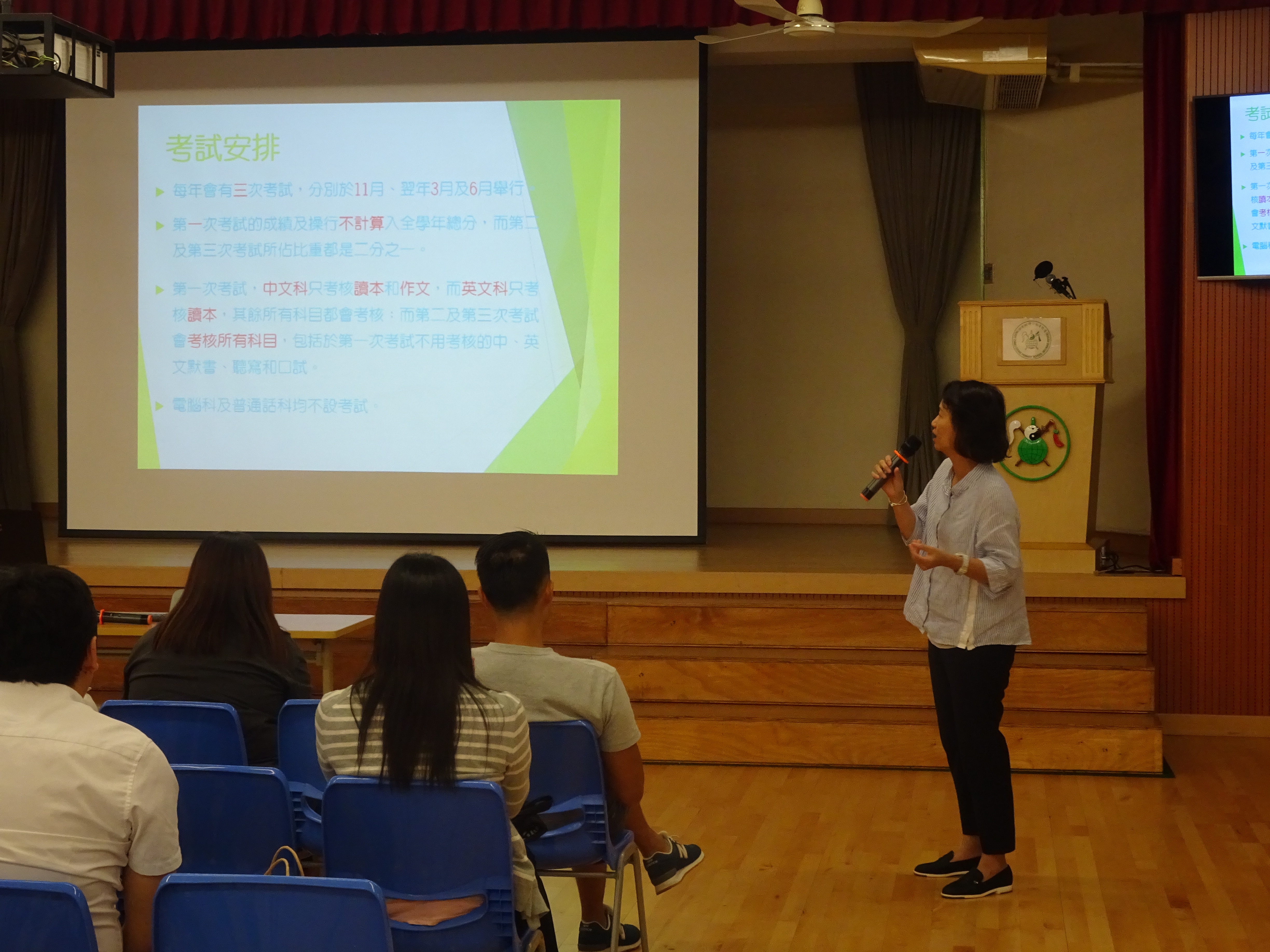 為協助家長更有效地指導子女溫習,以為考試作好凖備,本校分別於十月二日及四日舉行了「如何幫助子女學習」小一家長座談會。會上,由本校中、英、數、常科主任講解試題形式及溫習要點,並介紹了各科的網上學習平台。