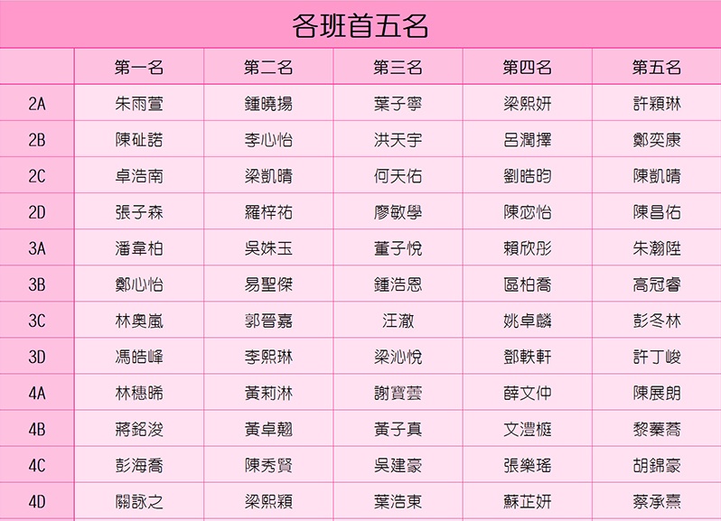1819 第一次考試龍虎榜