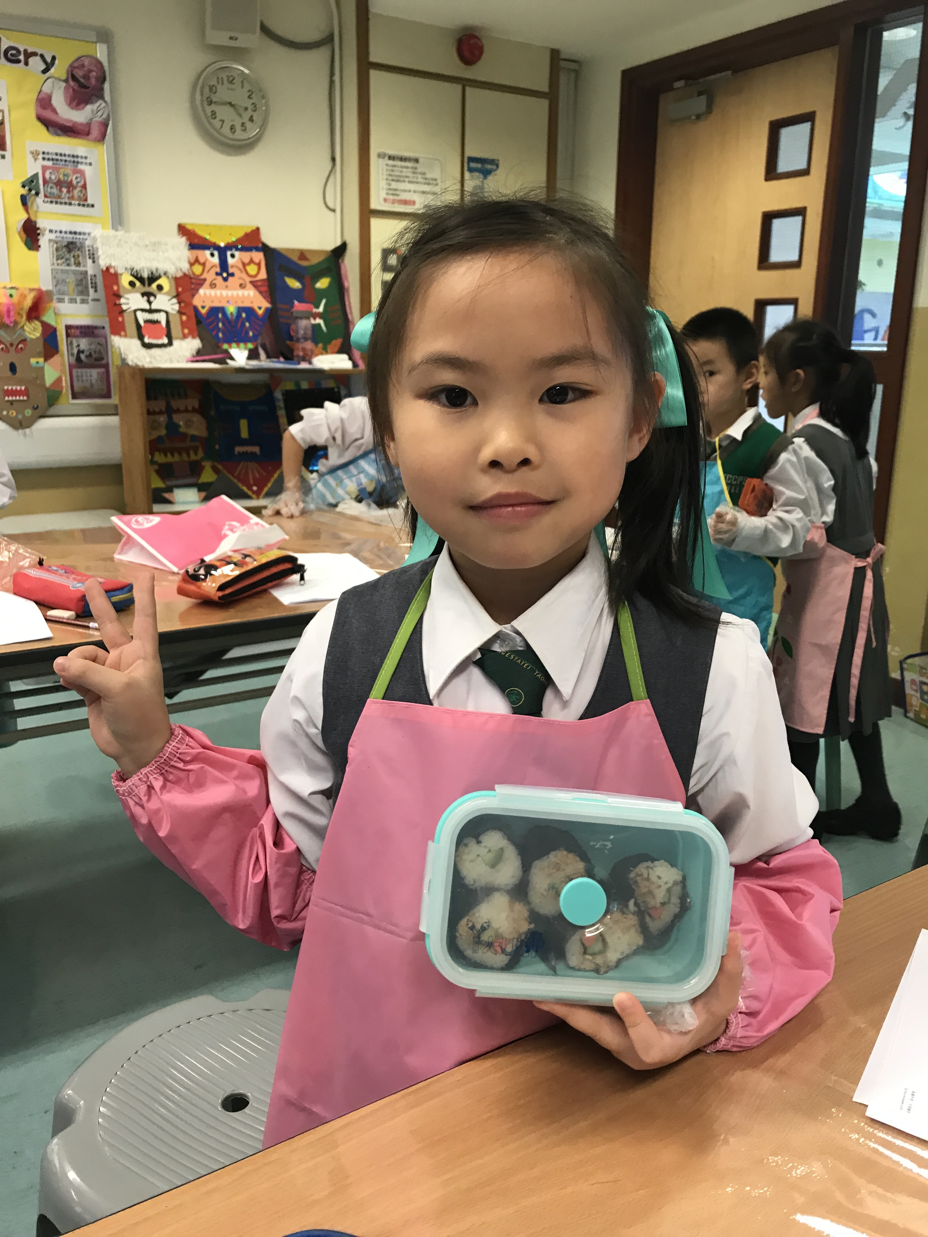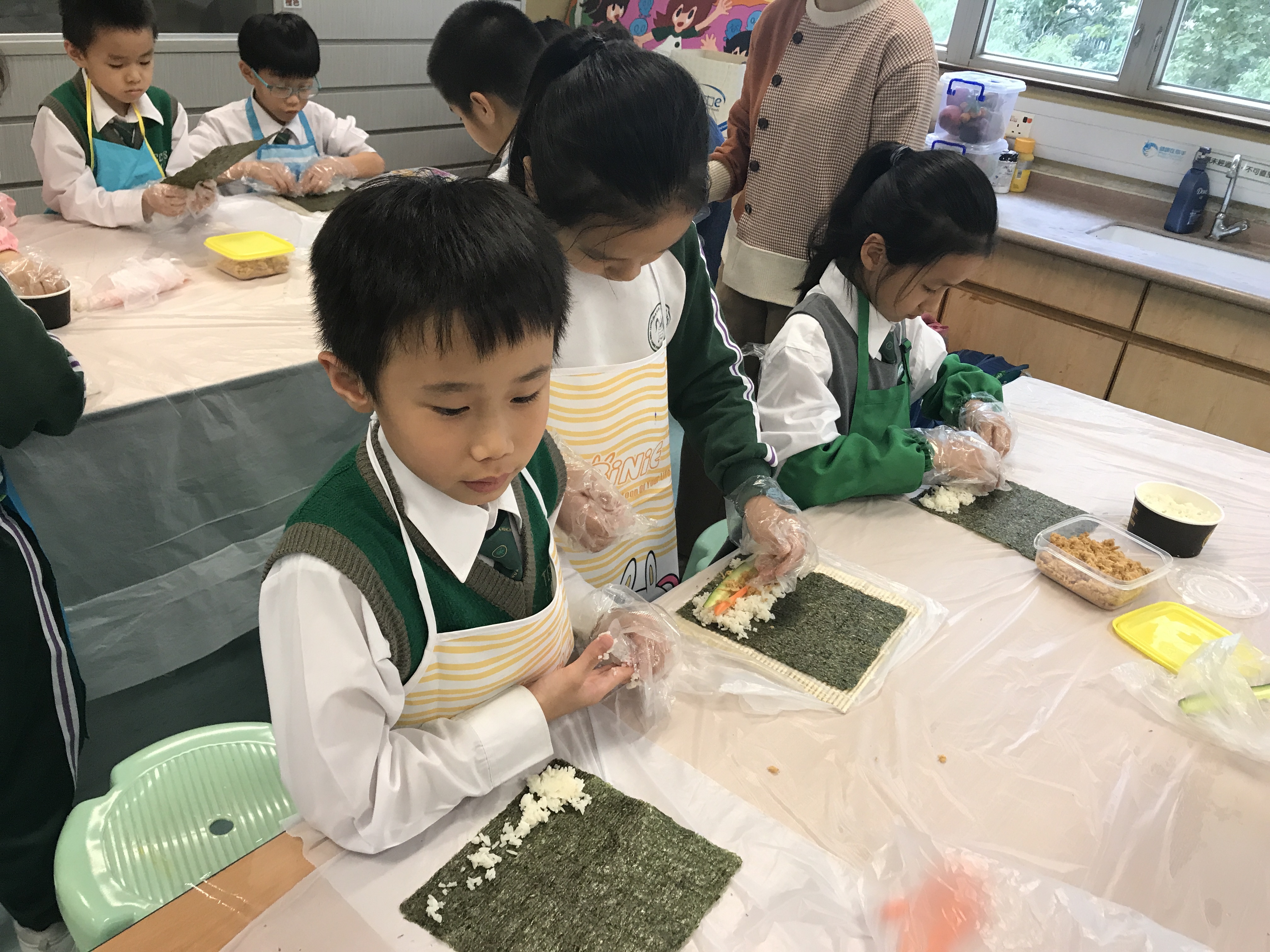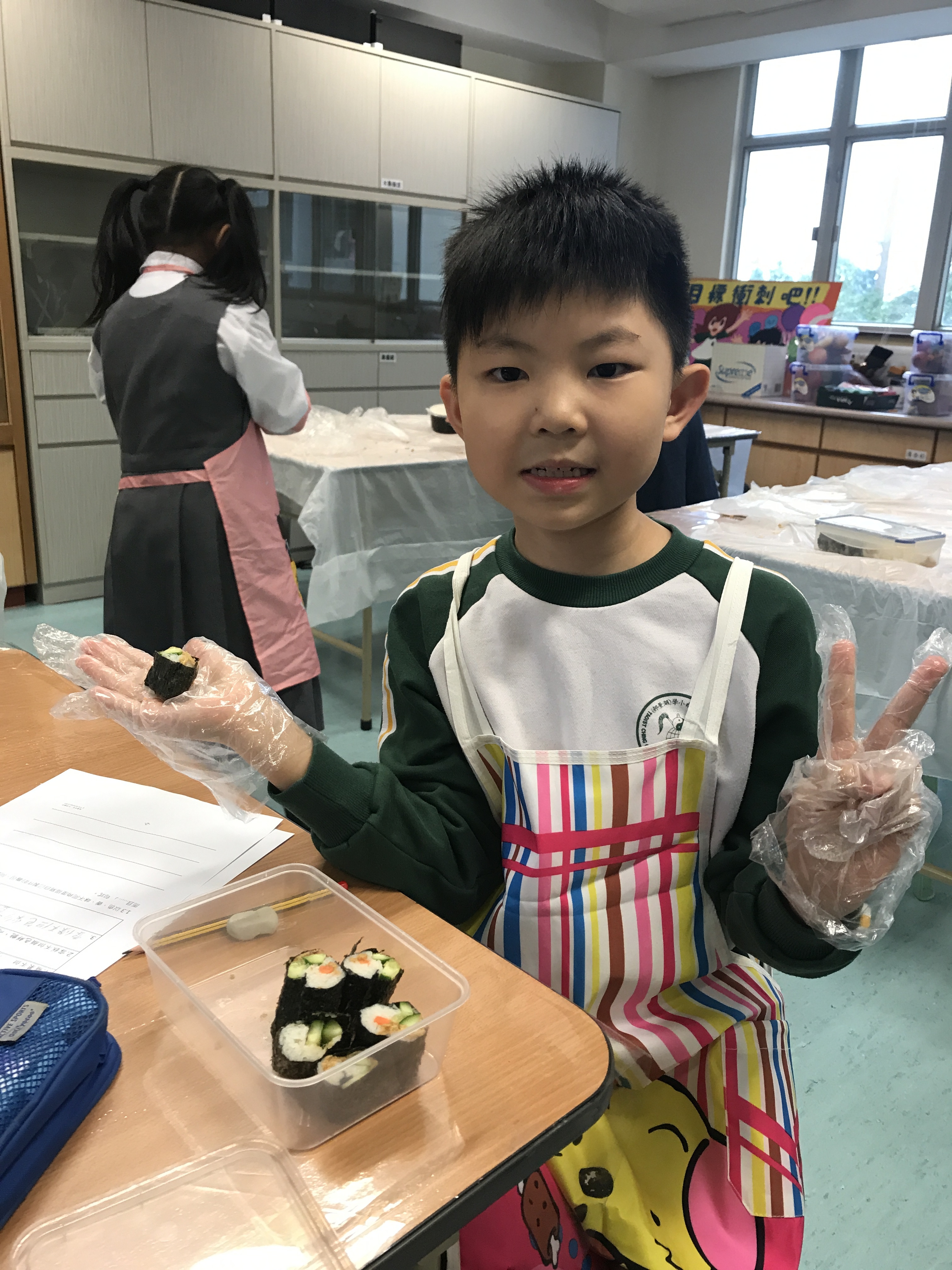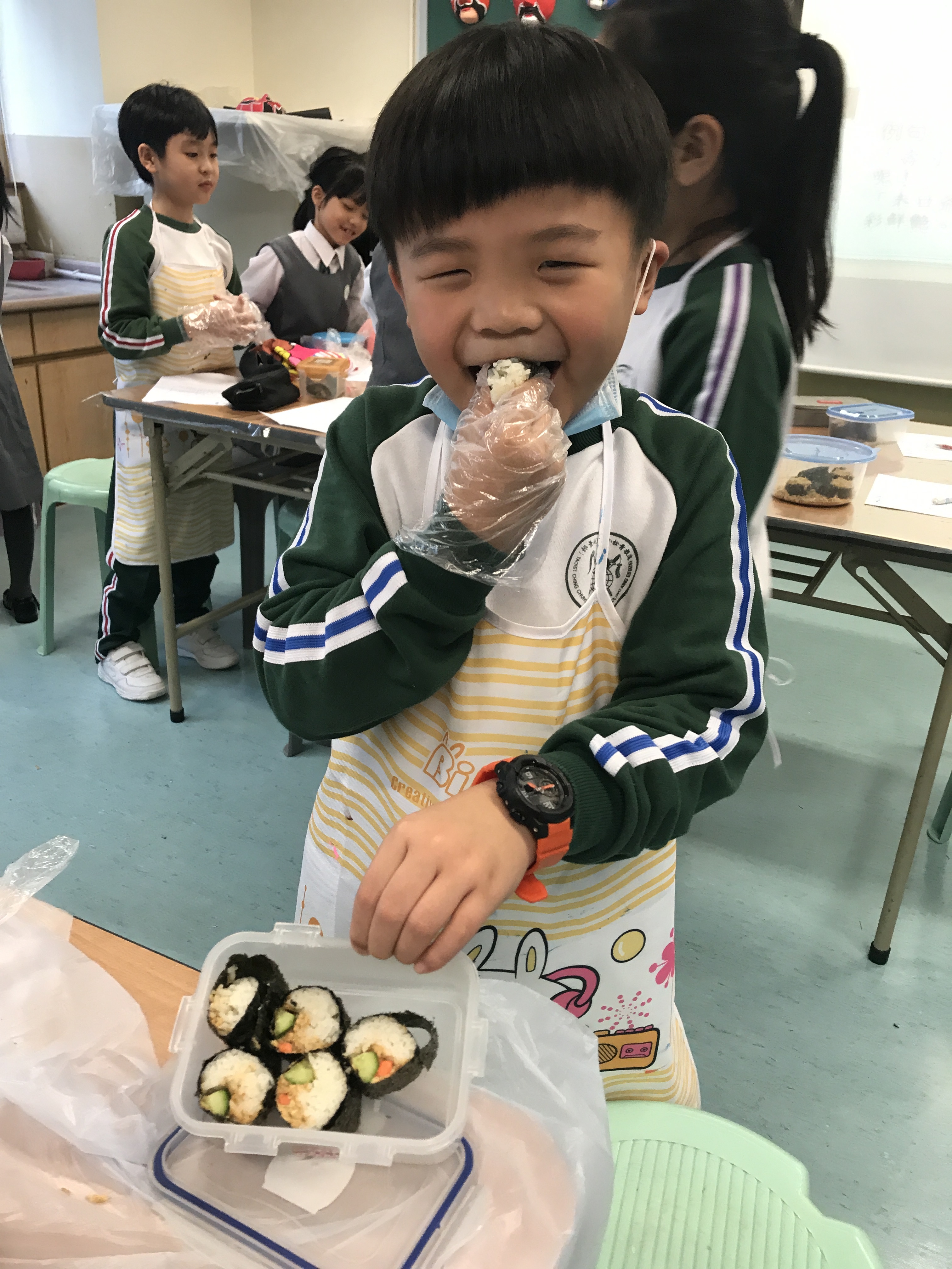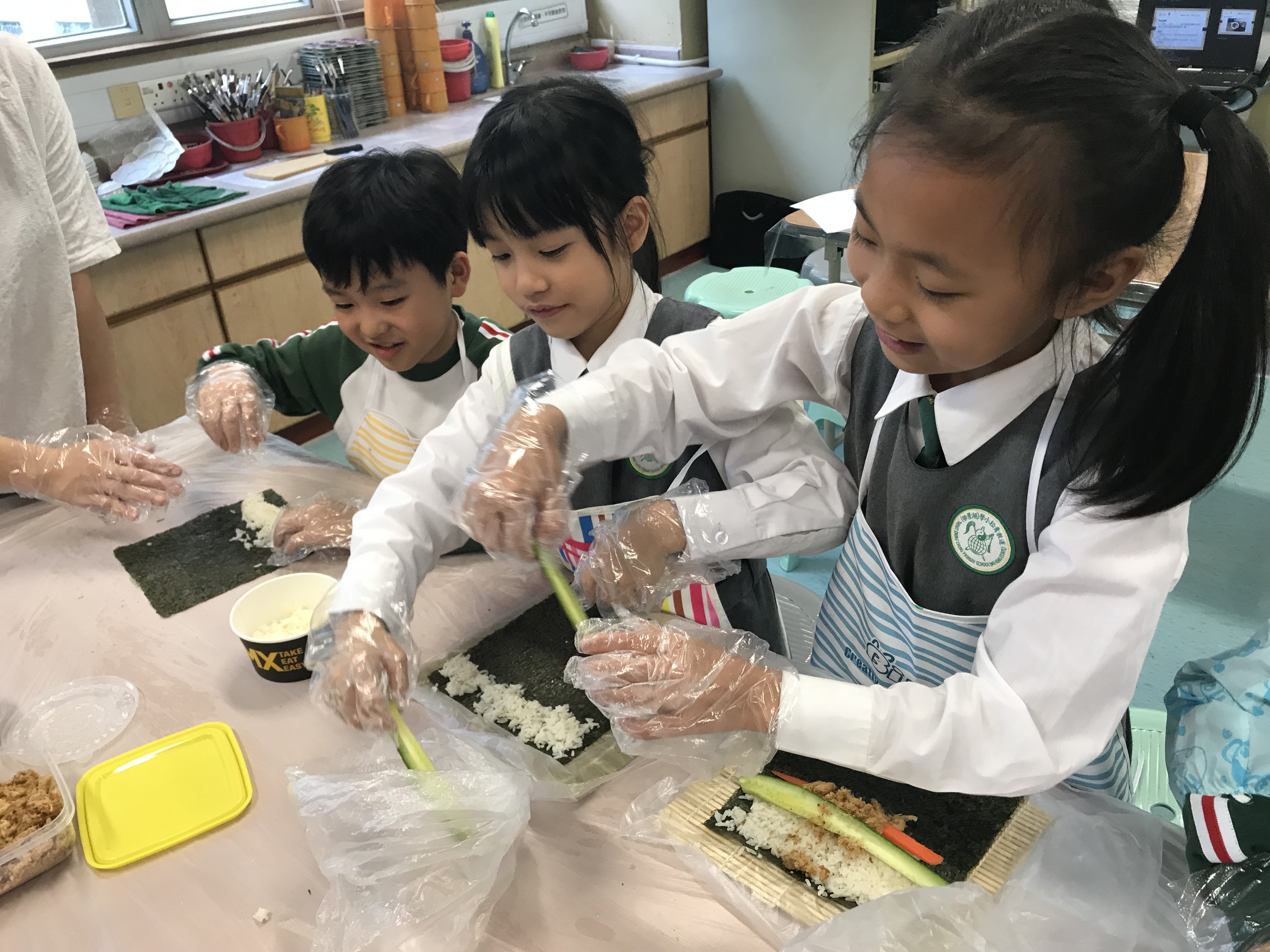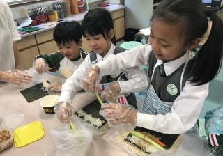 部份2A及3A班的學生參加了由太陽樹教育中心舉辦的「邊讀邊煮邊寫推廣中文計劃」。在活動中,他們化身「壽司小廚神」,透過欣賞繪本圖書及親身製作壽司,學習中文寫作的技巧,提升學習中文的興趣。看他們吃得津津有味,看來他們都很滿意自己製作的壽司呢!