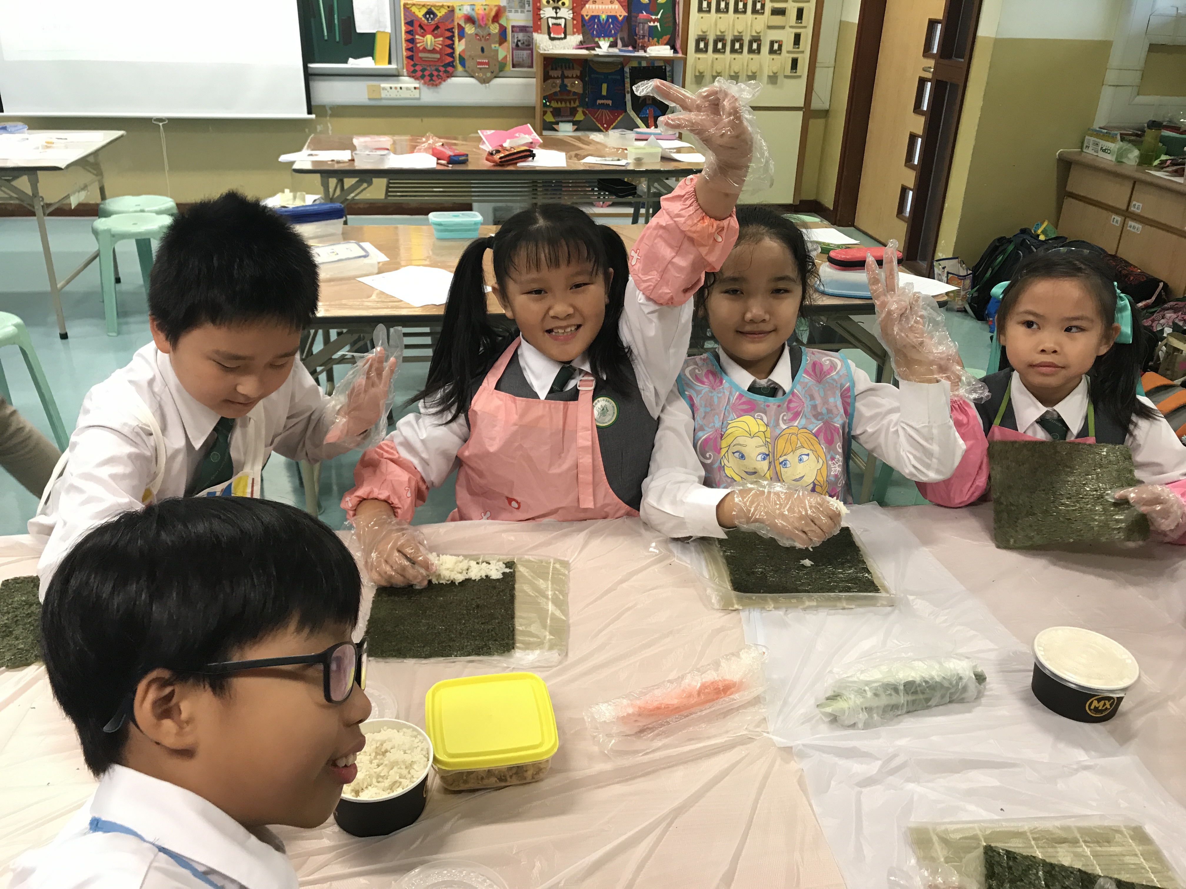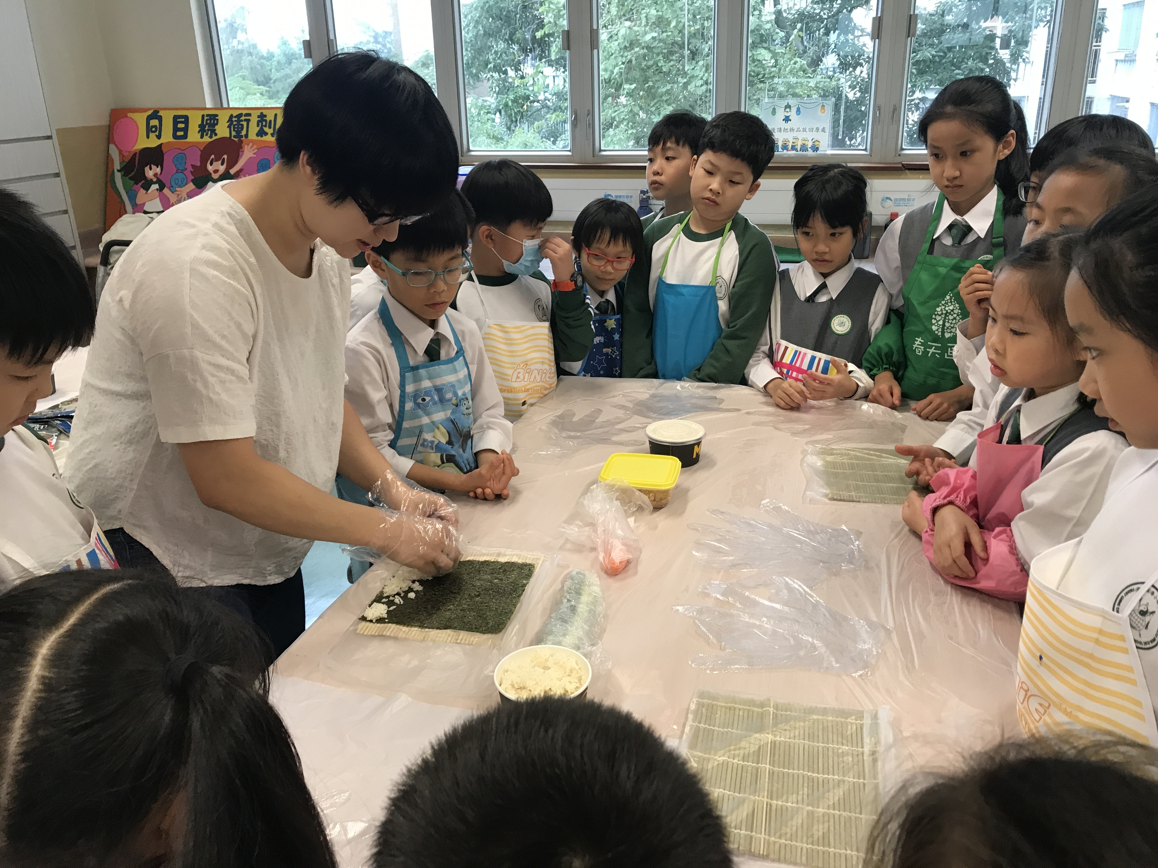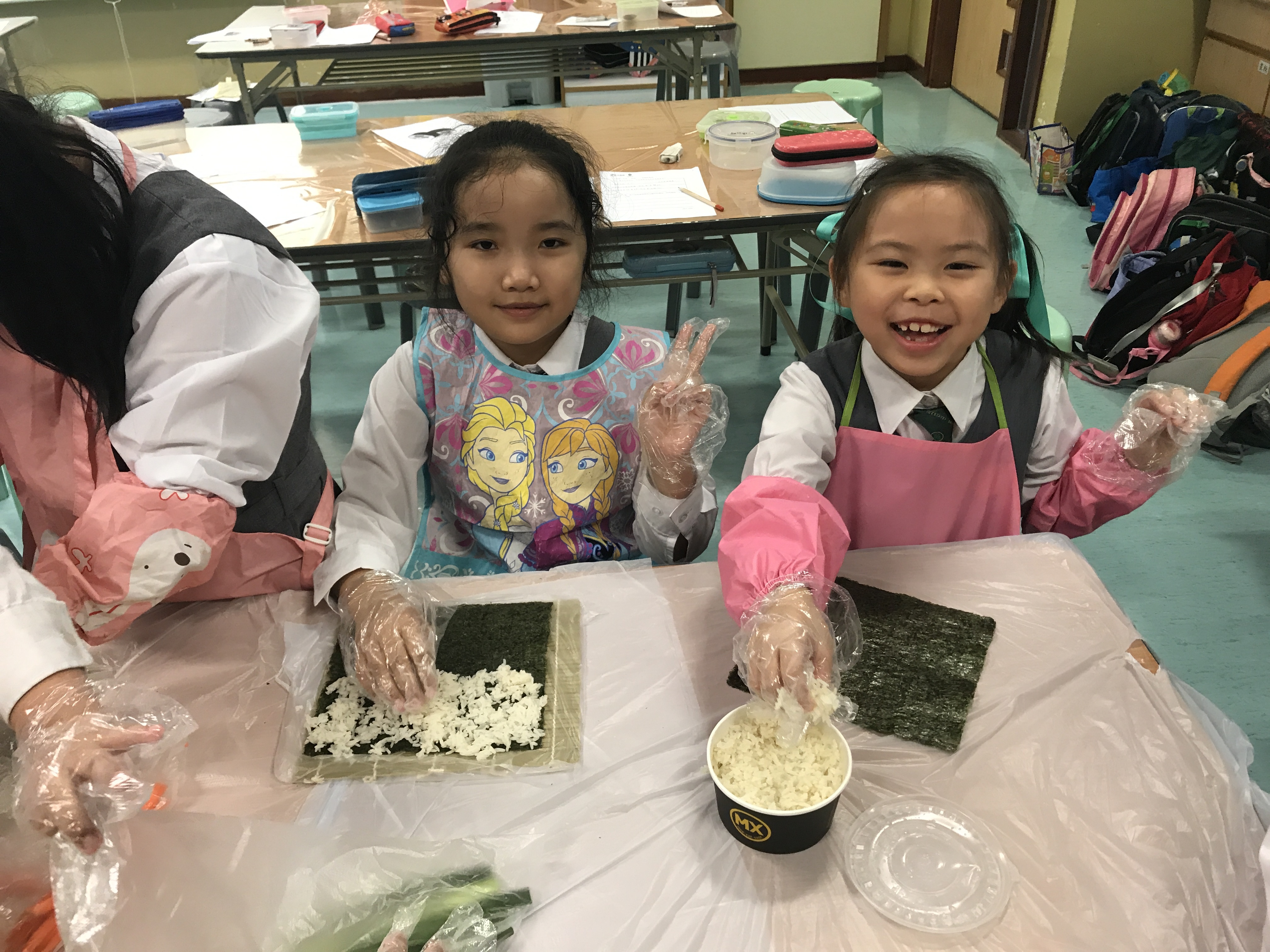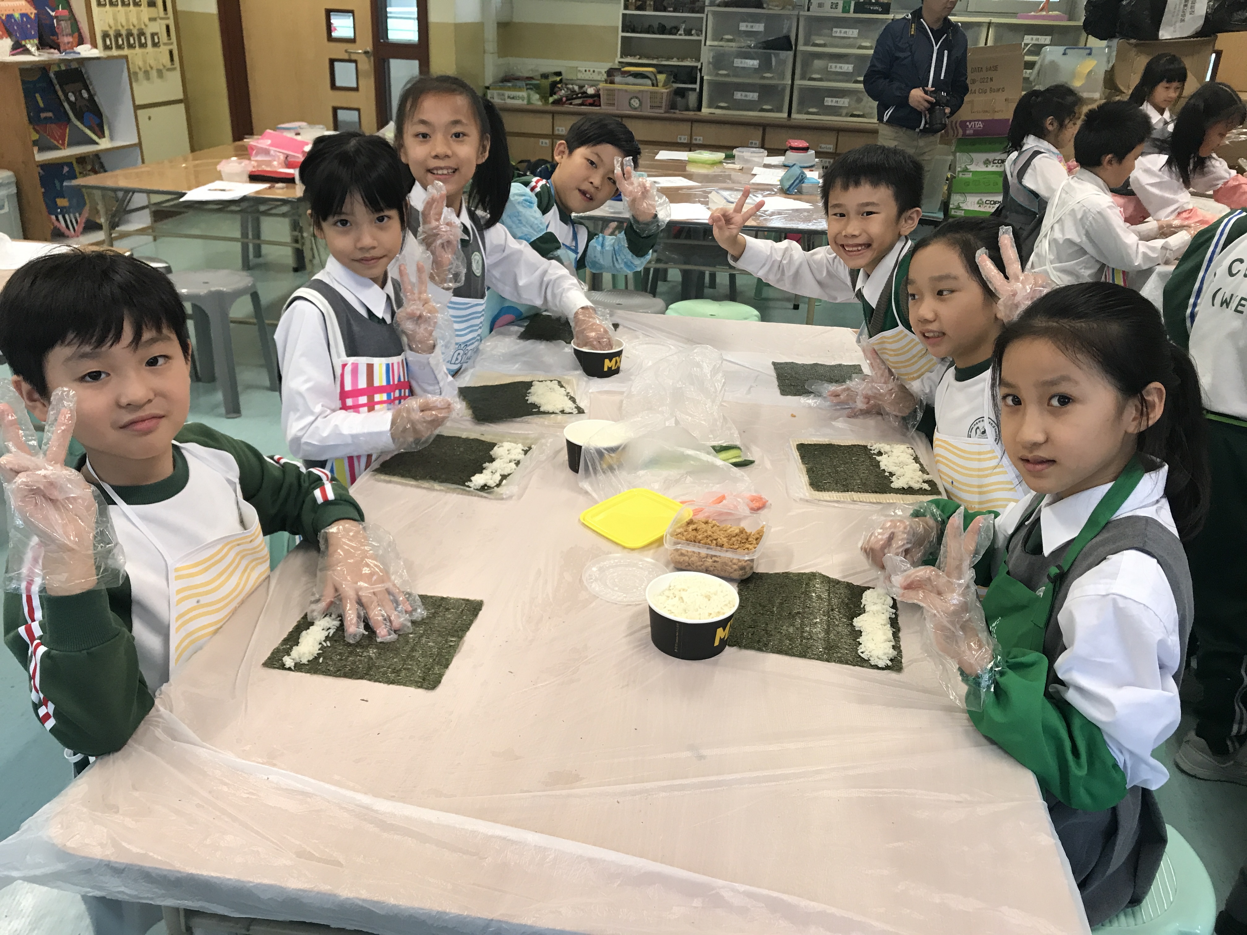 部份2A及3A班的學生參加了由太陽樹教育中心舉辦的「邊讀邊煮邊寫推廣中文計劃」。在活動中,他們化身「壽司小廚神」,透過欣賞繪本圖書及親身製作壽司,學習中文寫作的技巧,提升學習中文的興趣。看他們吃得津津有味,看來他們都很滿意自己製作的壽司呢!