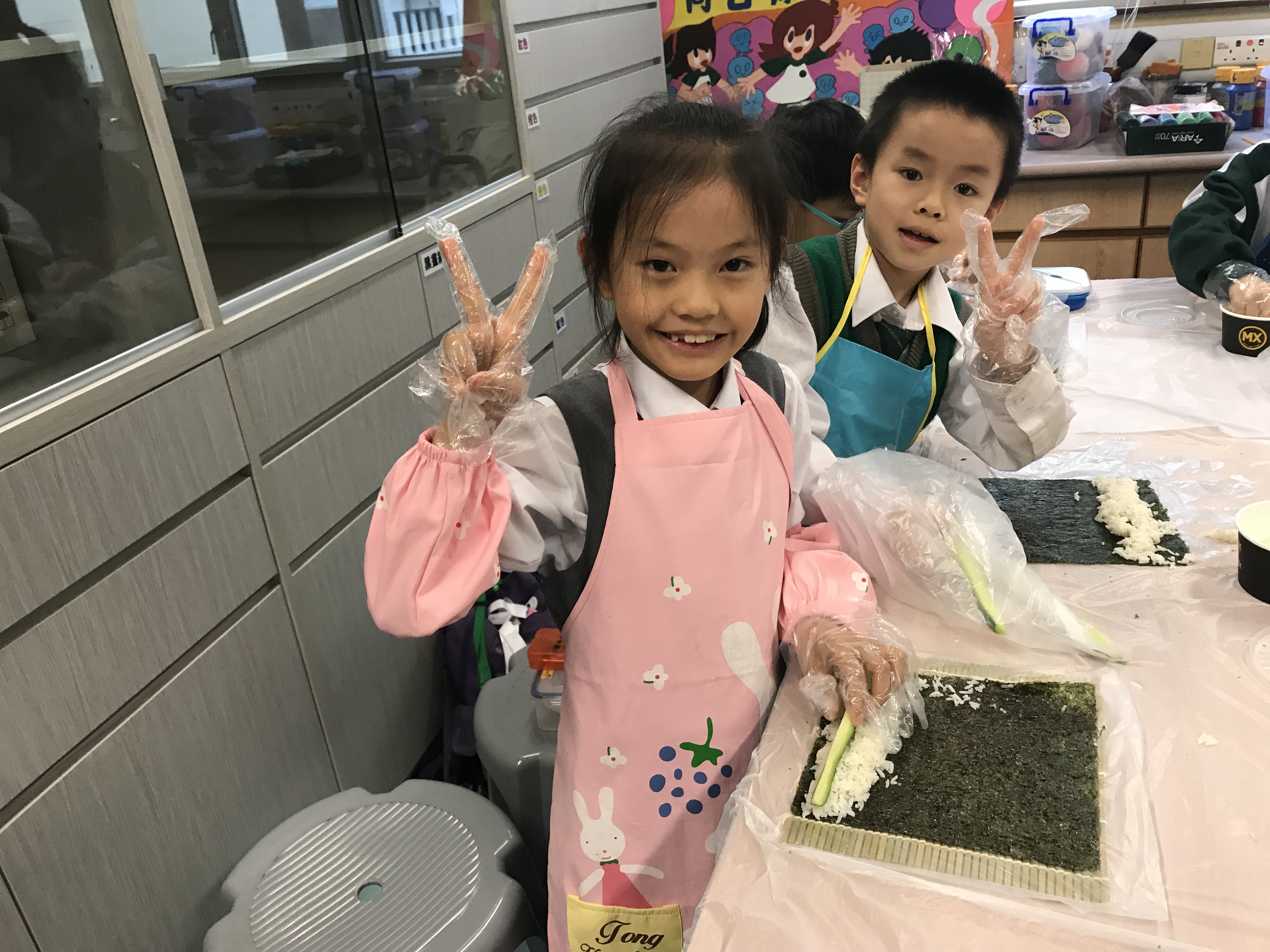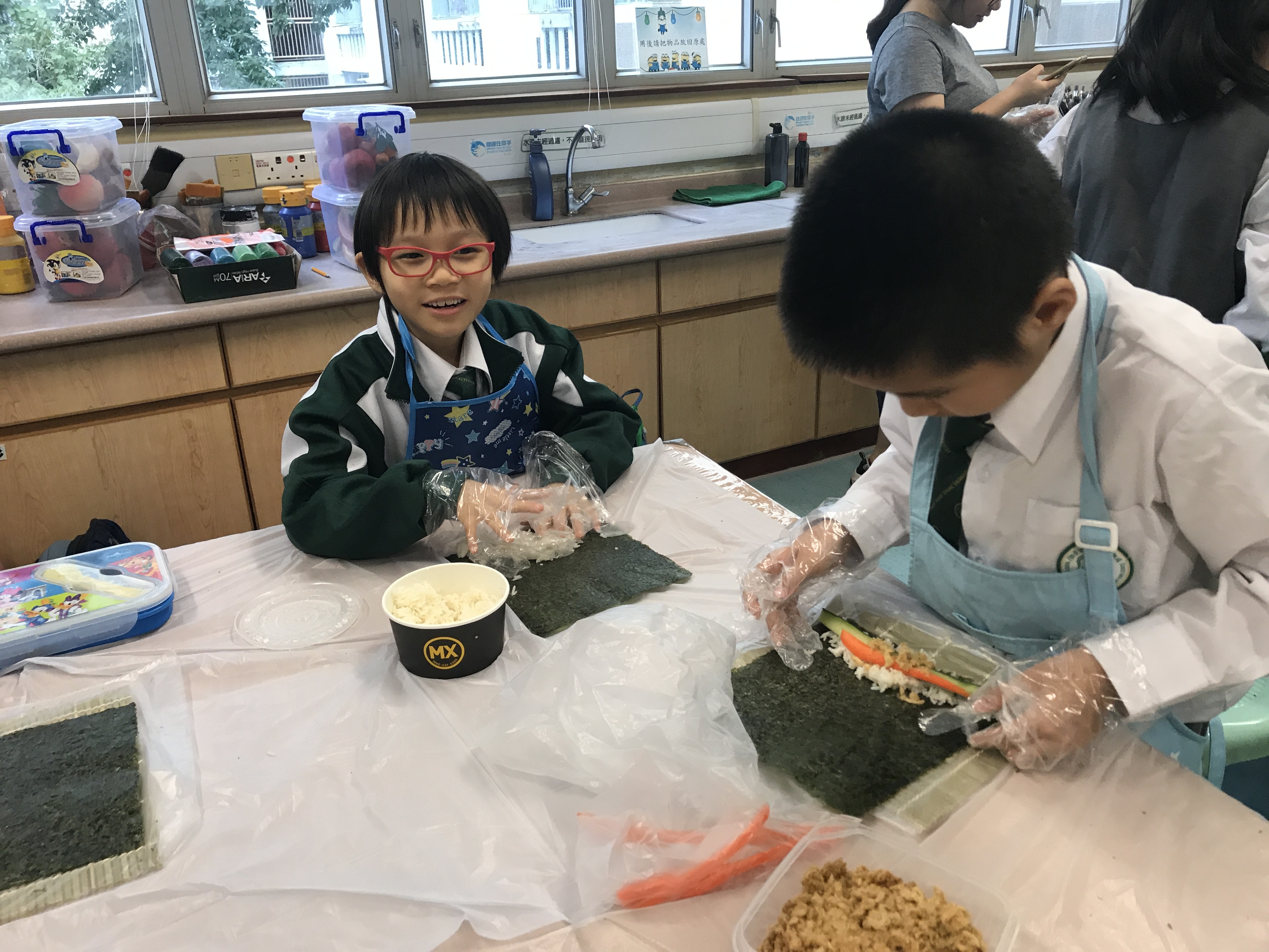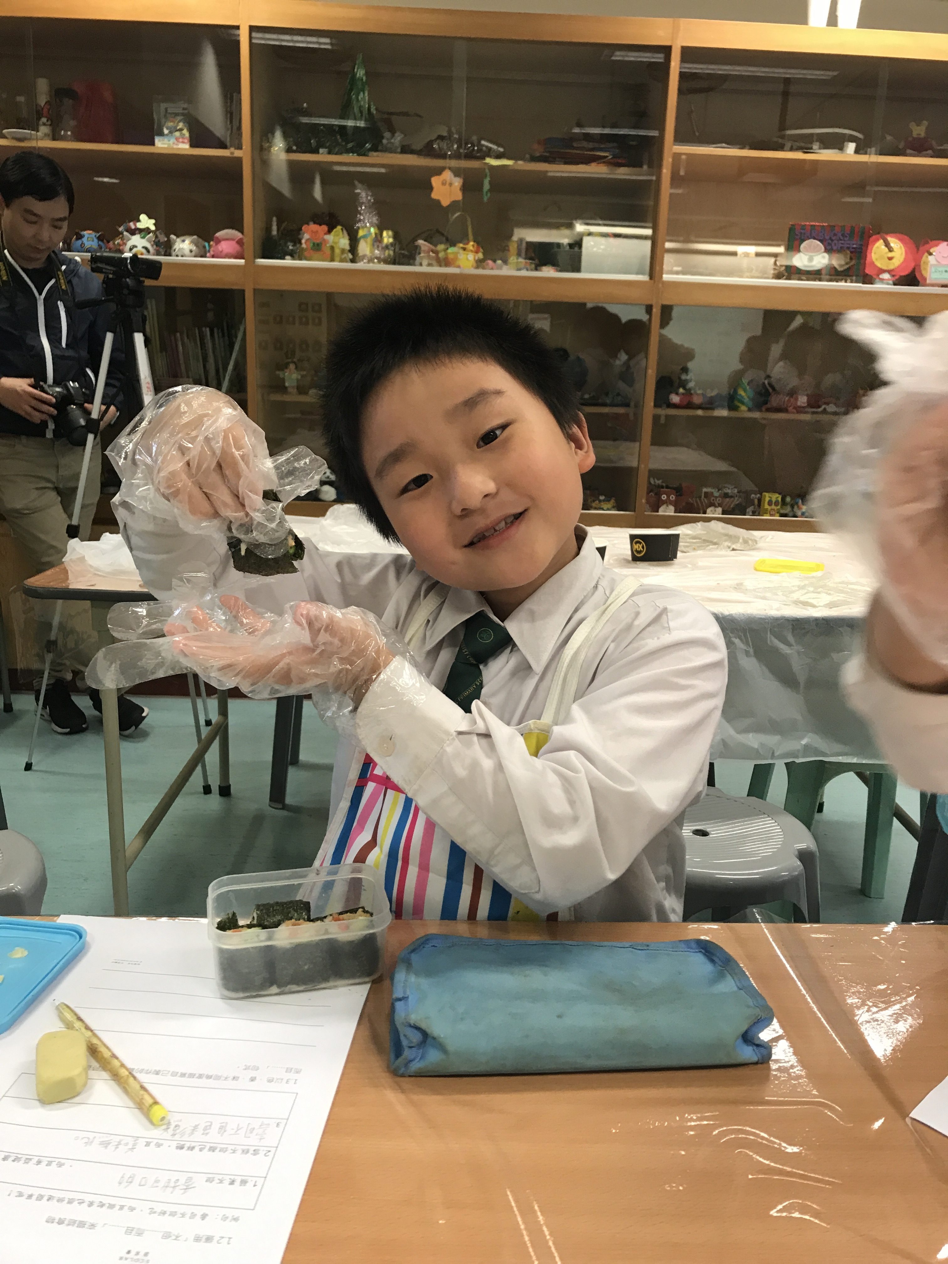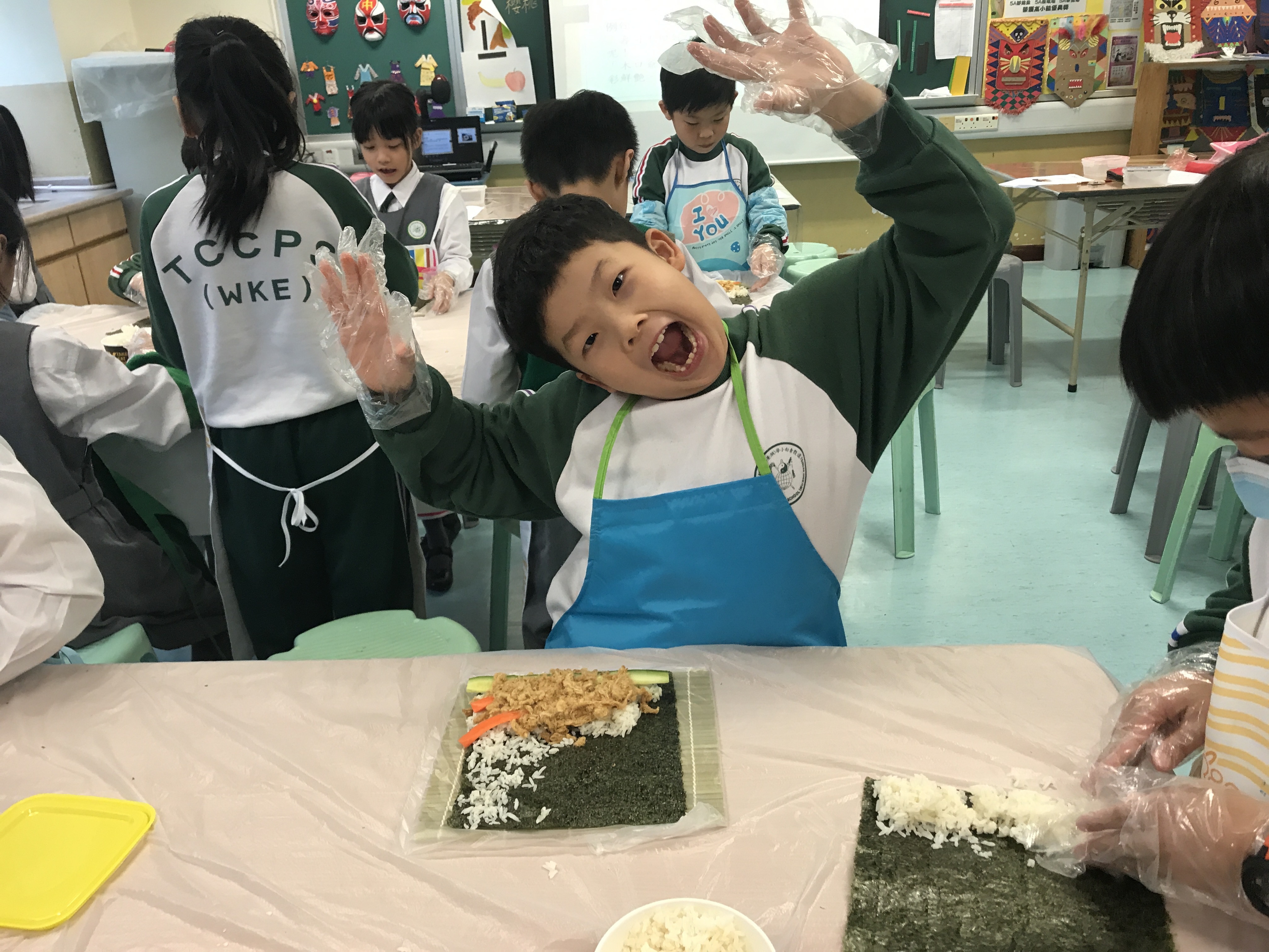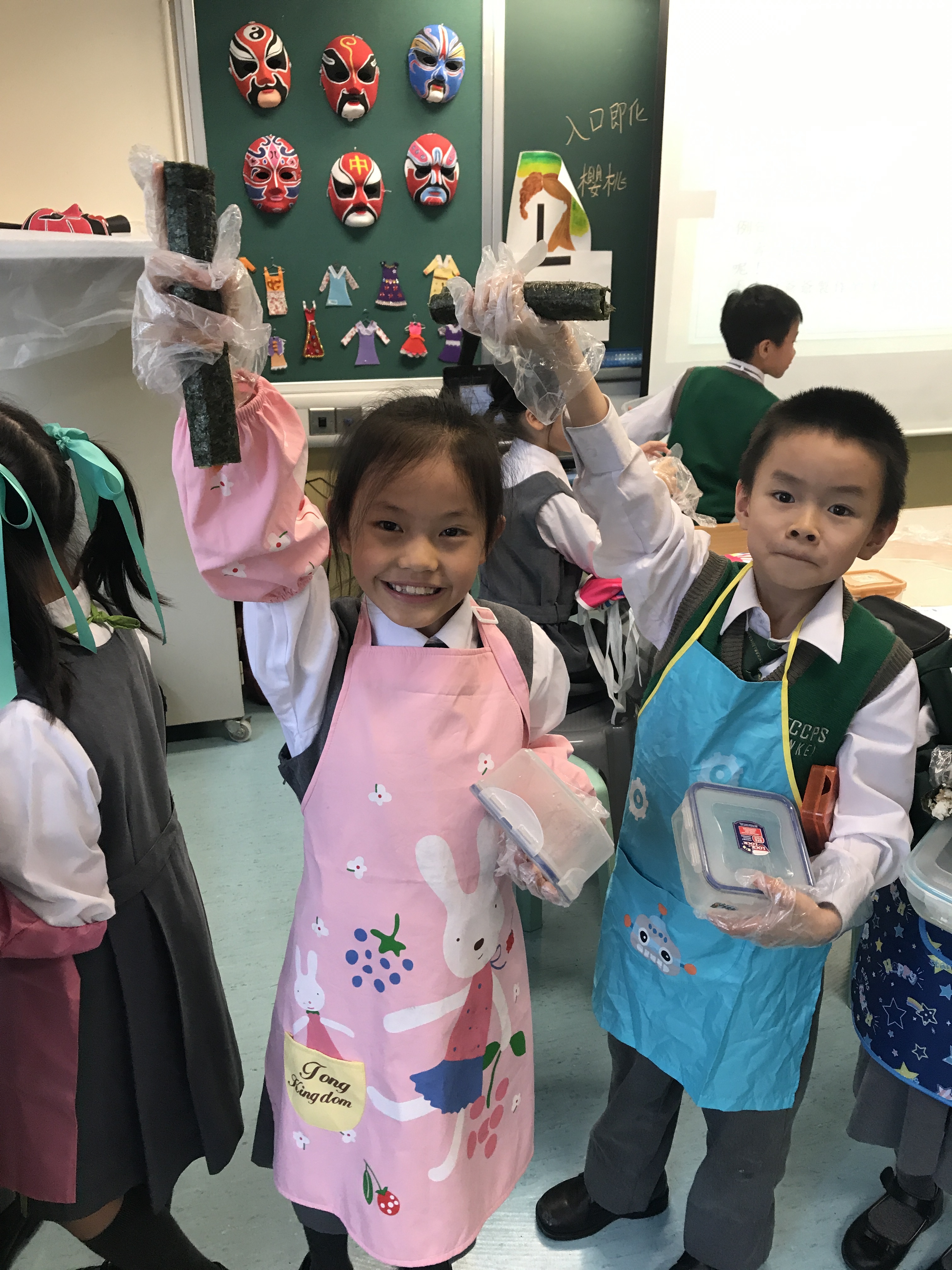 部份2A及3A班的學生參加了由太陽樹教育中心舉辦的「邊讀邊煮邊寫推廣中文計劃」。在活動中,他們化身「壽司小廚神」,透過欣賞繪本圖書及親身製作壽司,學習中文寫作的技巧,提升學習中文的興趣。看他們吃得津津有味,看來他們都很滿意自己製作的壽司呢!