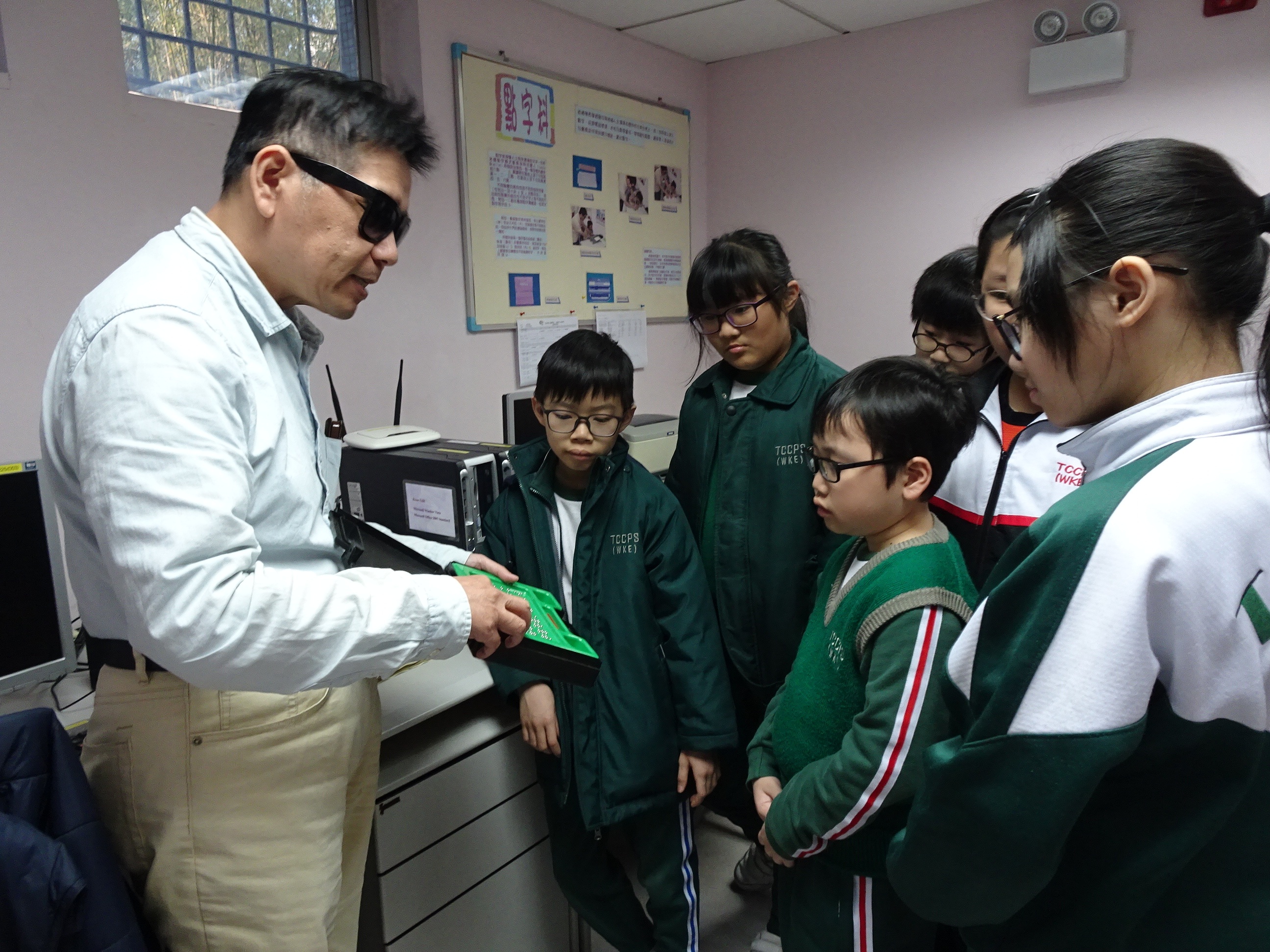 「義想兵團」長期義工小組成員前往香港盲人輔導會復康中心參觀及與視障人員進行傾談,了解視障人士的日常生活,獲益良多。
