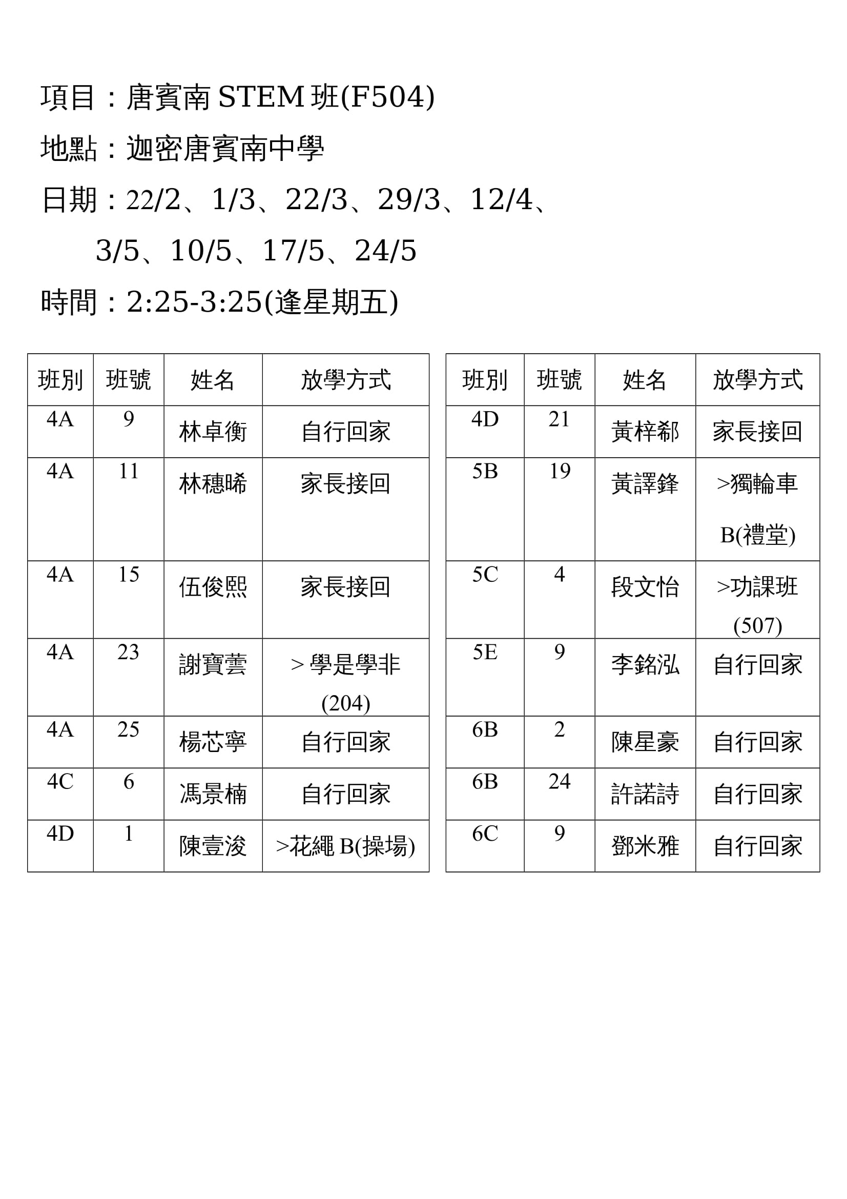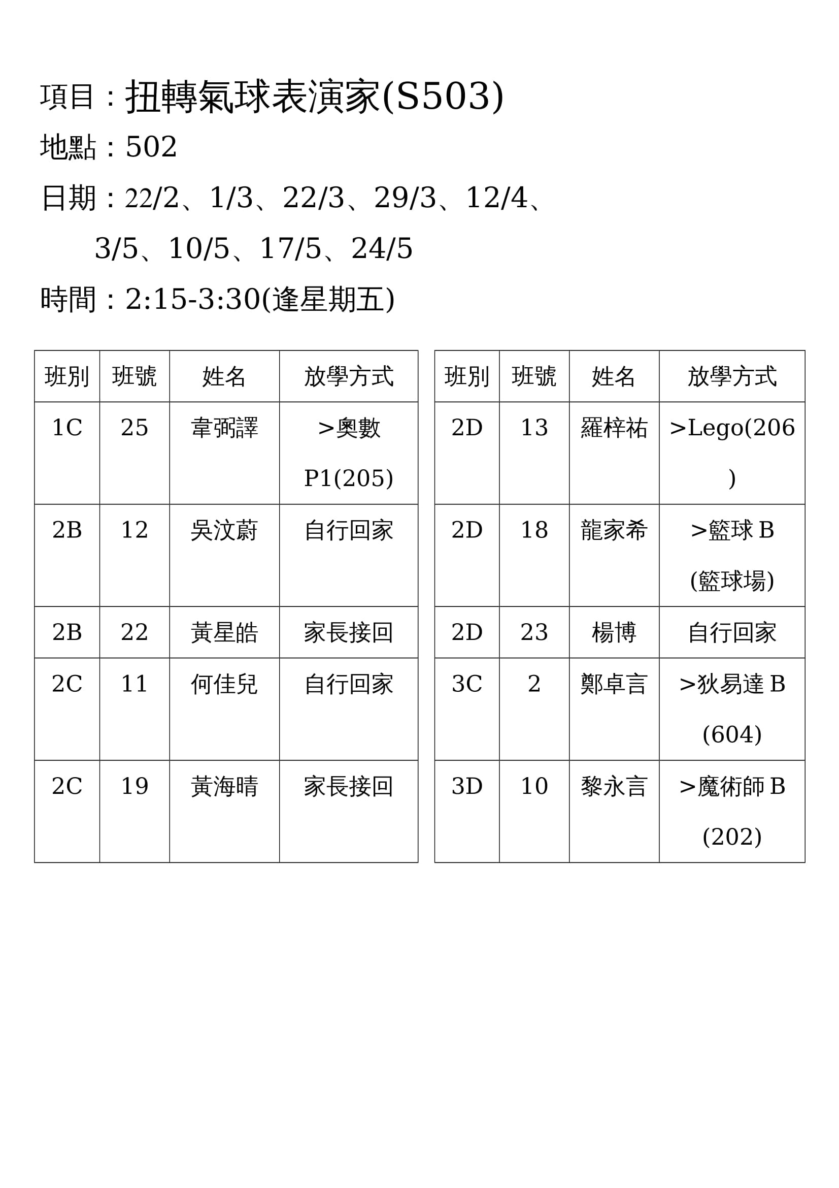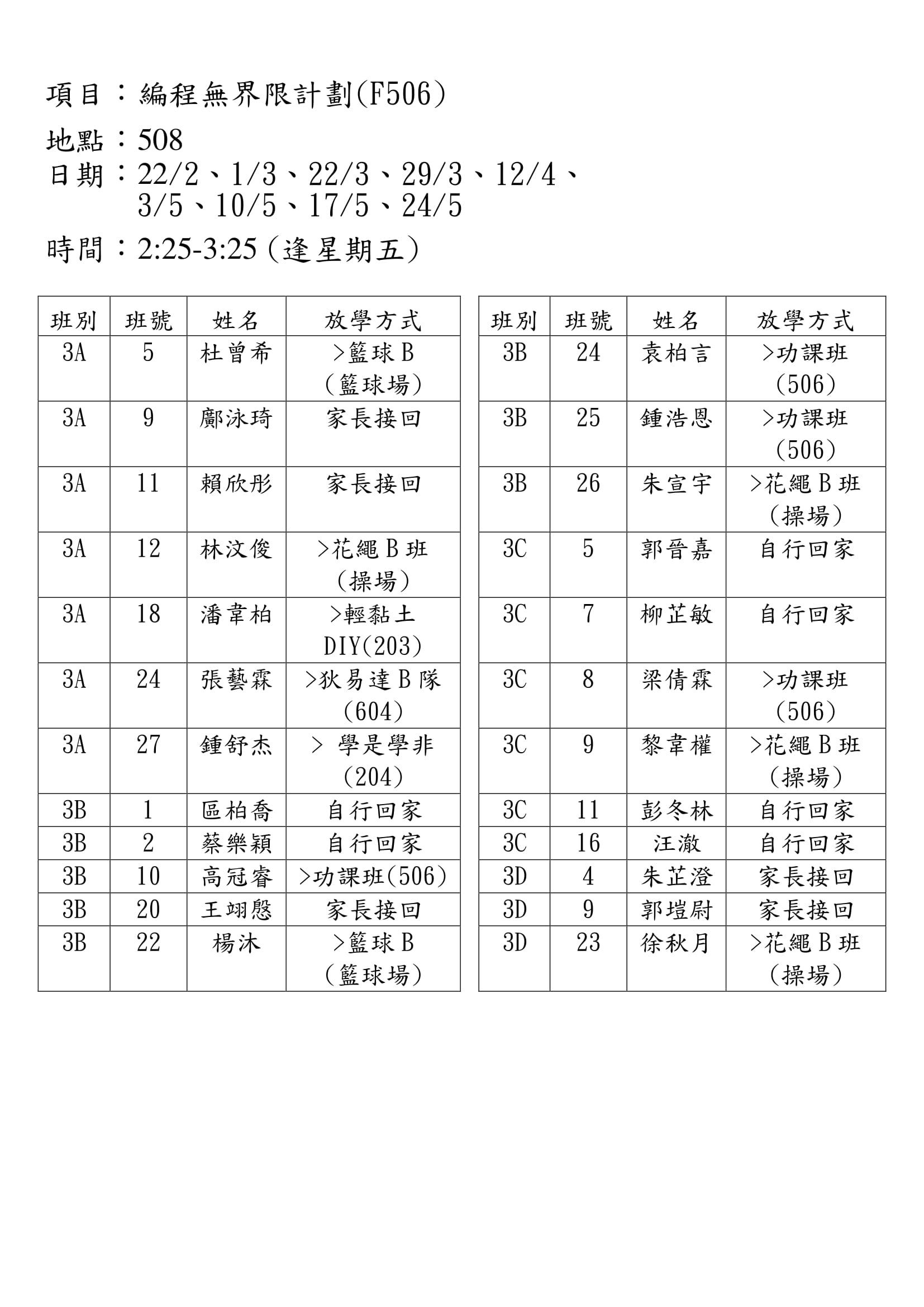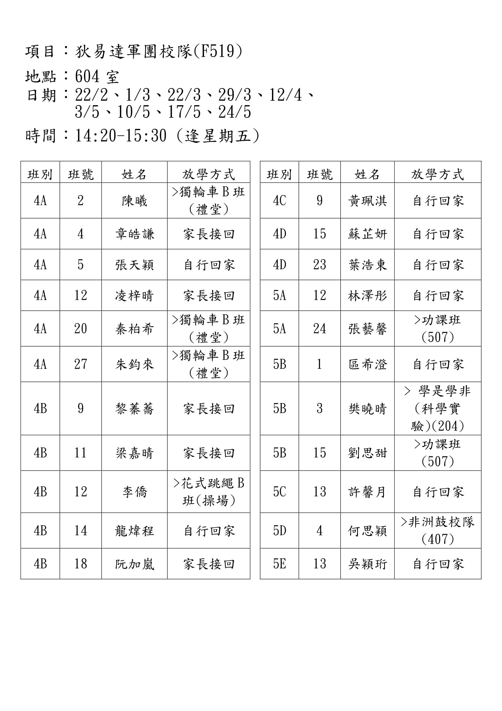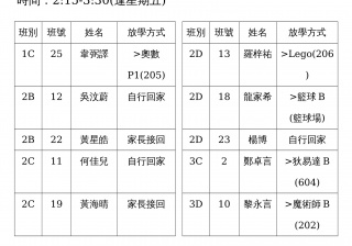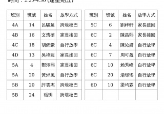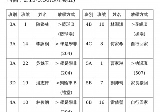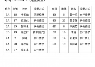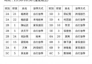 學校歸程隊路線及解散地點修訂資料