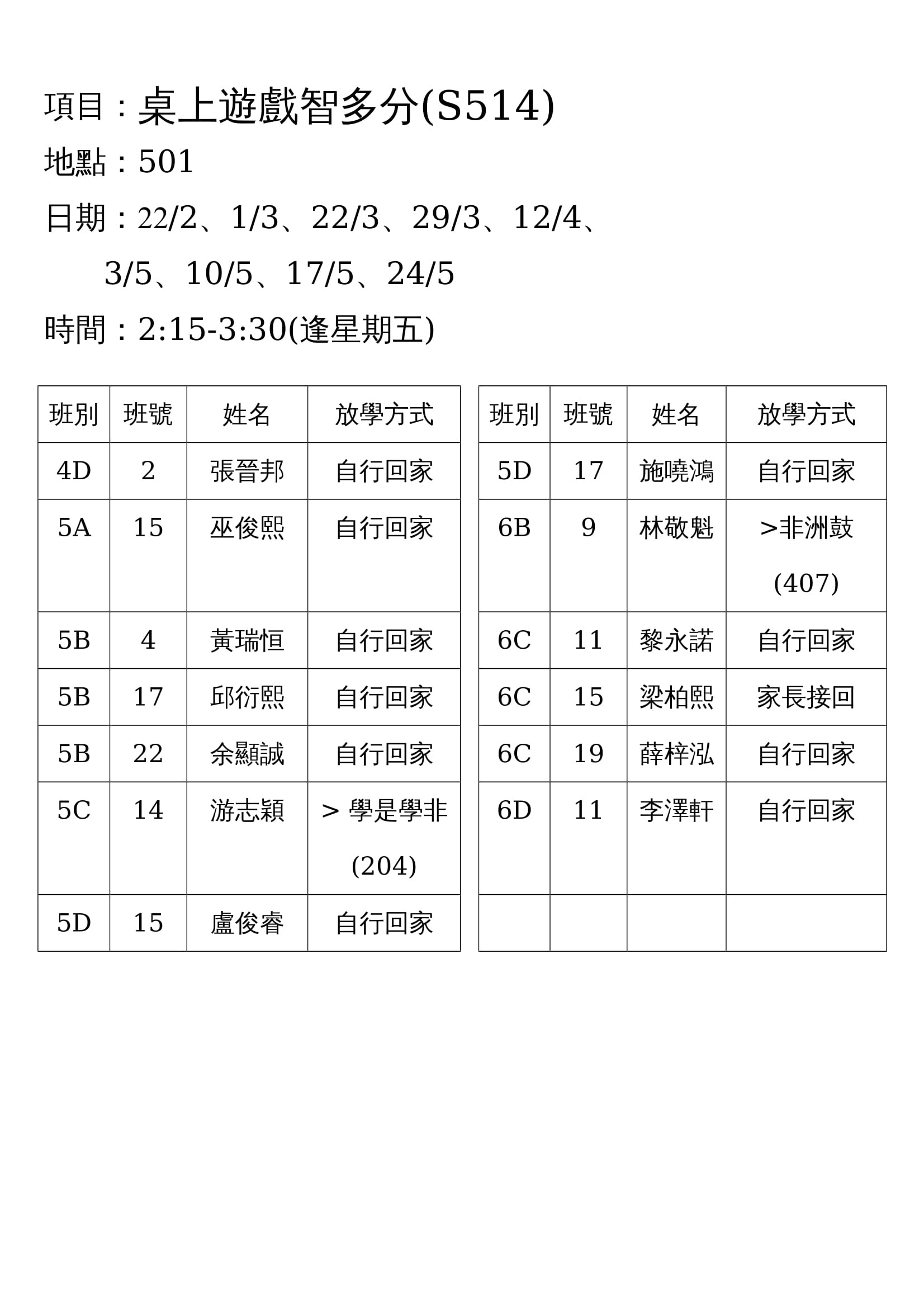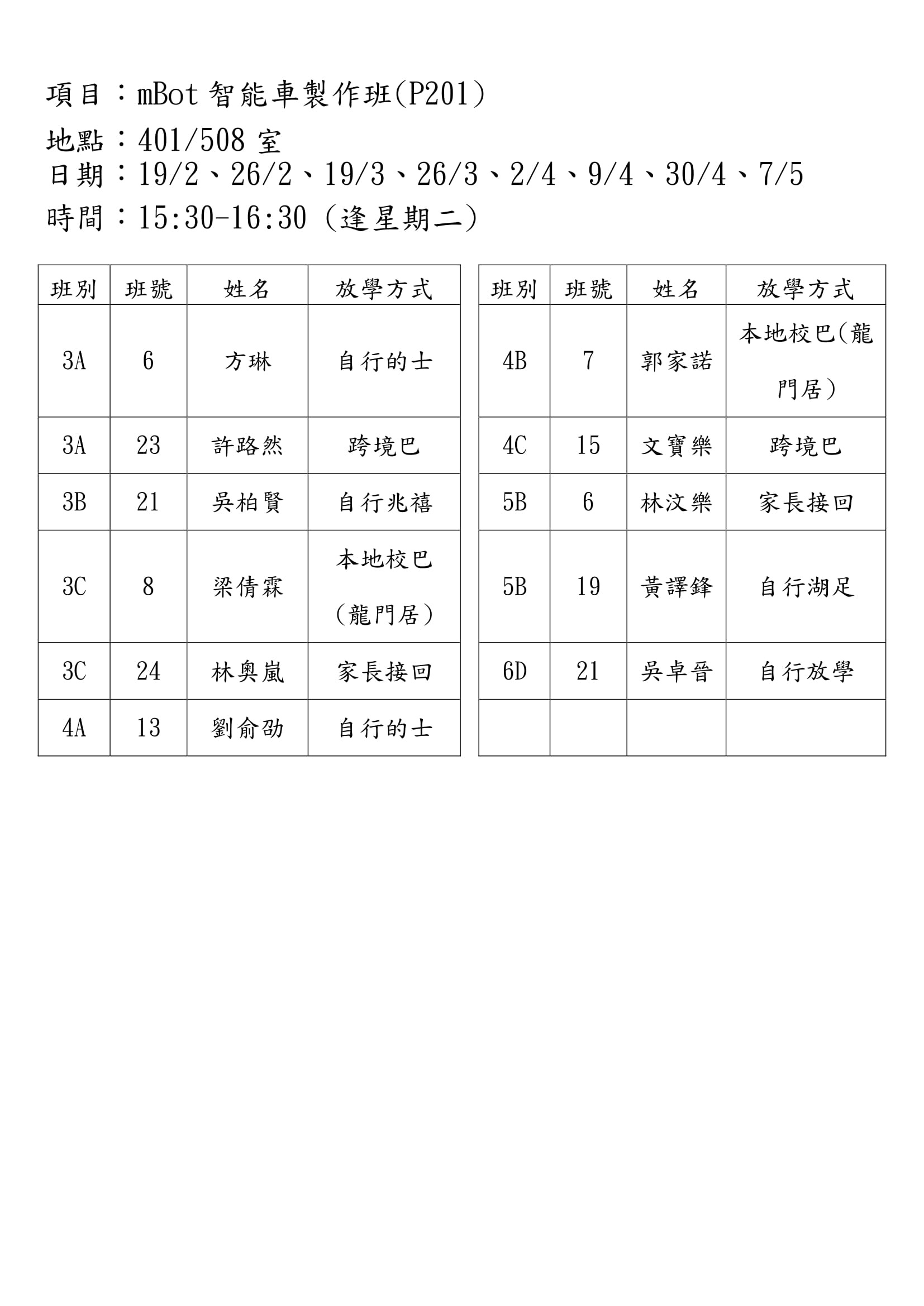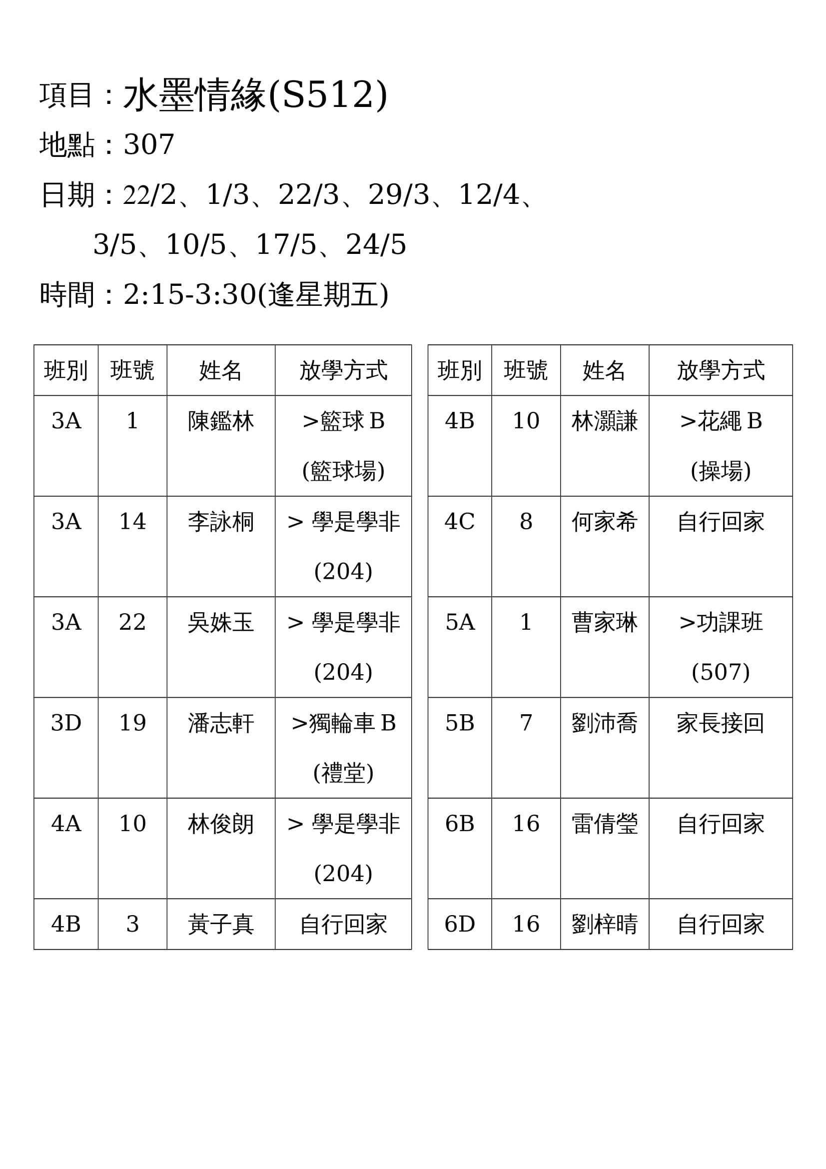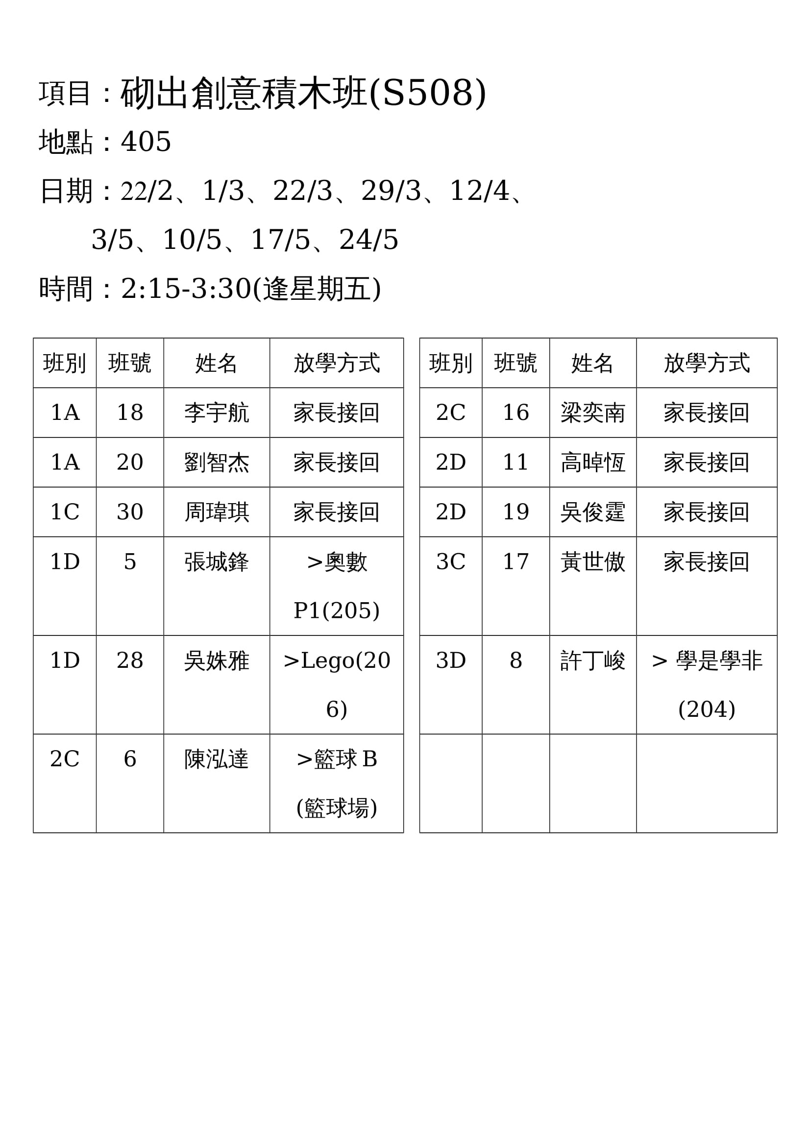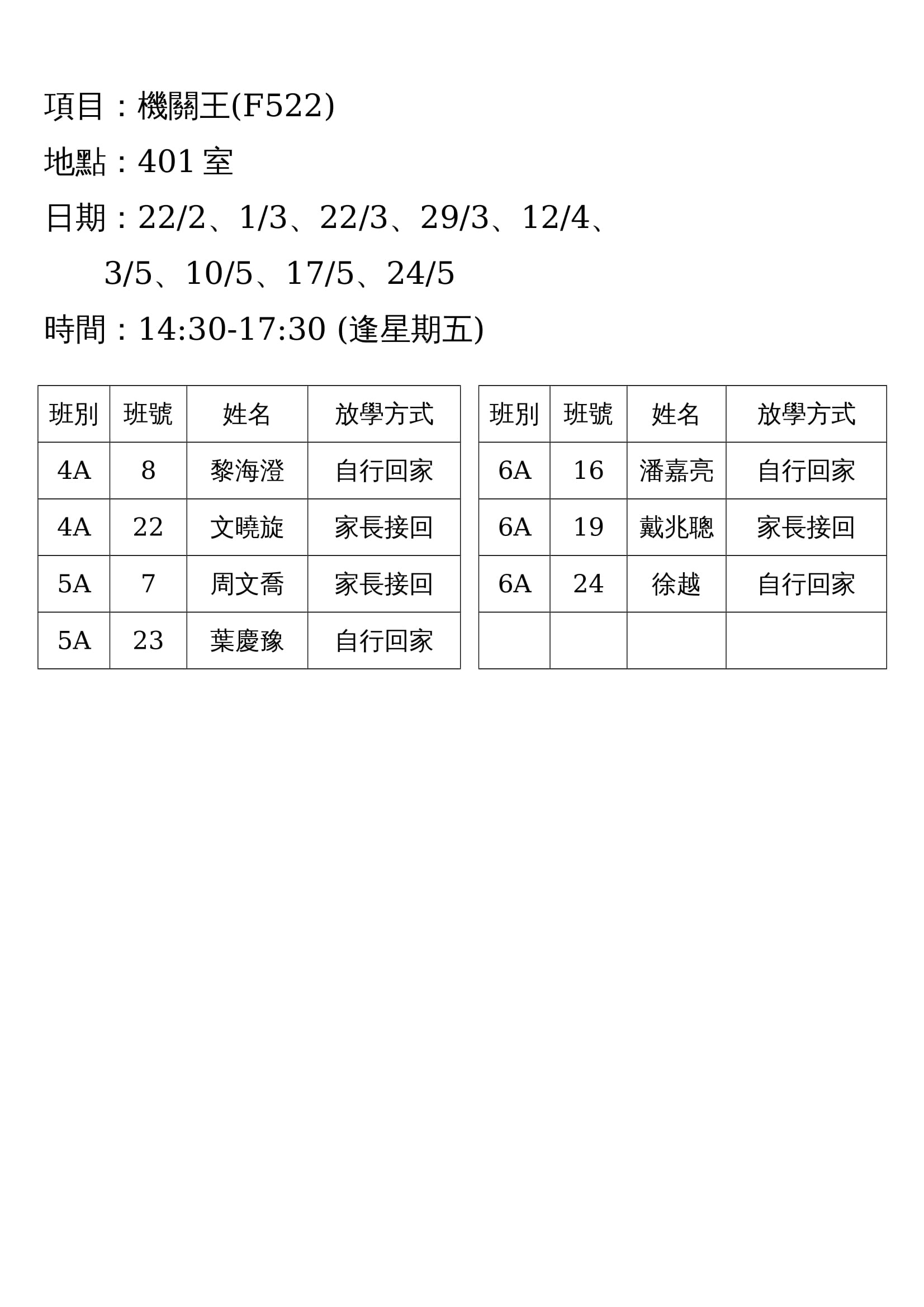 學校歸程隊路線及解散地點修訂資料