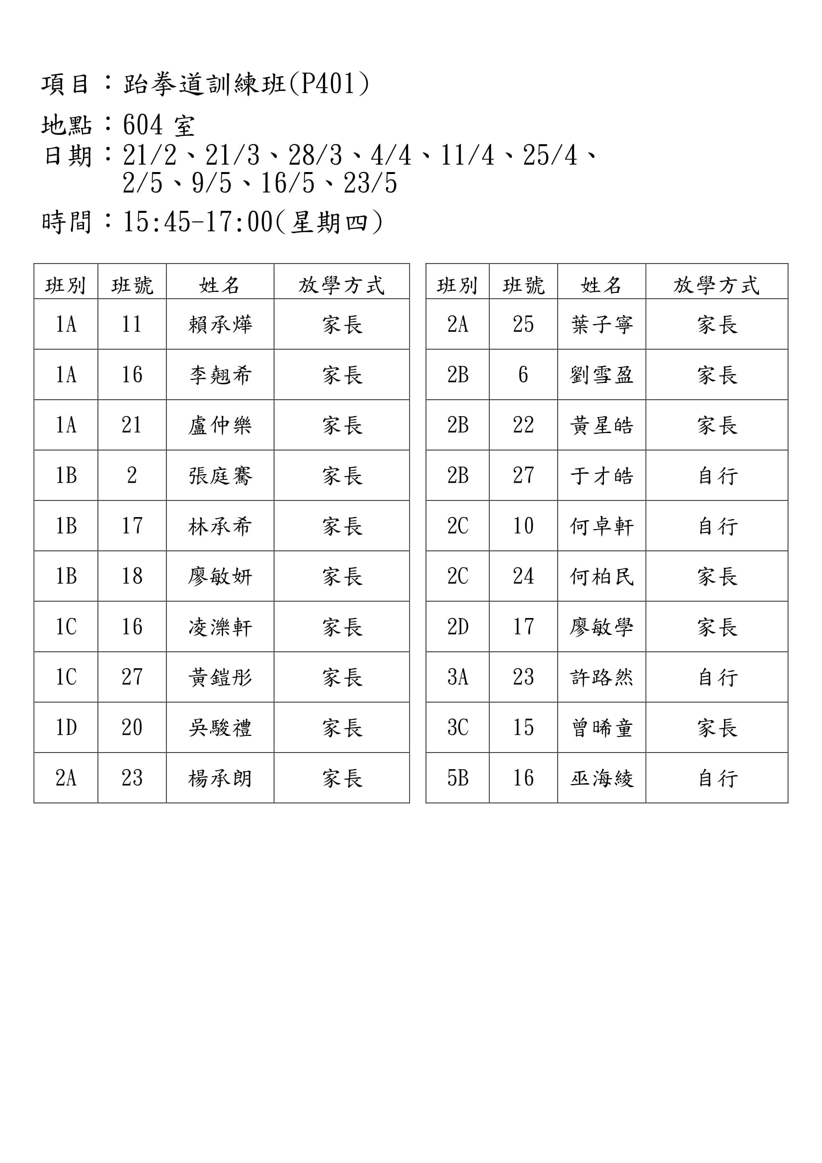 (P401)跆拳道訓練班