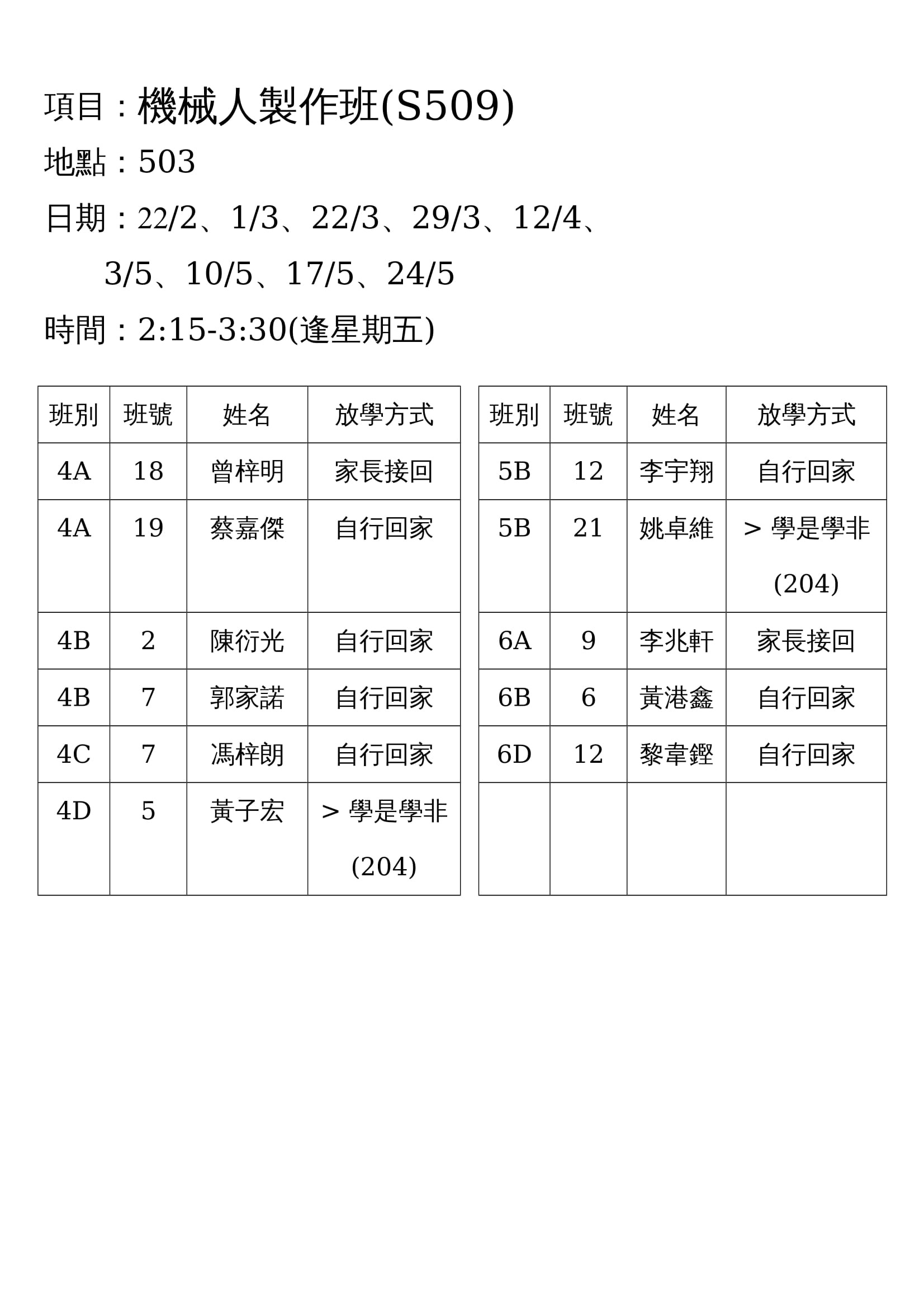 S509機械人製作班