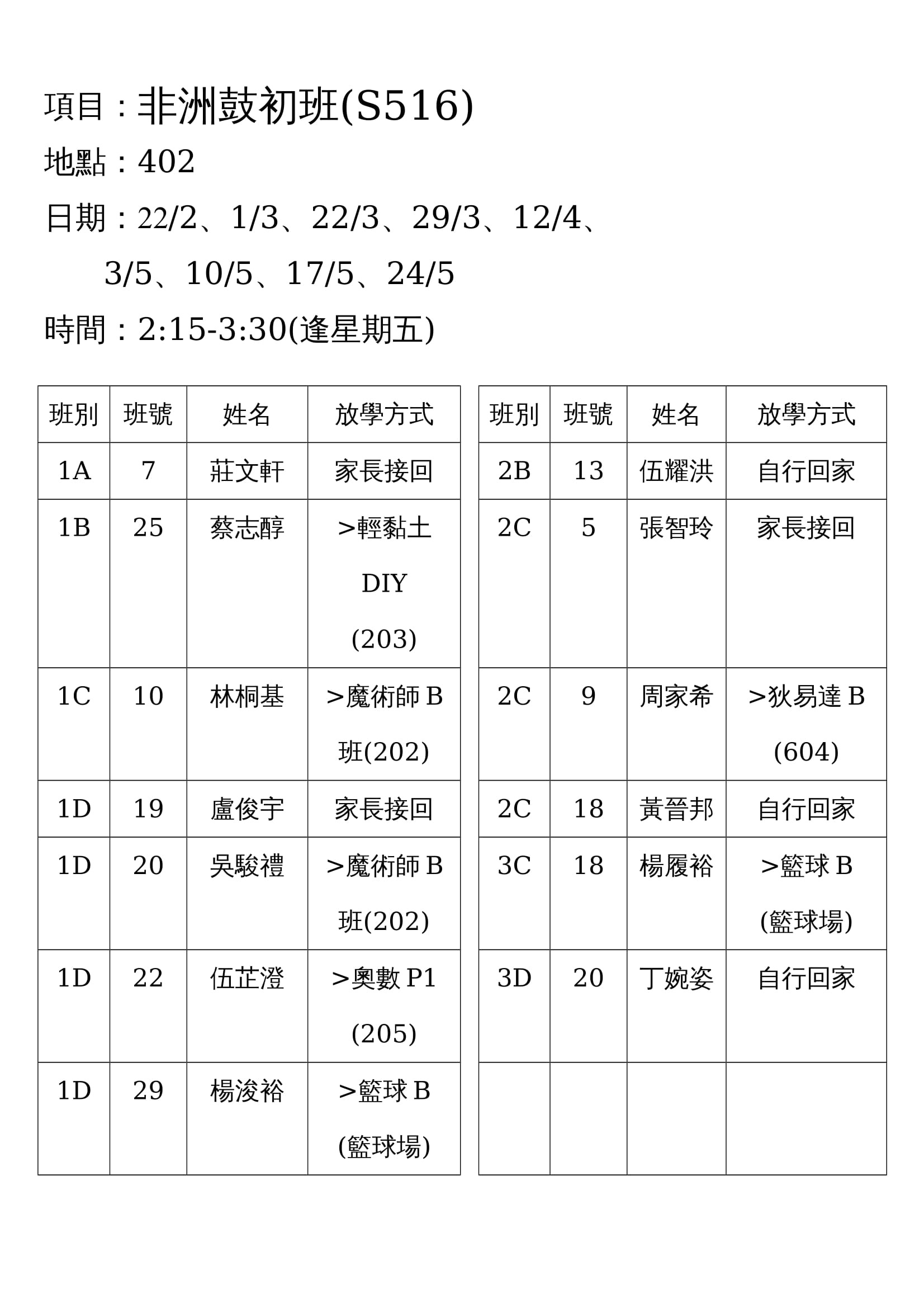 S516非洲鼓初班