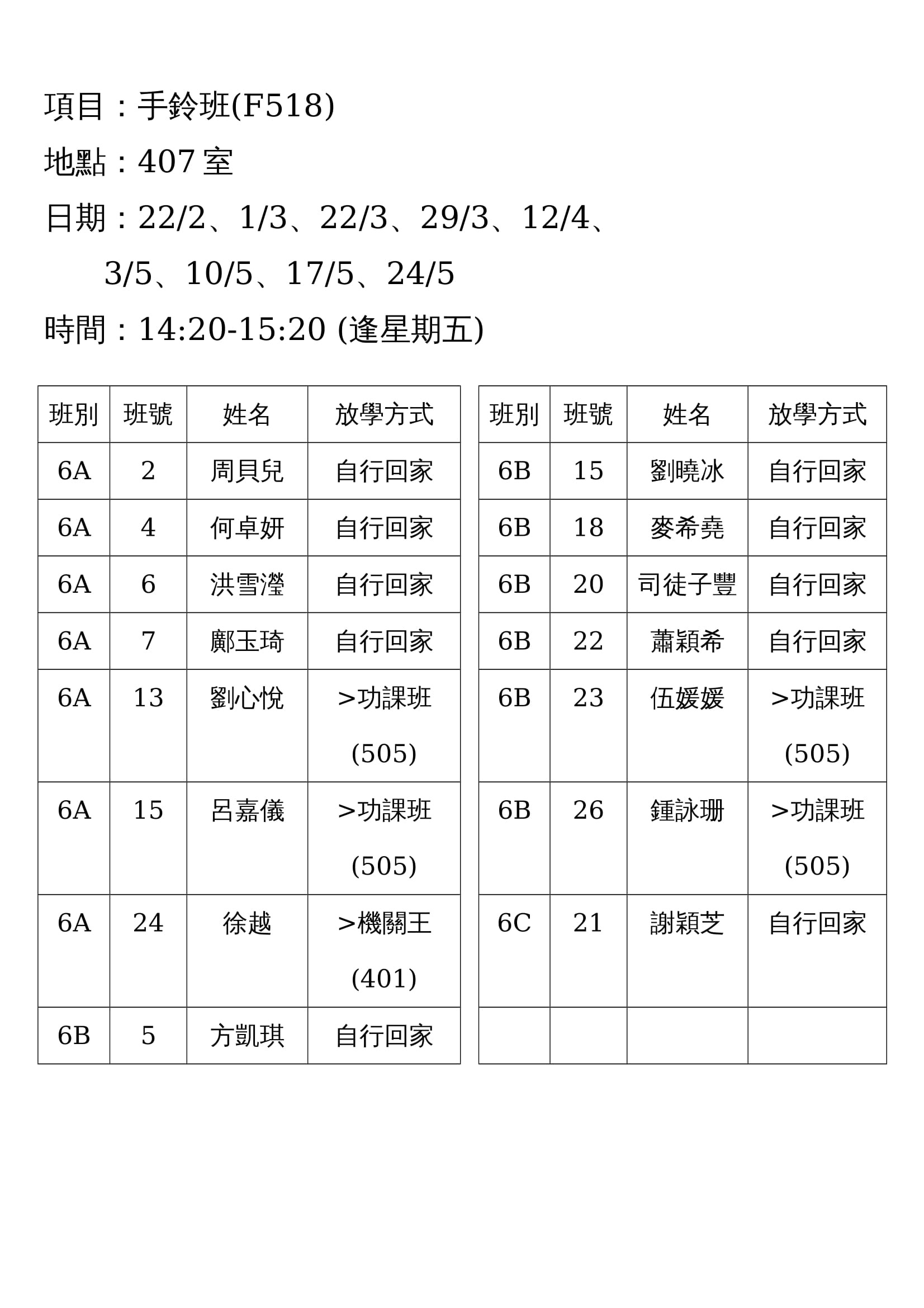 (F518)手鈴班