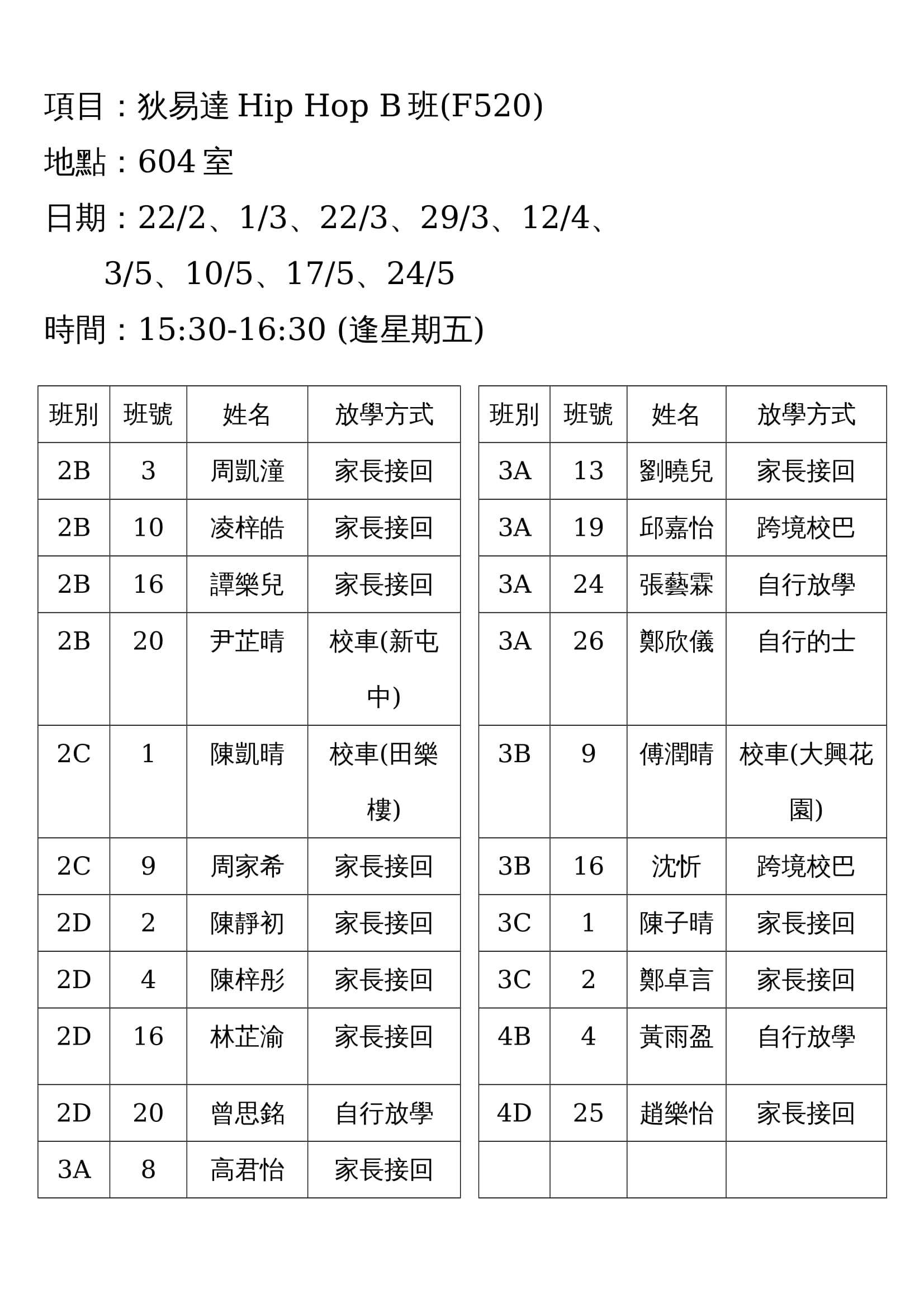 (F520)狄易達Hip Hop B班