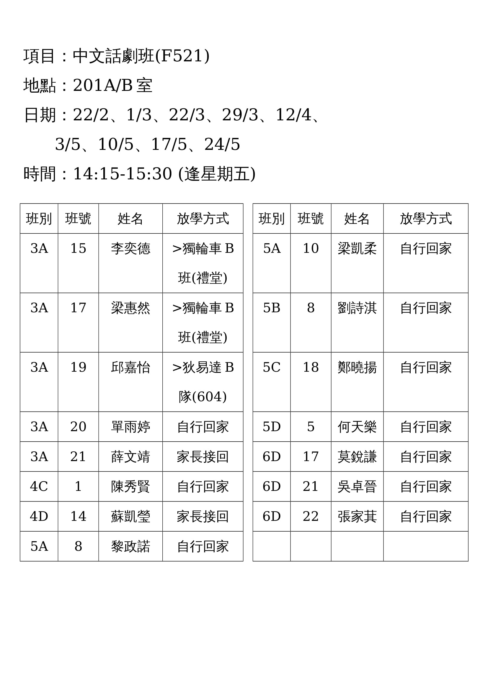 (F521)中文話劇班