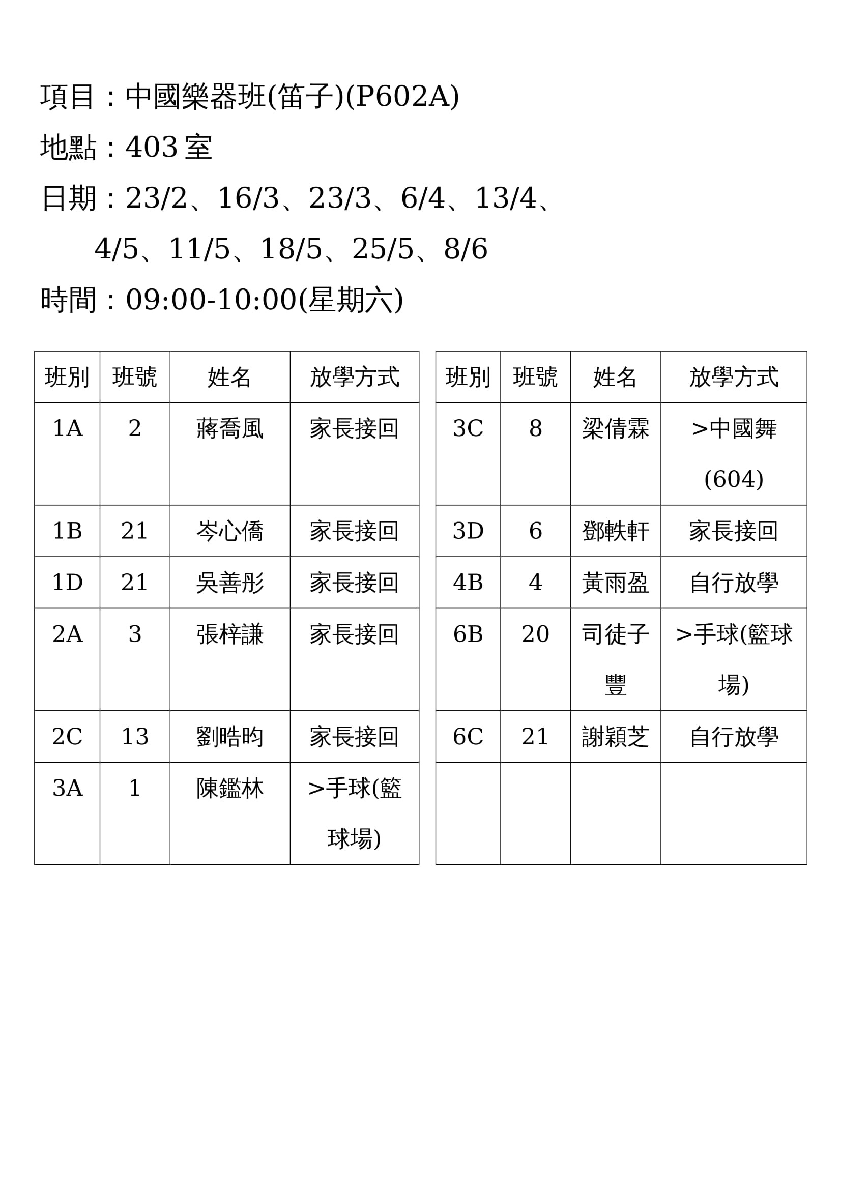 (P602A)中國樂器班(笛子)