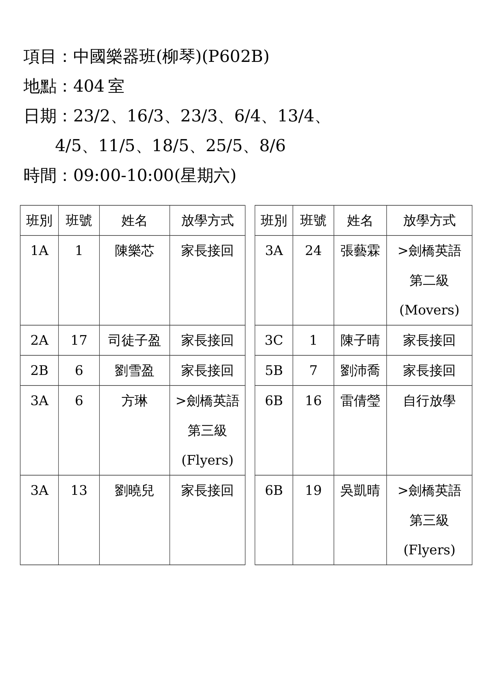 (P602B)中國樂器班(柳琴)