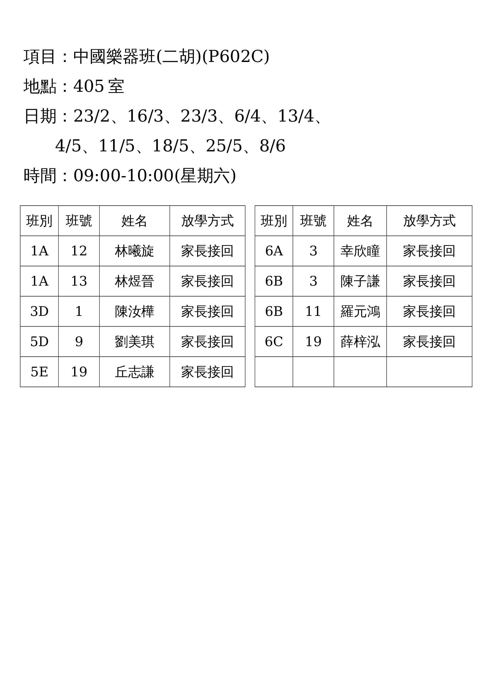 (P602C)中國樂器班(二胡)