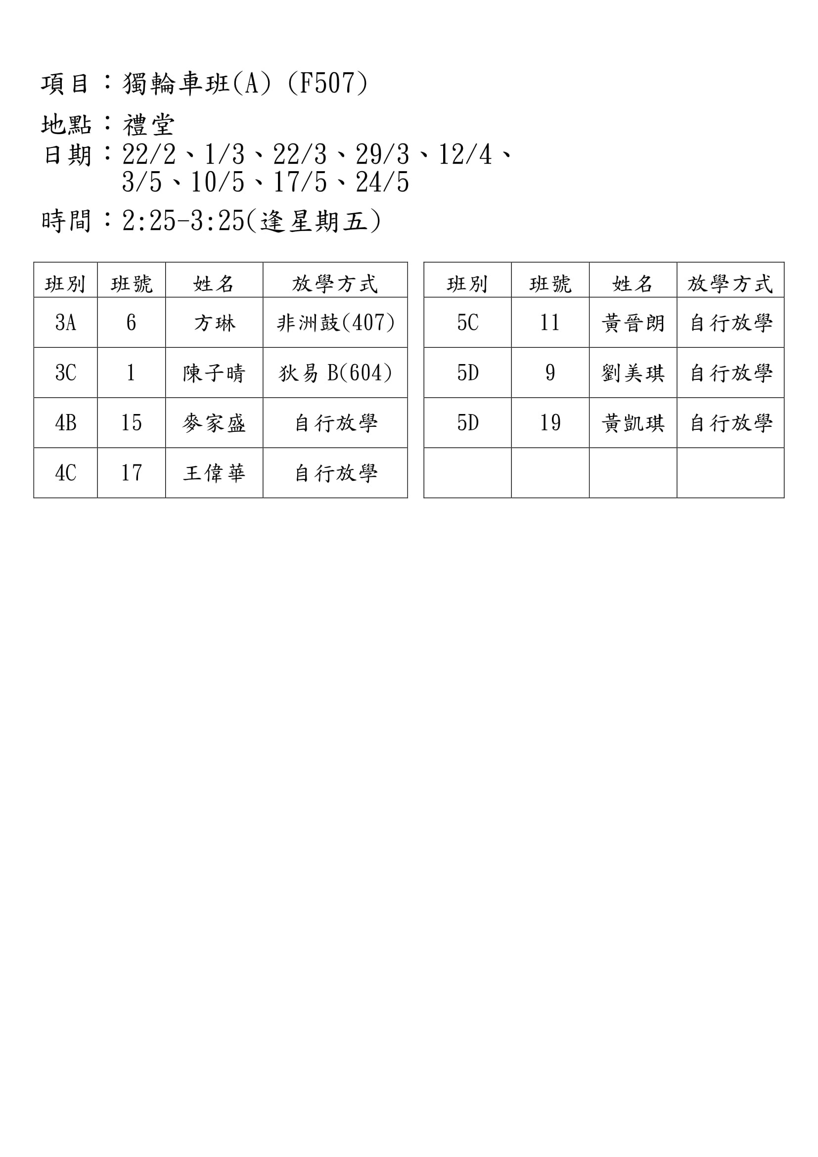 F507獨輪車班(A)2期