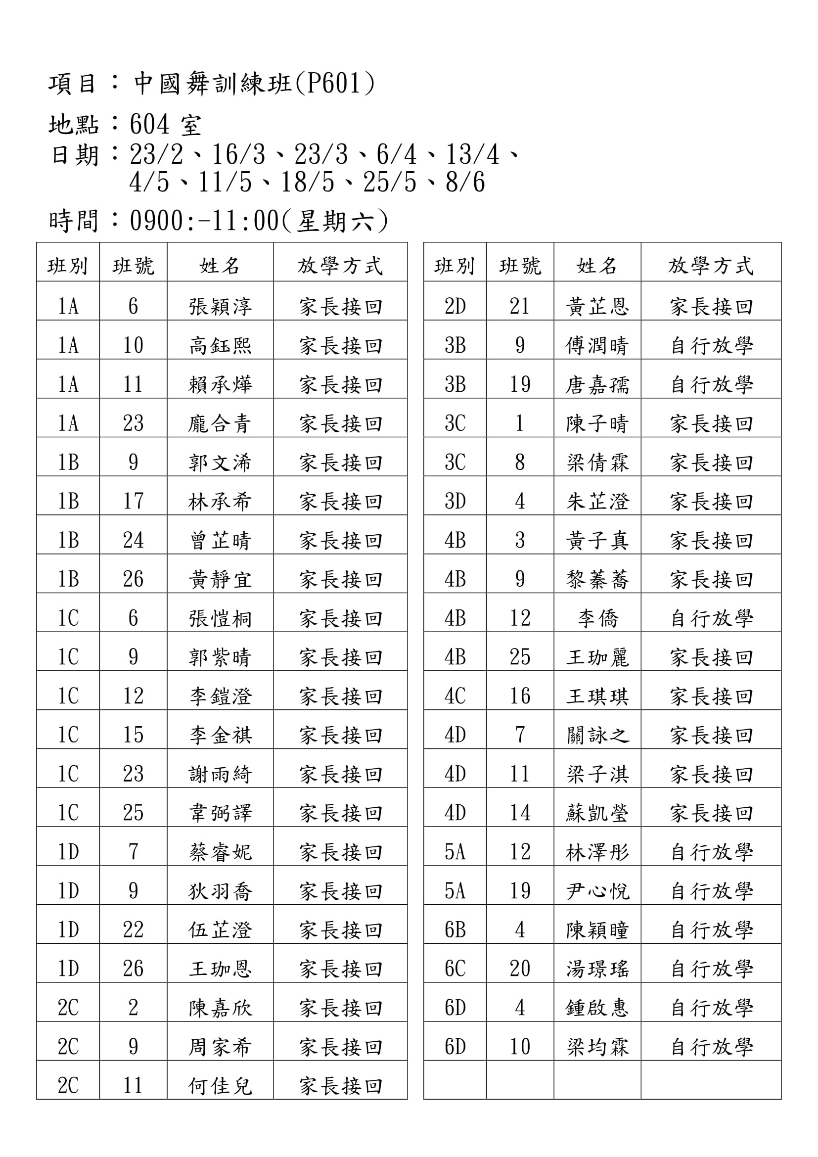 (P601)中國舞訓練班