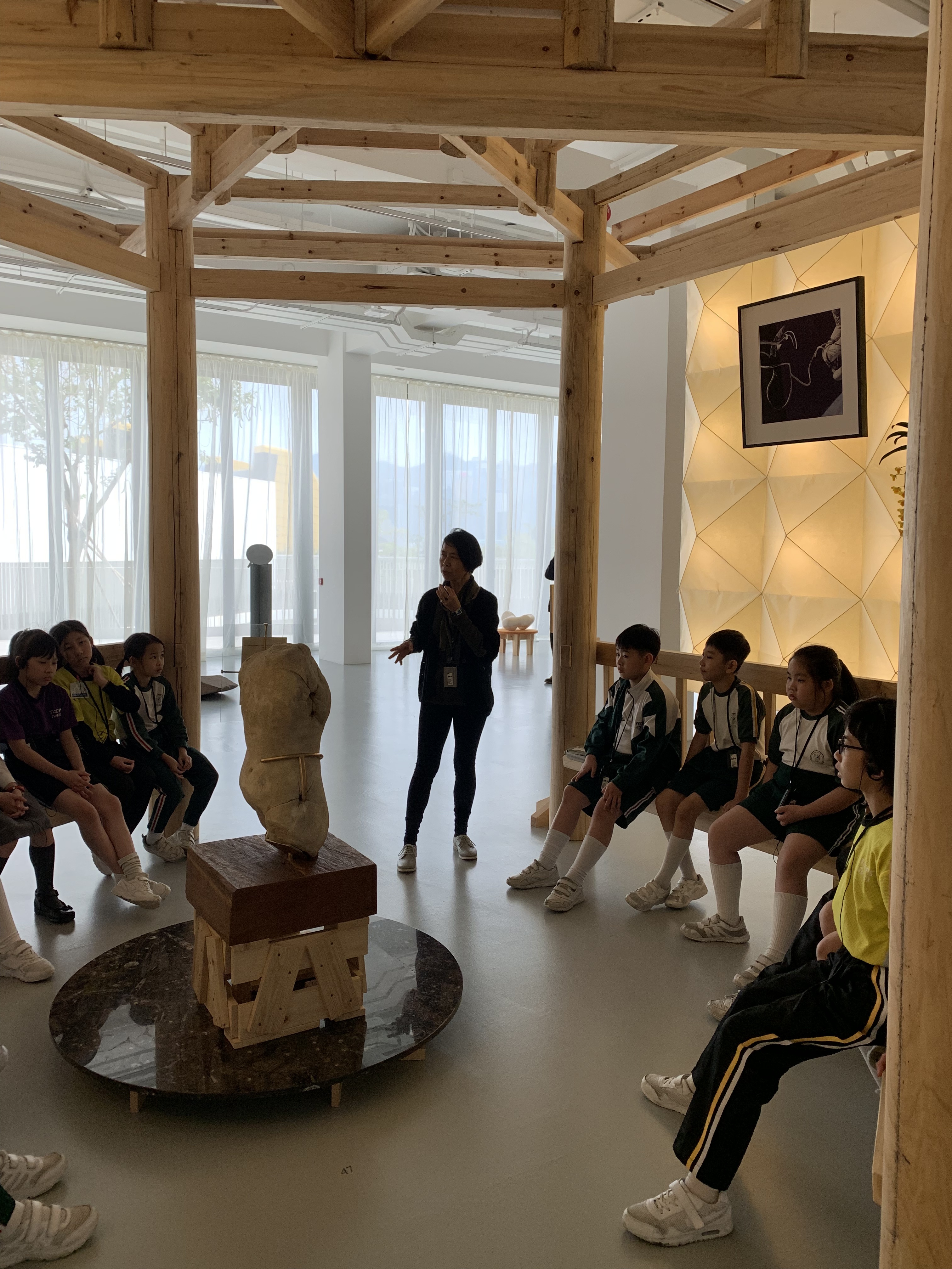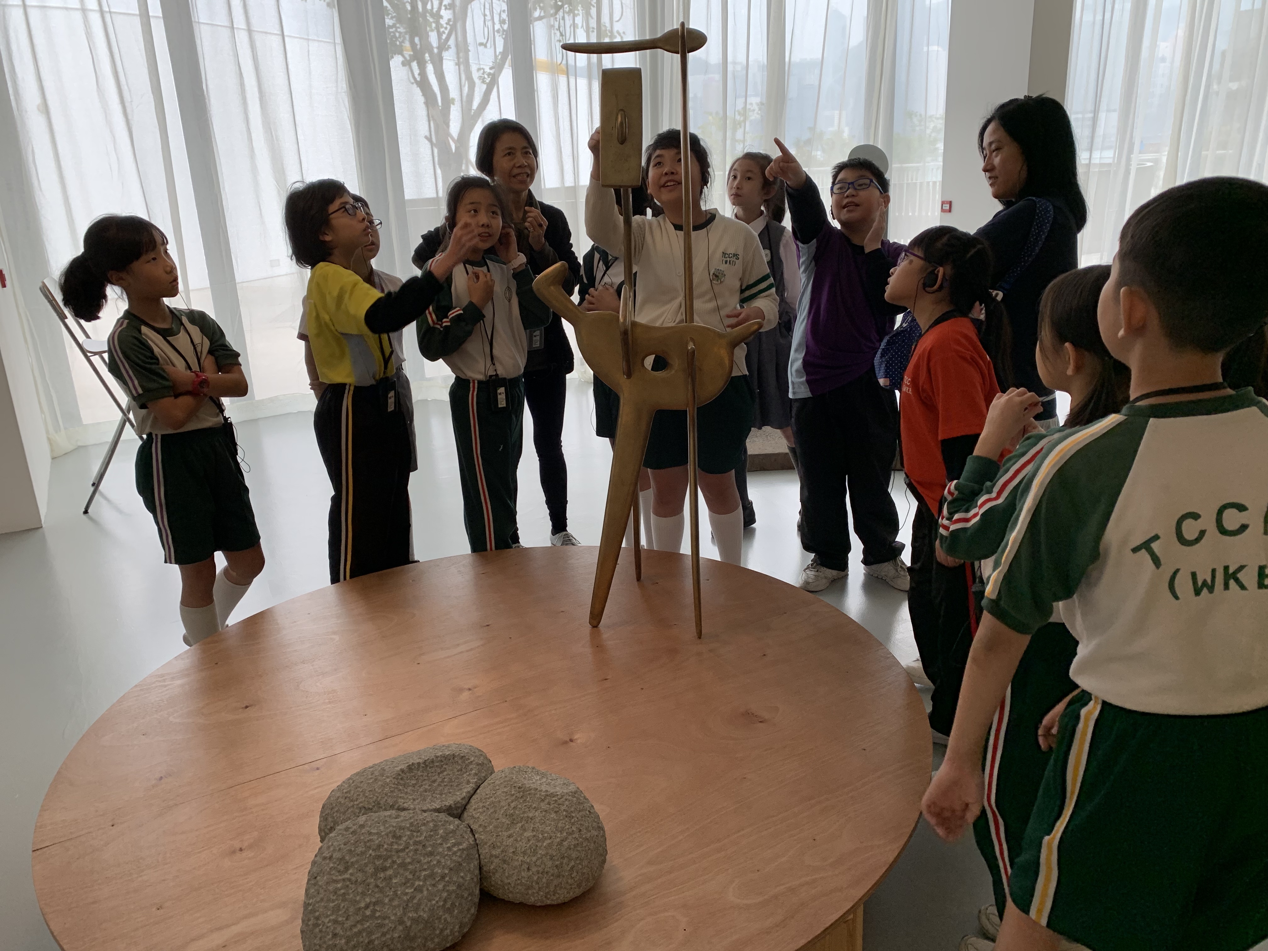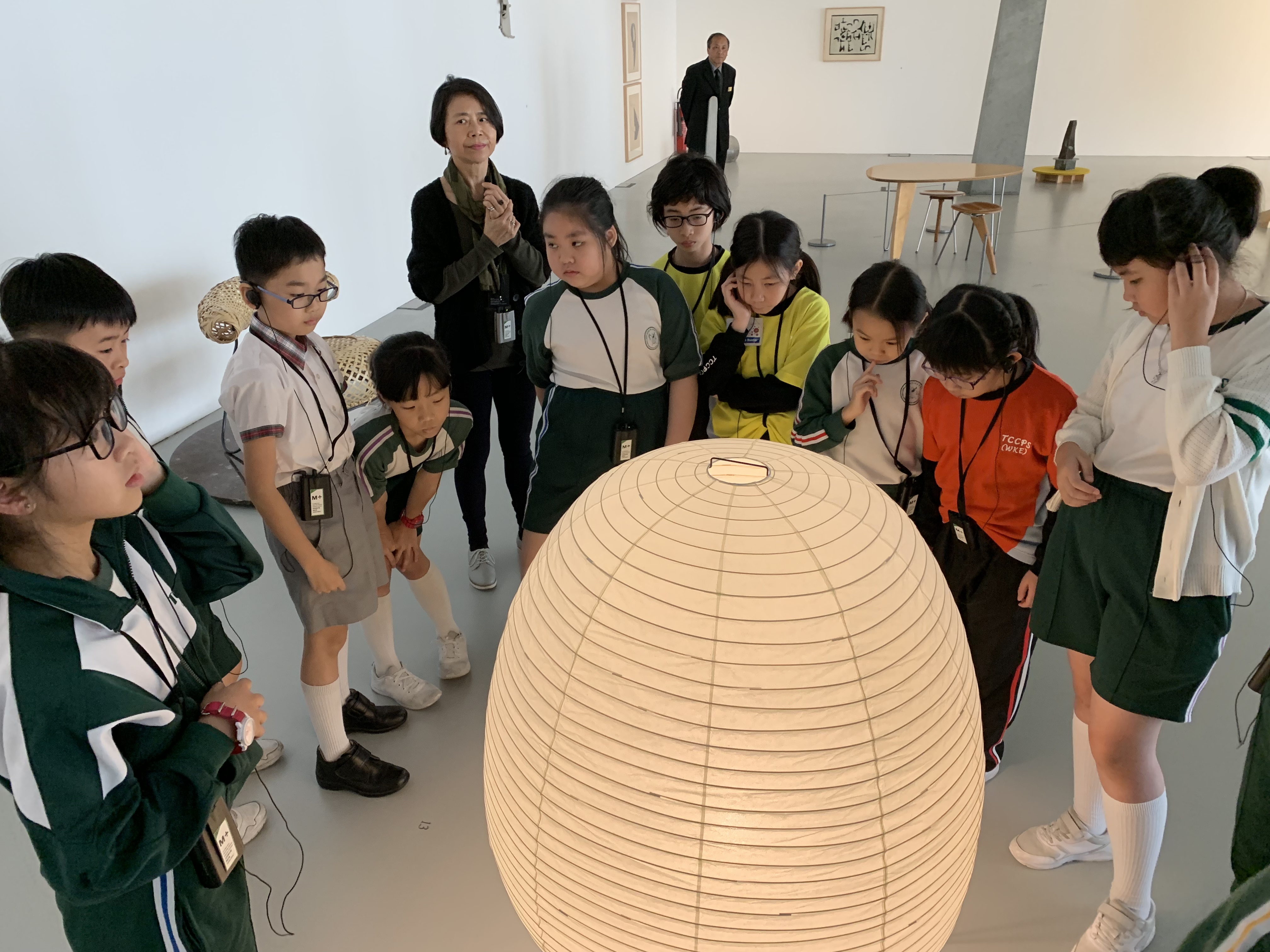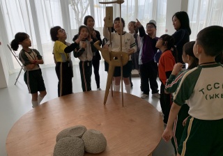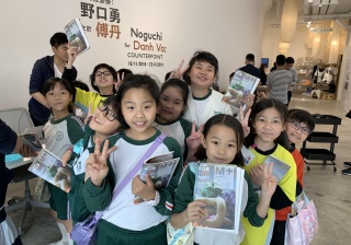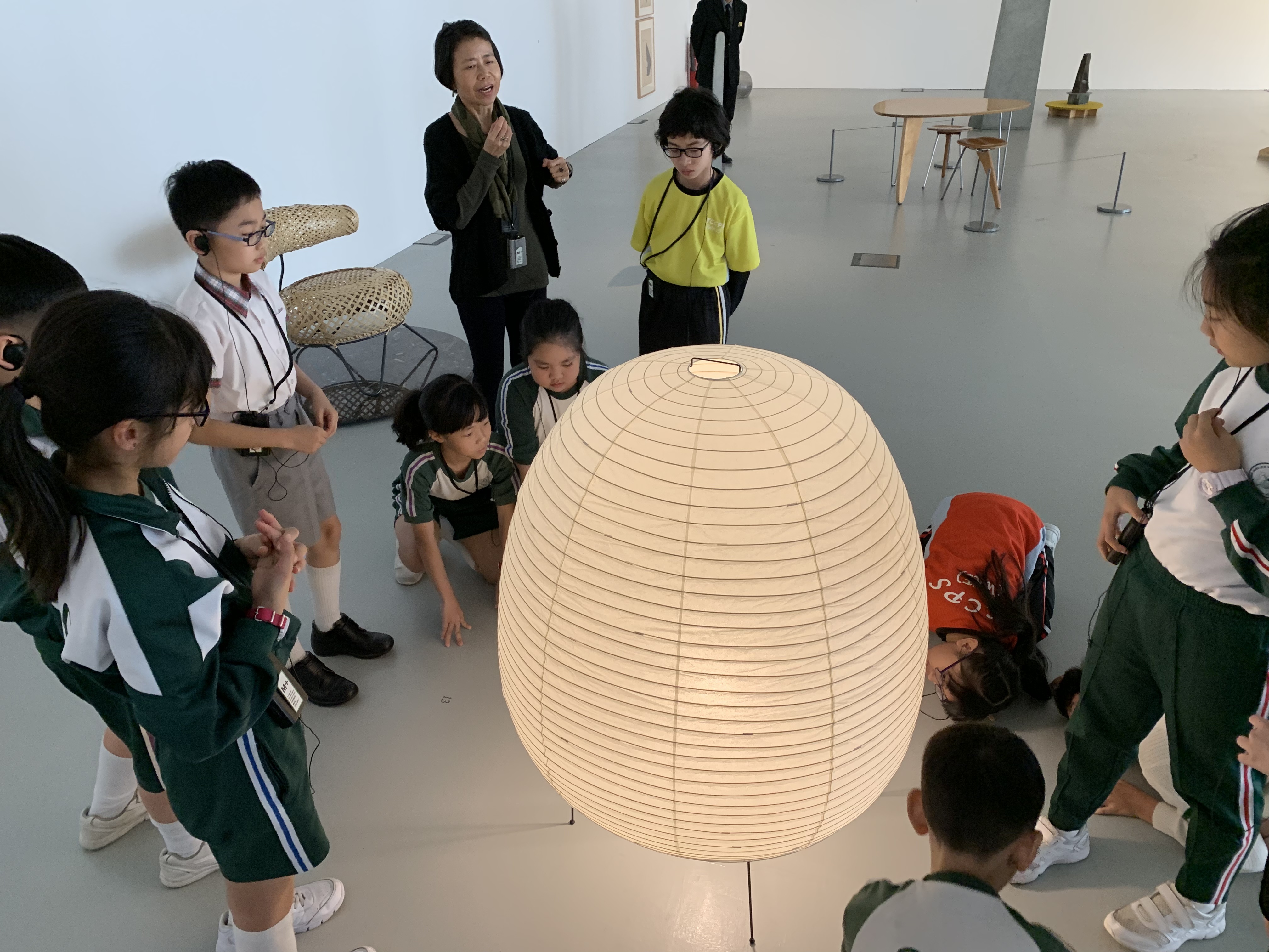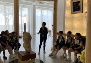 M+藝術館的雕塑展覽,導賞員介紹作品背後的故事,讓學生們欣賞藝術家雕塑作品,拓寬視野。