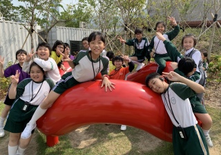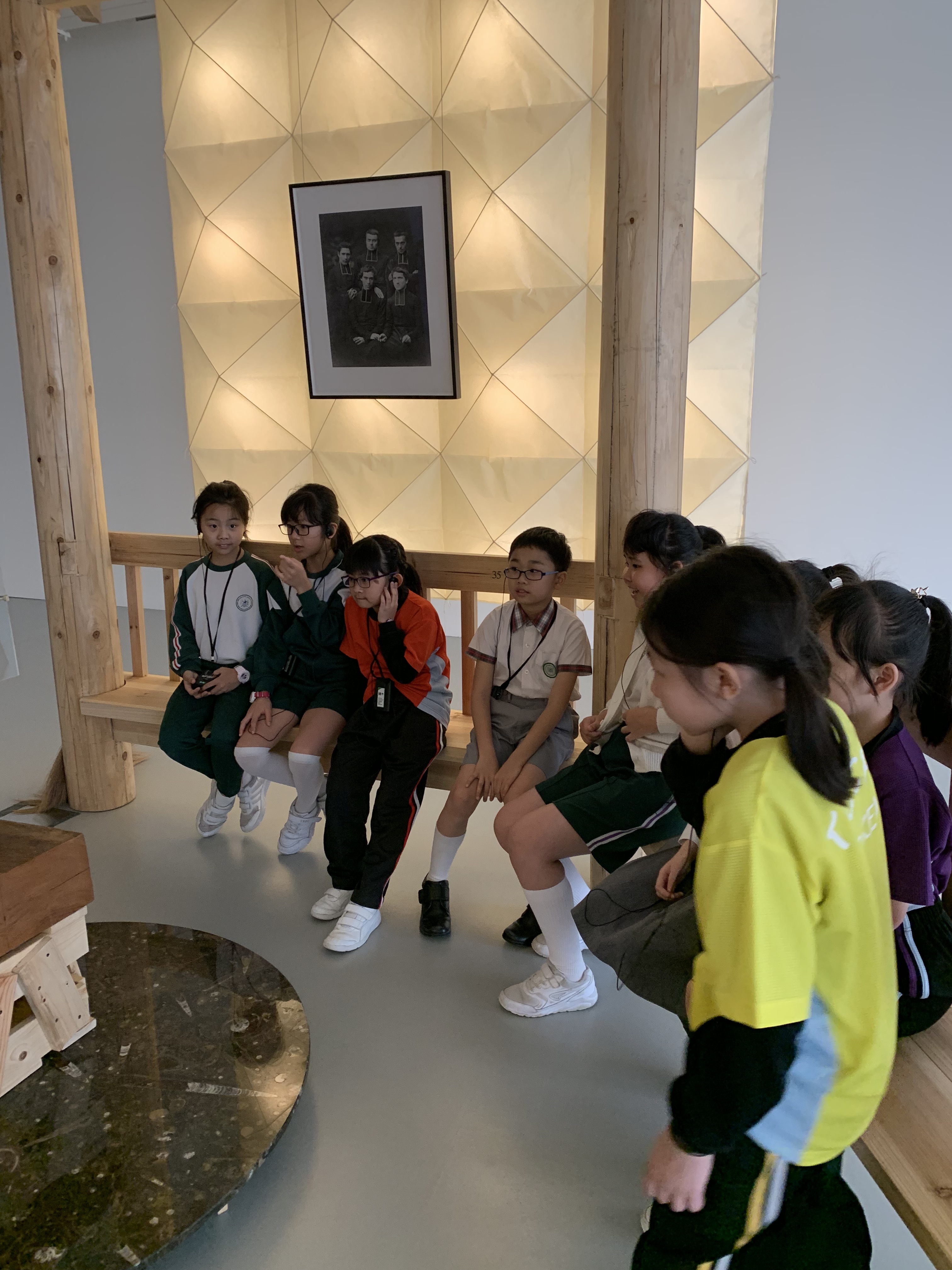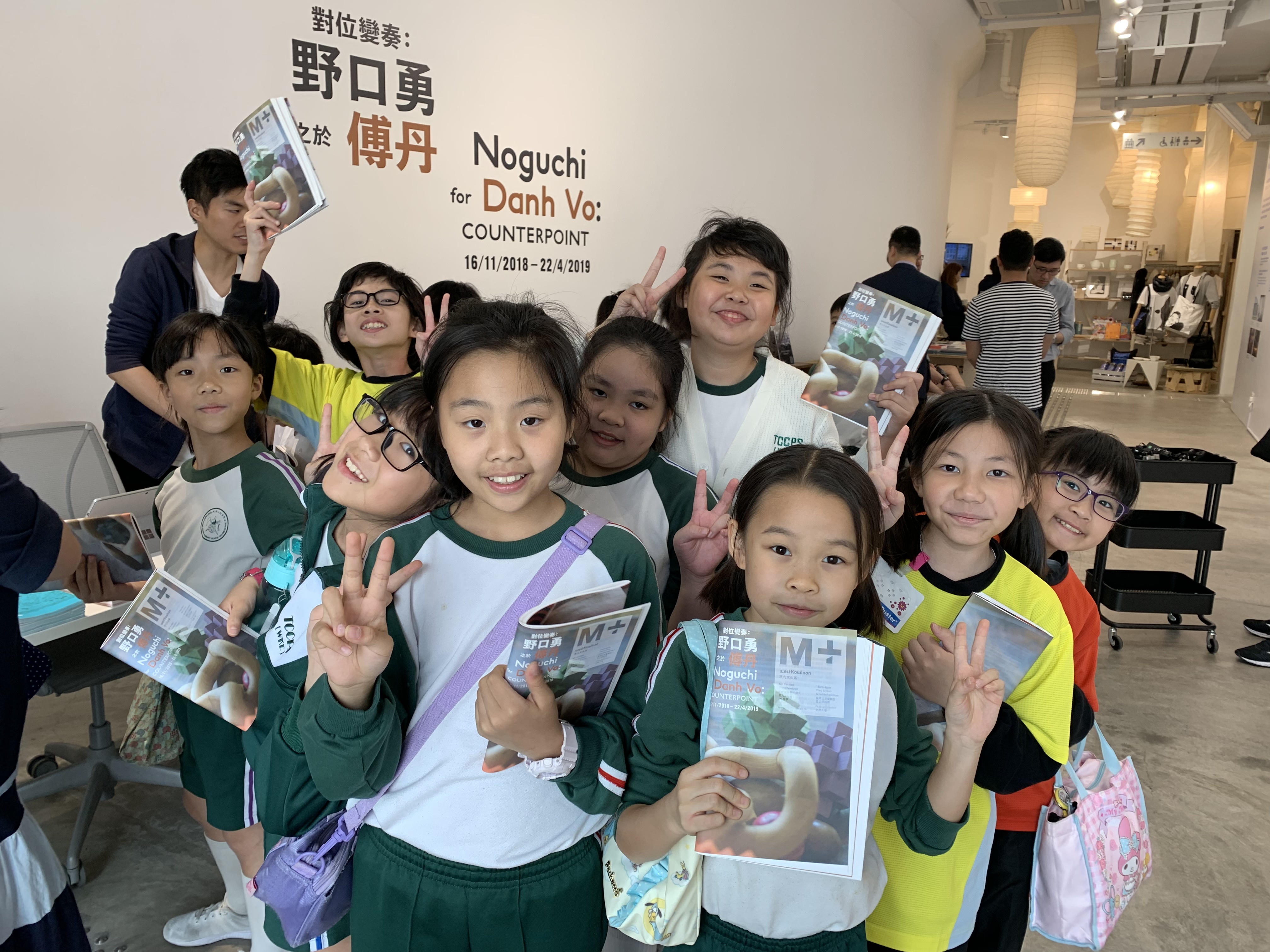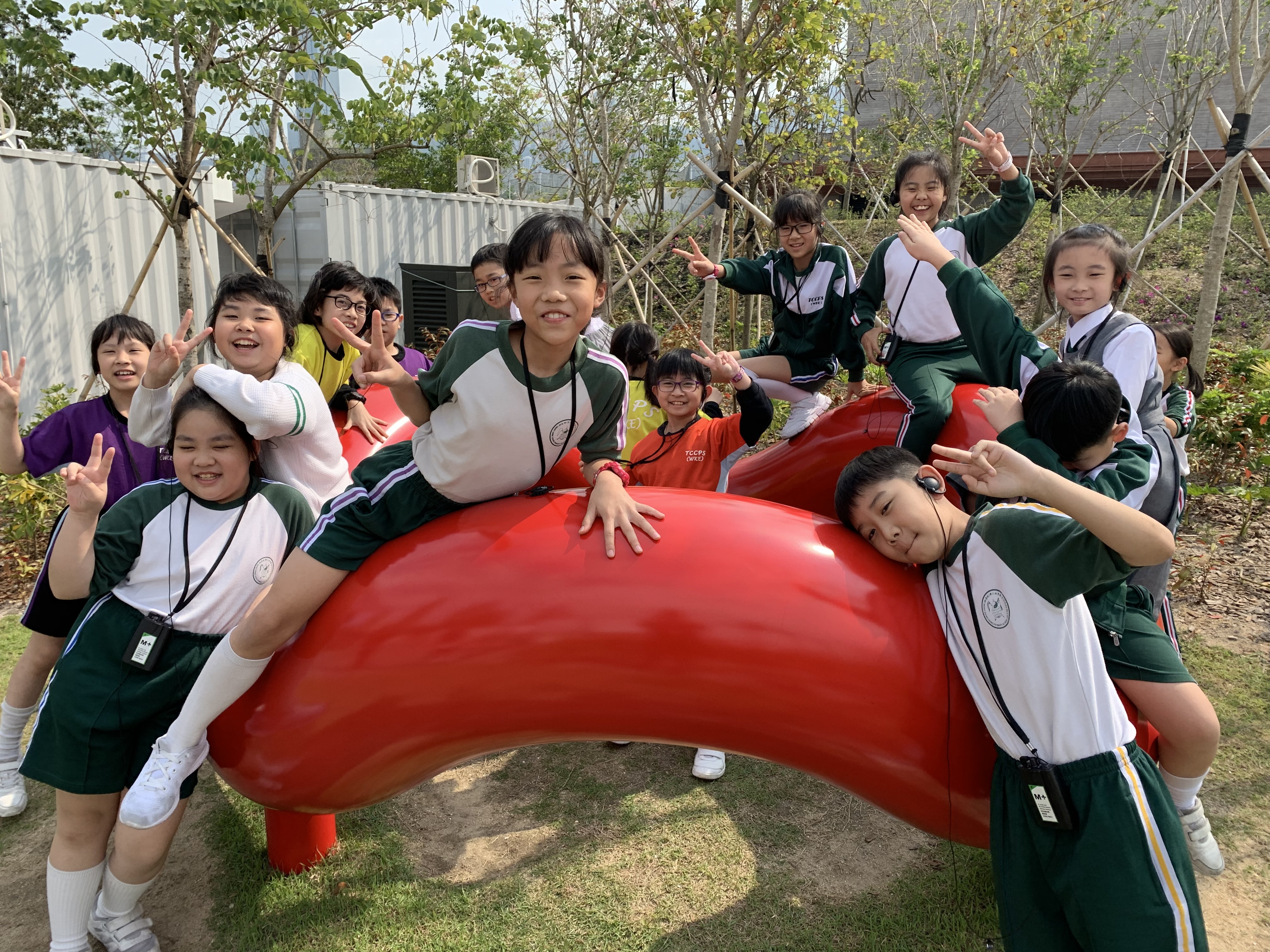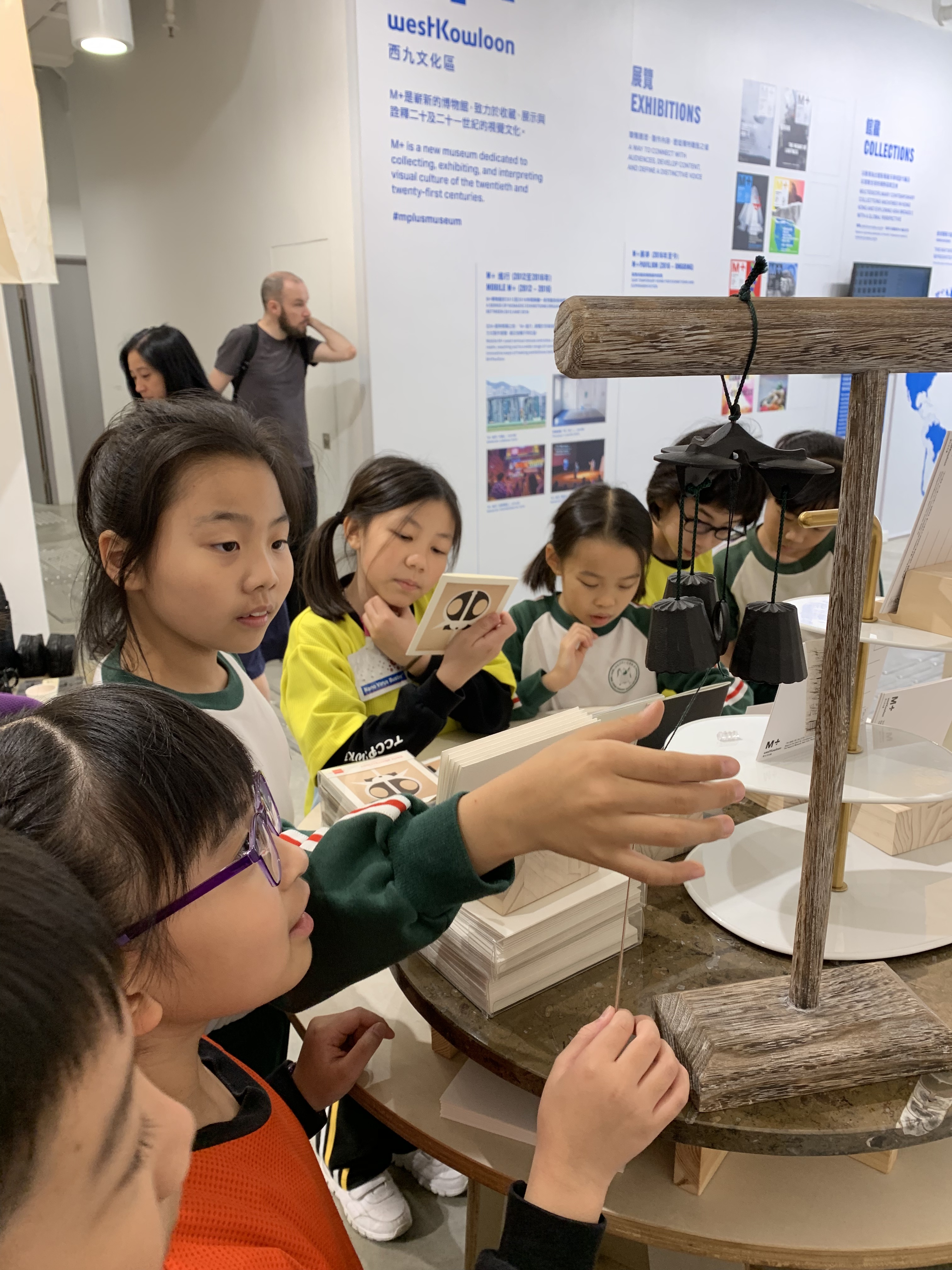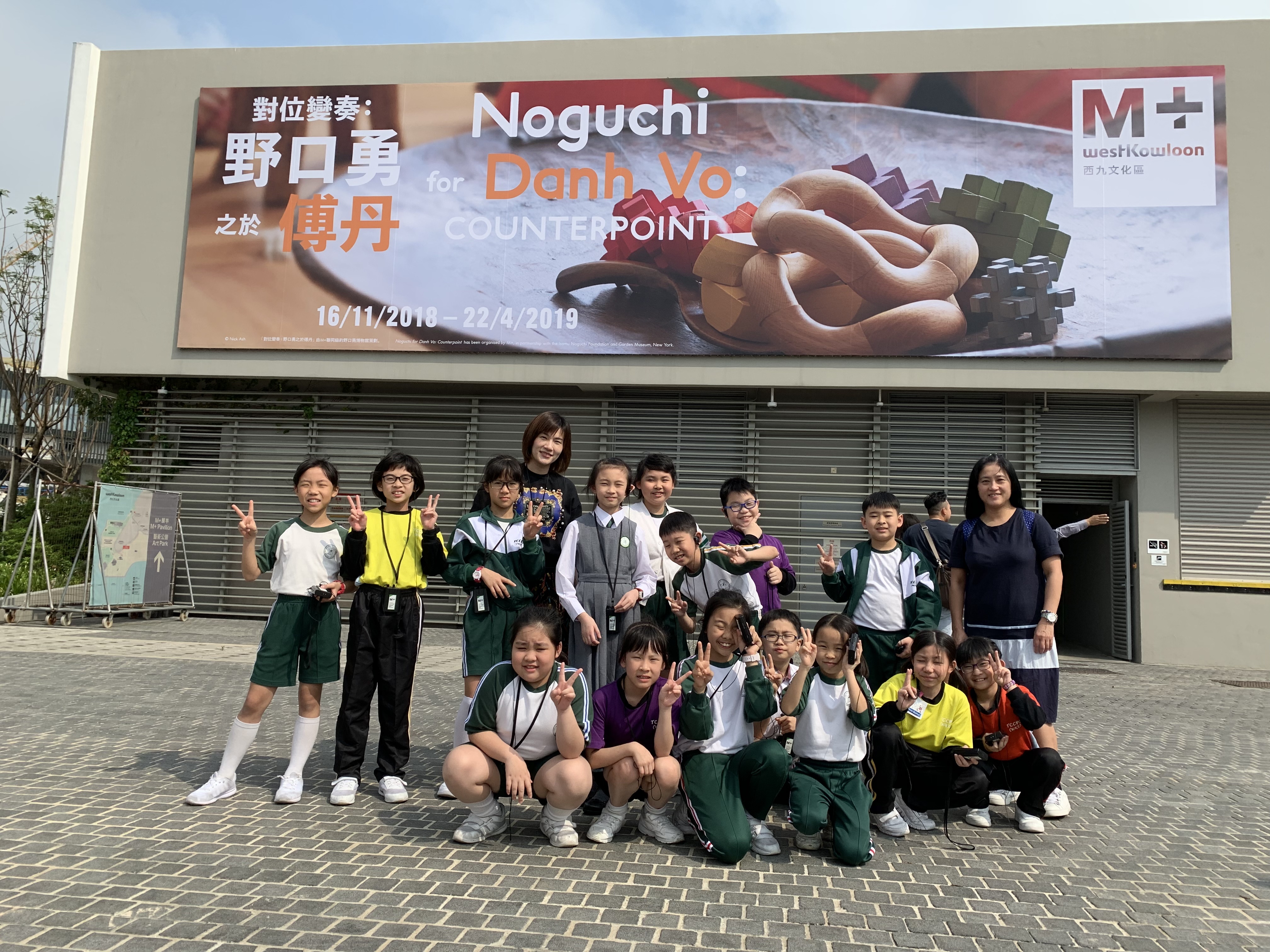 M+藝術館的雕塑展覽,導賞員介紹作品背後的故事,讓學生們欣賞藝術家雕塑作品,拓寬視野。