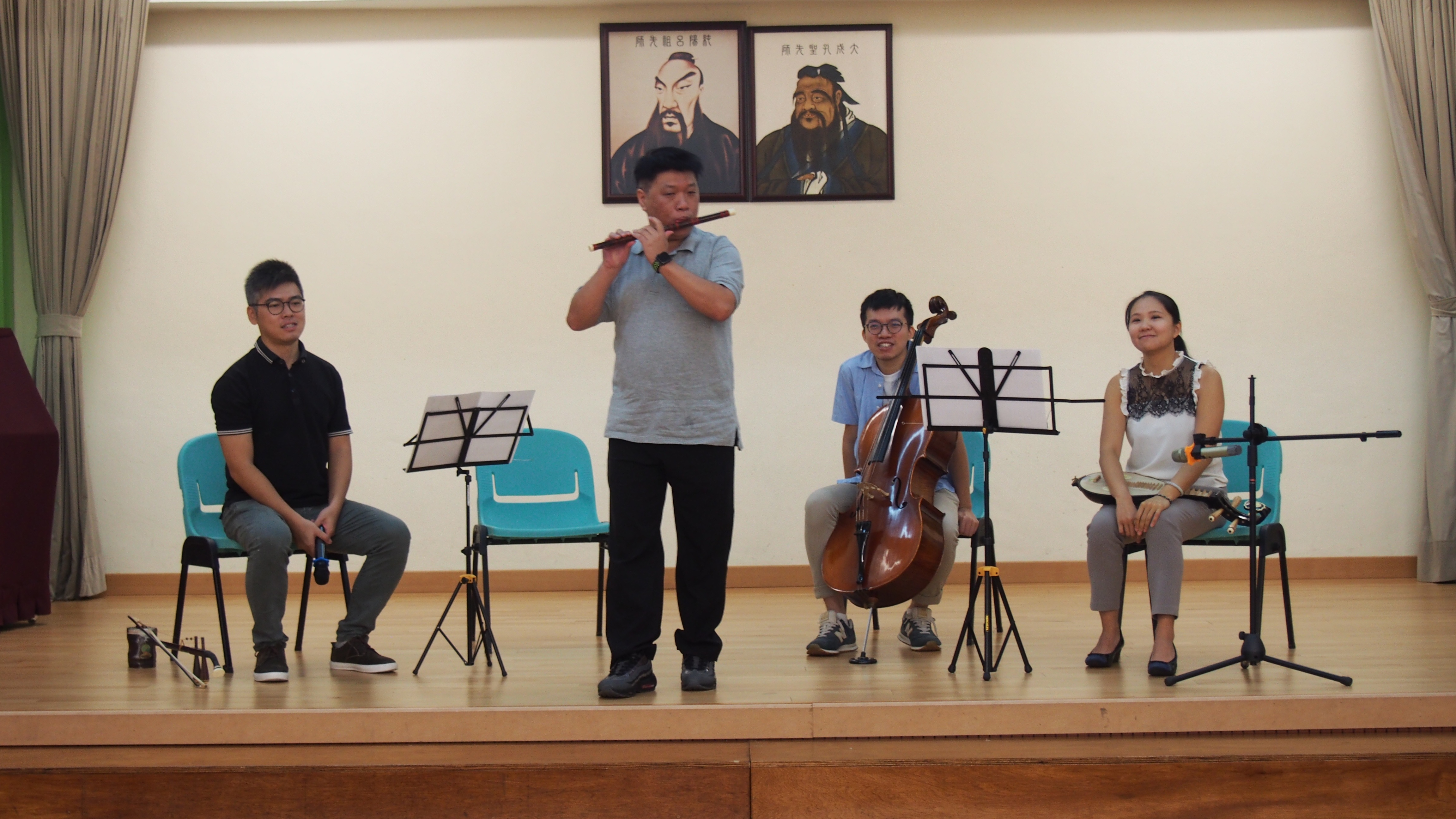 音聲音樂協會派導師為學生進行樂器示範音樂會。四位導師分別為學生演奏多首二胡、笛子、柳琴及大提琴的樂曲。