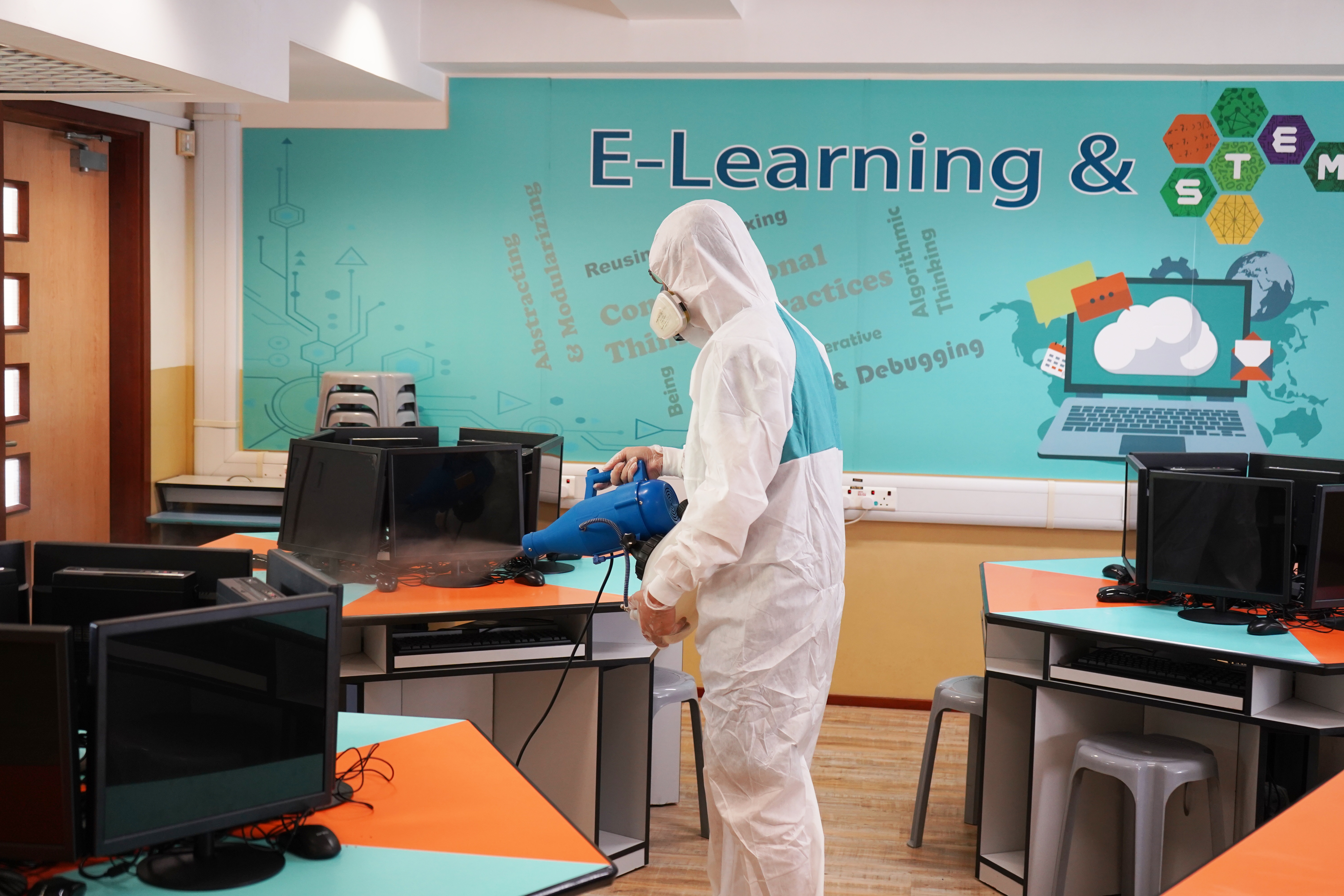 為了迎接全面復課,確保所有家長、學生及教職員的健康,同時讓同學們能夠在安心及衛生的環境下上課,學校已進行噴灑Eco Pro BV 4醫療級長效消毒殺菌服務。噴灑的表面能築起防疫塗層,能有效消滅新型冠狀病毒及多種病毒及細菌,有效期為90日。