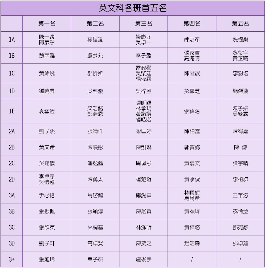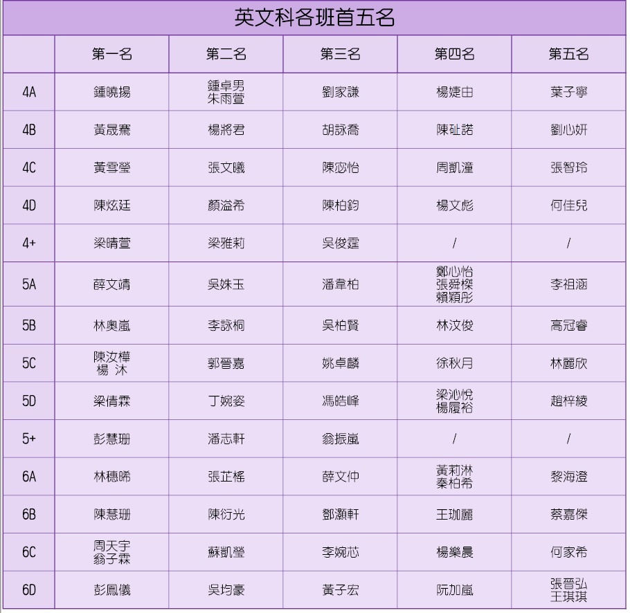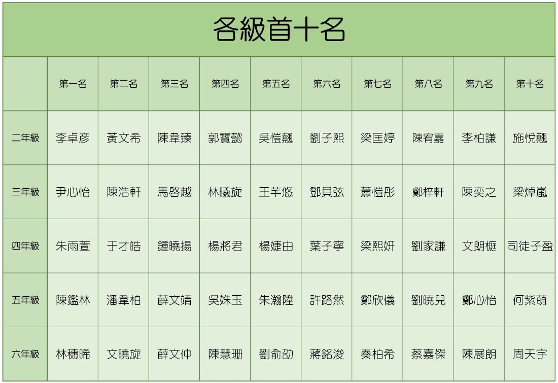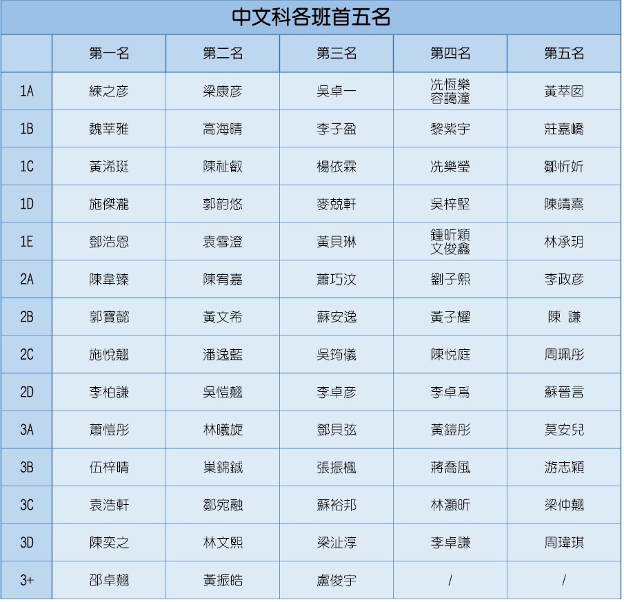 20-21年度第一次考試成績龍虎榜