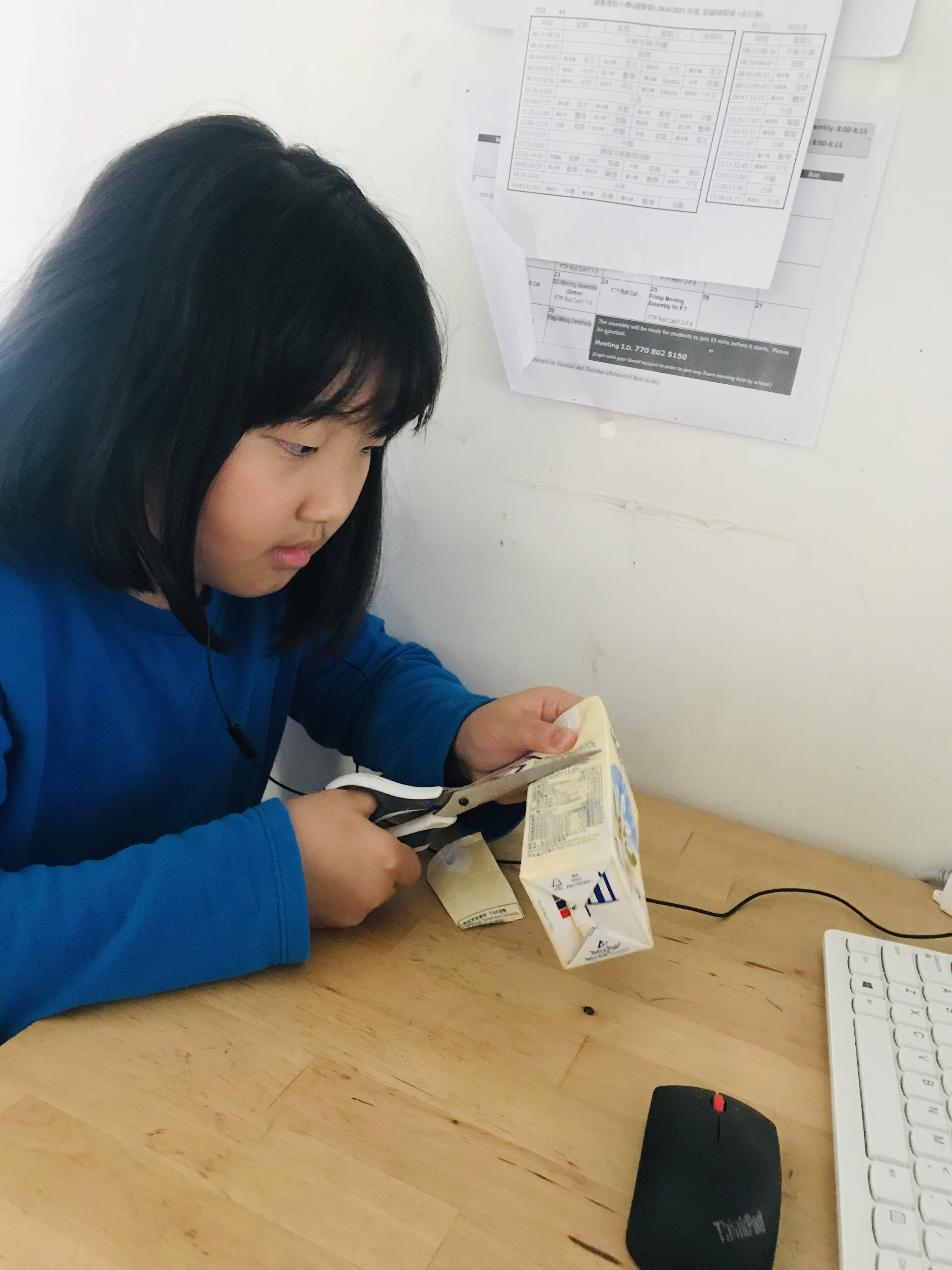 同學們在上星期參加了由「綠在屯門」舉辦的網上環保工作坊。除了加深對環保物料的認識外,還學會利用紙包飲品盒,製作成精美實用的零錢包。