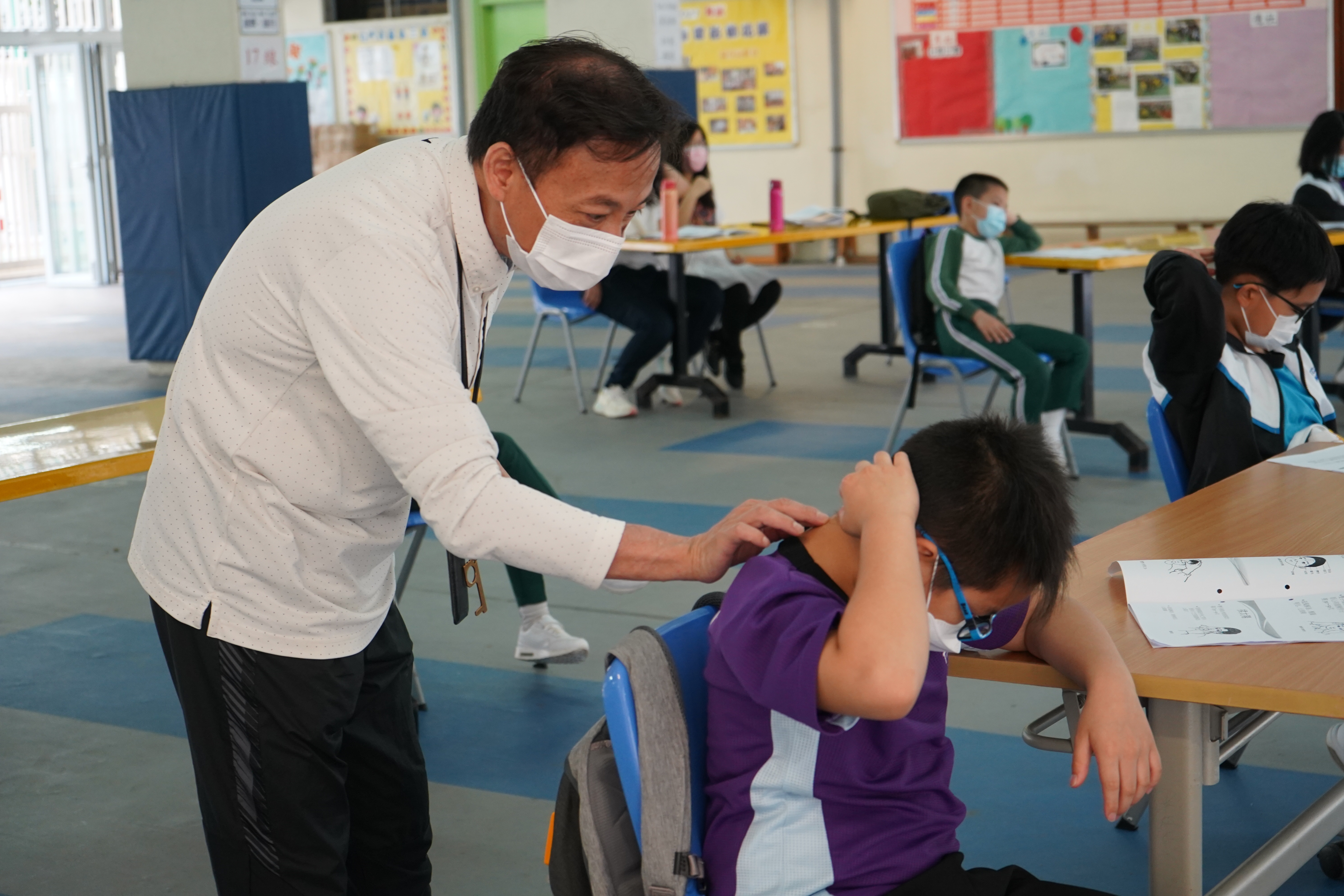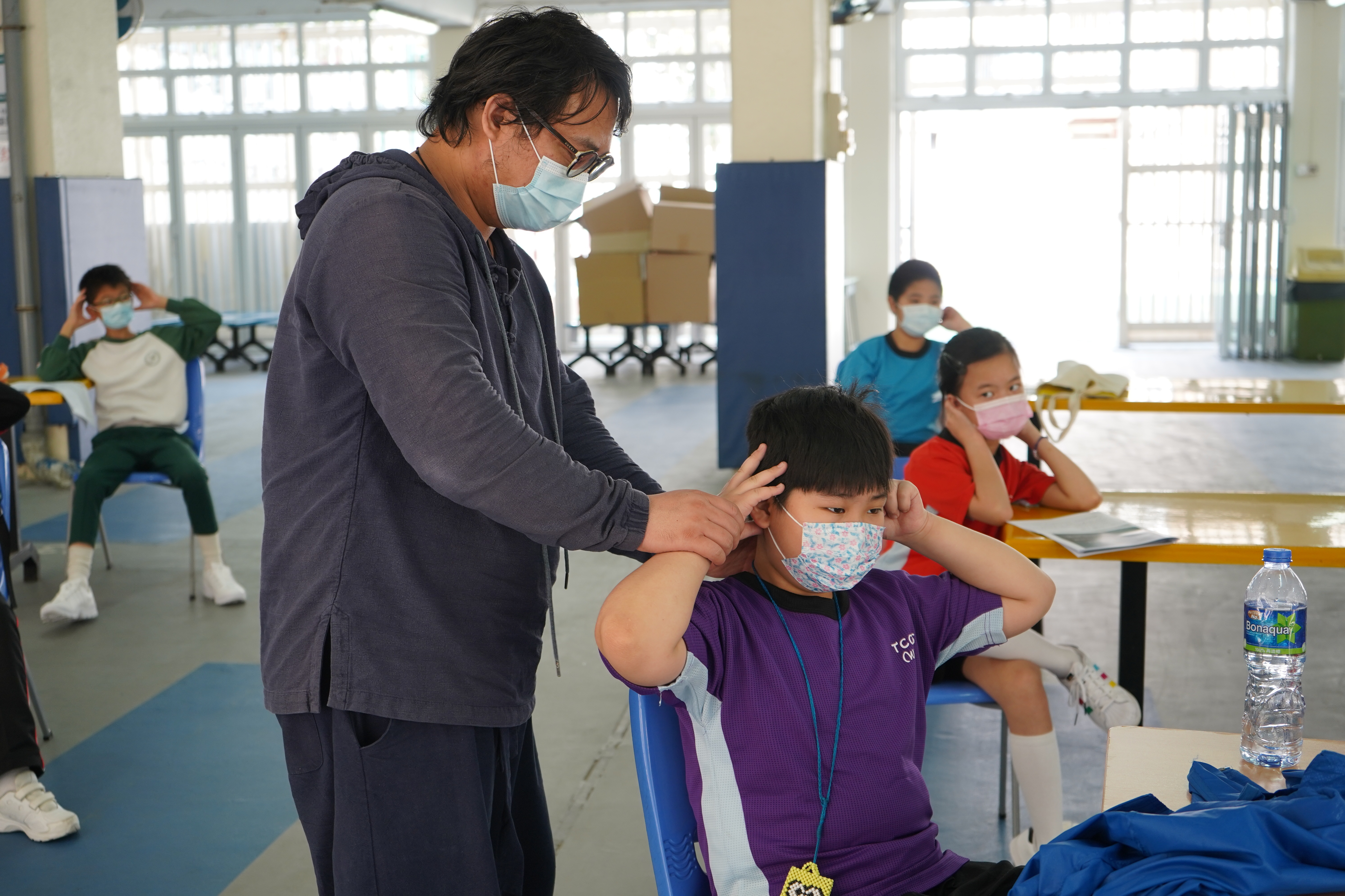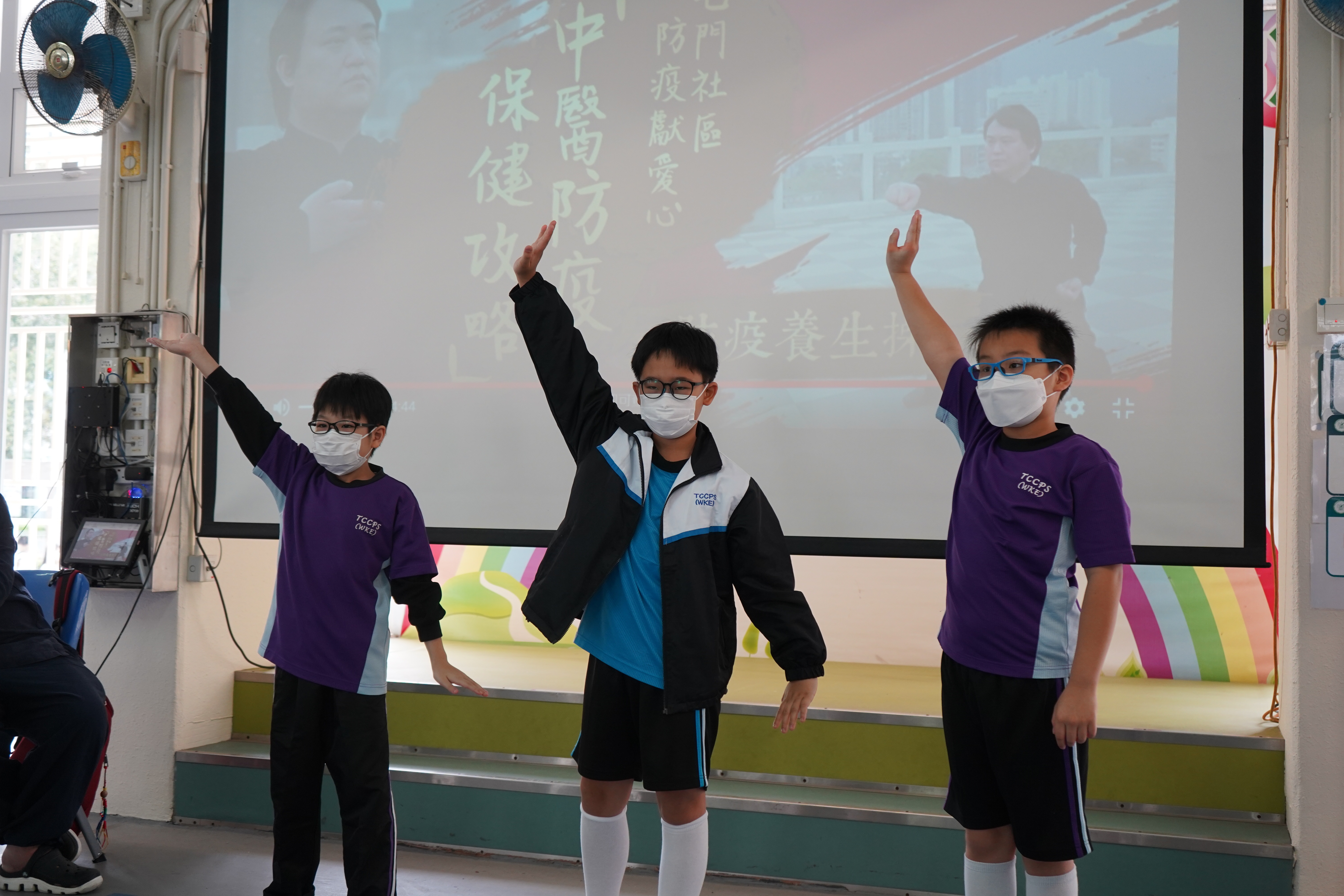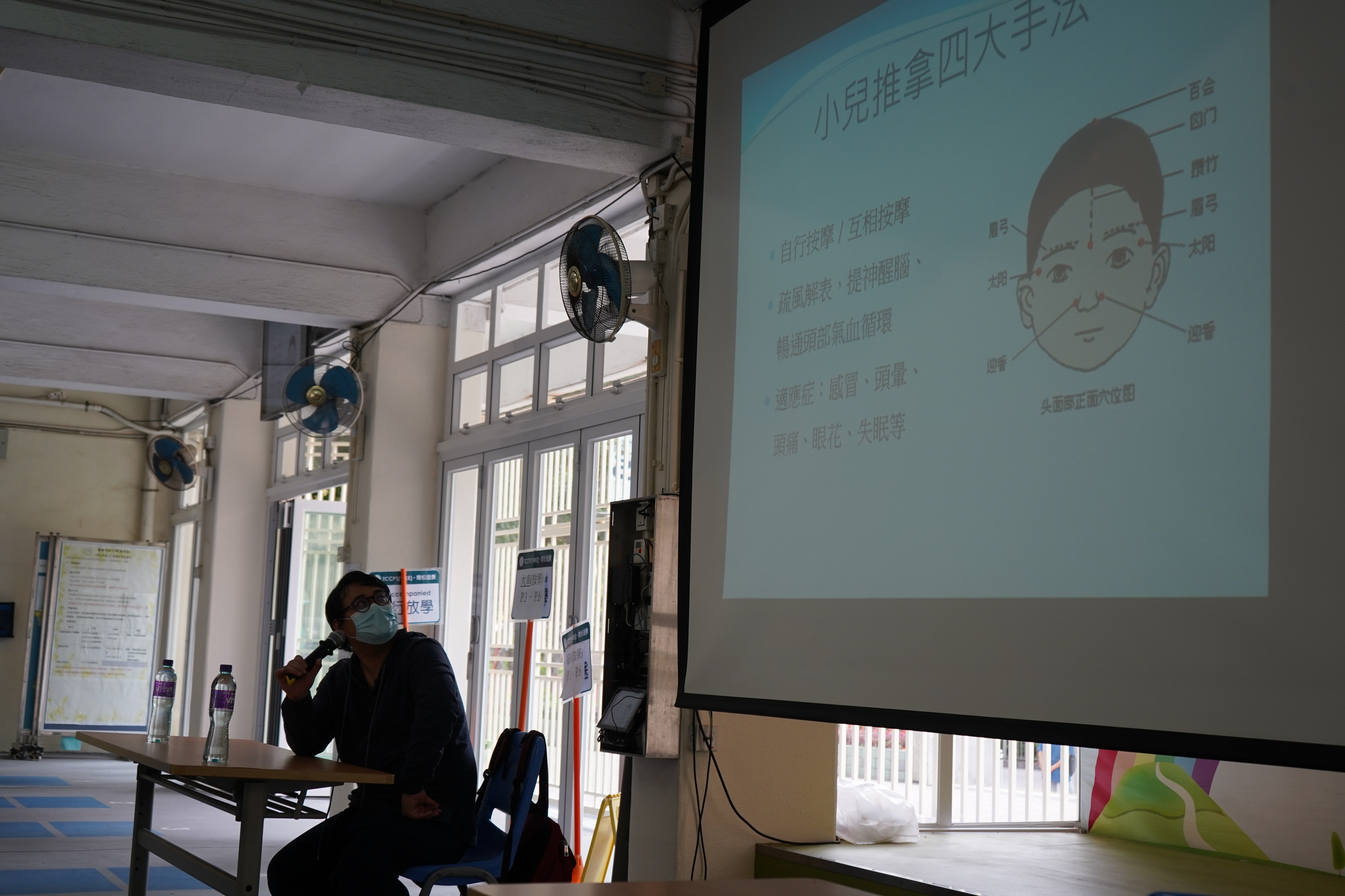 本校與香港中文大學中醫學院合辦「小學中醫藥先導計劃— 青松小中醫」,舉行一系列活動。是日的實踐體驗課由香港中文大學中醫學院蘇昕宏博士及陳錦良博士到校任教。本校四至五年級同學於課堂中學習穴位按摩及八段錦,活動有趣及實用。課程鼓勵學生於日常生活中實踐所學,幫助家人按摩,侍奉父母長輩,把中醫學精神帶入家中。