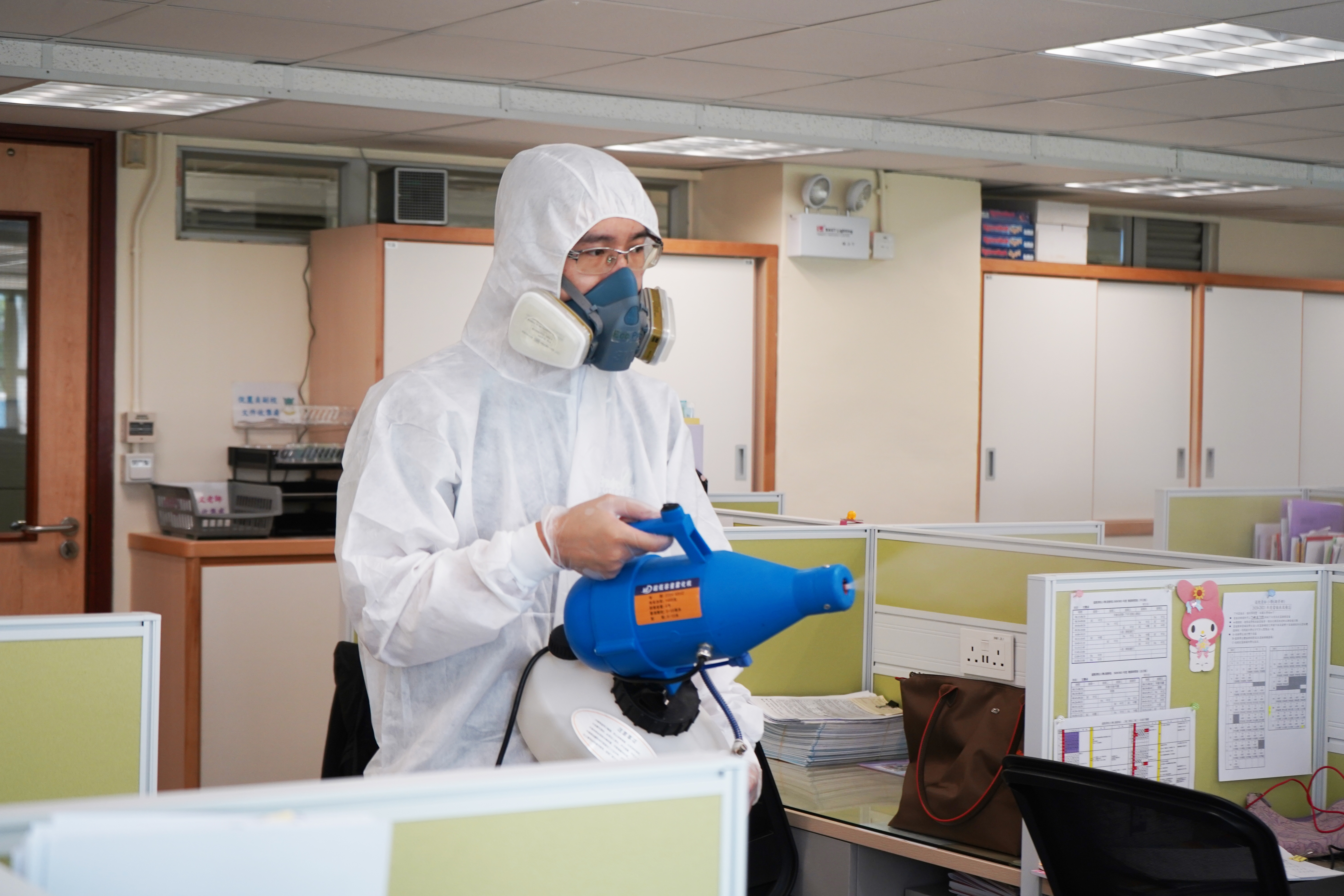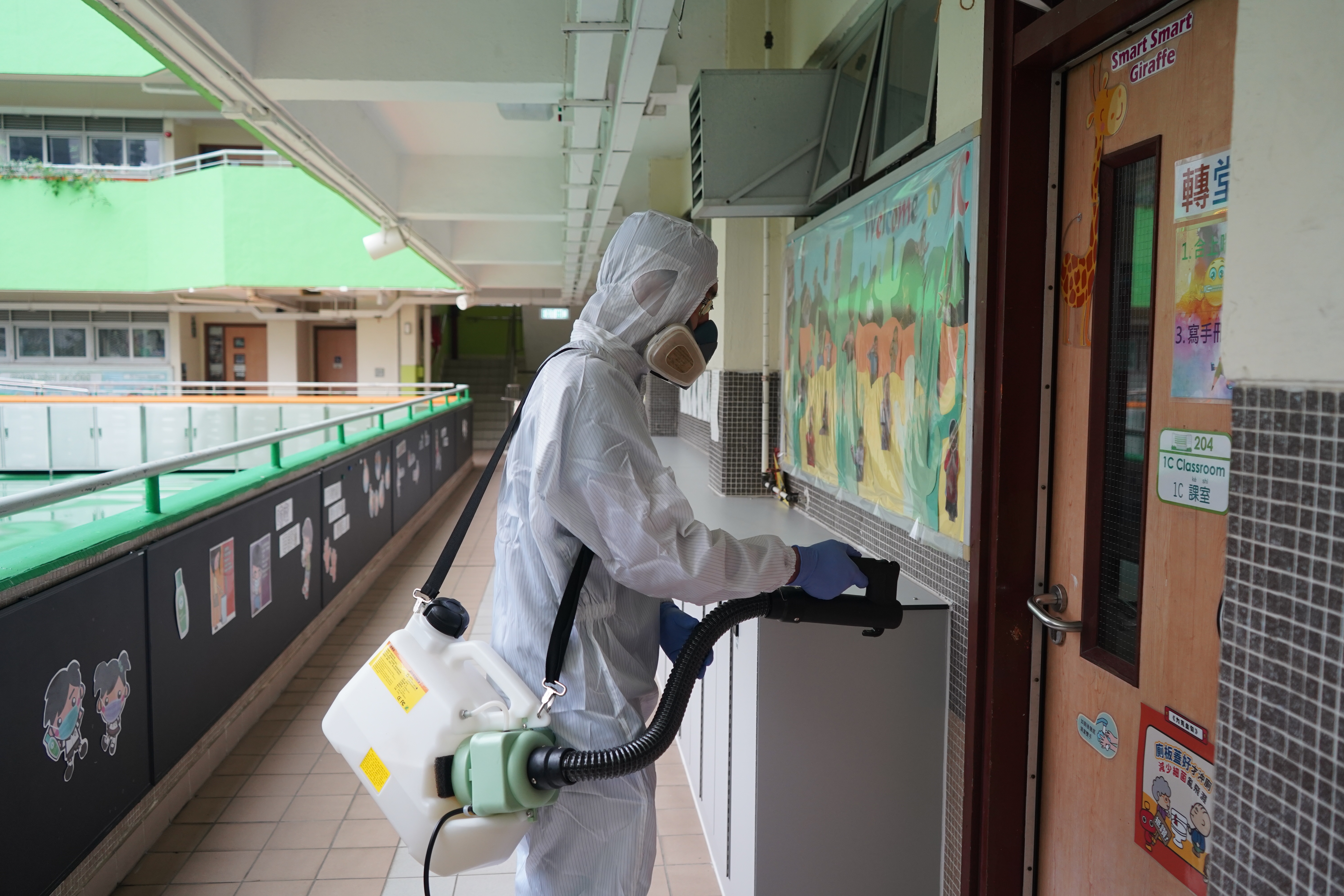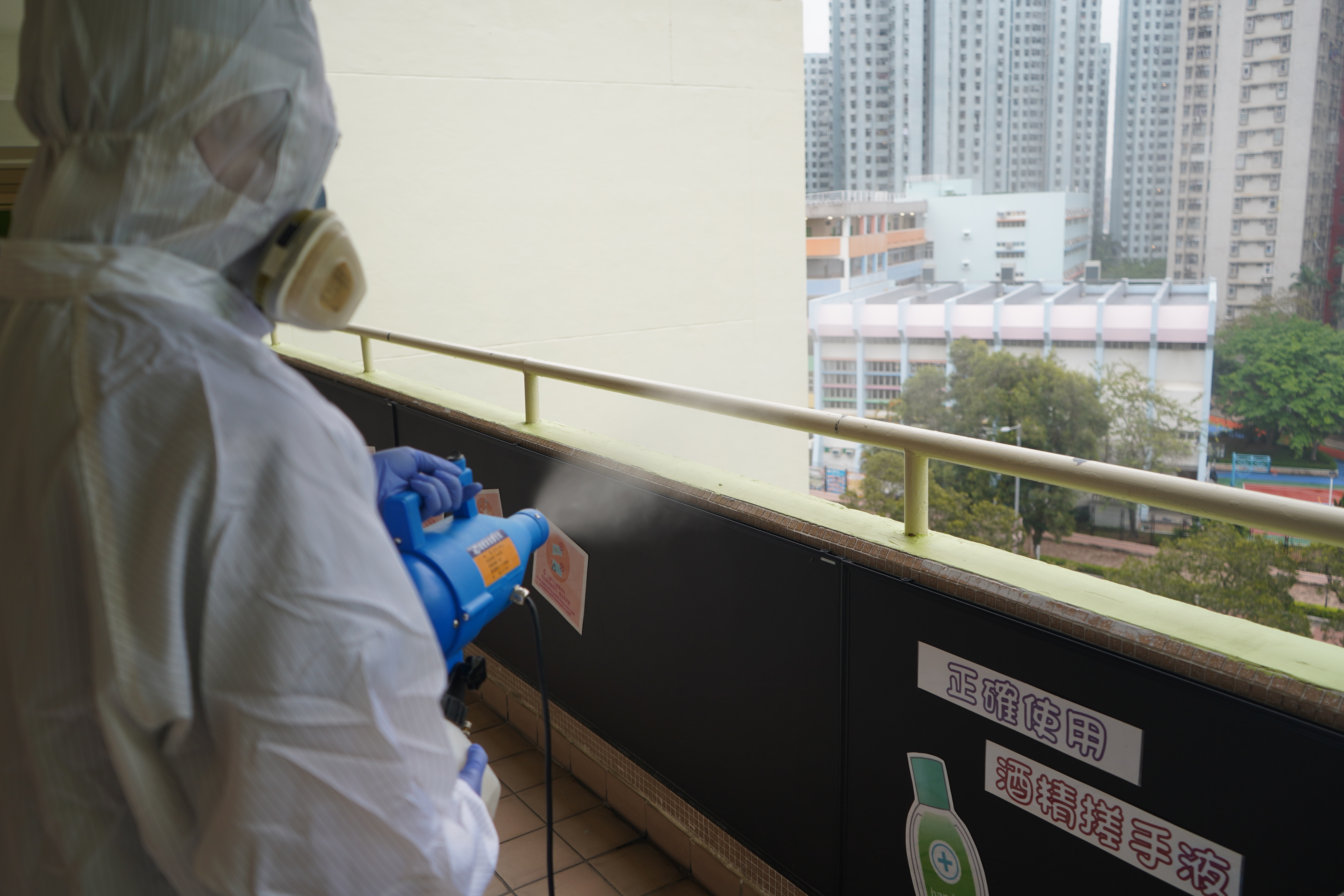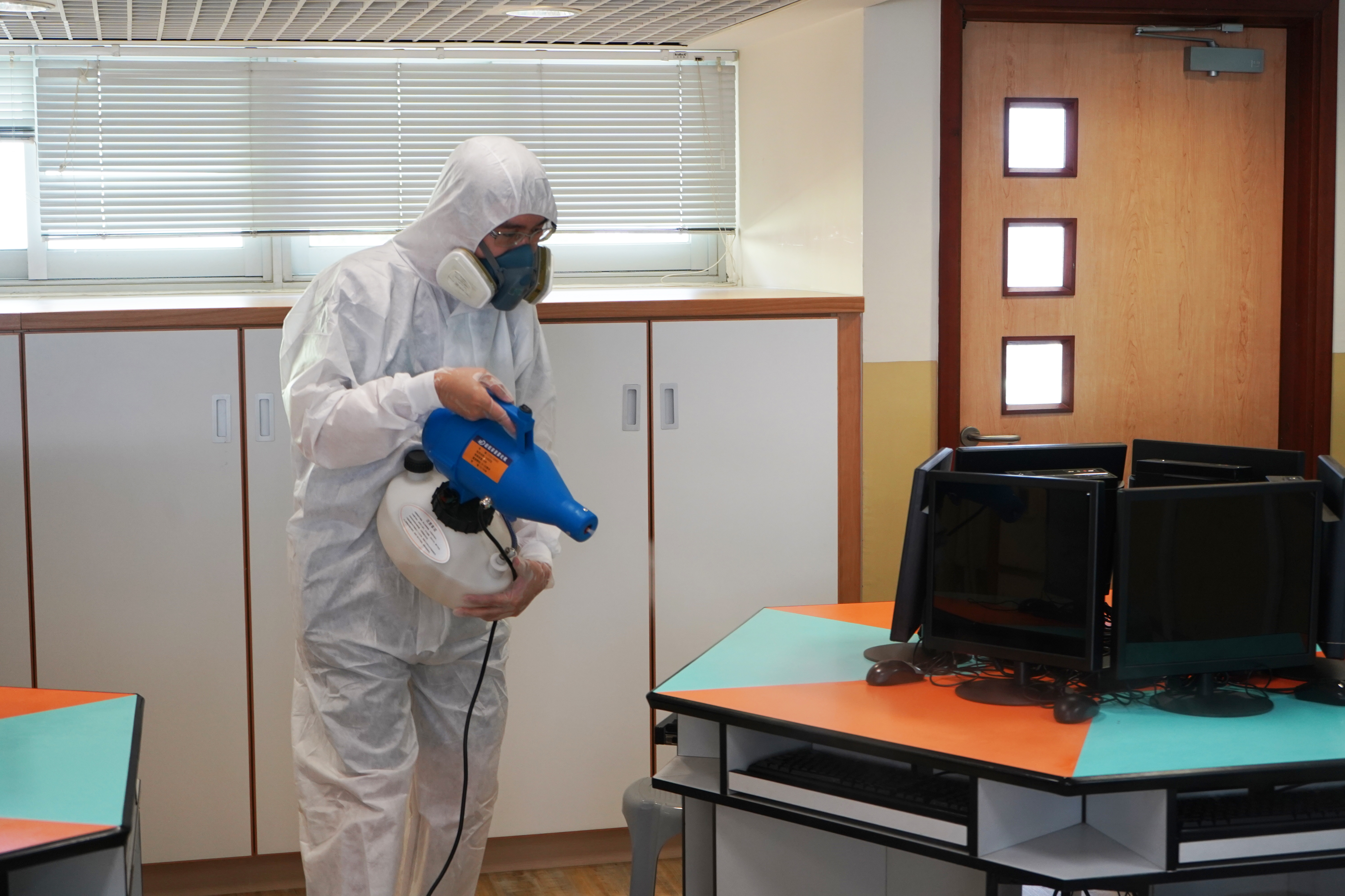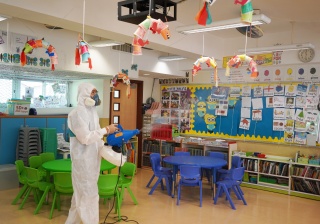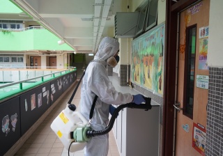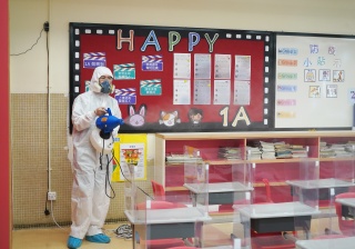 本校於4月17日(星期六)進行全校清潔及醫學級別消毒,並安排專業消毒公司進行消毒及塗層噴霧殺菌工程,確保校舍及環境清潔。
