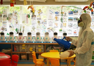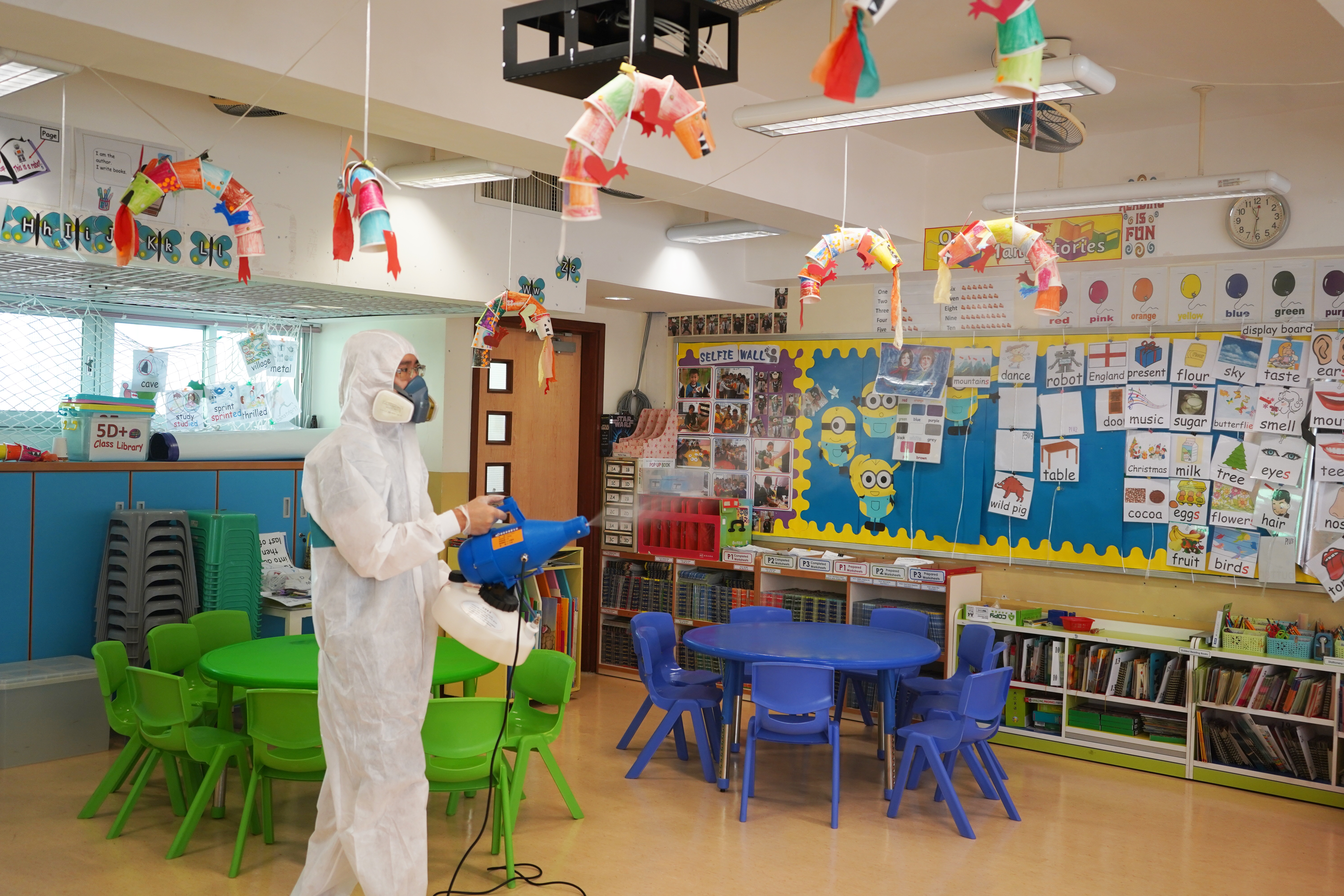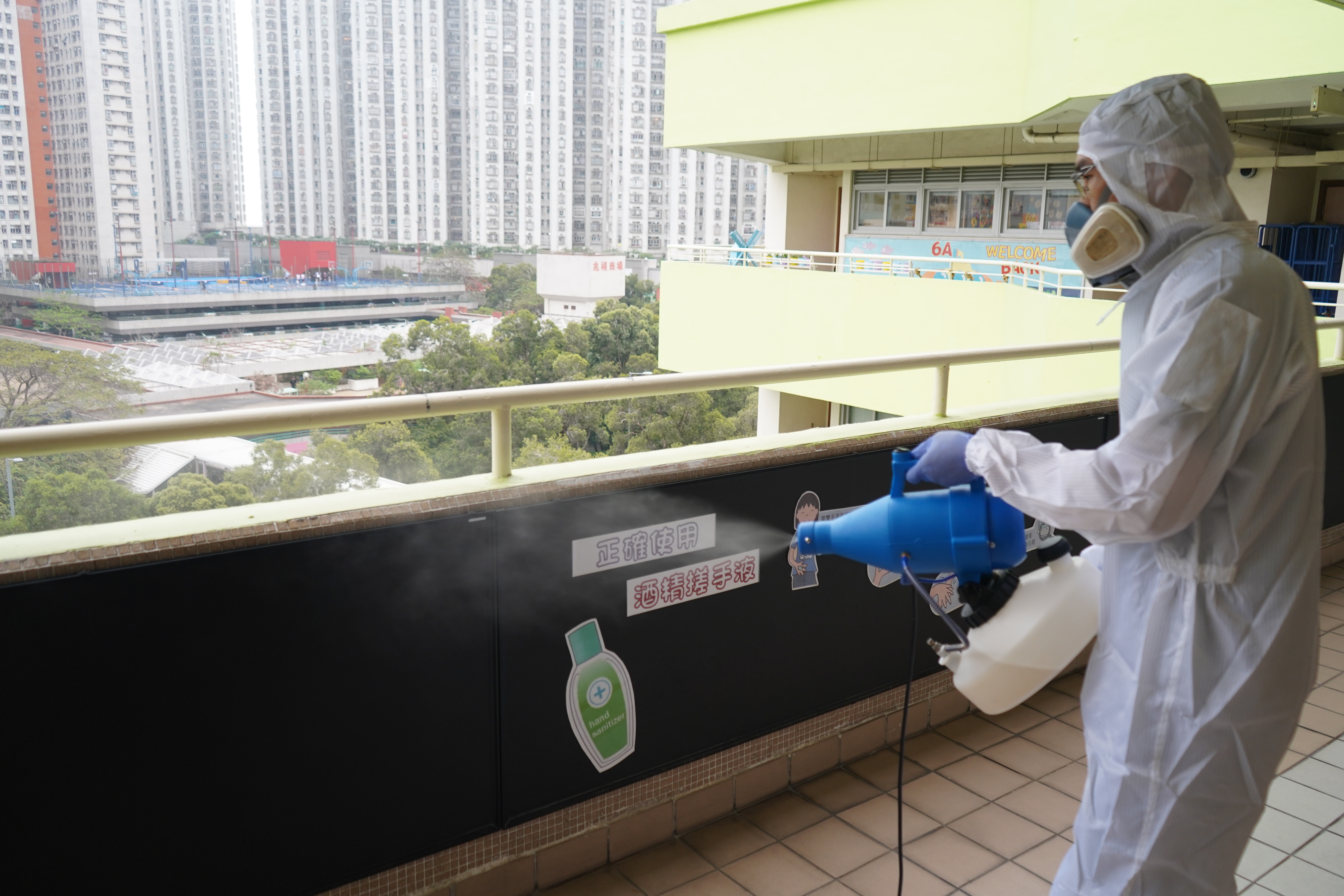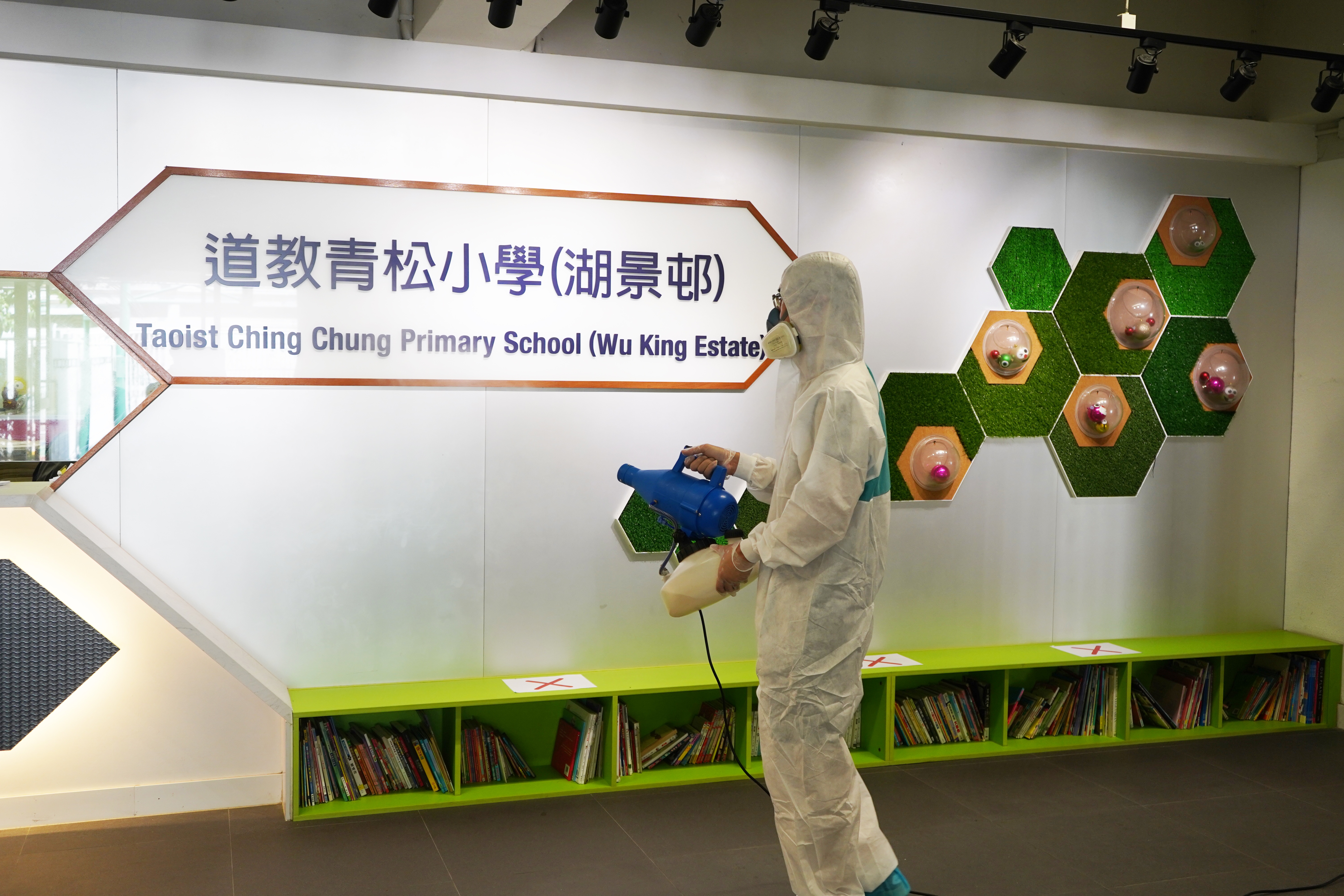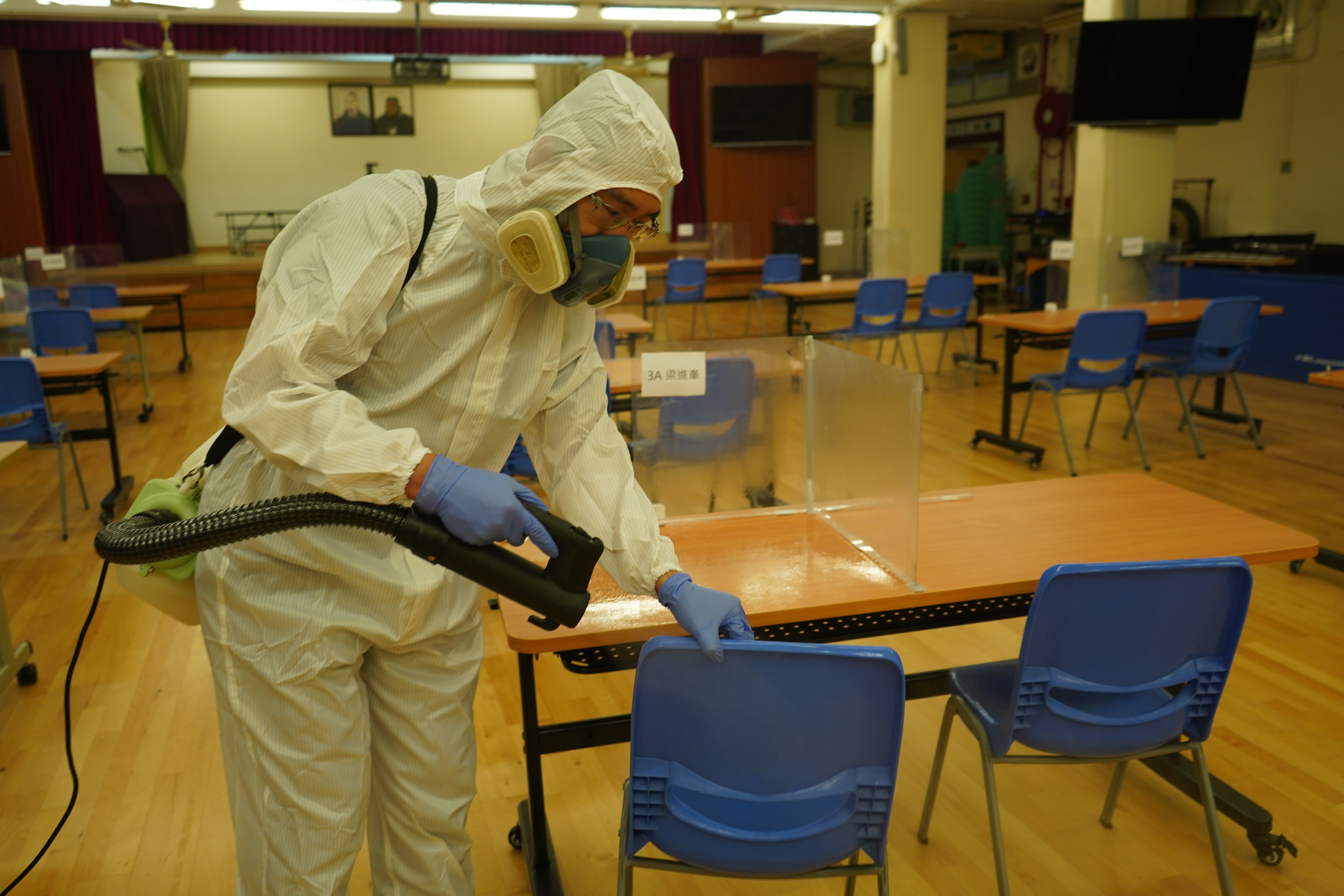 本校於4月17日(星期六)進行全校清潔及醫學級別消毒,並安排專業消毒公司進行消毒及塗層噴霧殺菌工程,確保校舍及環境清潔。