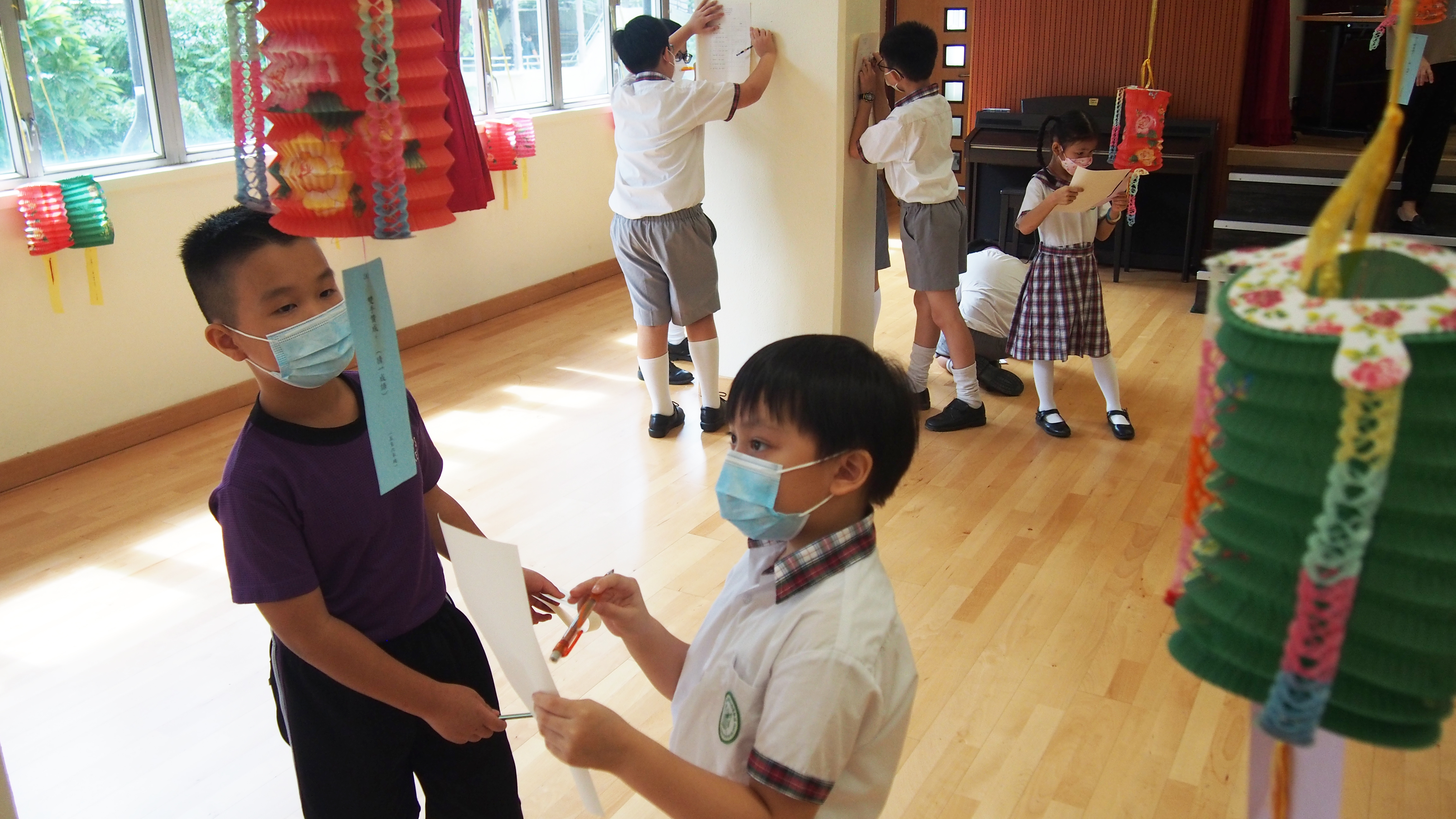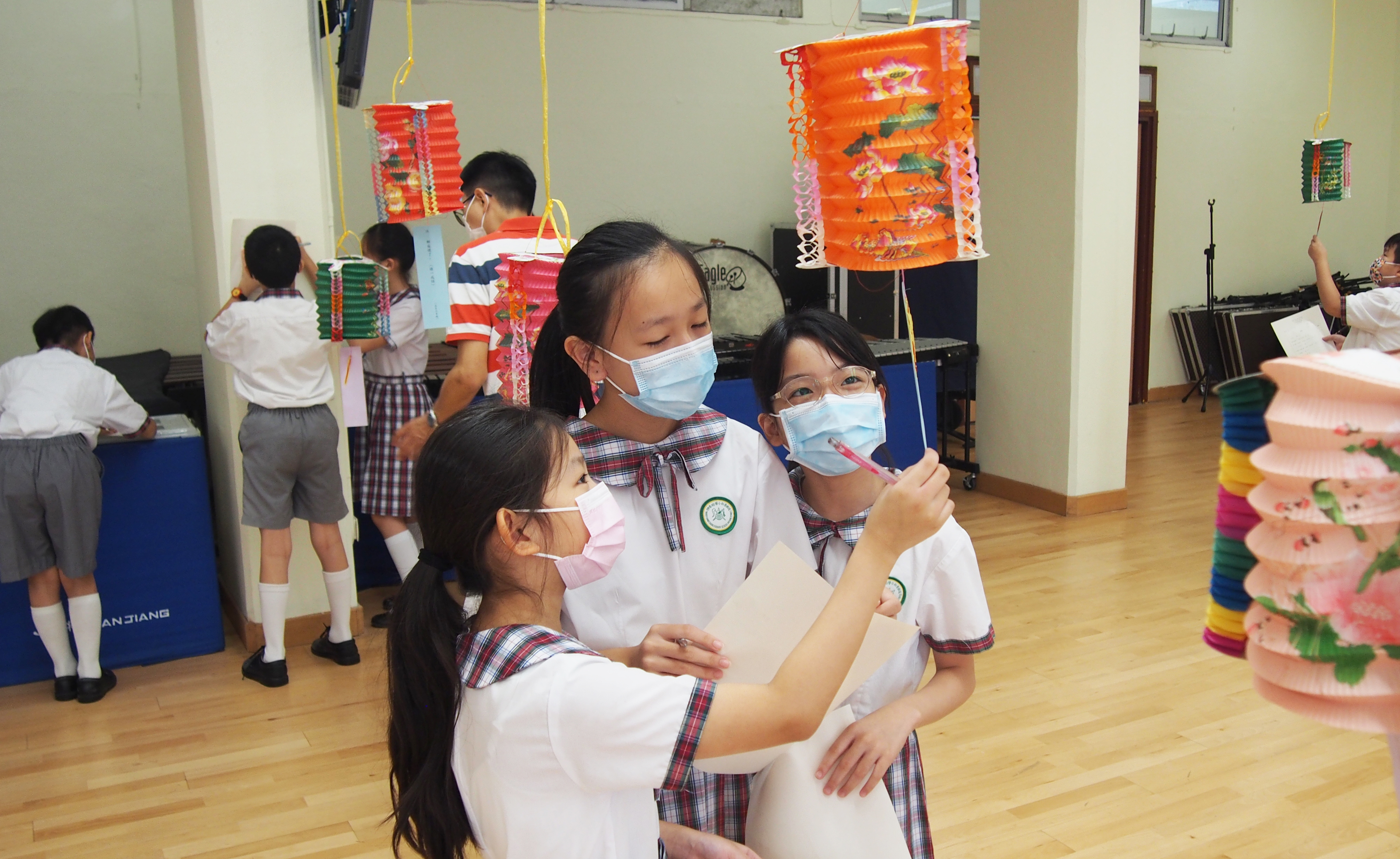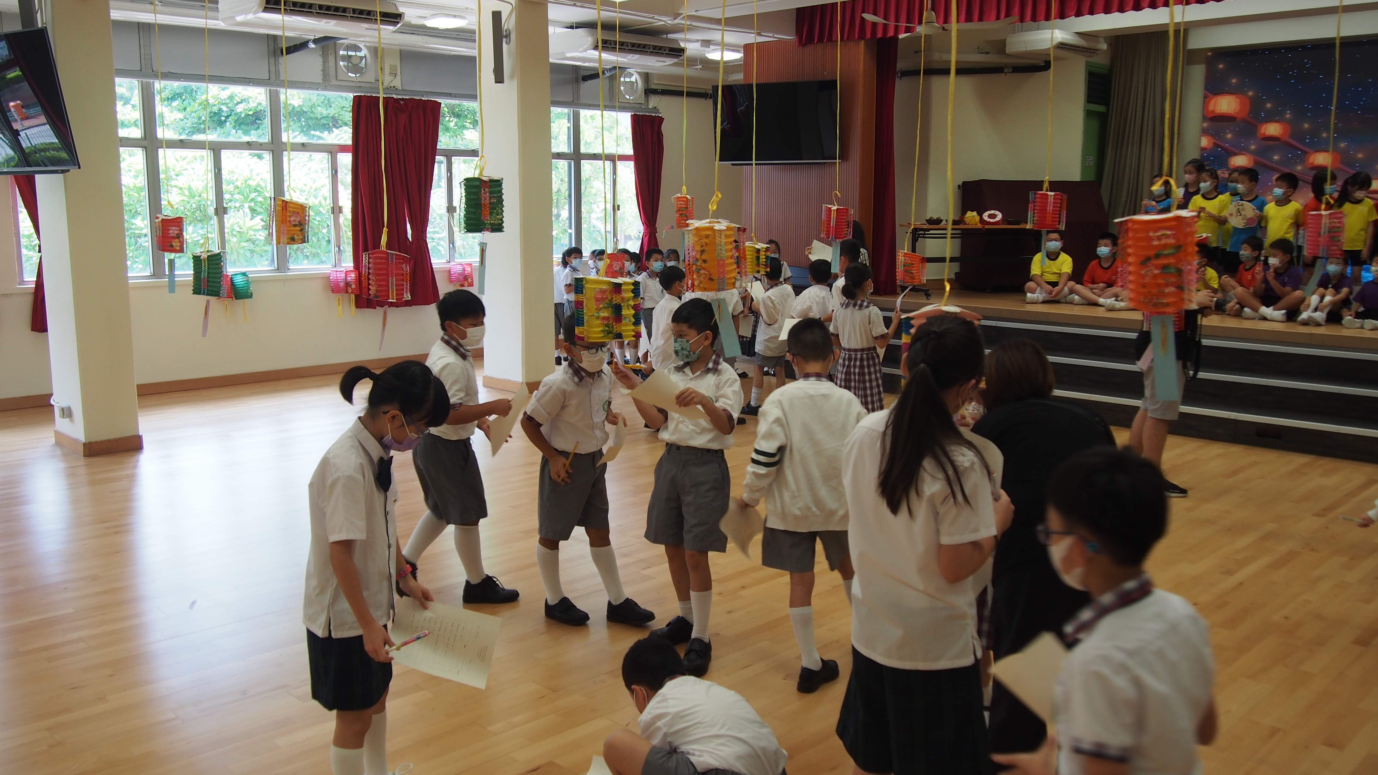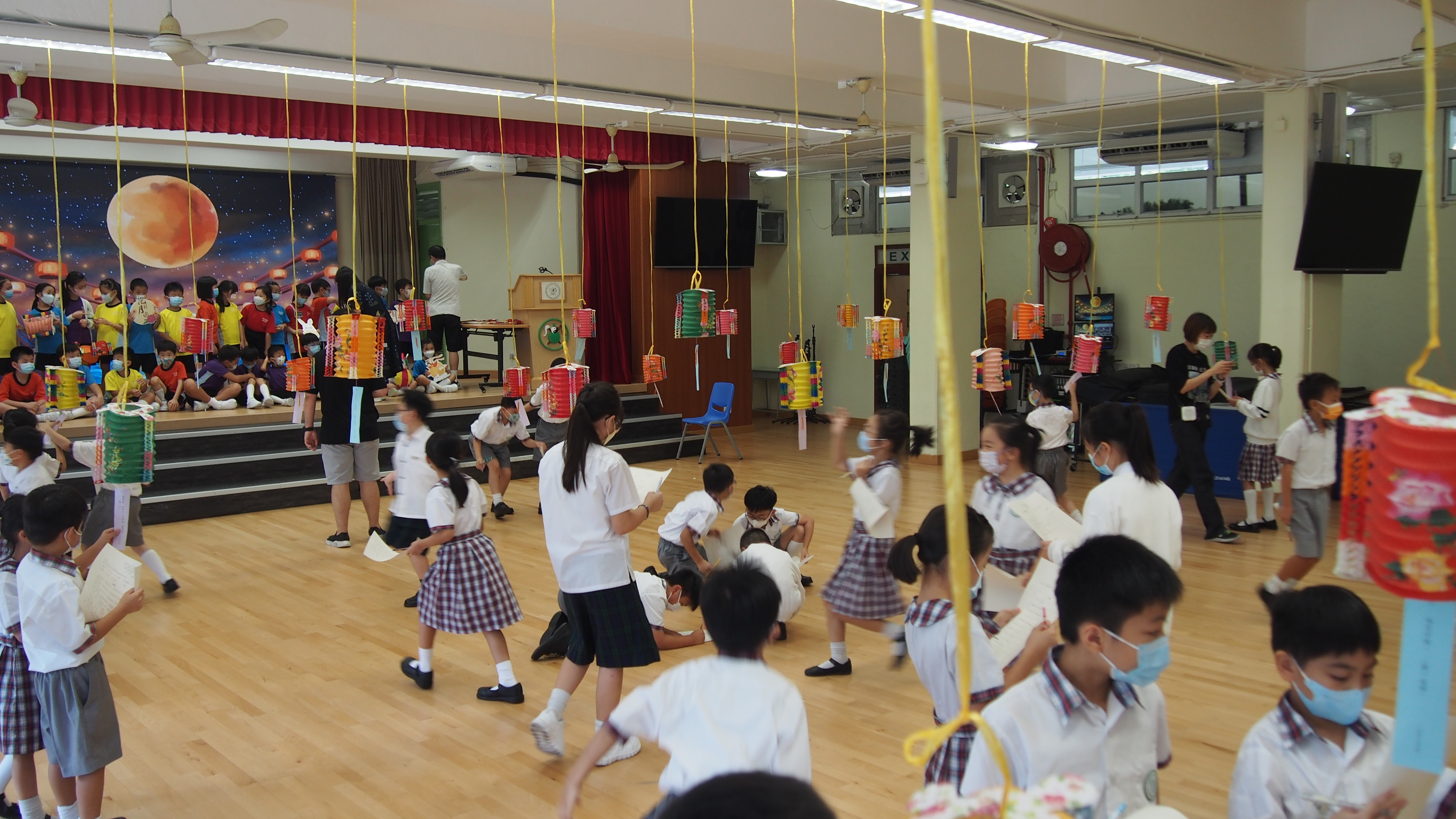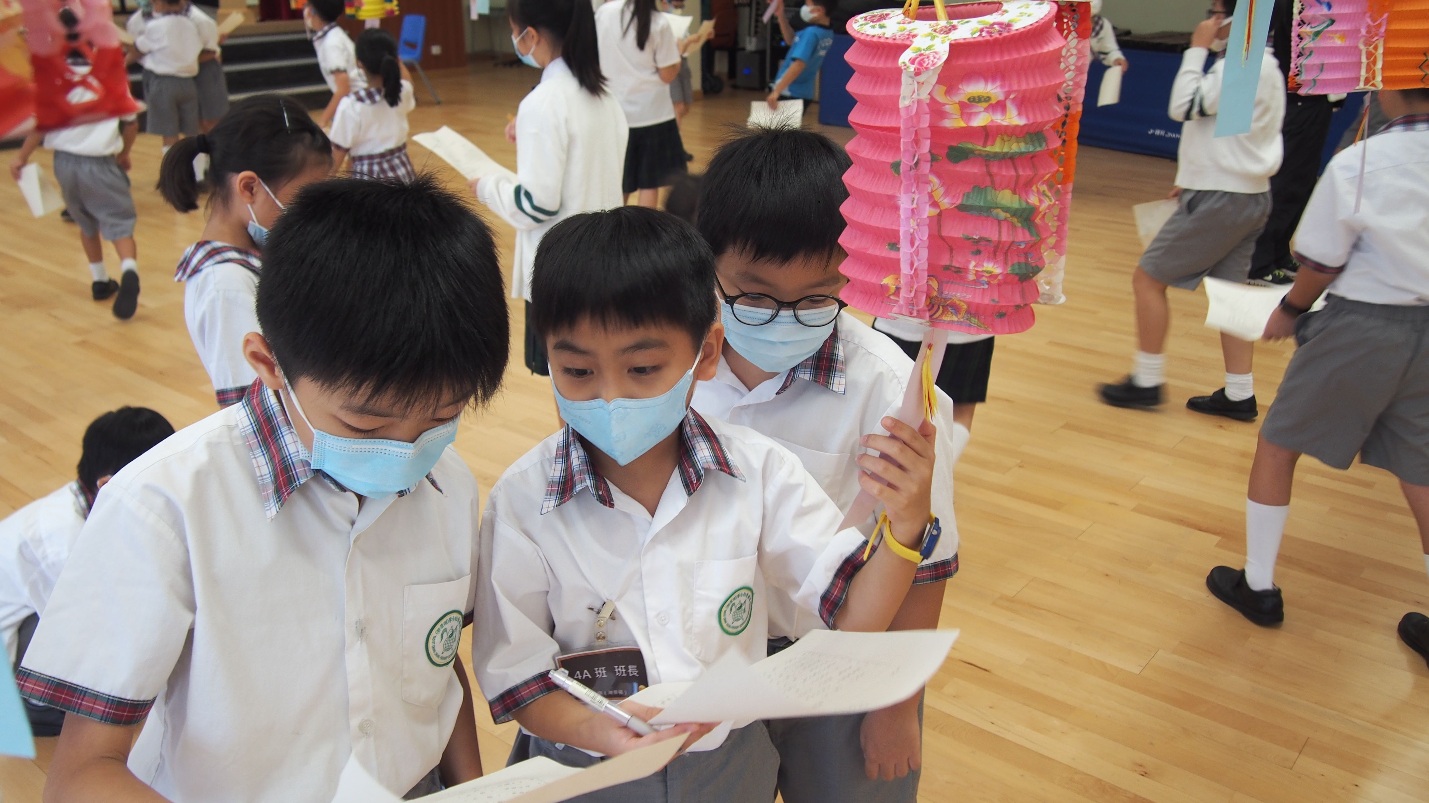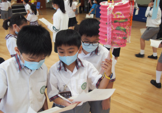 今日農曆八月十五日,是中國傳統節日—中秋節。學校舉辦特備慶祝活動,讓同學們愉快地學習,感受節日的氣氛。同學們可到禮堂欣賞花燈、猜燈謎,及於常識堂上認識「中秋節的由來」,並進行問答比賽。