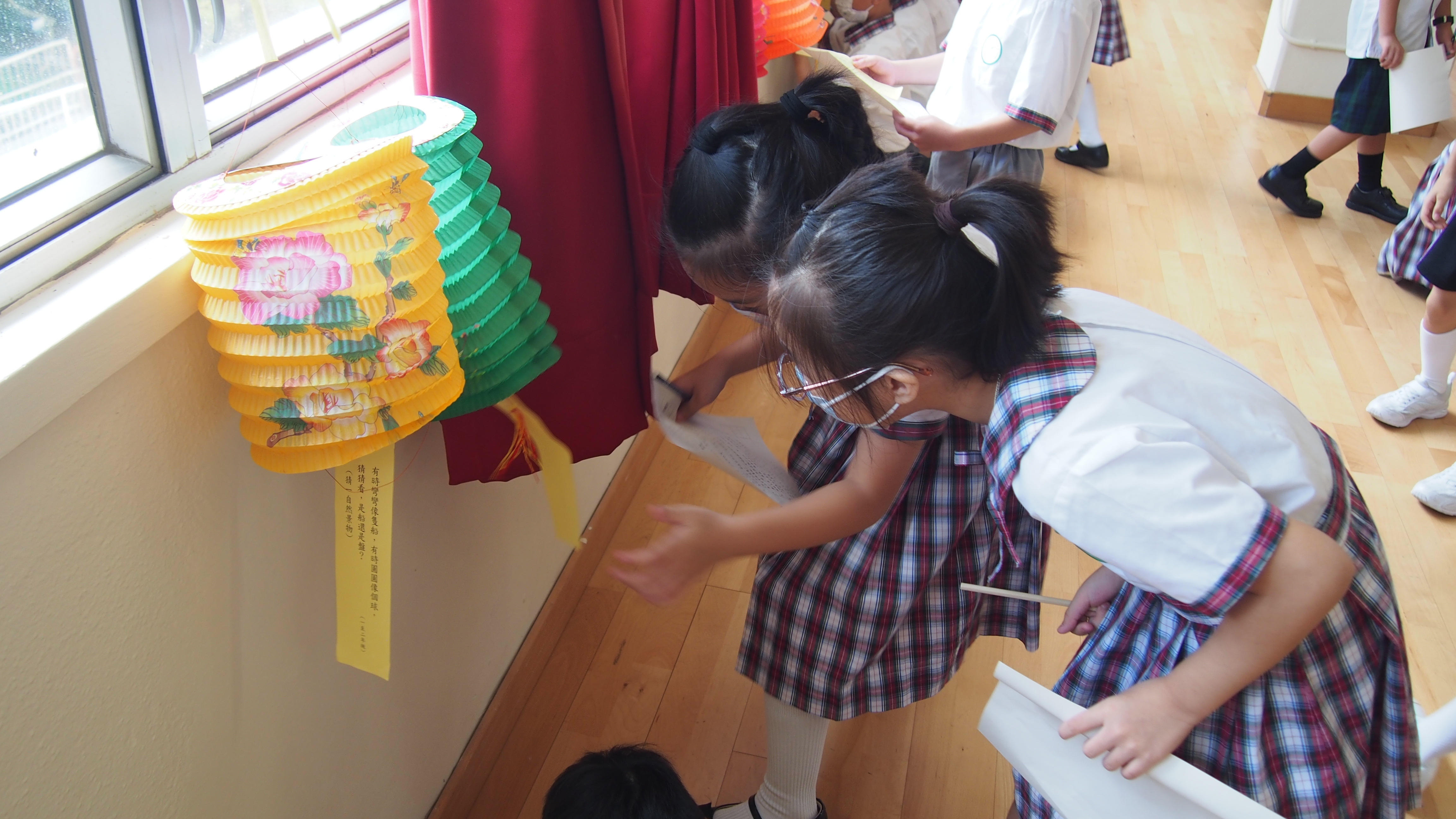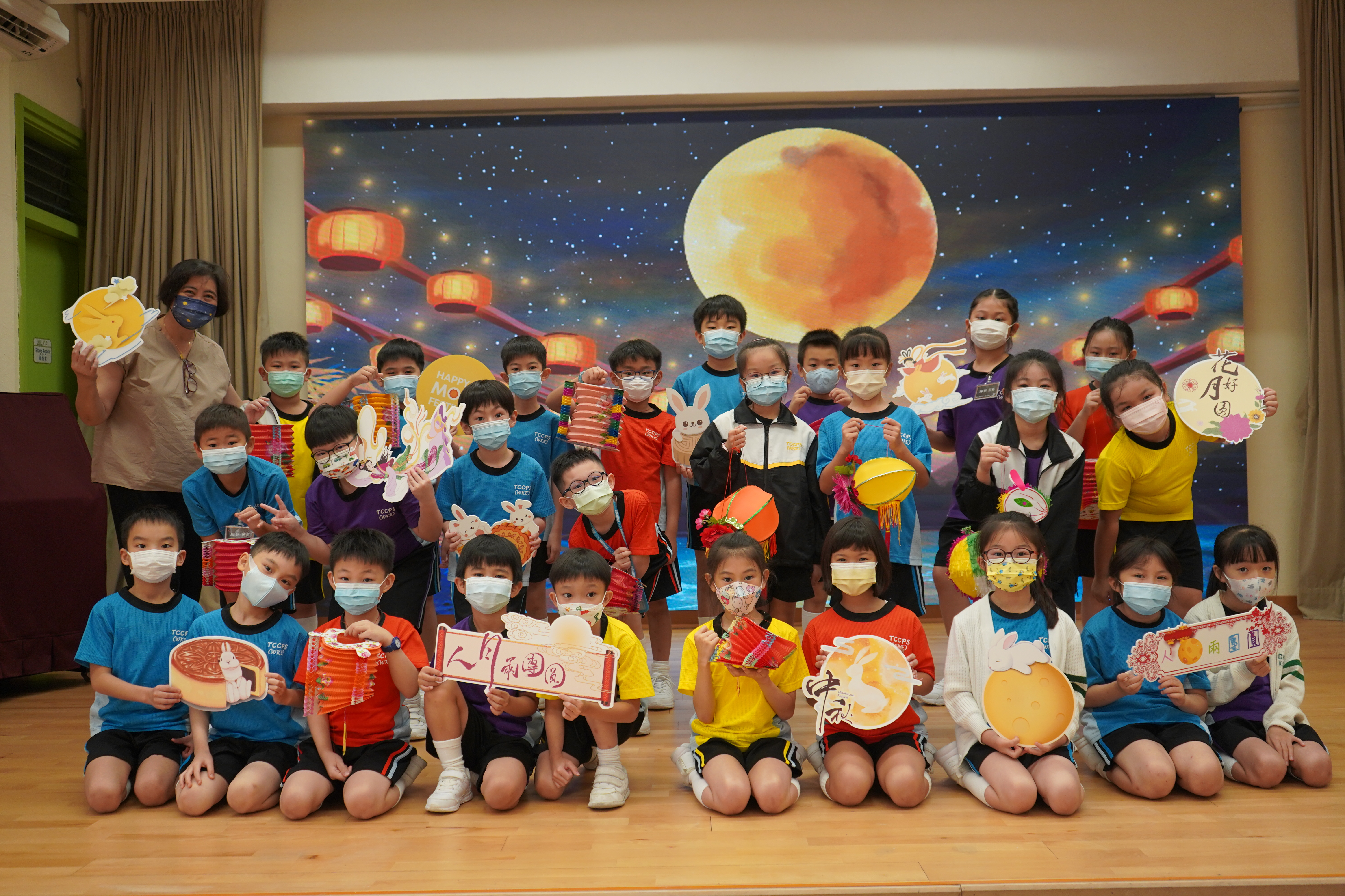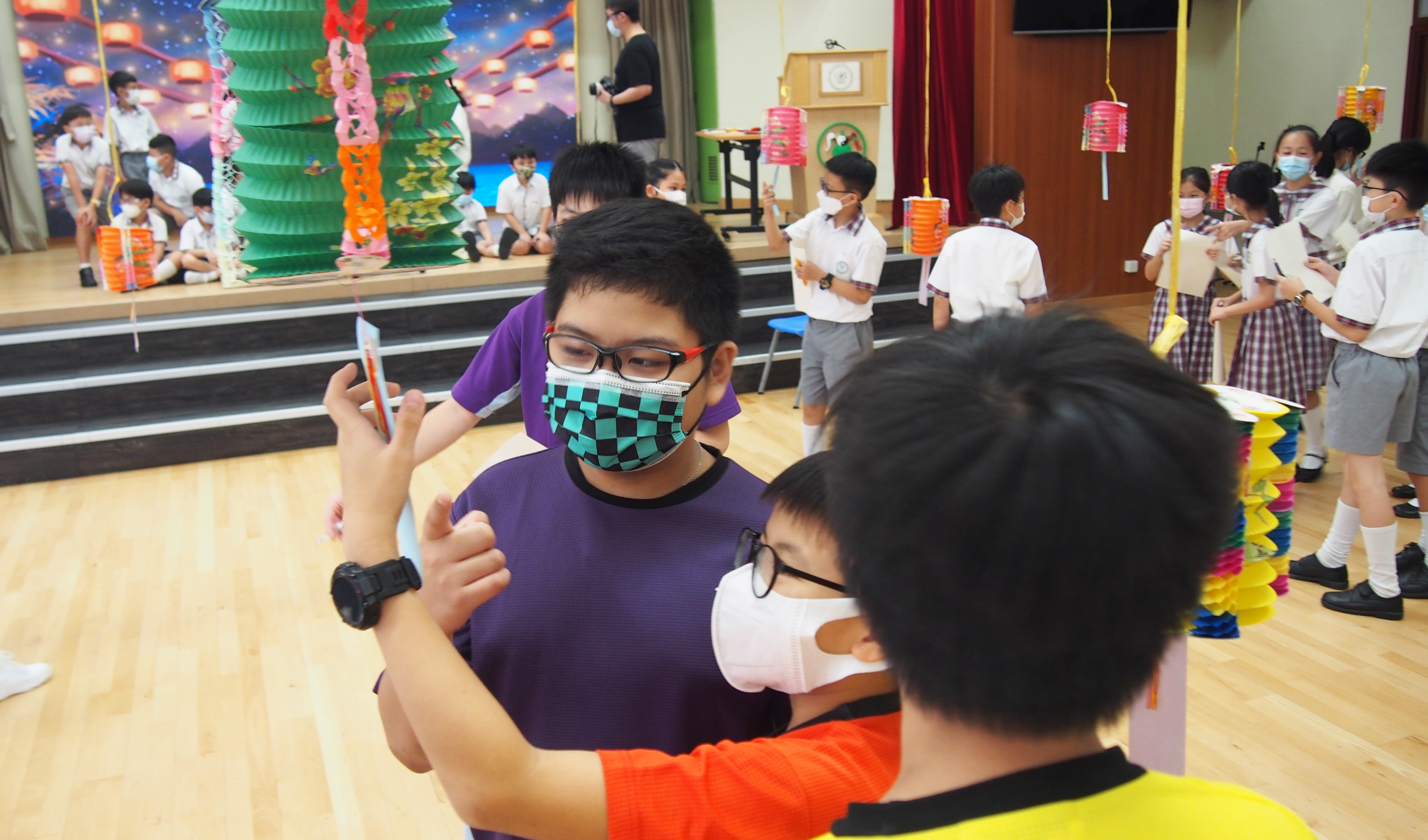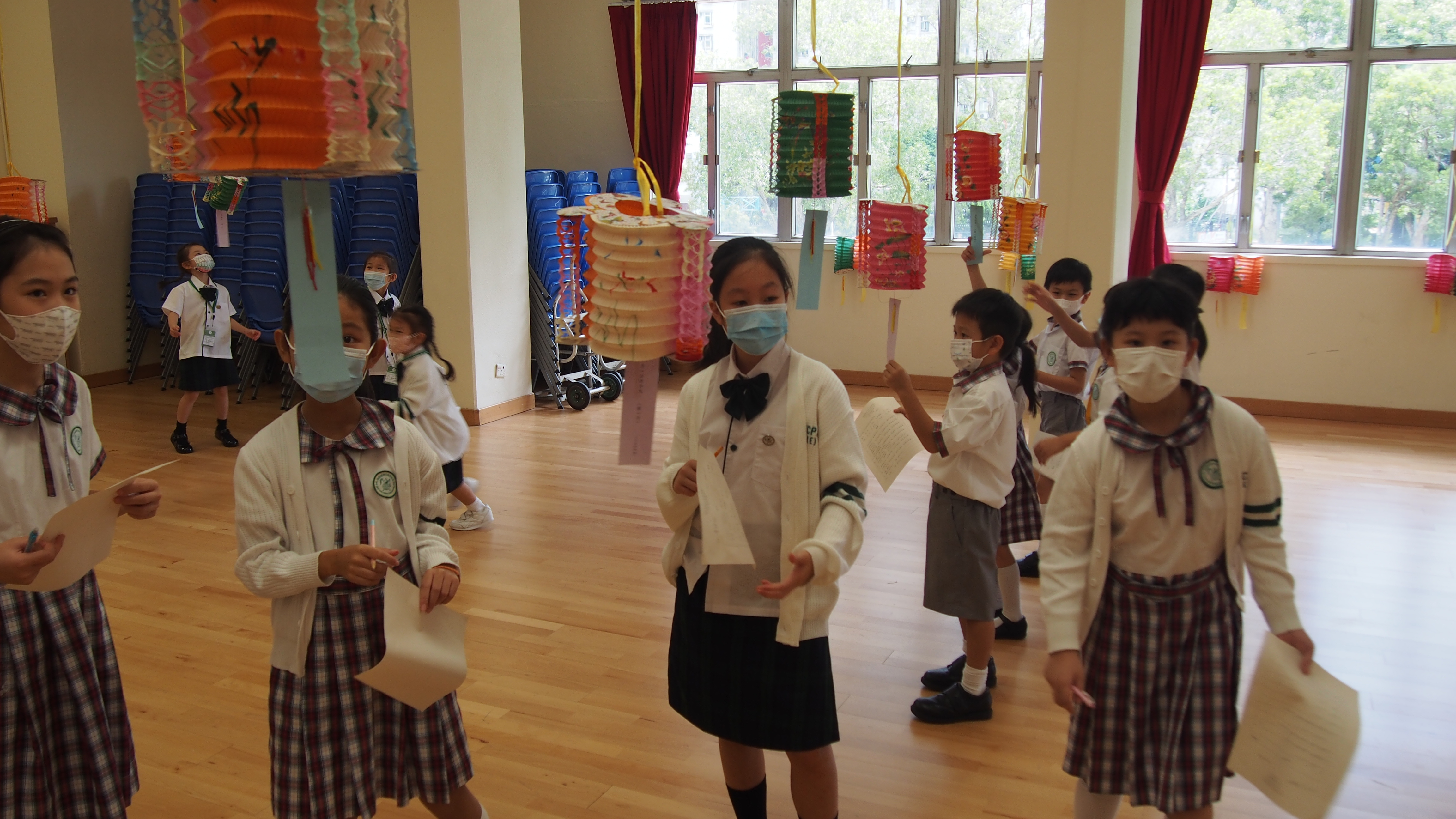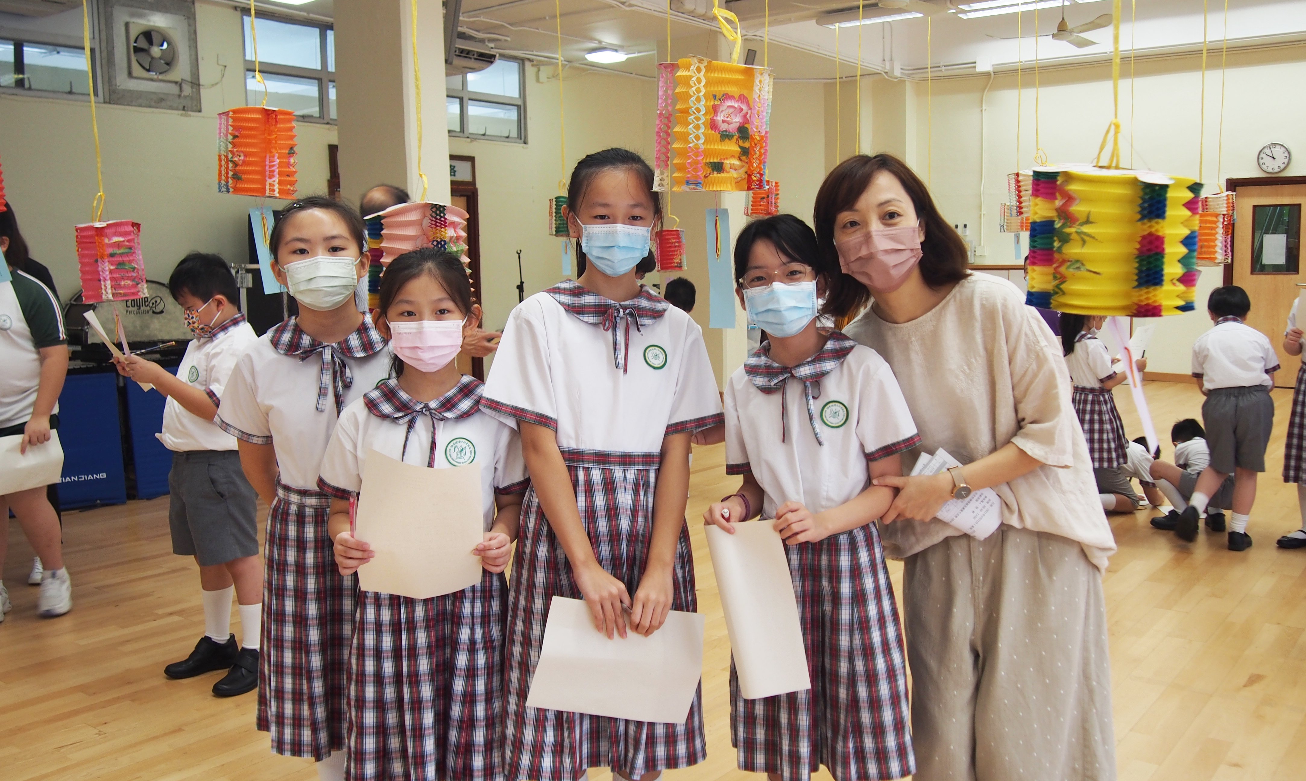今日農曆八月十五日,是中國傳統節日—中秋節。學校舉辦特備慶祝活動,讓同學們愉快地學習,感受節日的氣氛。同學們可到禮堂欣賞花燈、猜燈謎,及於常識堂上認識「中秋節的由來」,並進行問答比賽。
