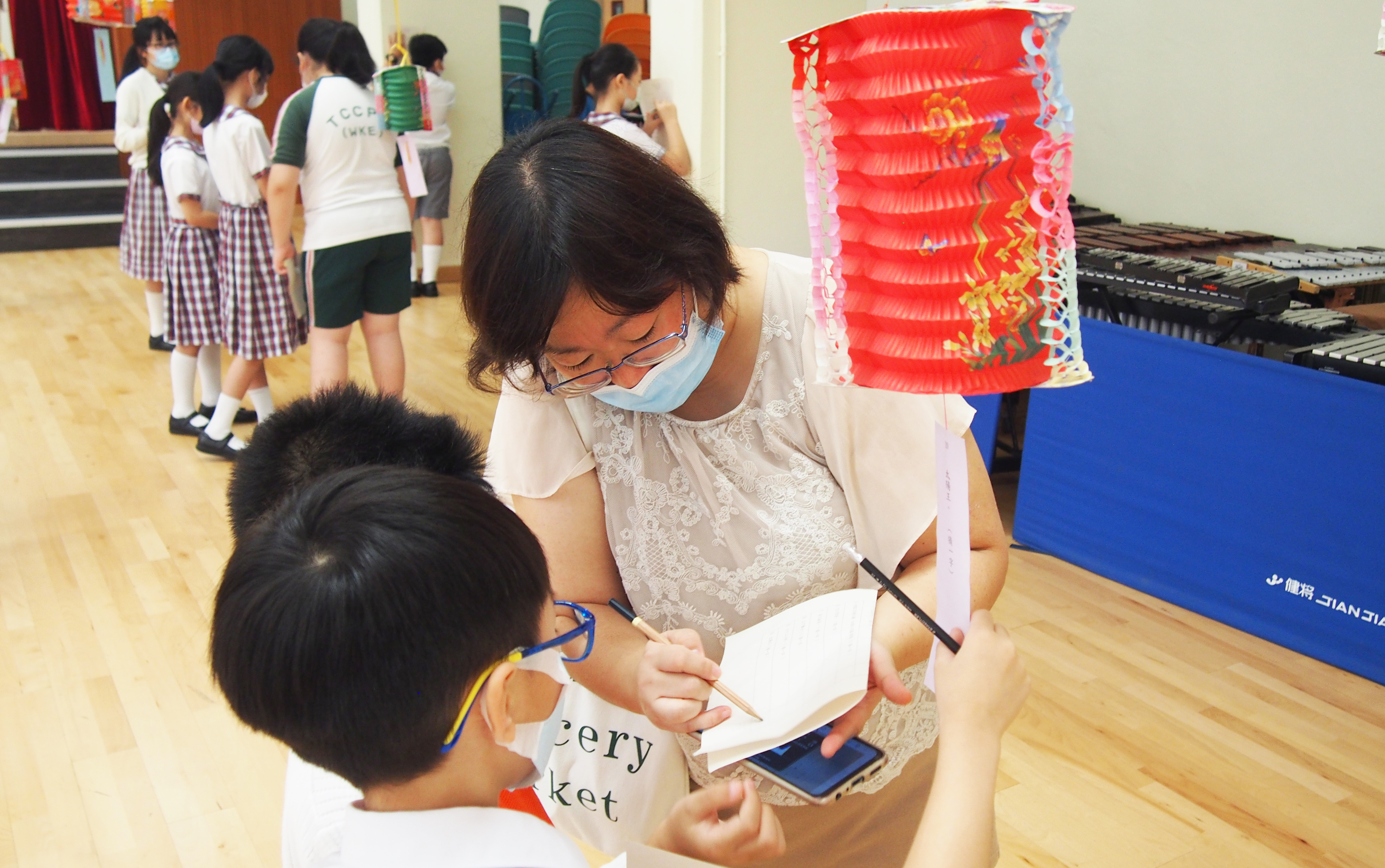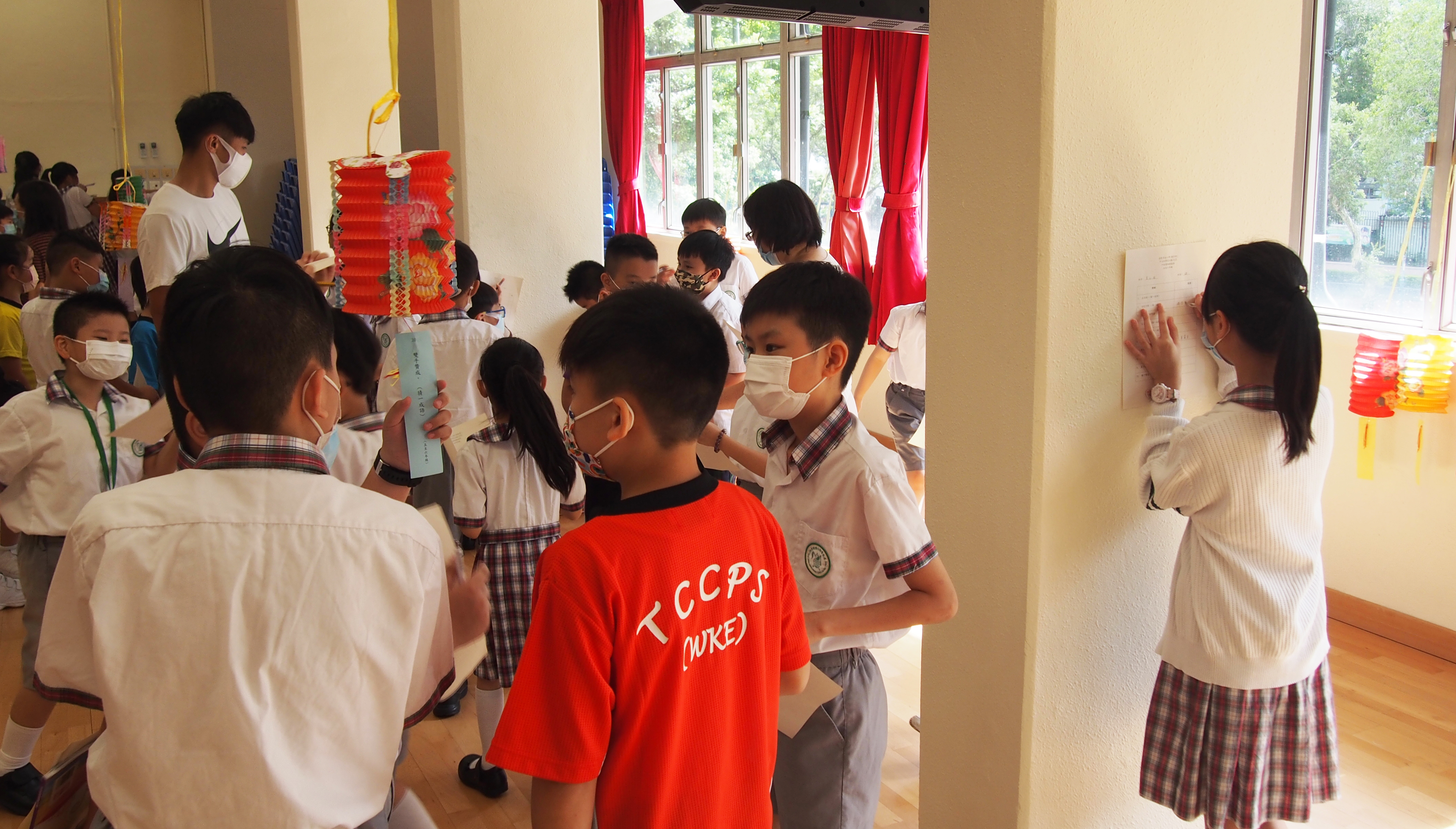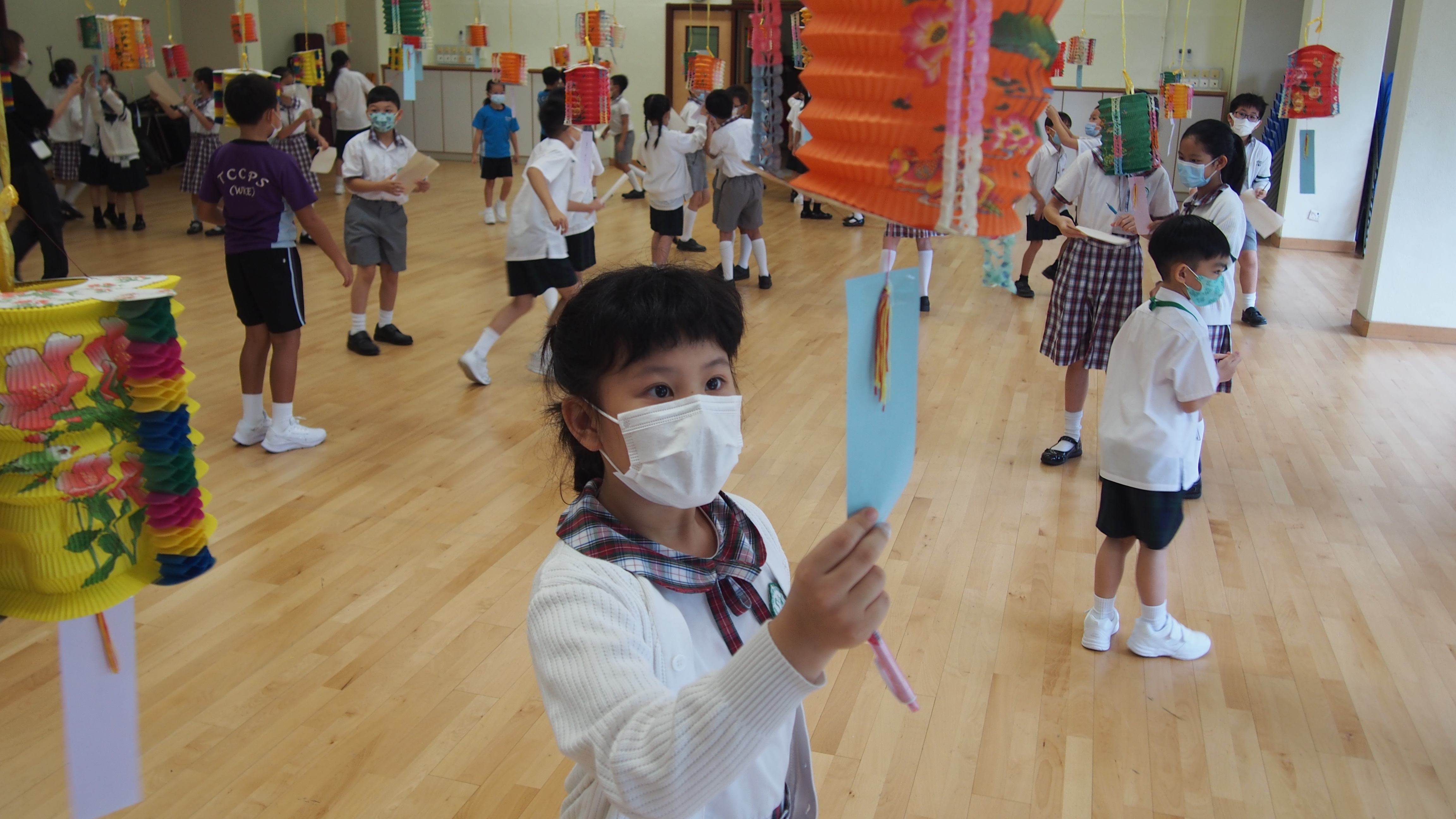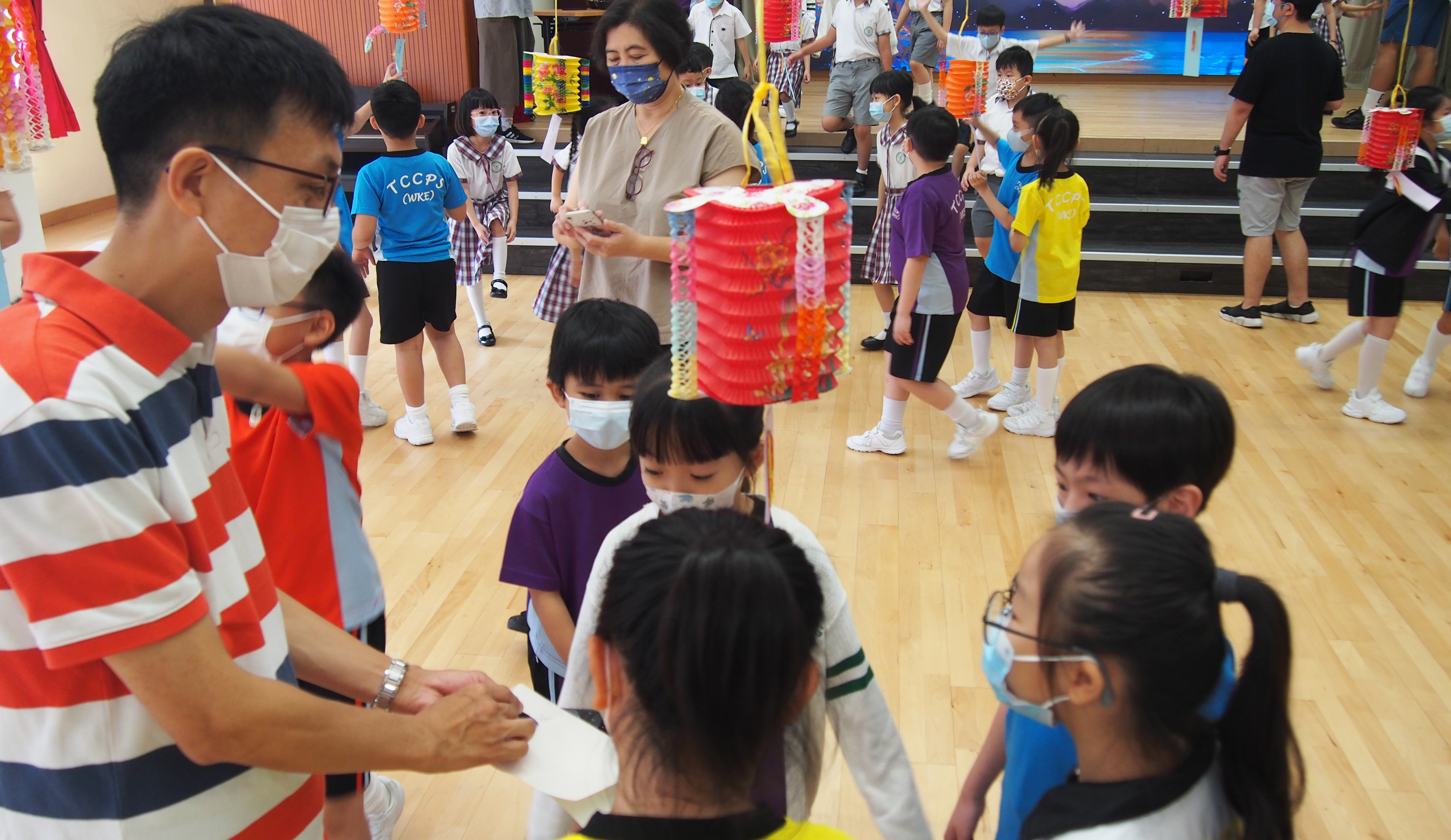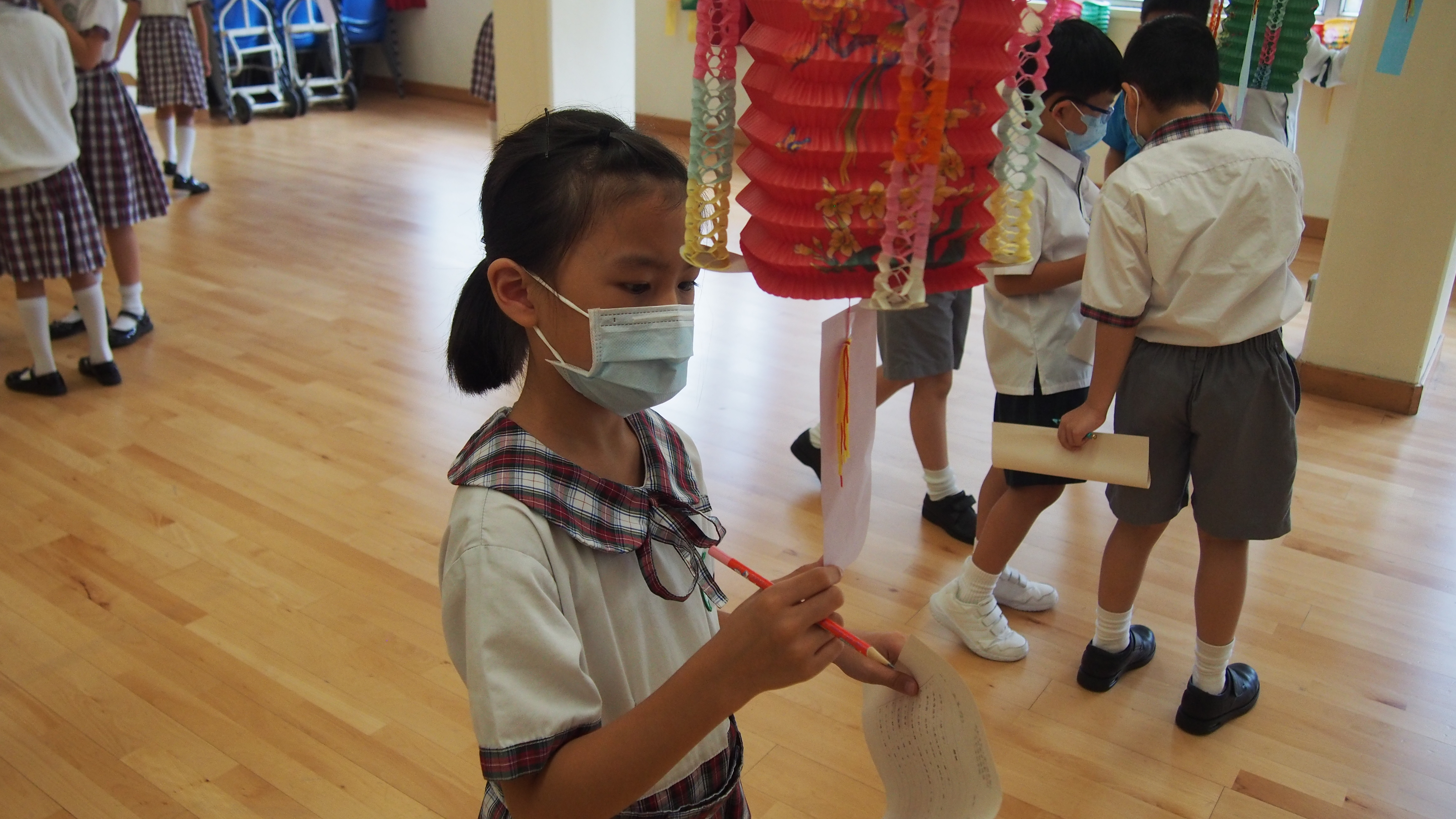 今日農曆八月十五日,是中國傳統節日—中秋節。學校舉辦特備慶祝活動,讓同學們愉快地學習,感受節日的氣氛。同學們可到禮堂欣賞花燈、猜燈謎,及於常識堂上認識「中秋節的由來」,並進行問答比賽。