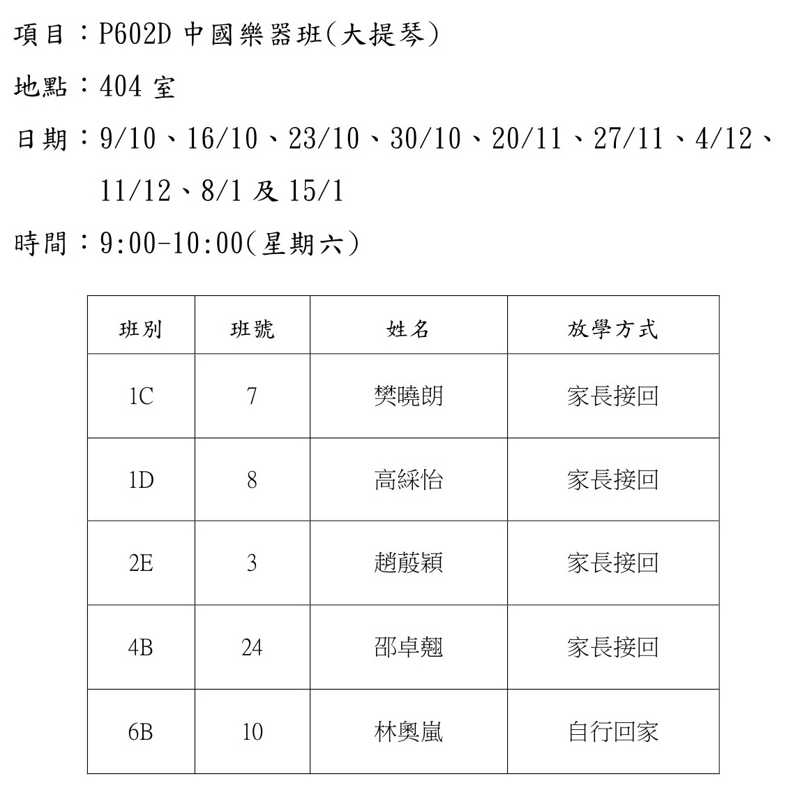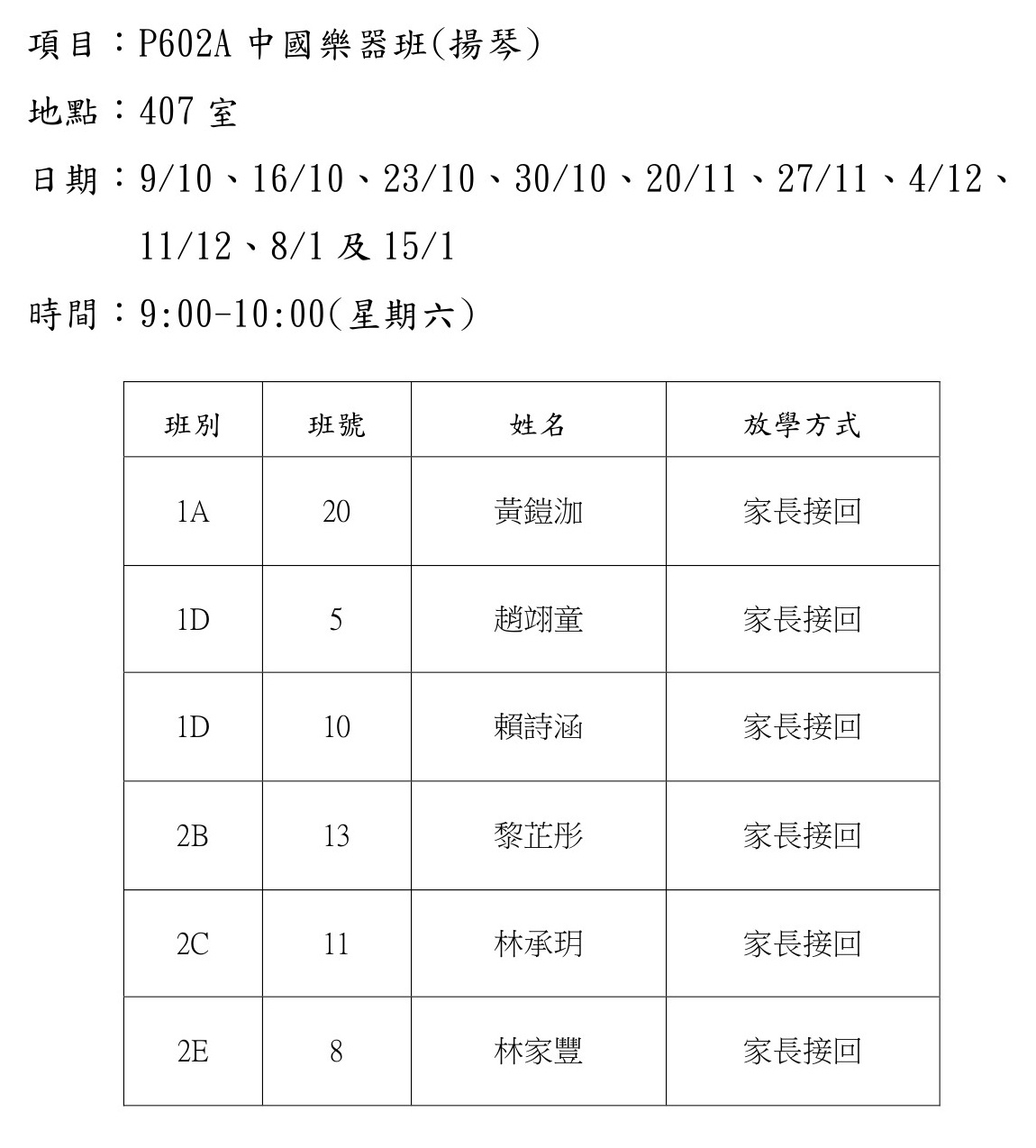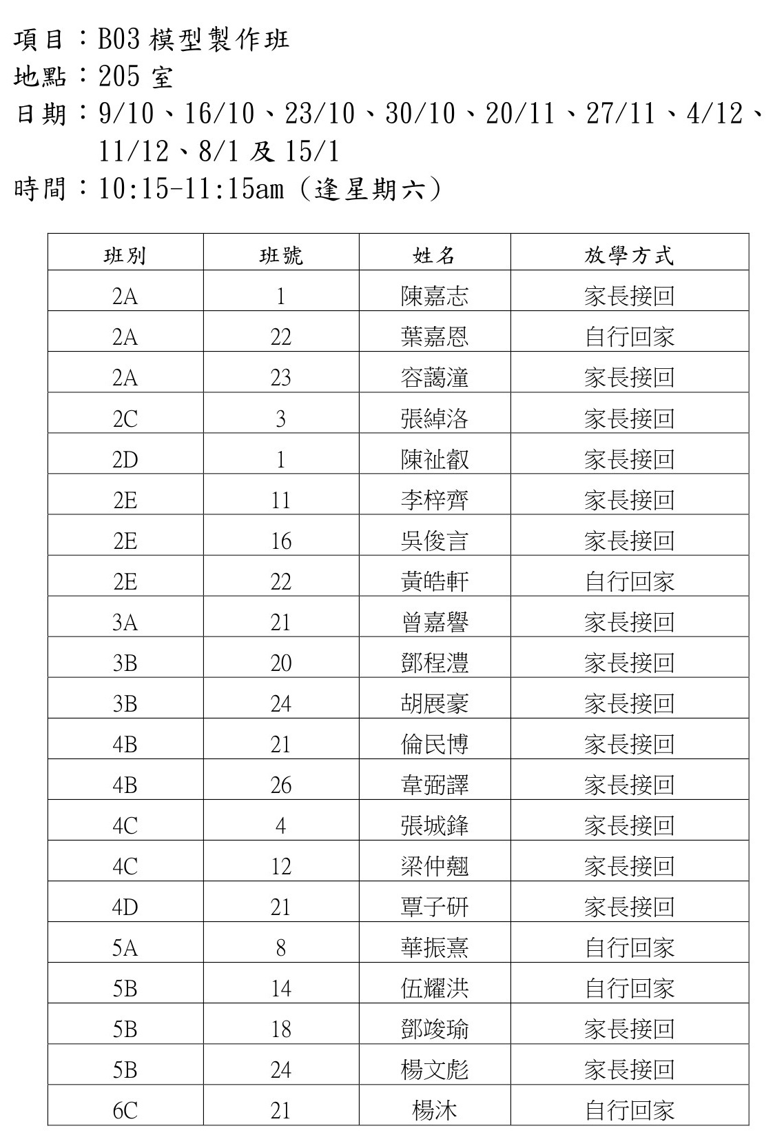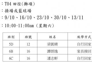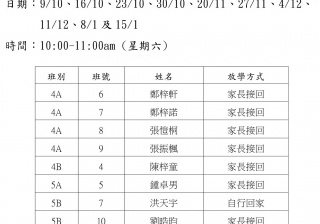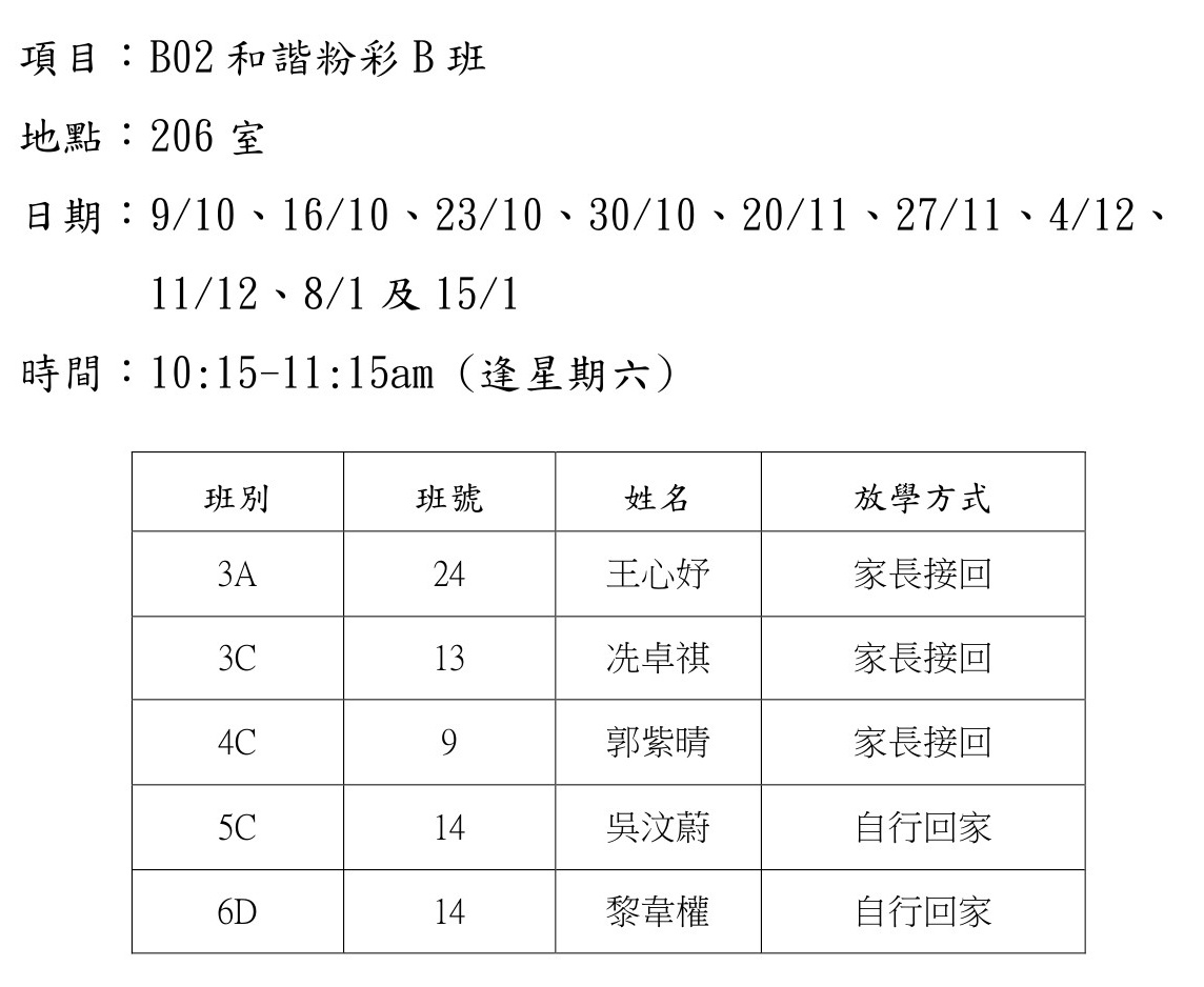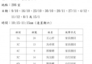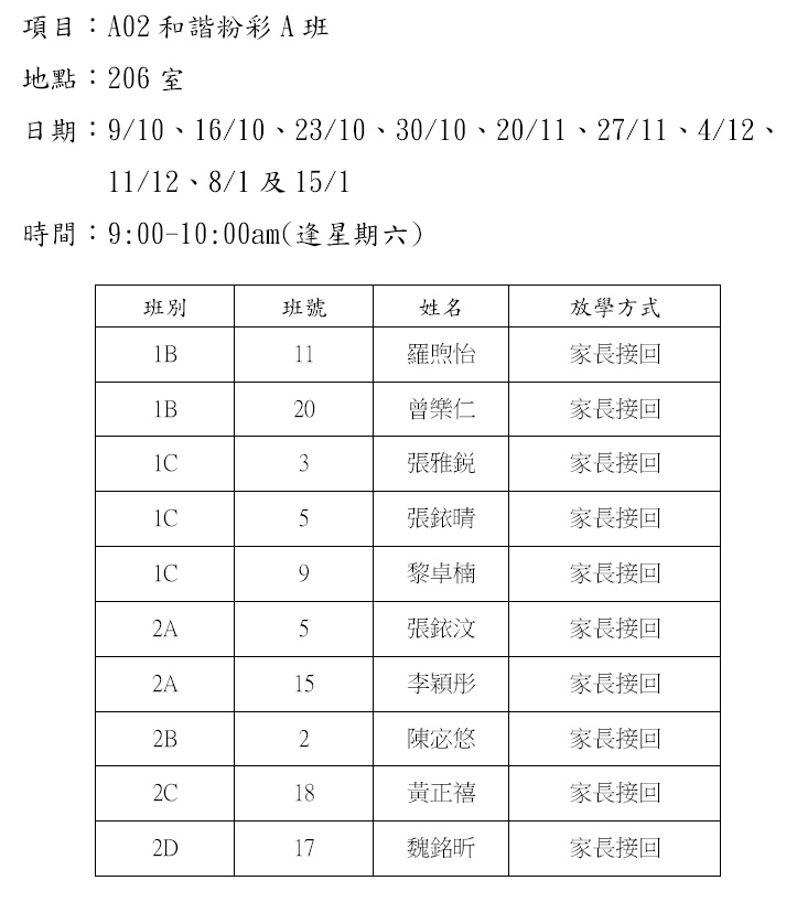 2021-2022年度 上學期周六興趣班名單