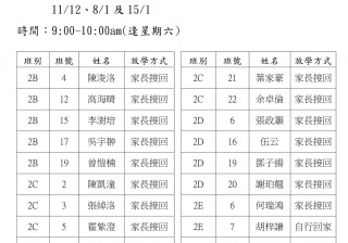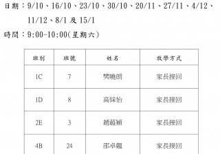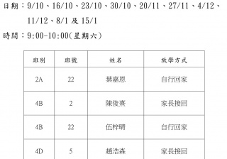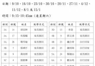 學校歸程隊路線及解散地點修訂資料